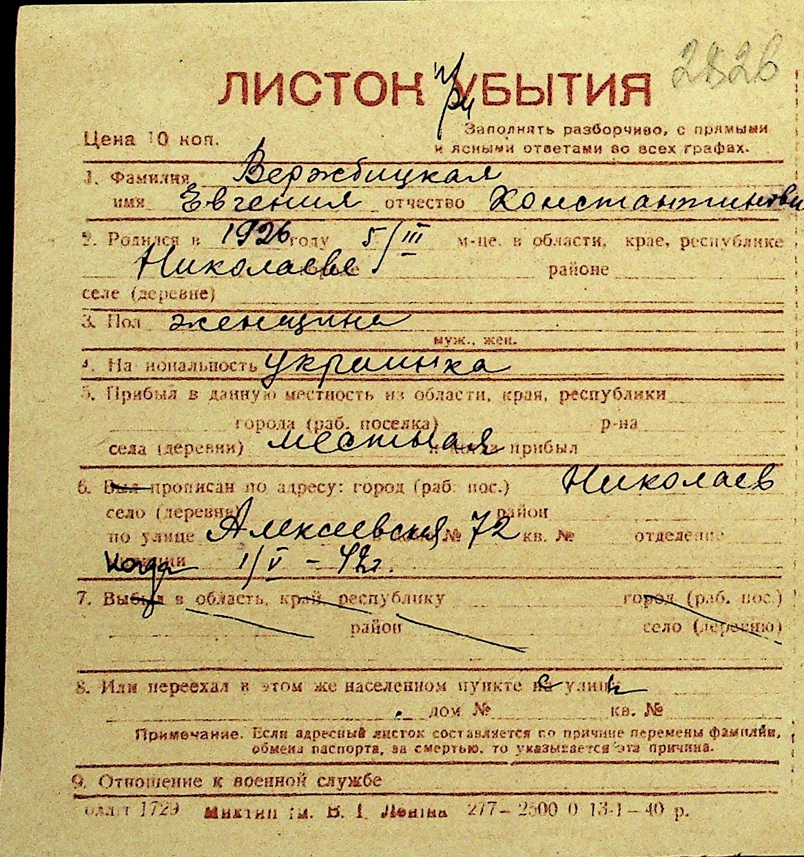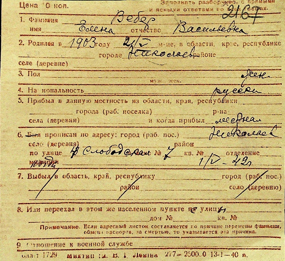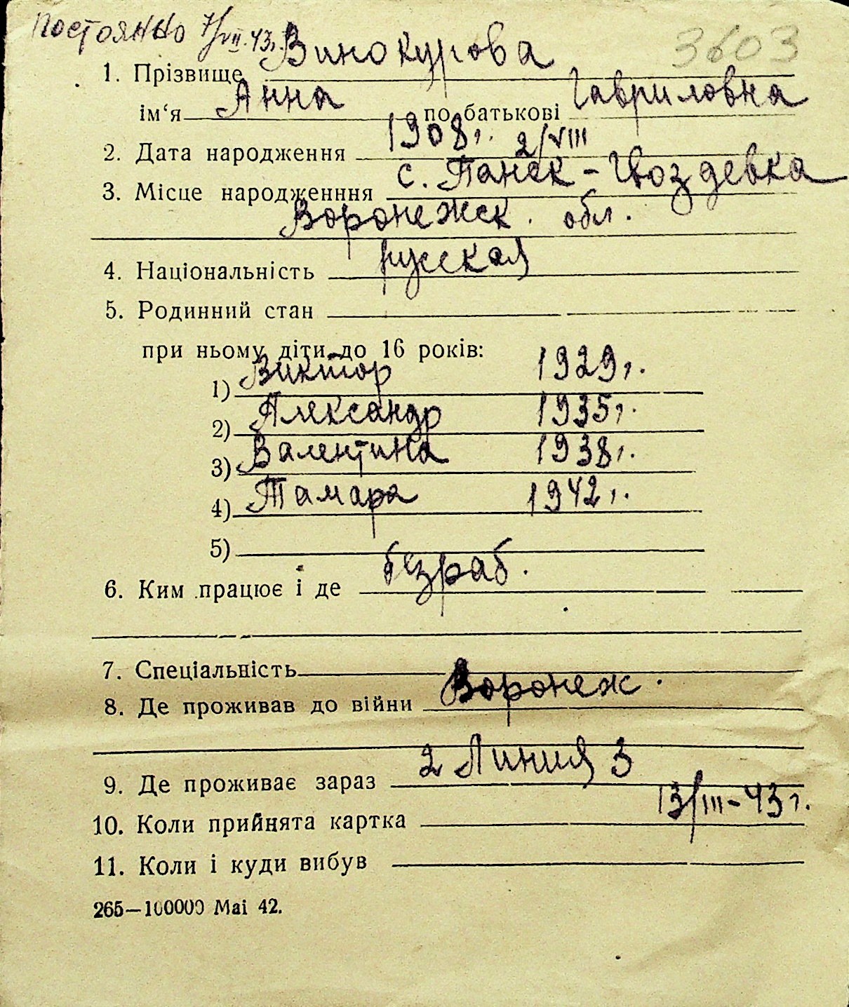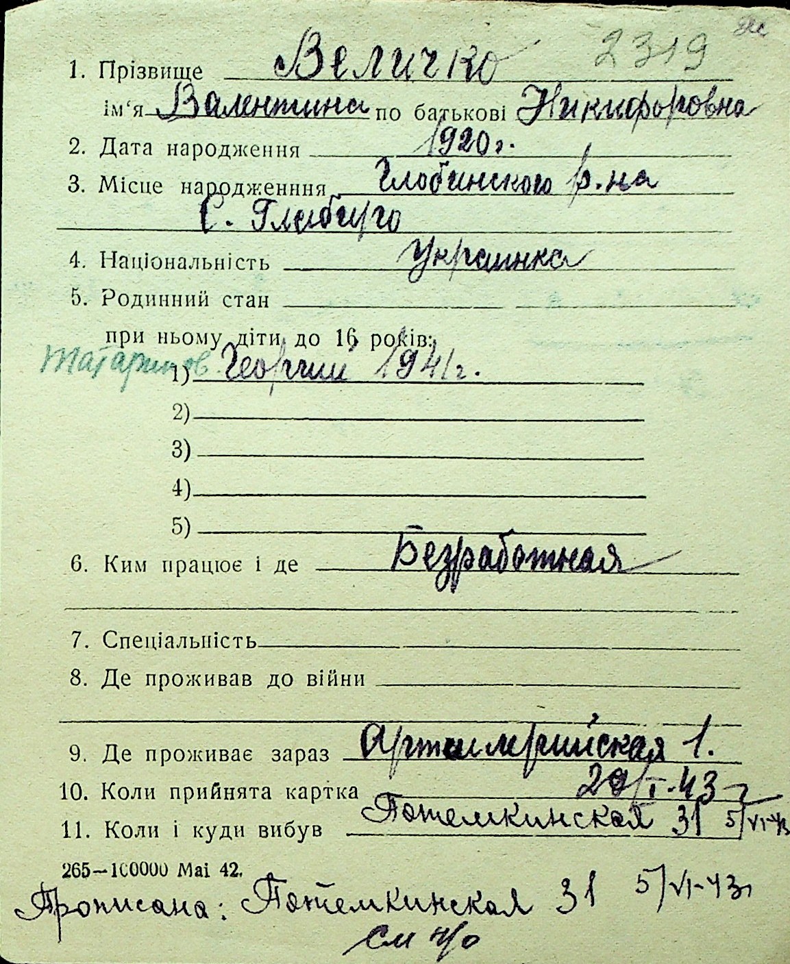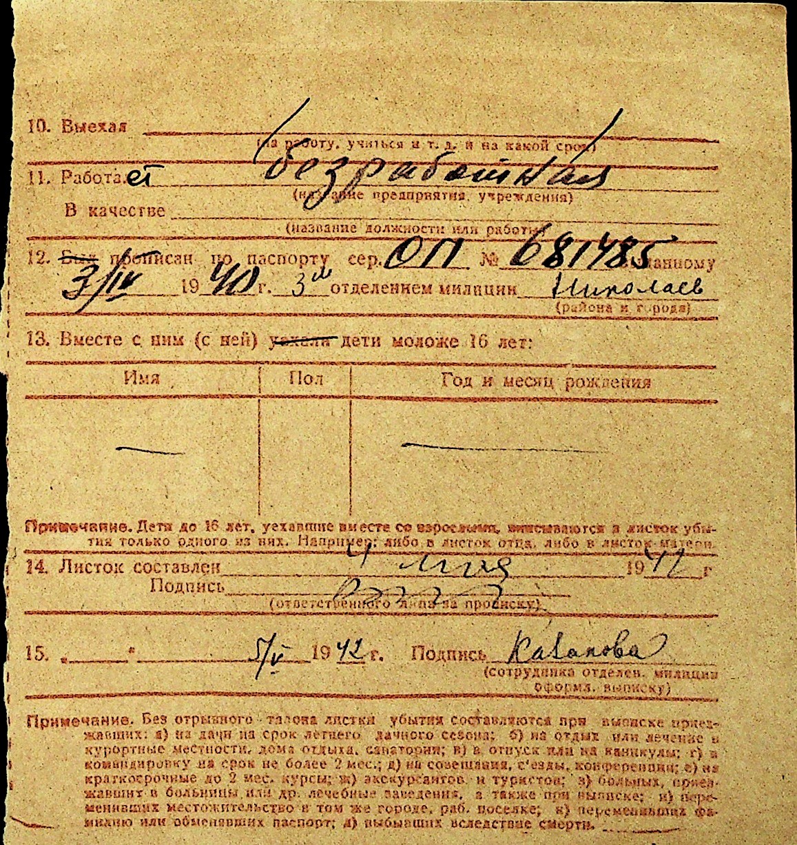 • • Перелік карток до фонду № Н-1016