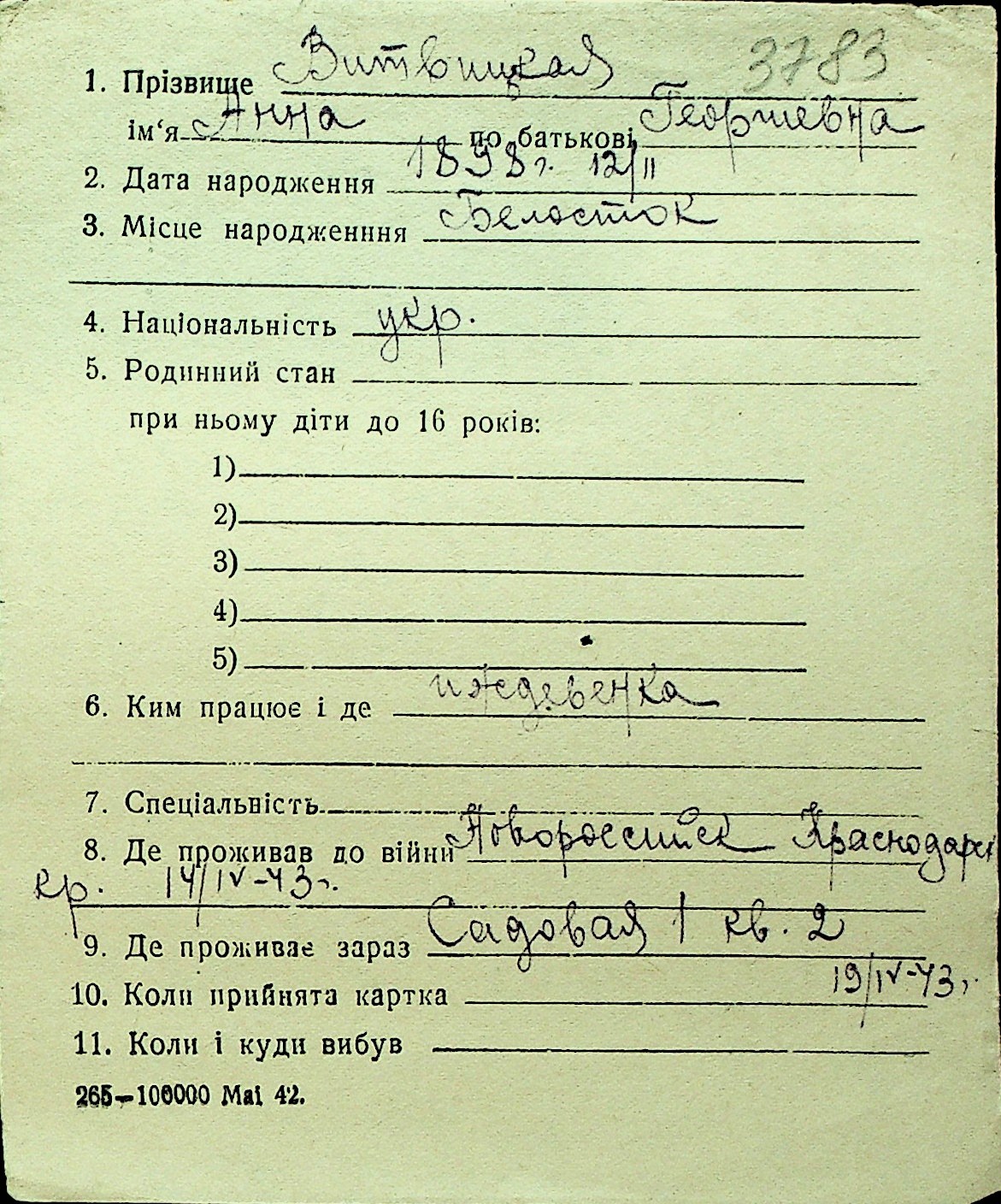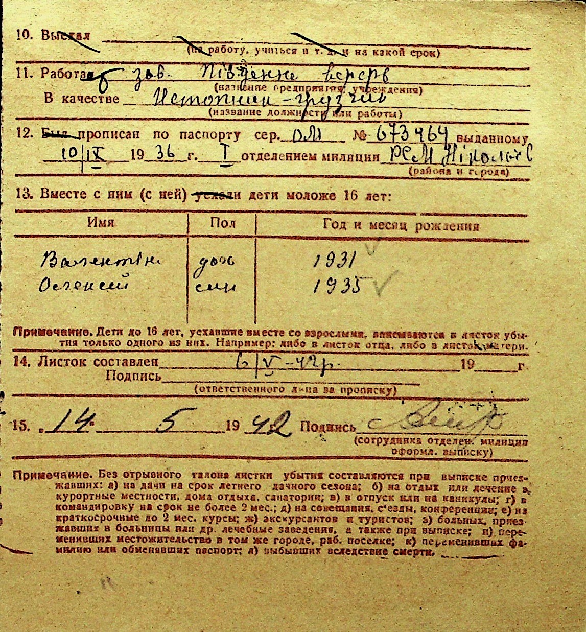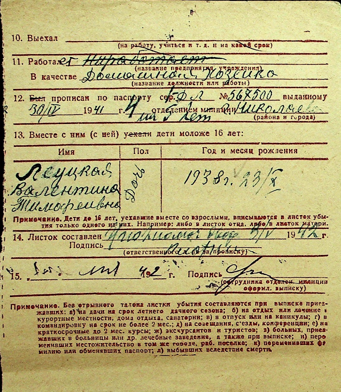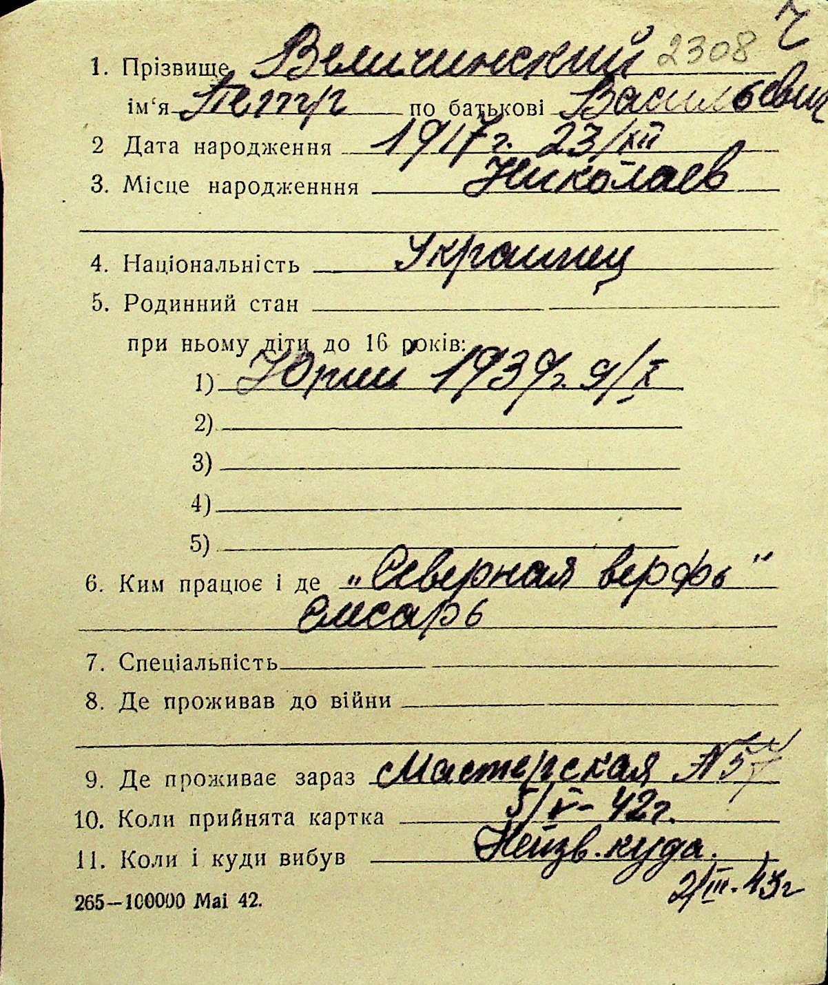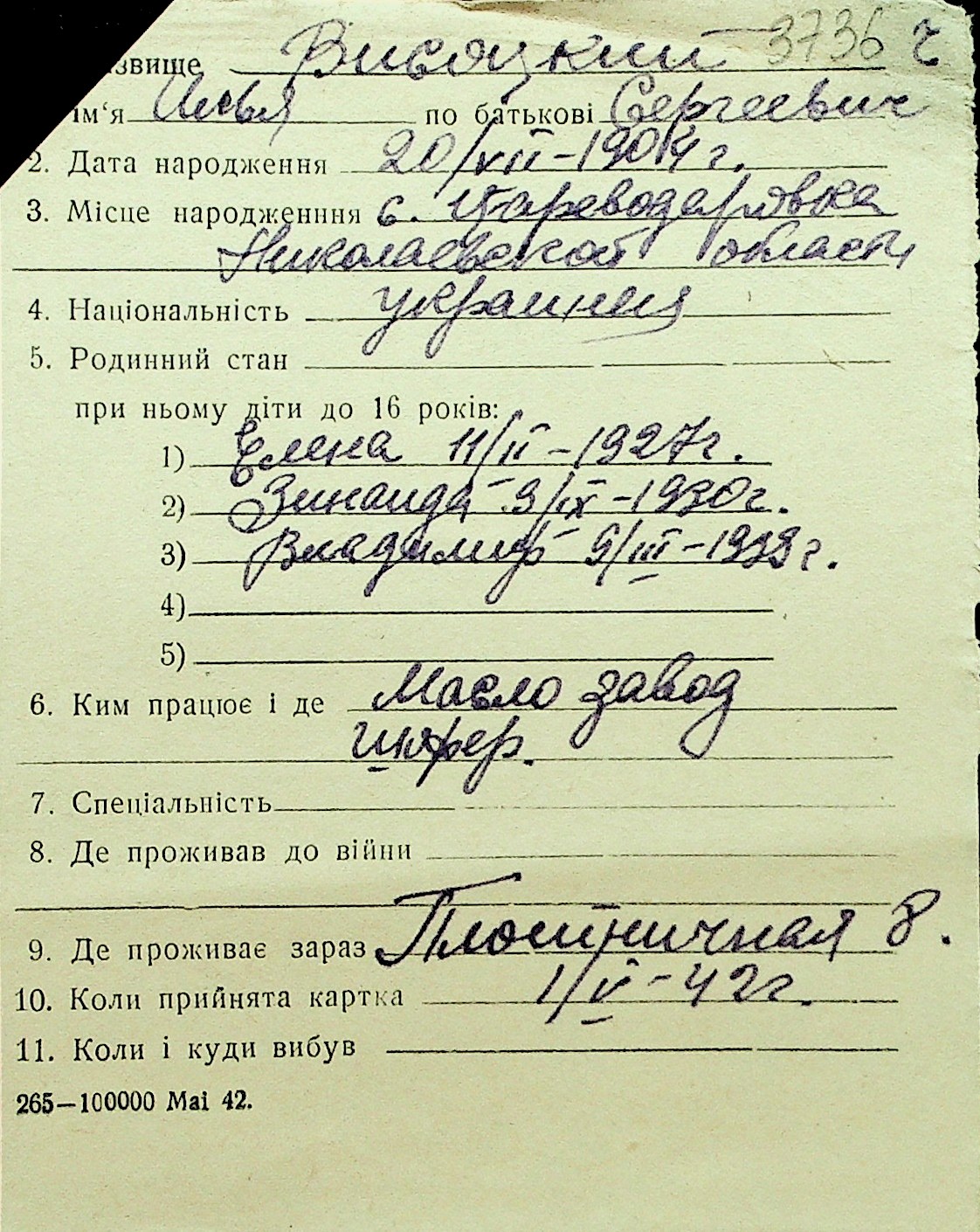 • • Перелік карток до фонду № Н-1016