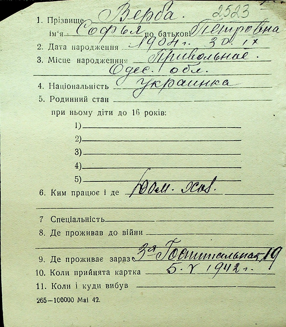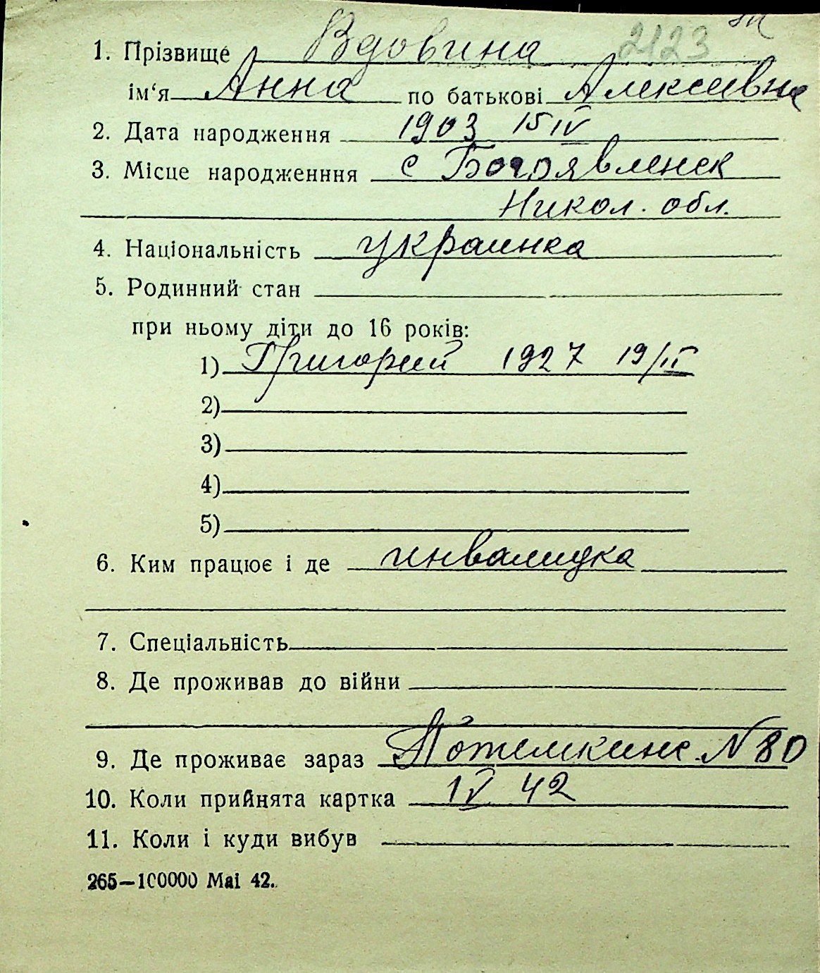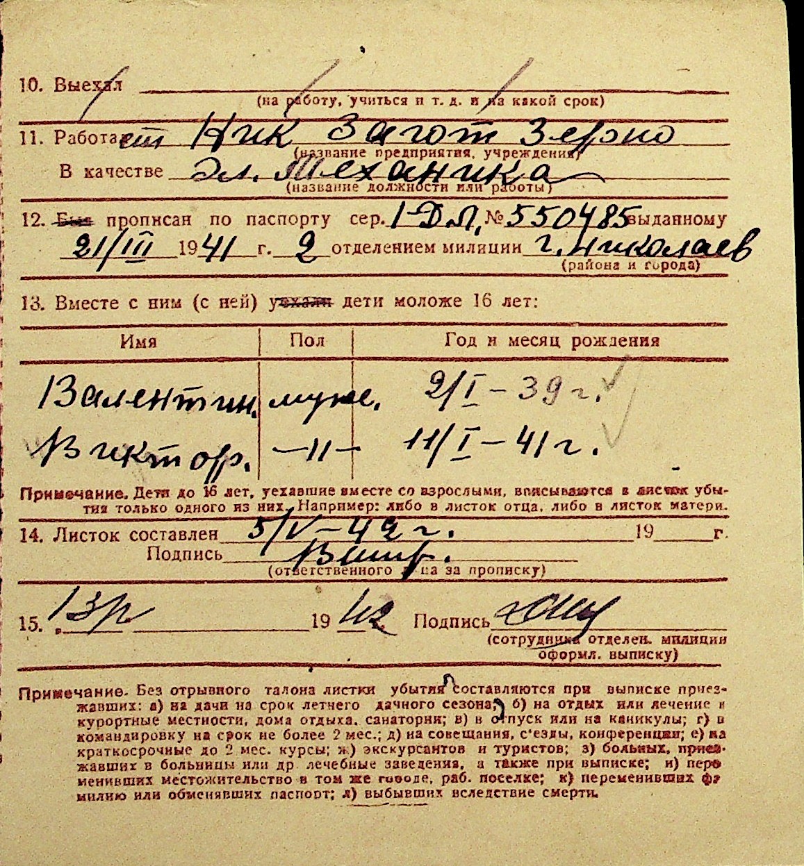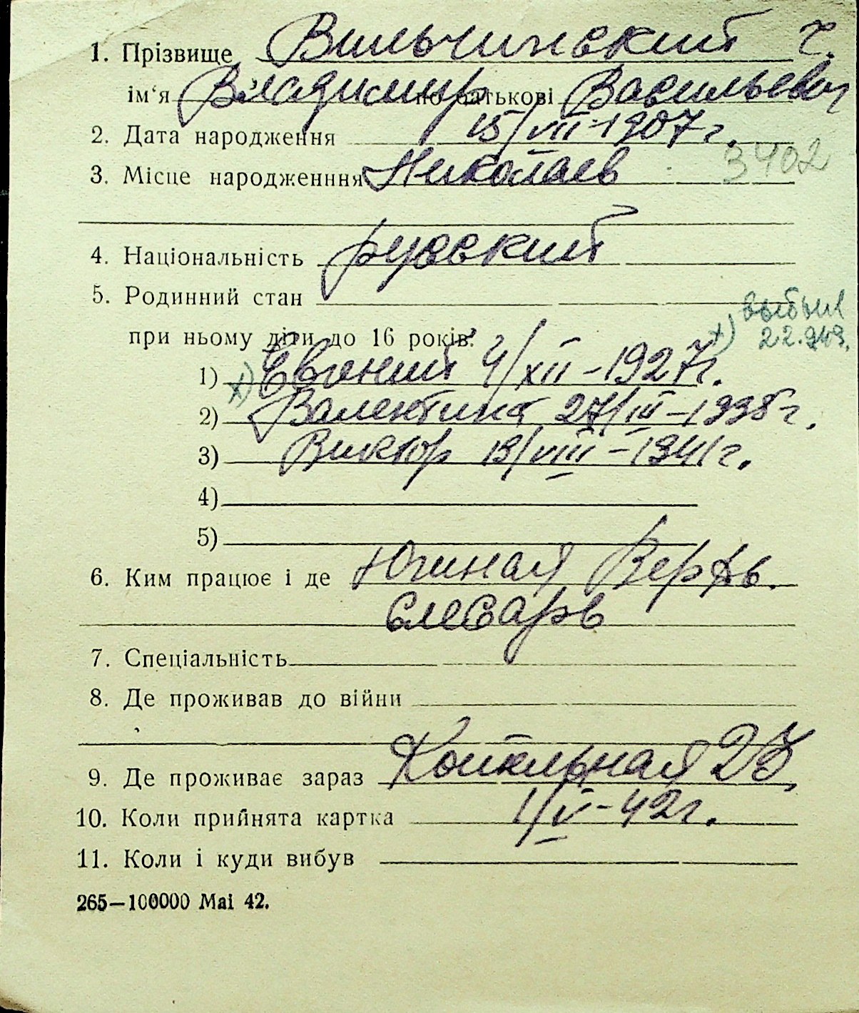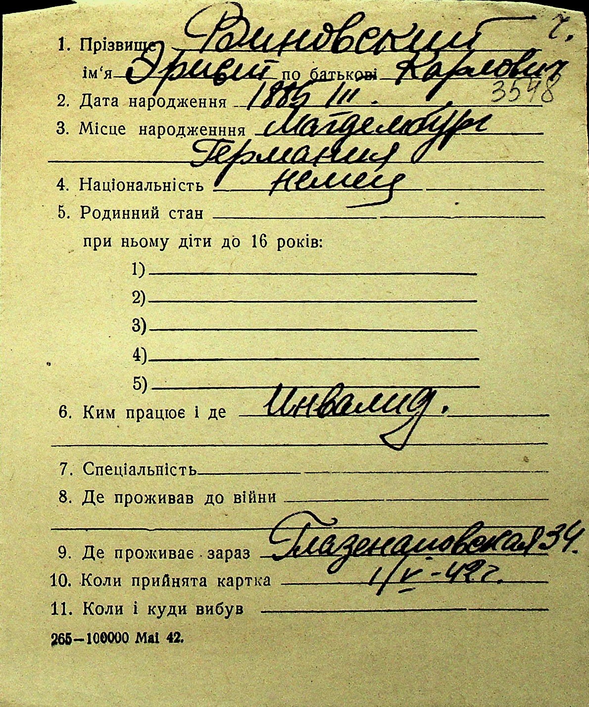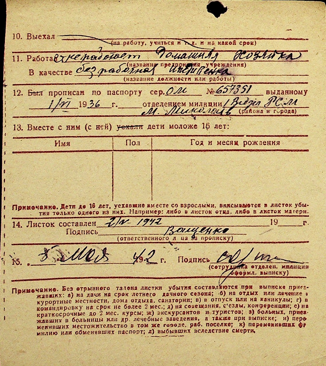 • • Перелік карток до фонду № Н-1016
