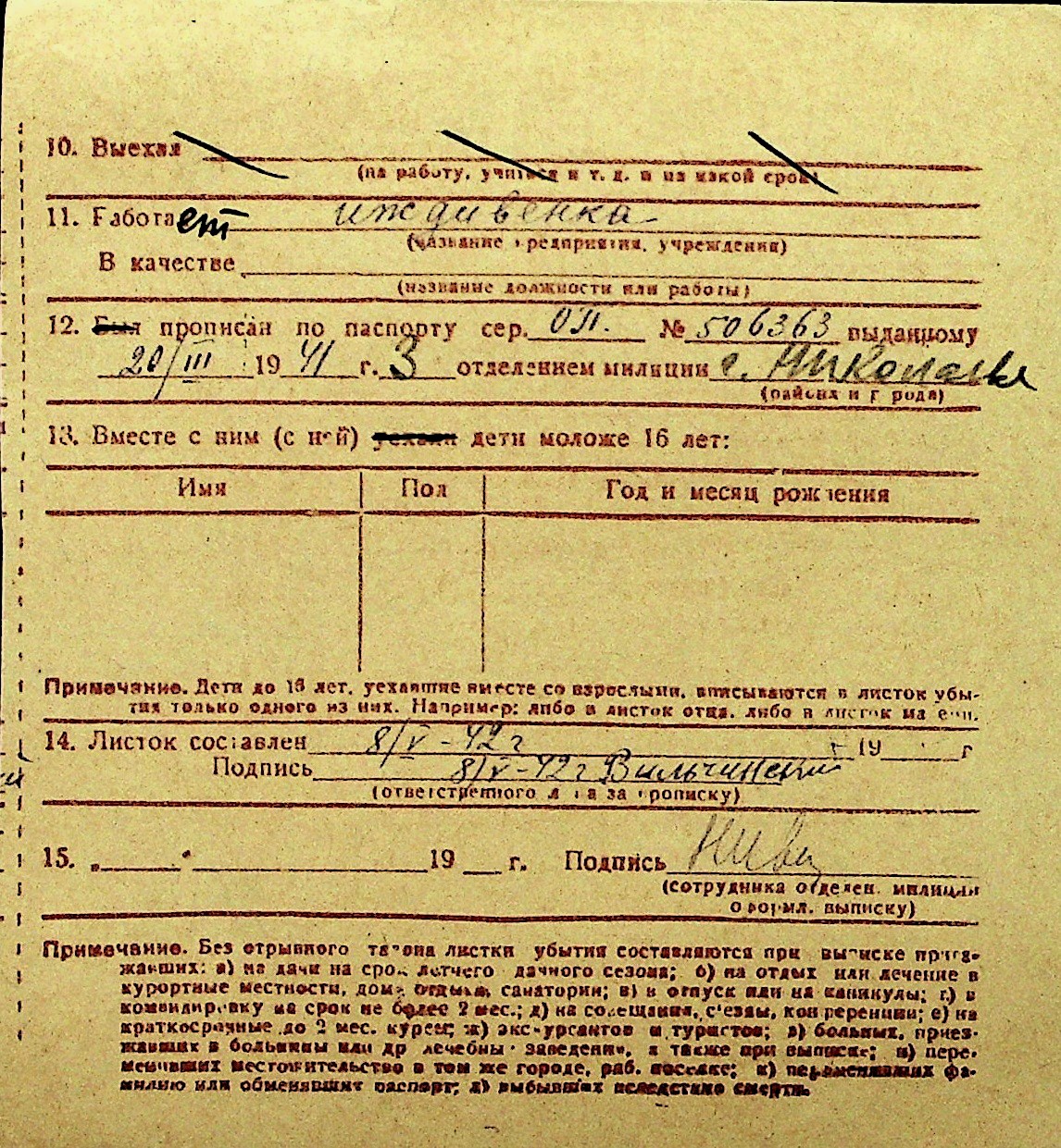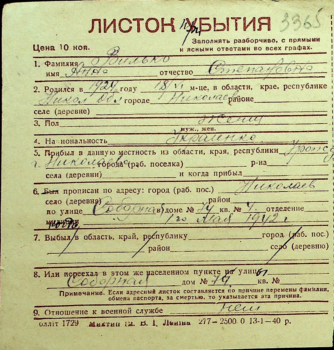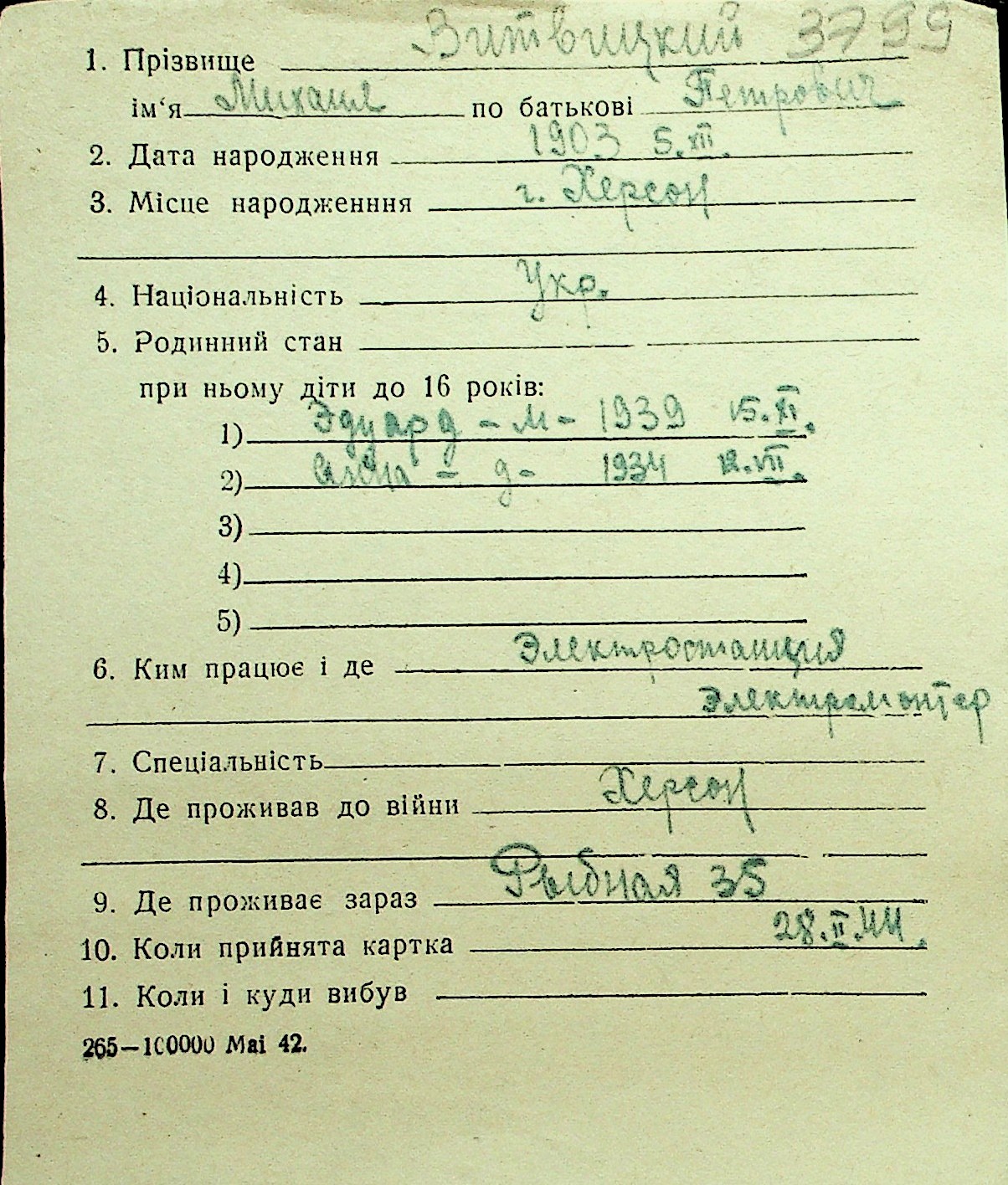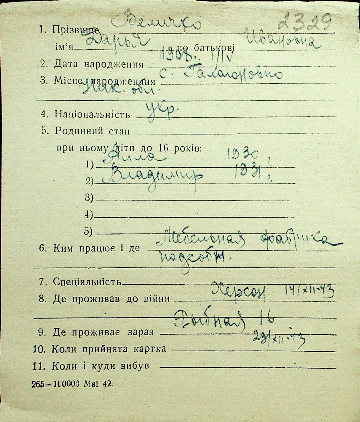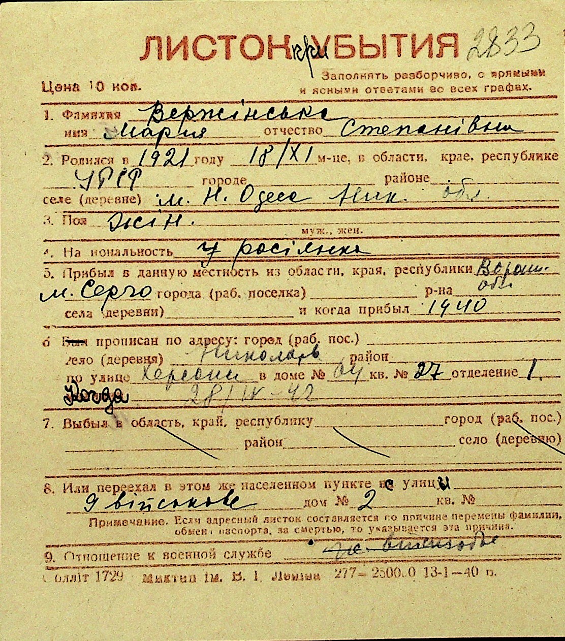 • • Перелік карток до фонду № Н-1016