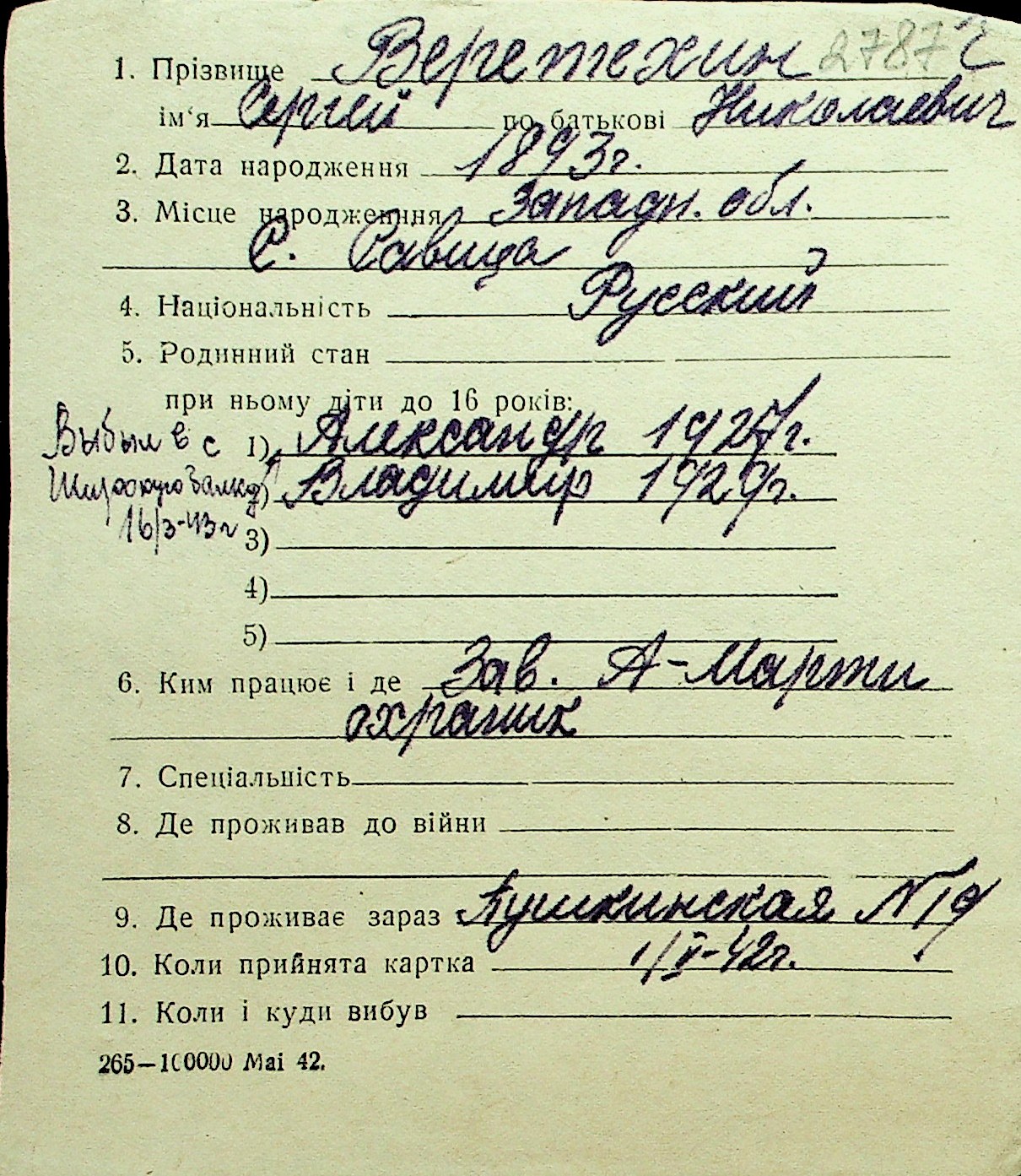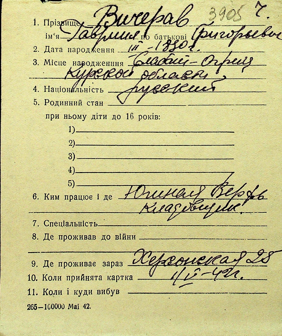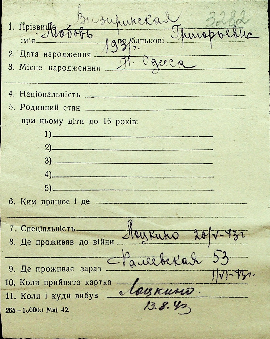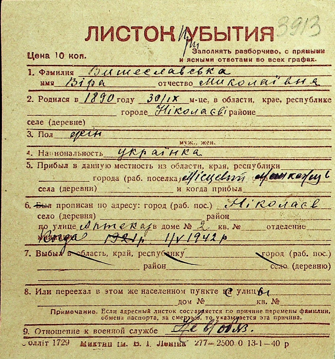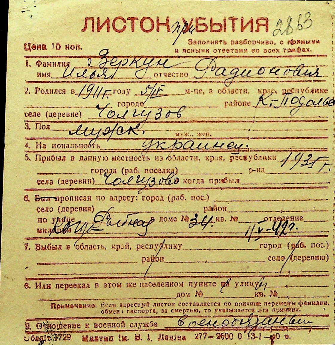 • • Перелік карток до фонду № Н-1016