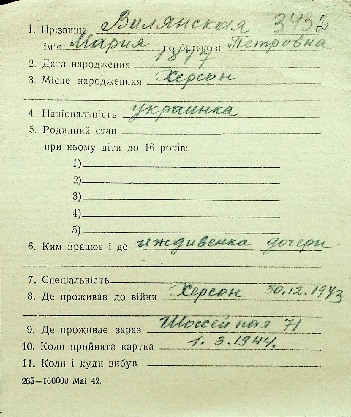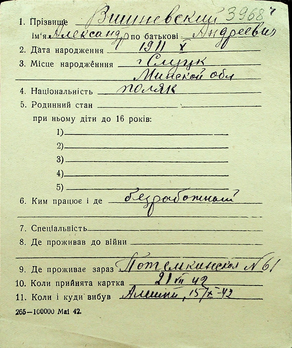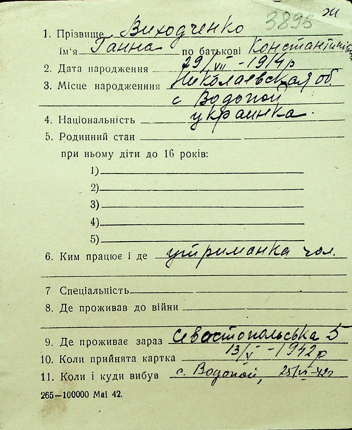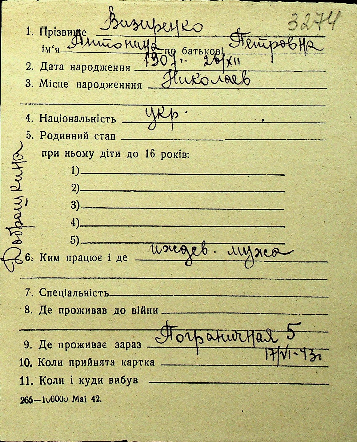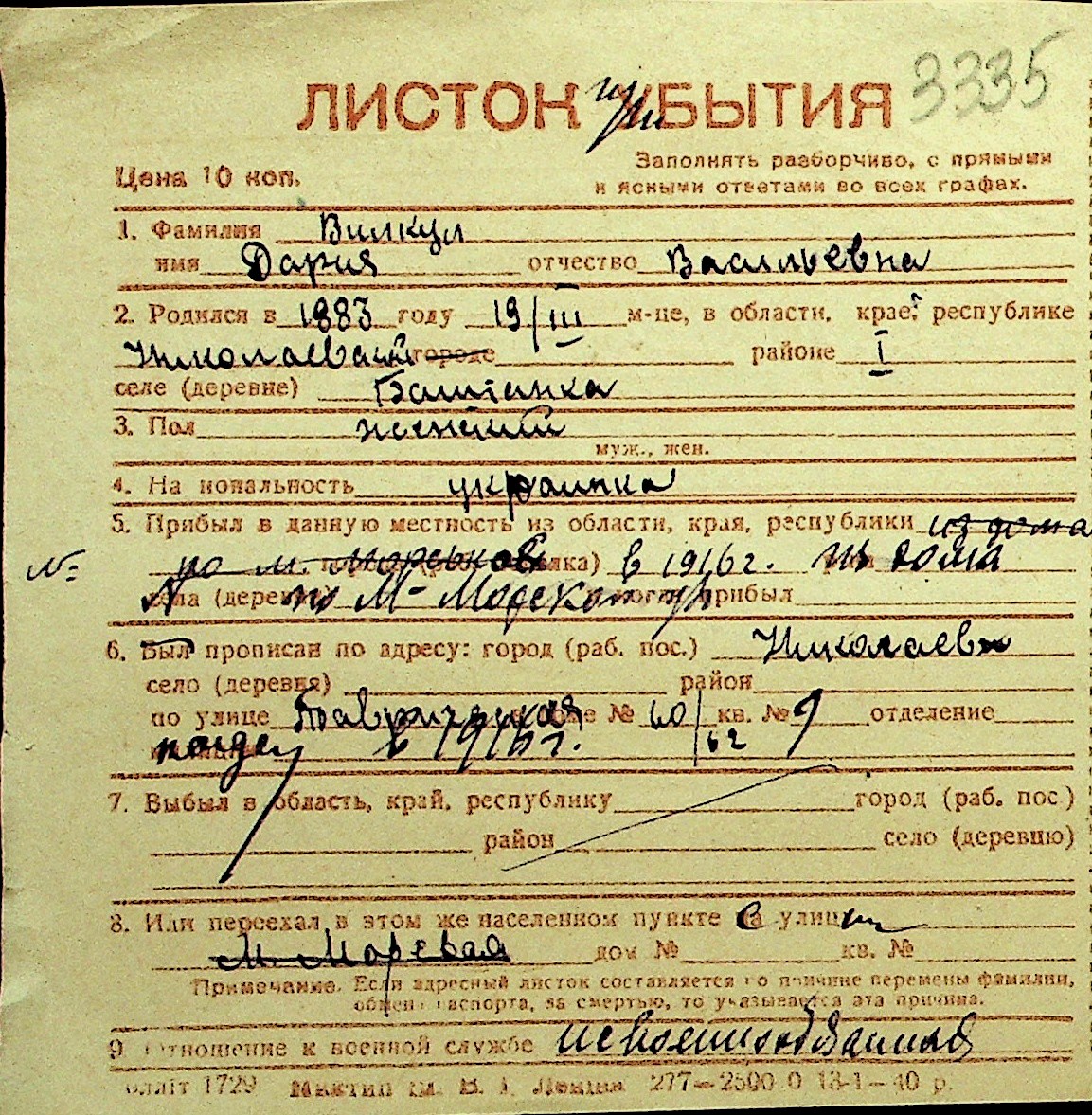 • • Перелік карток до фонду № Н-1016