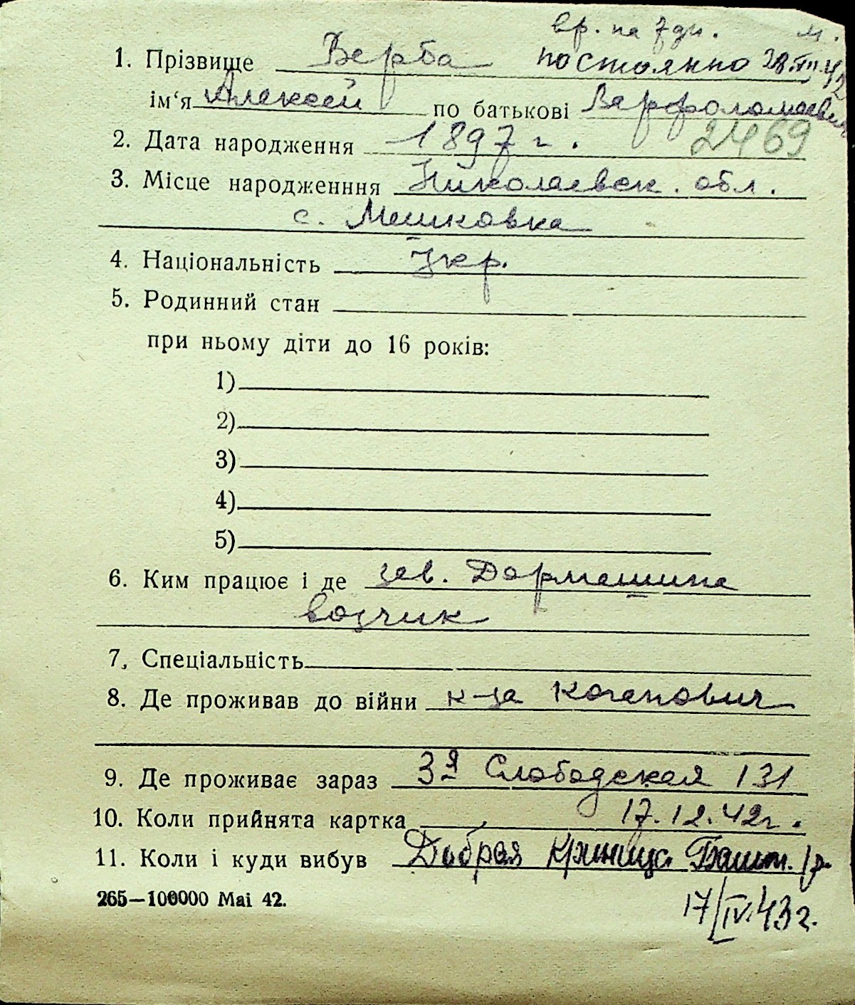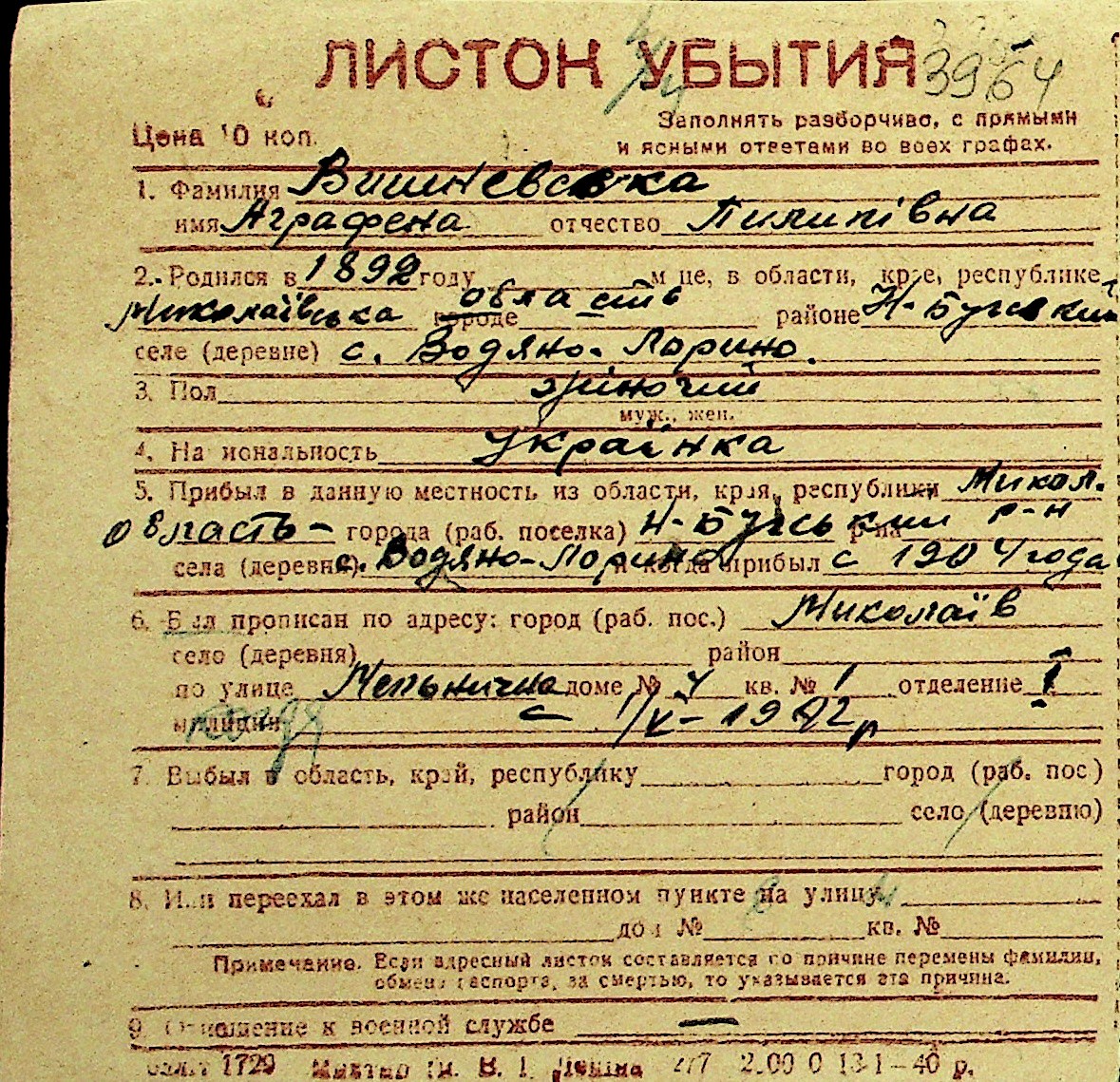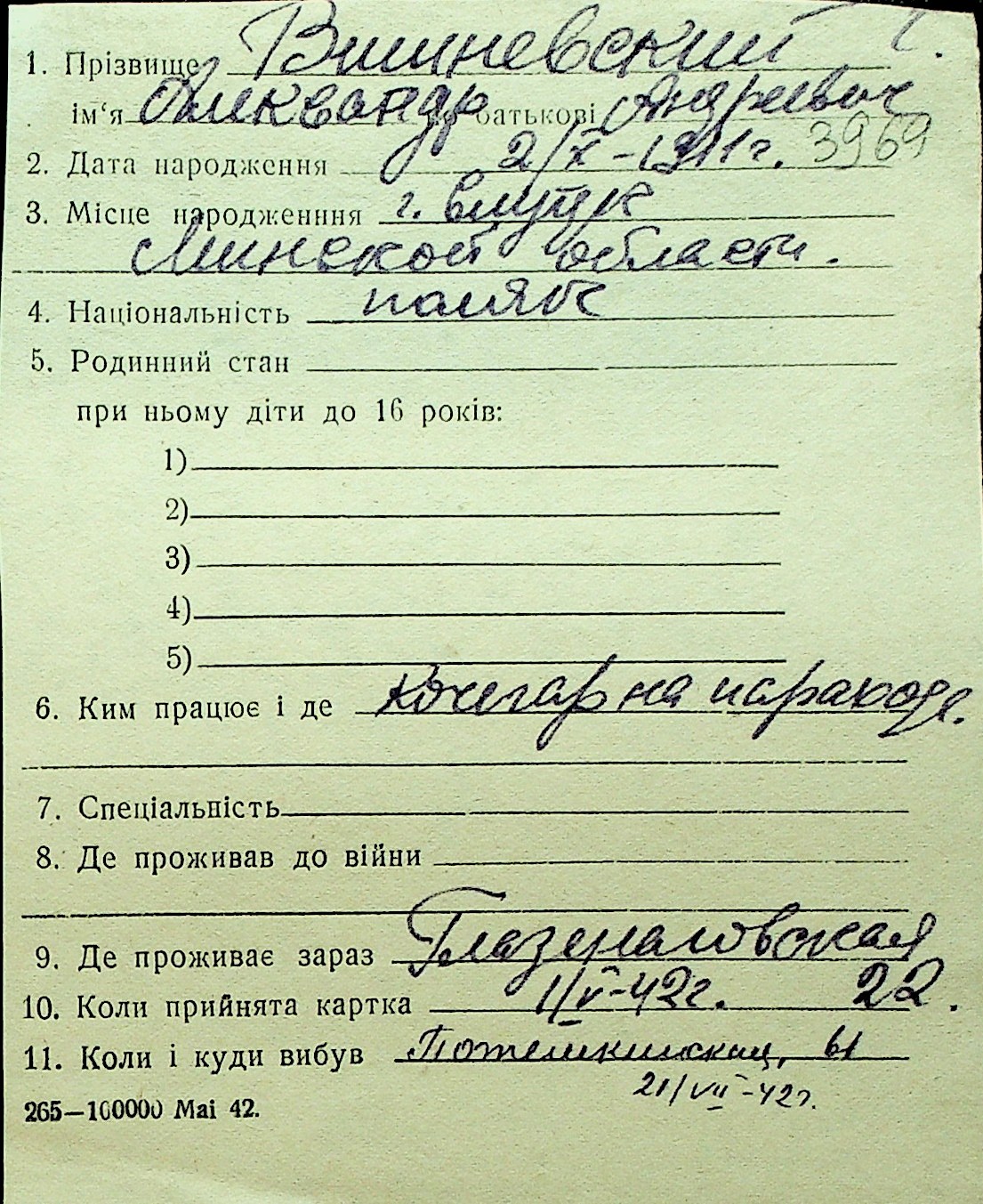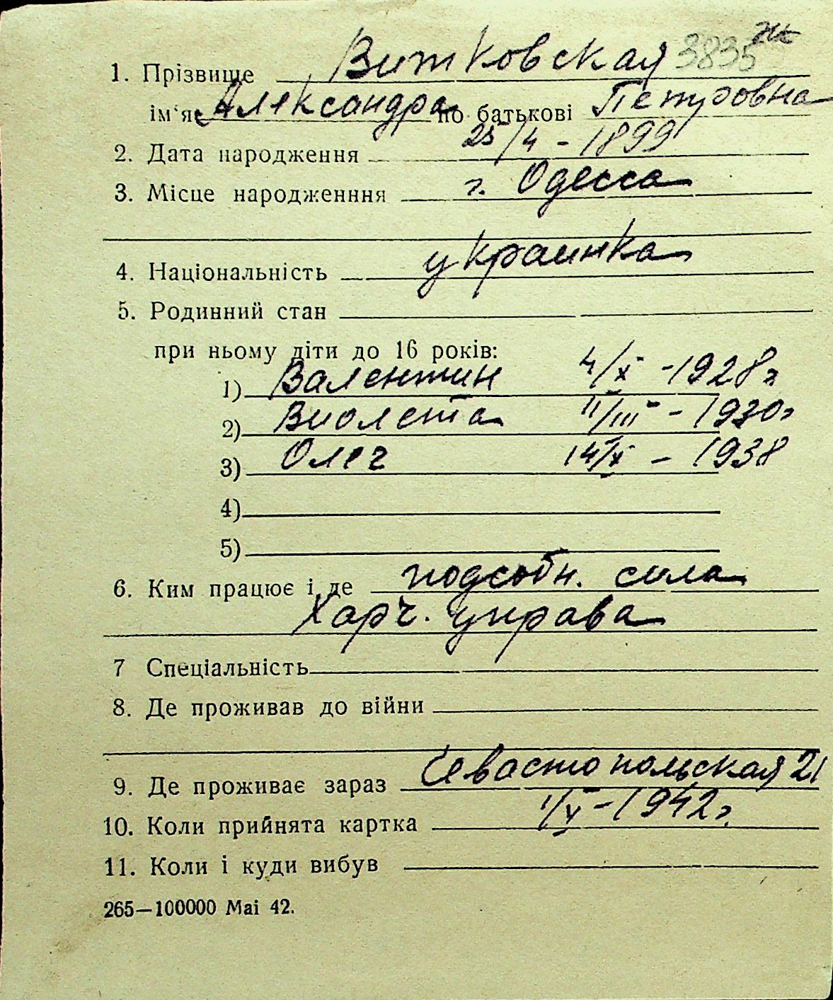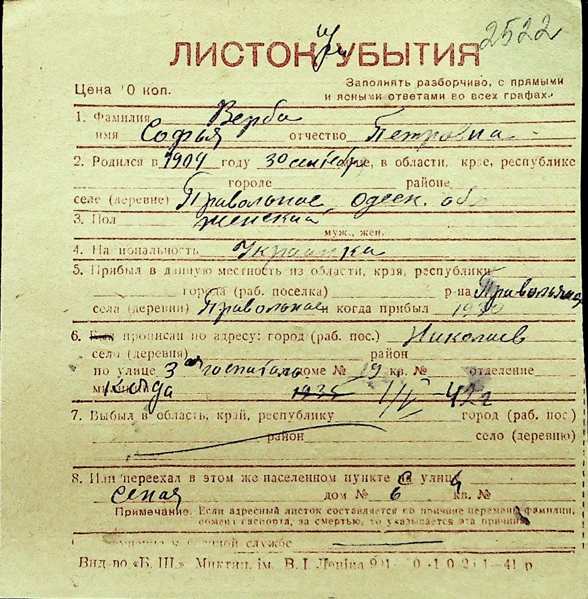 • • Перелік карток до фонду № Н-1016