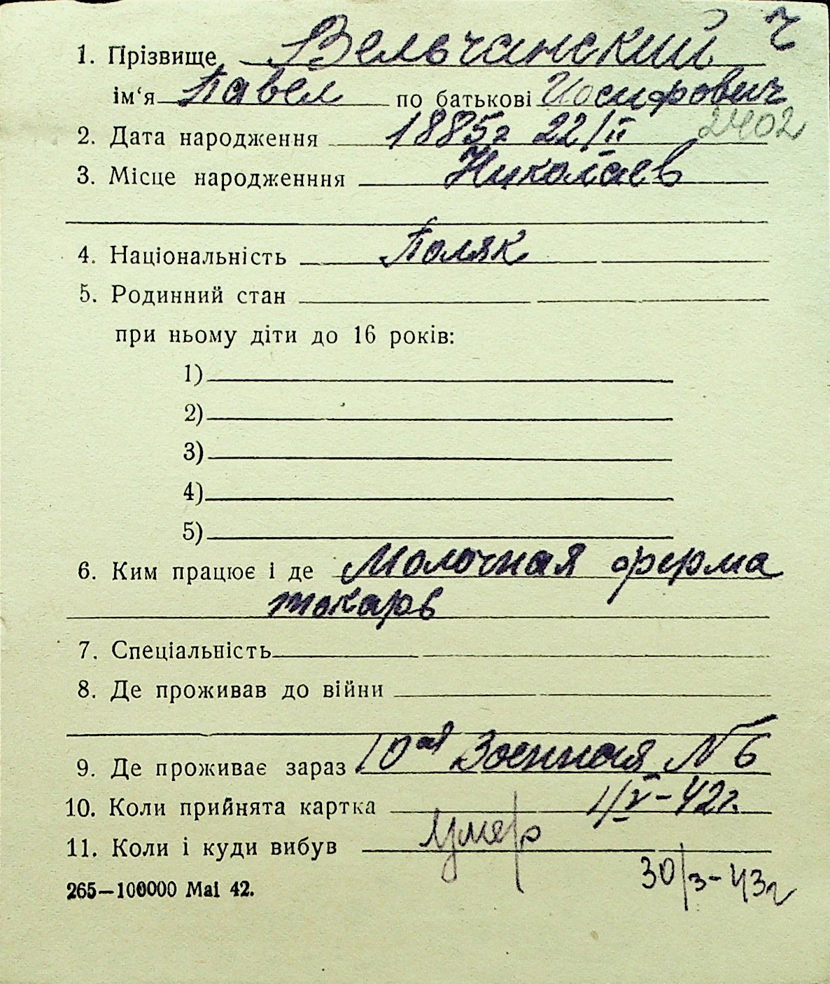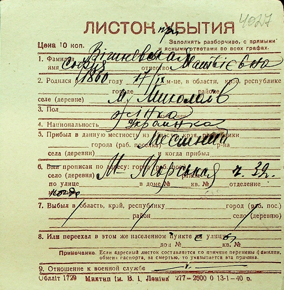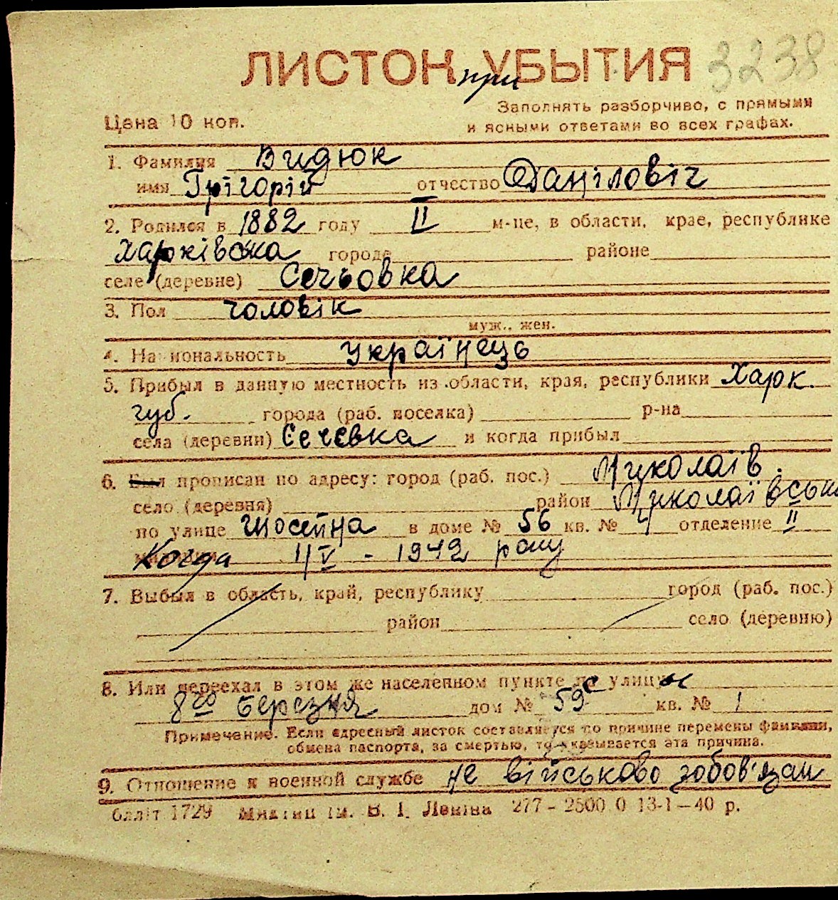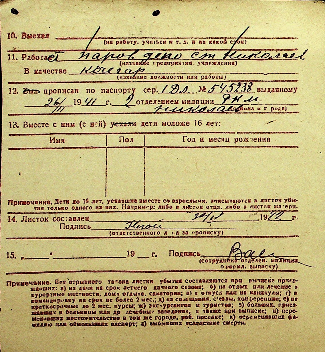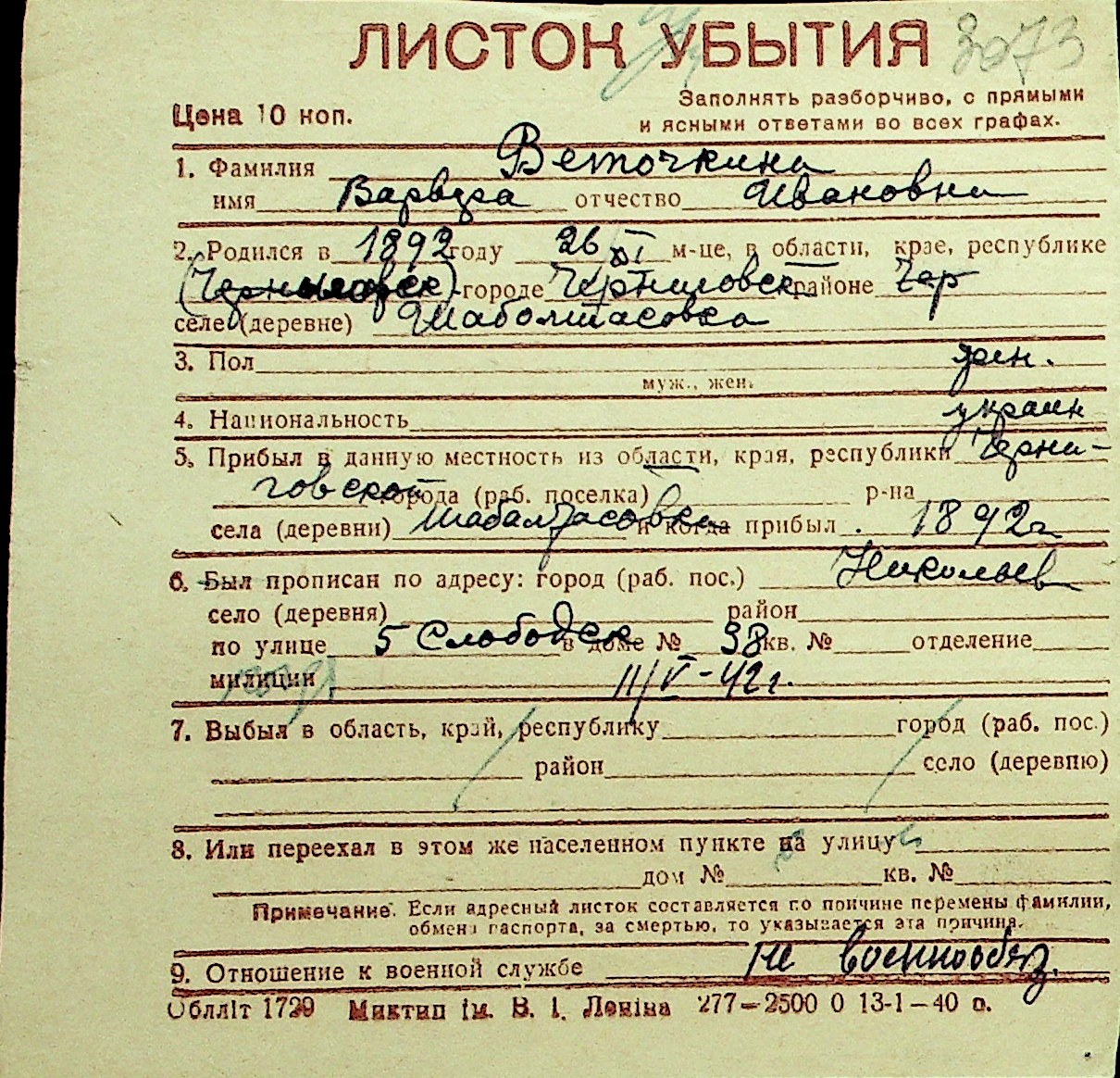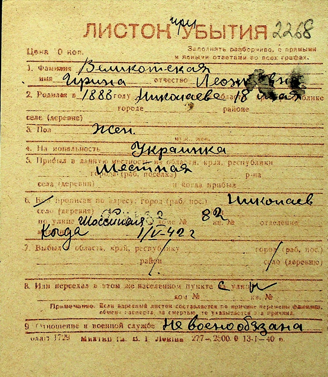 • • Перелік карток до фонду № Н-1016