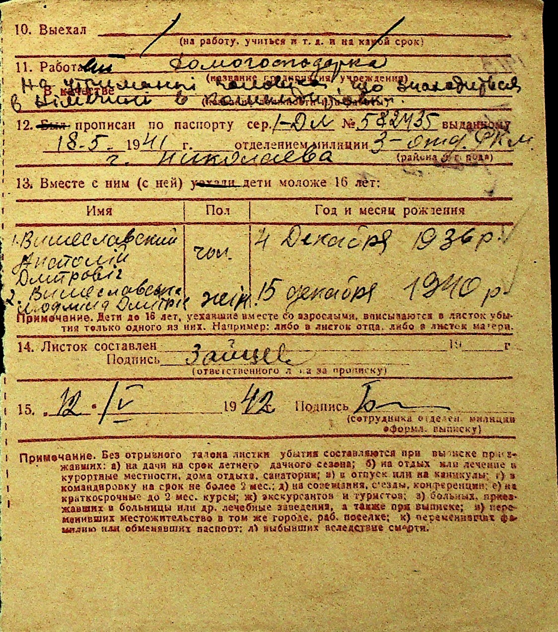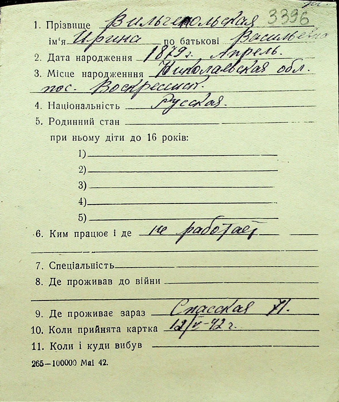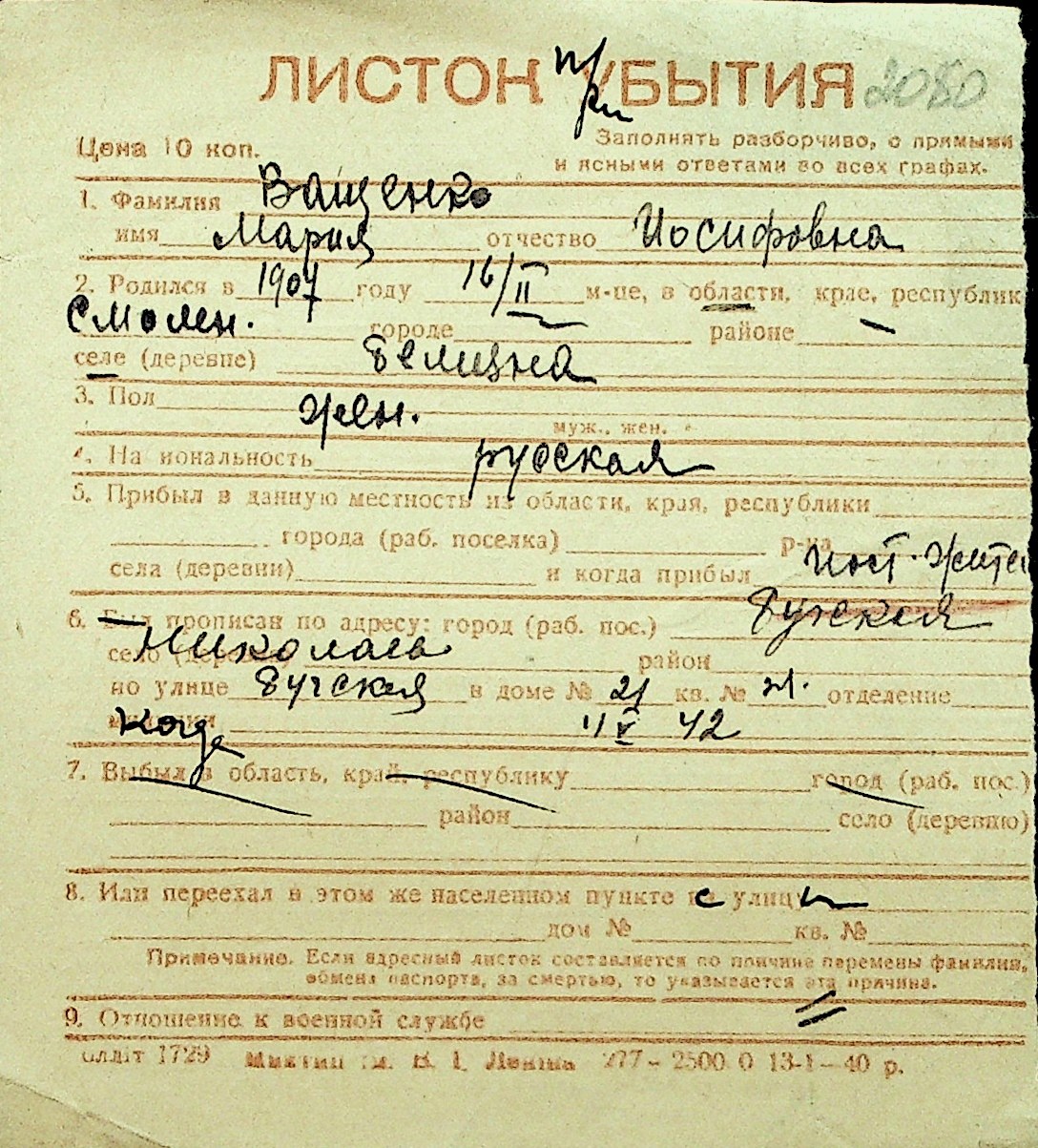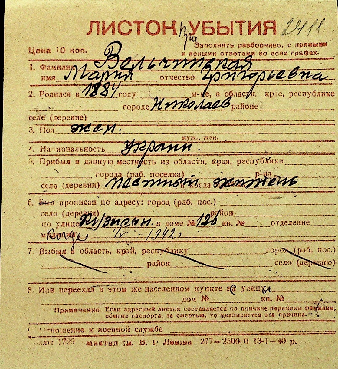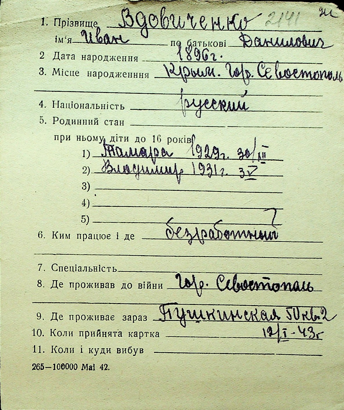 • • Перелік карток до фонду № Н-1016