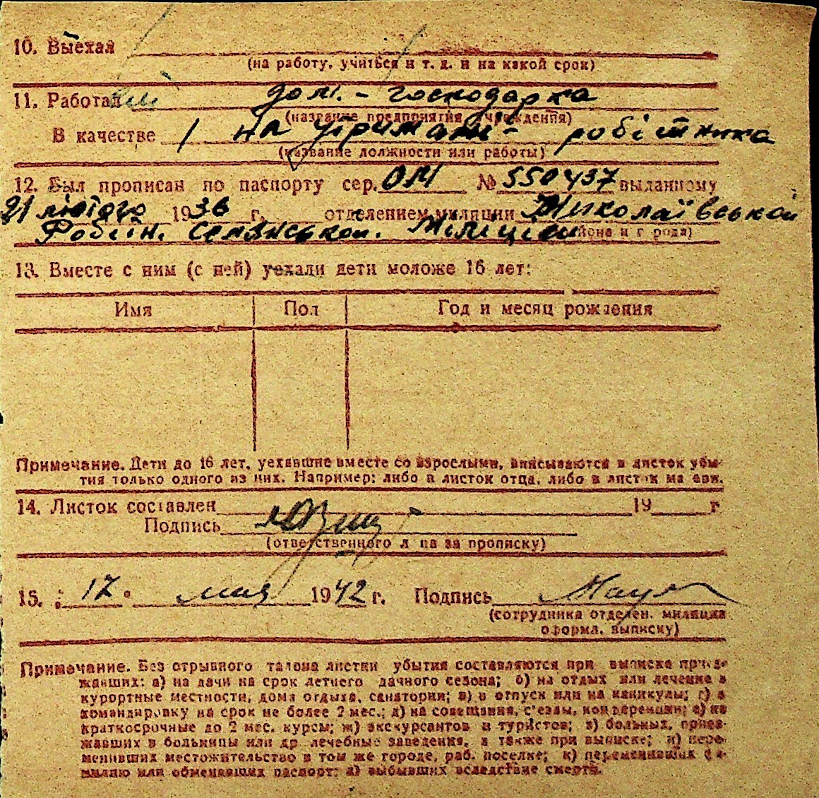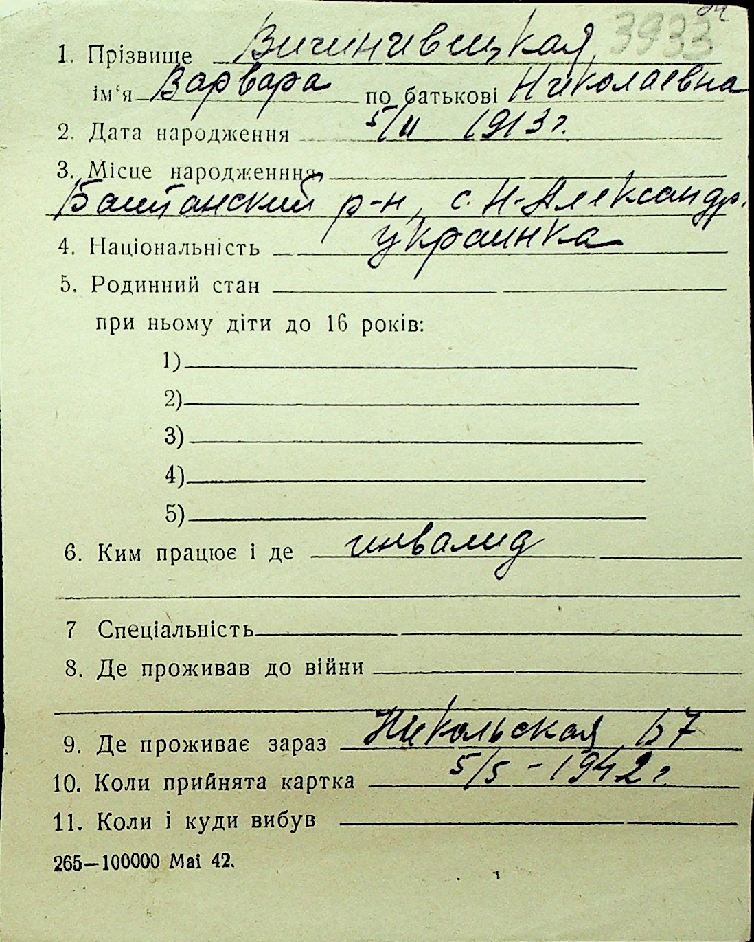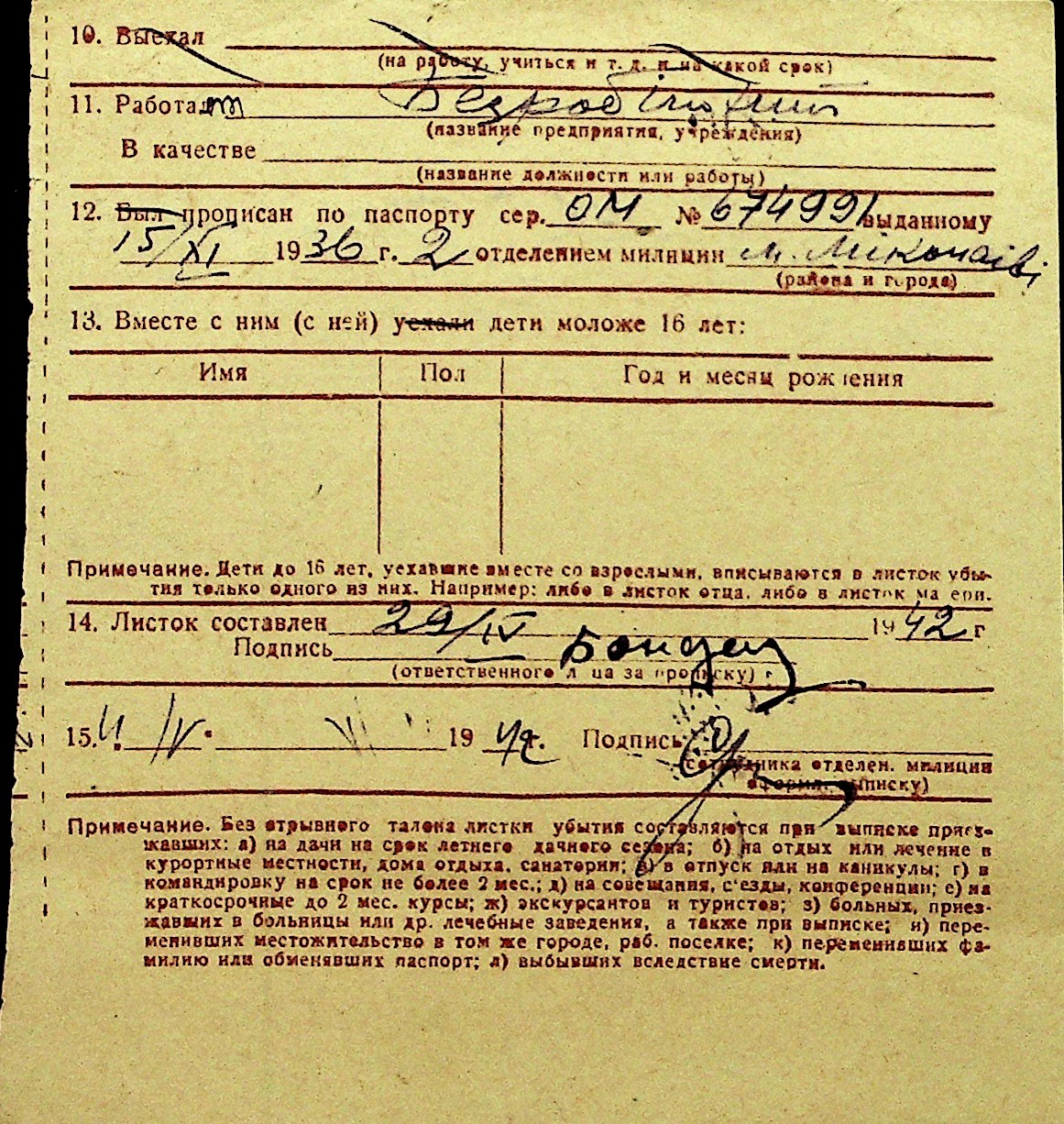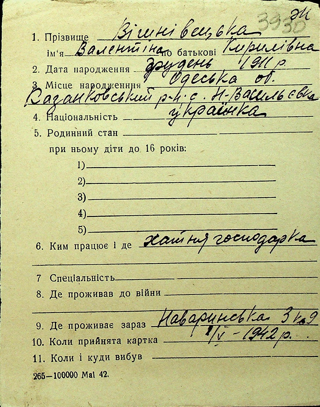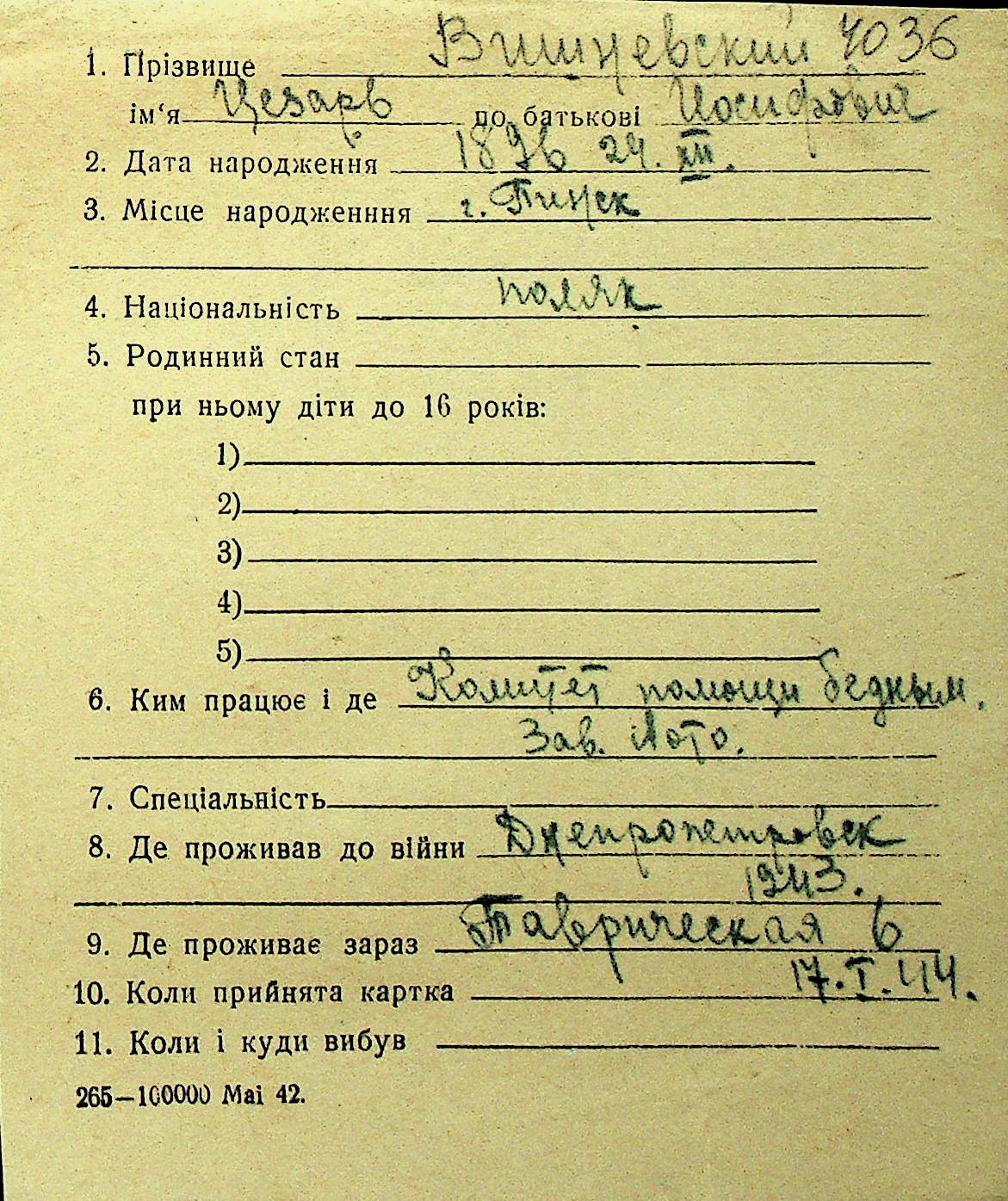 • • Перелік карток до фонду № Н-1016