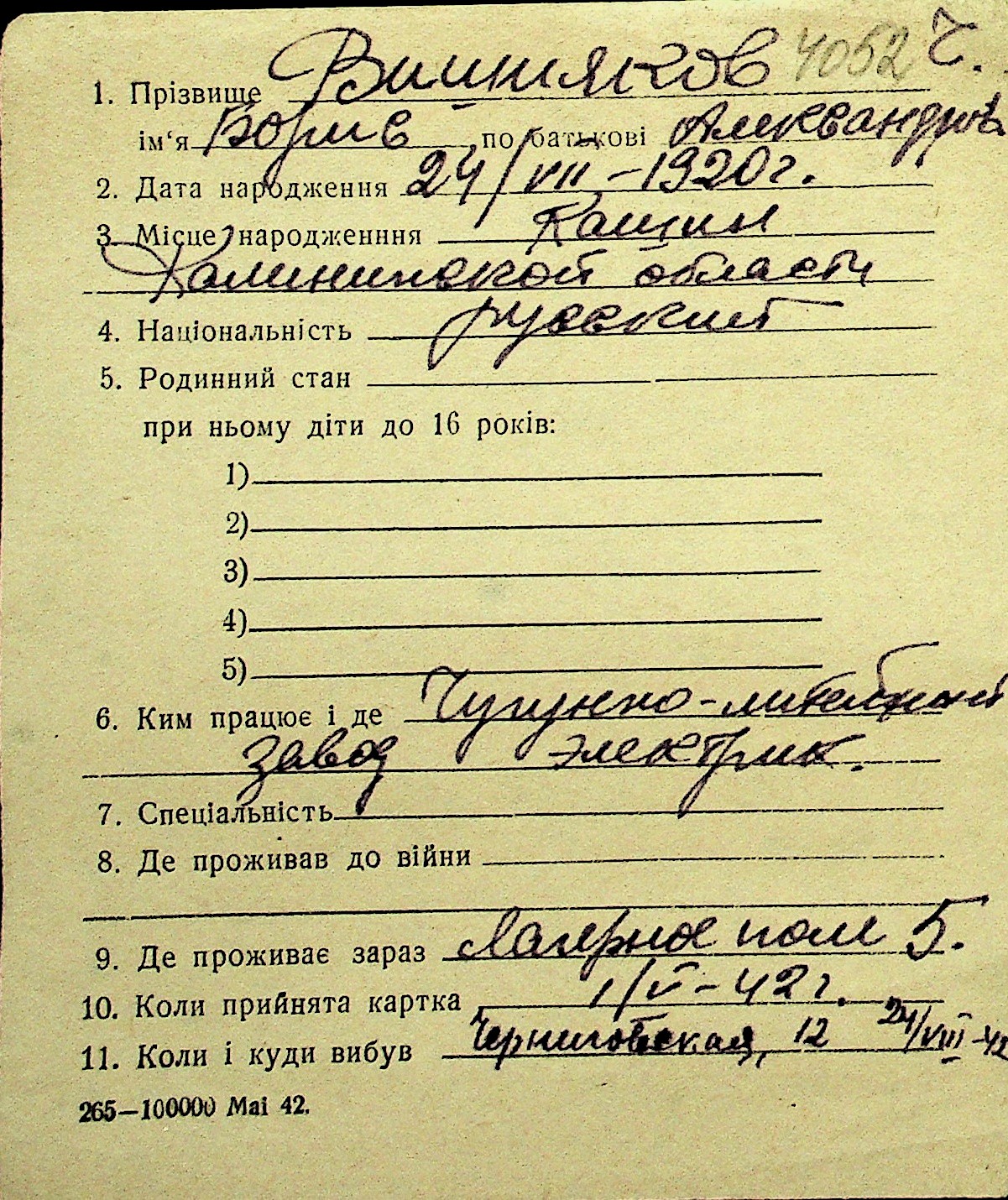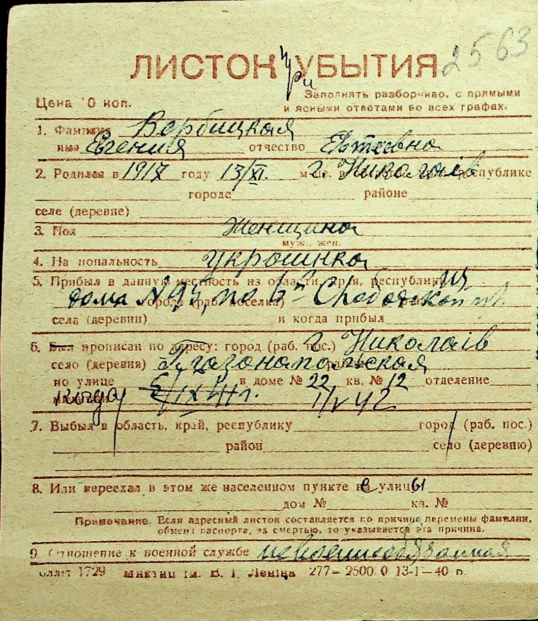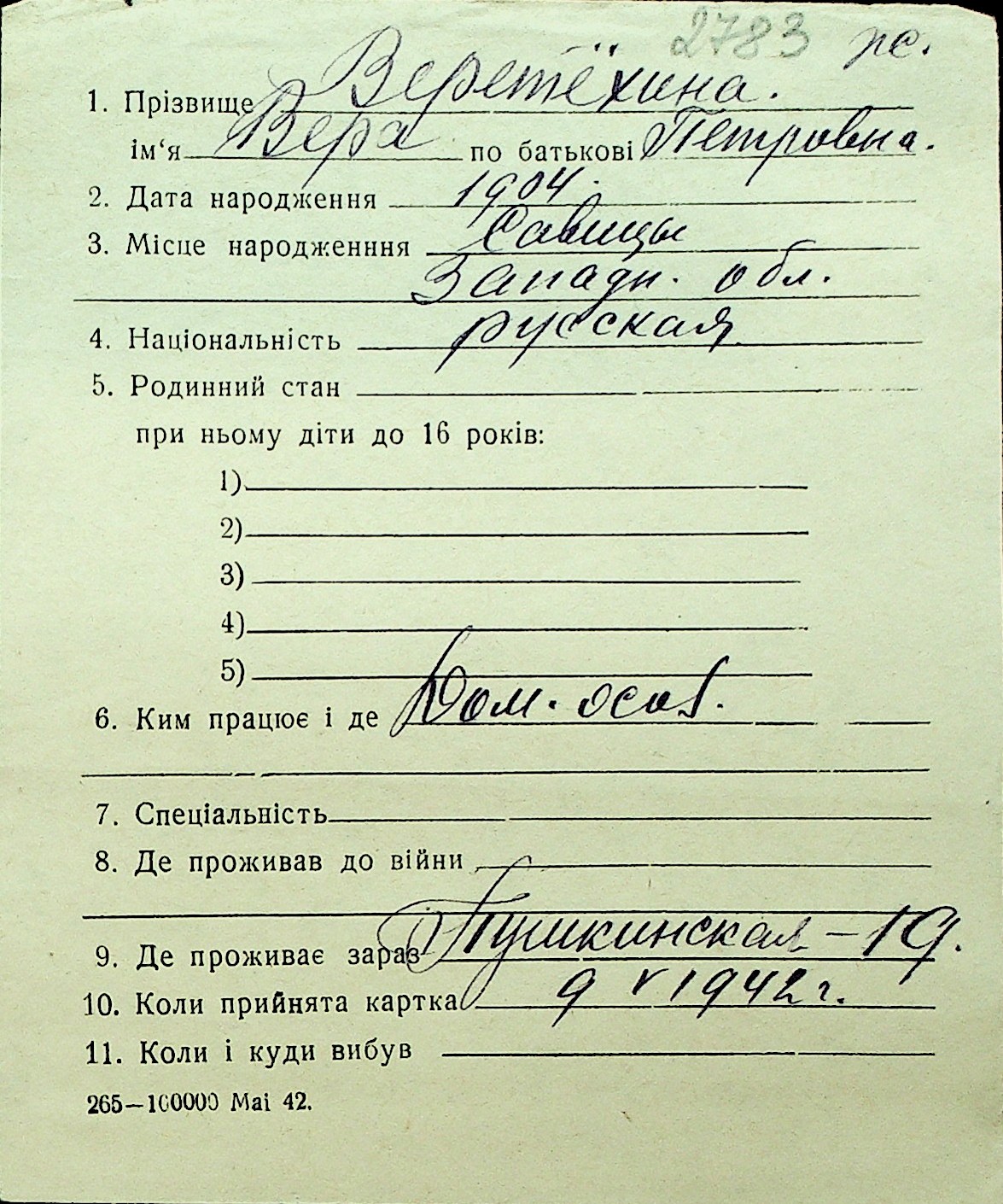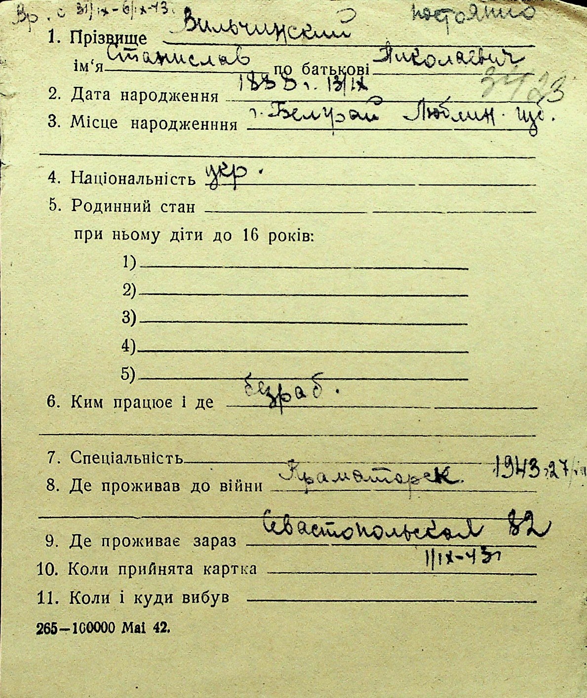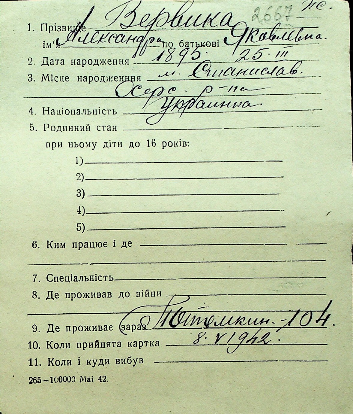 • • Перелік карток до фонду № Н-1016