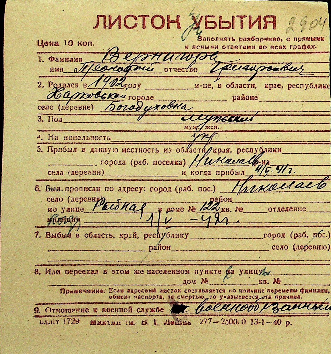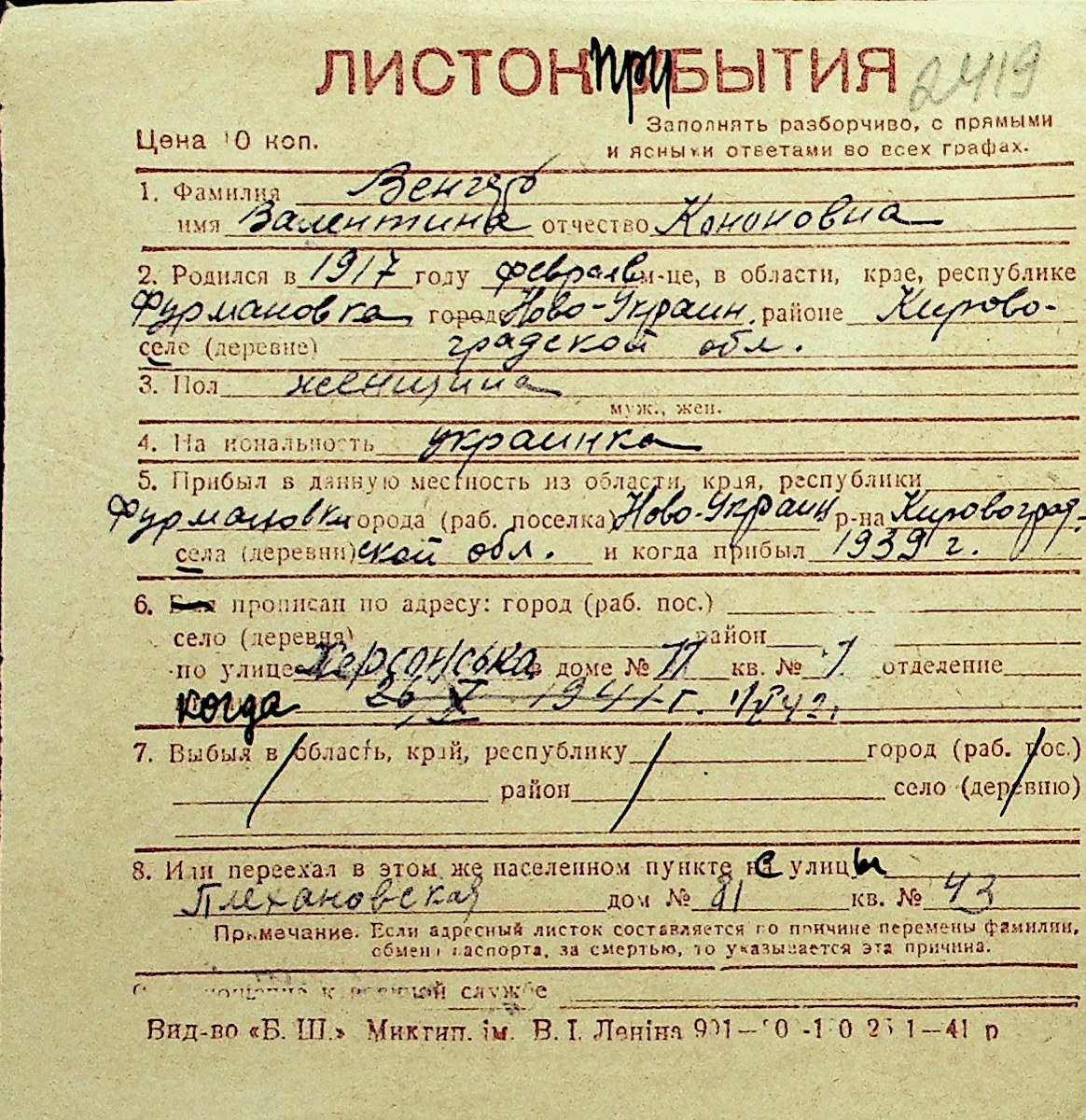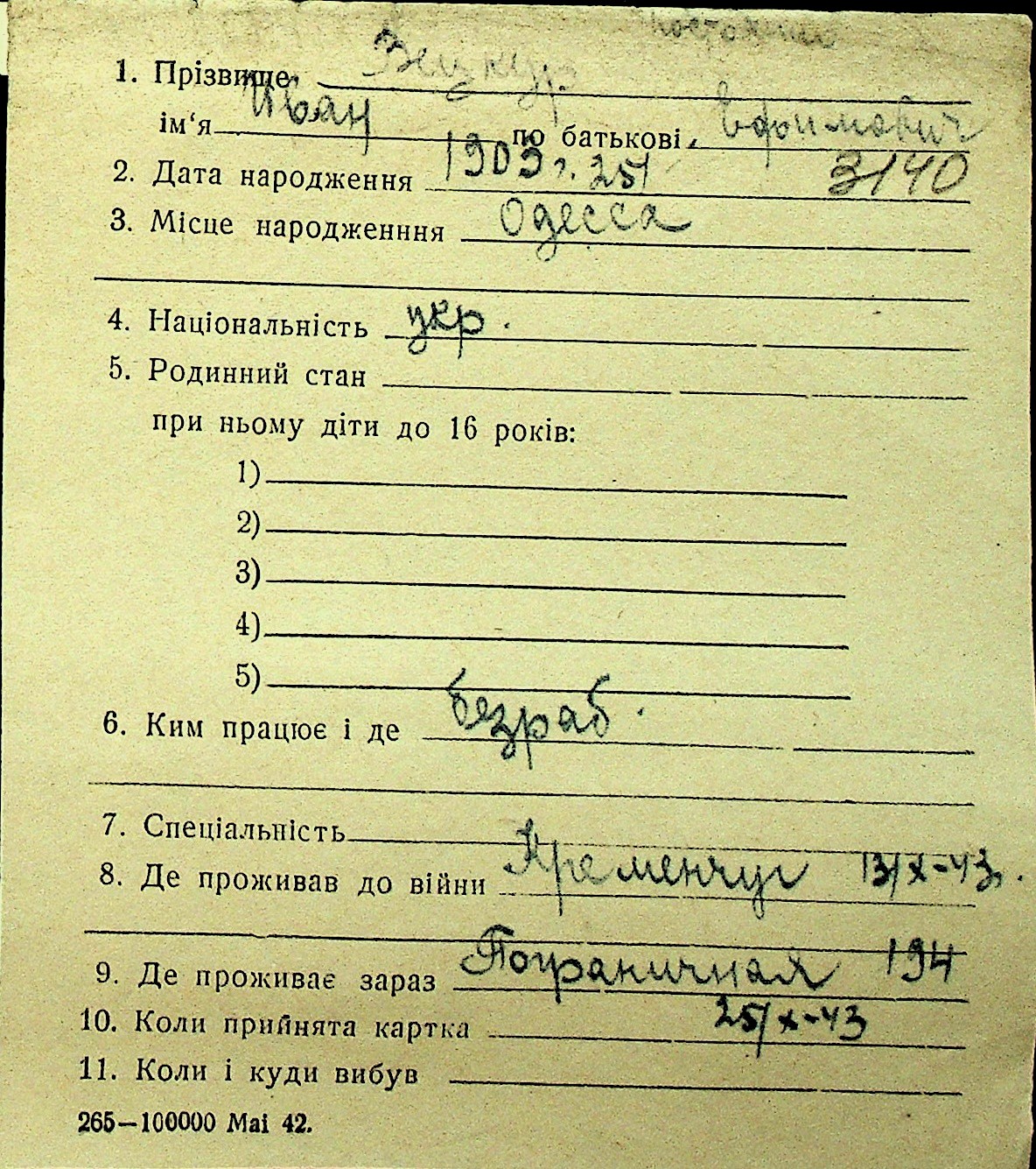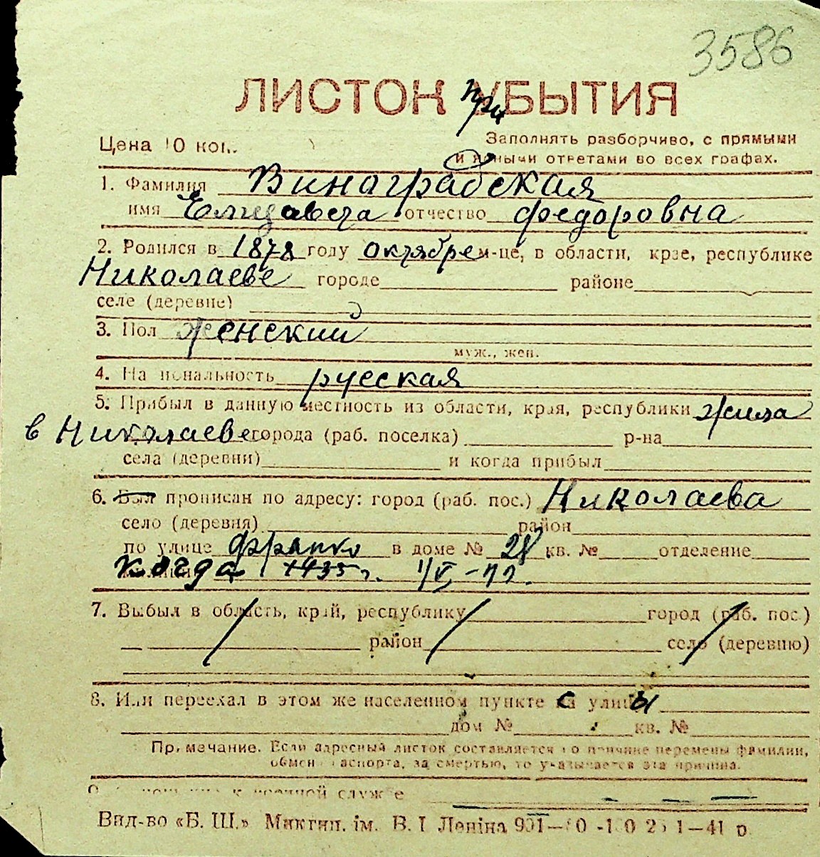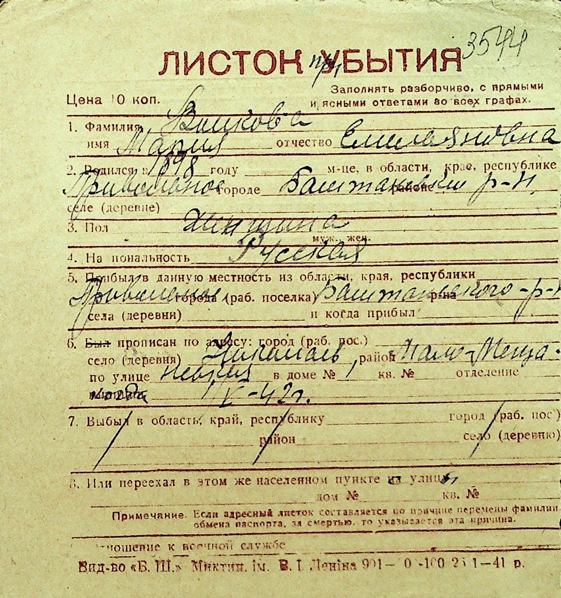 • • Перелік карток до фонду № Н-1016