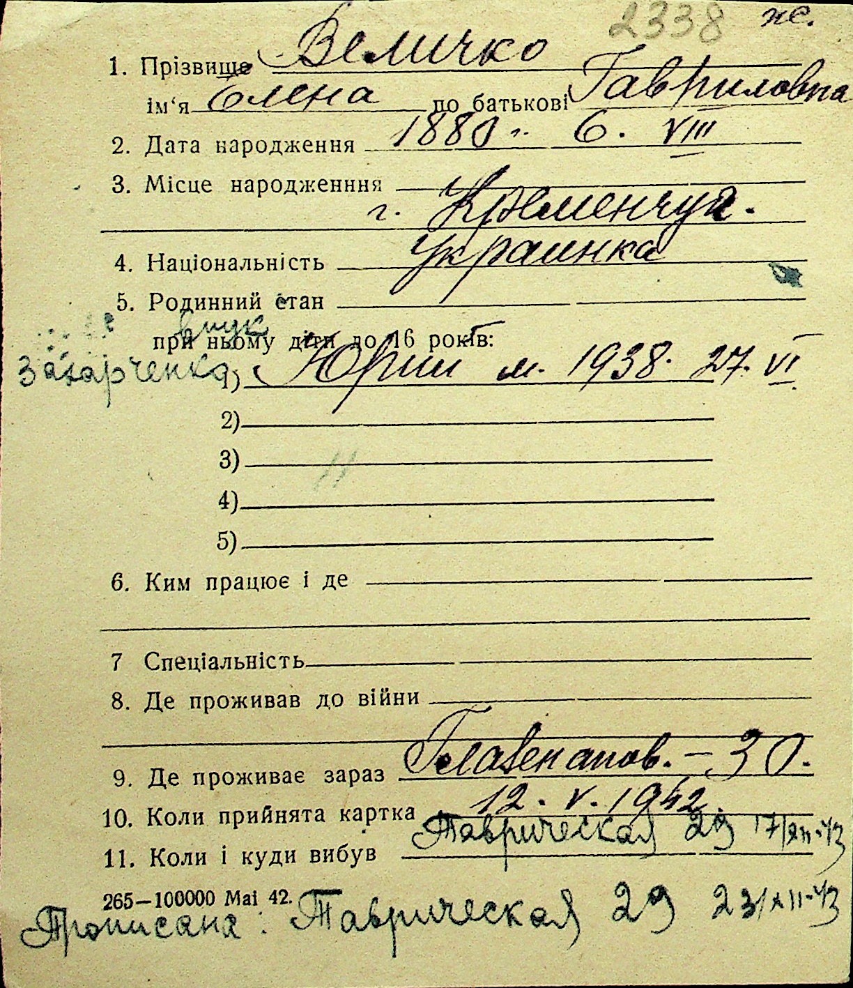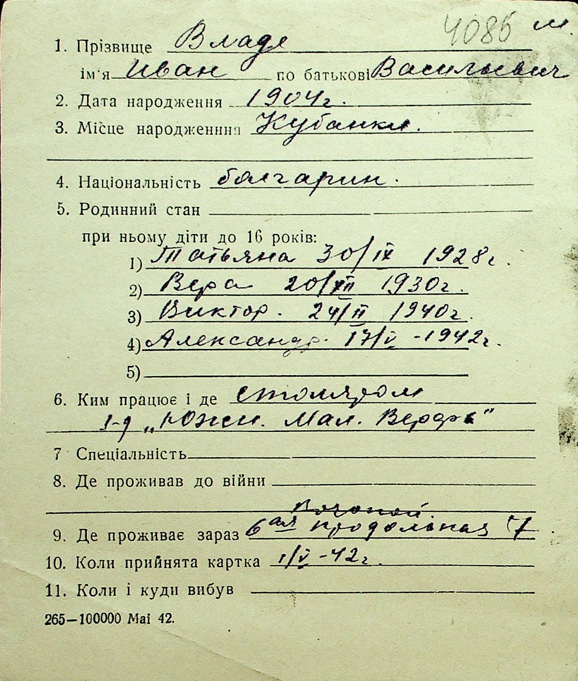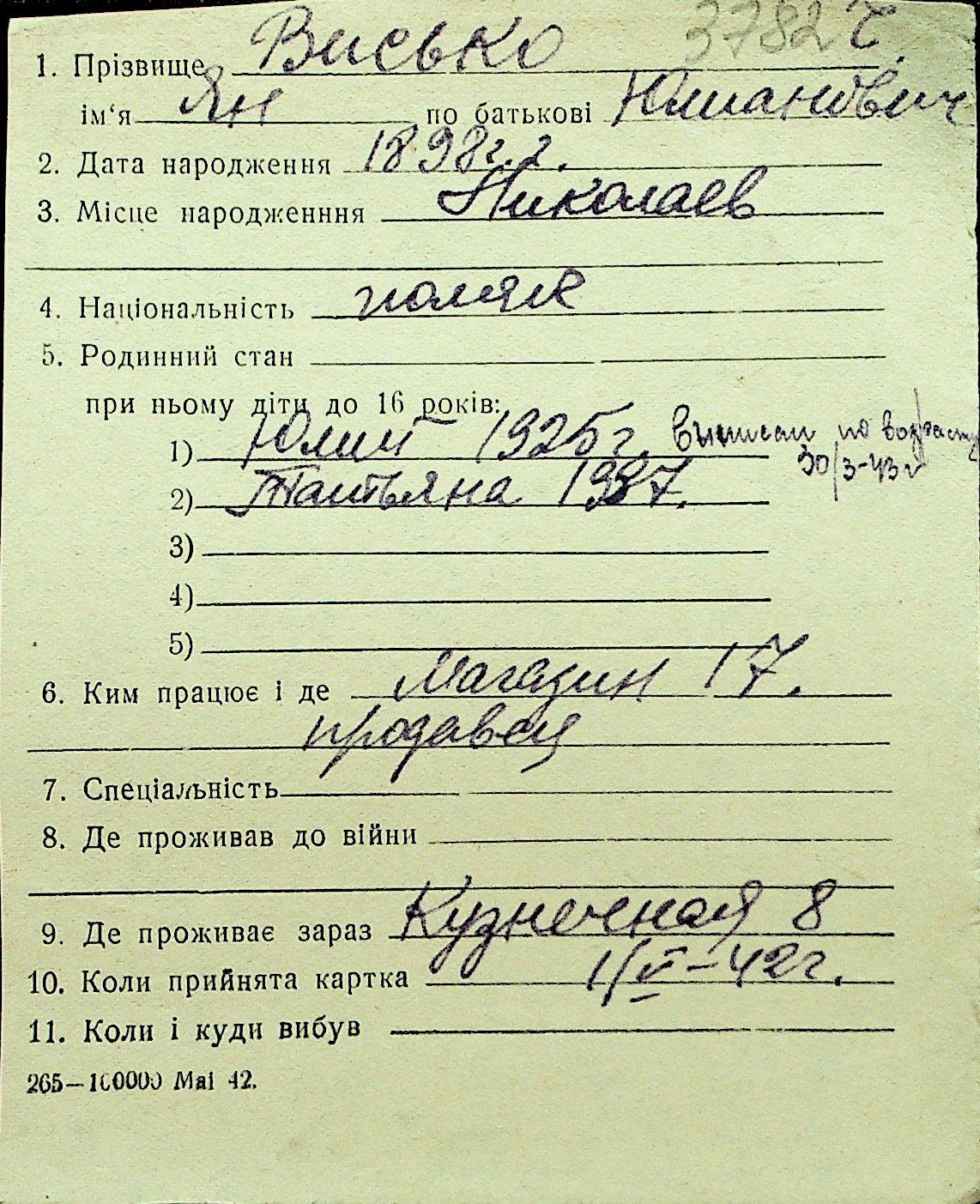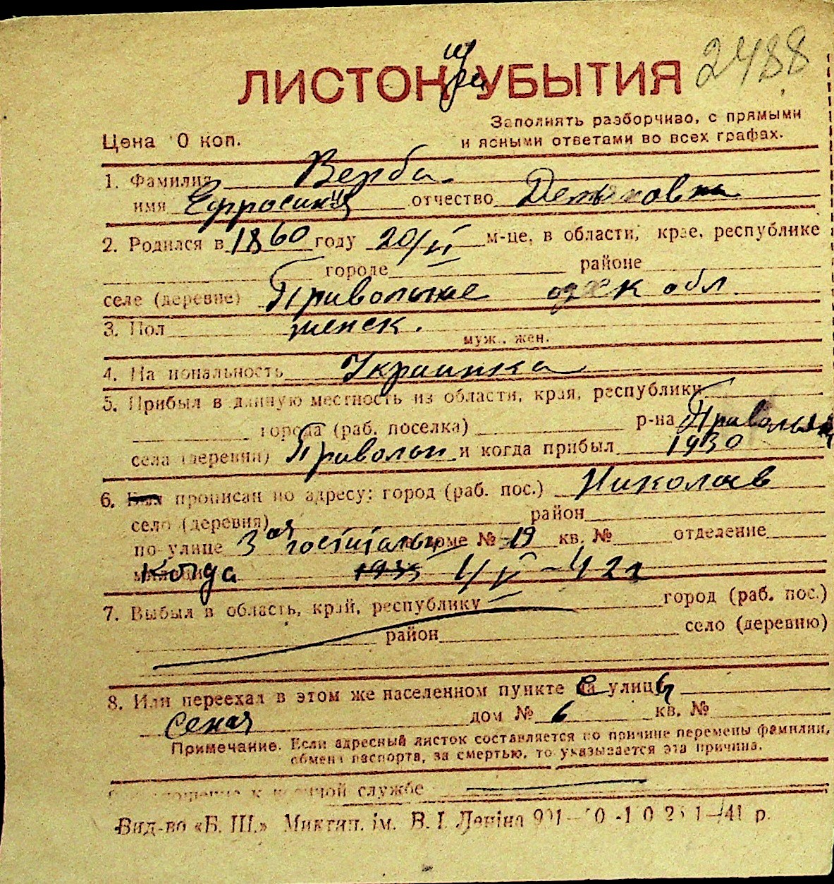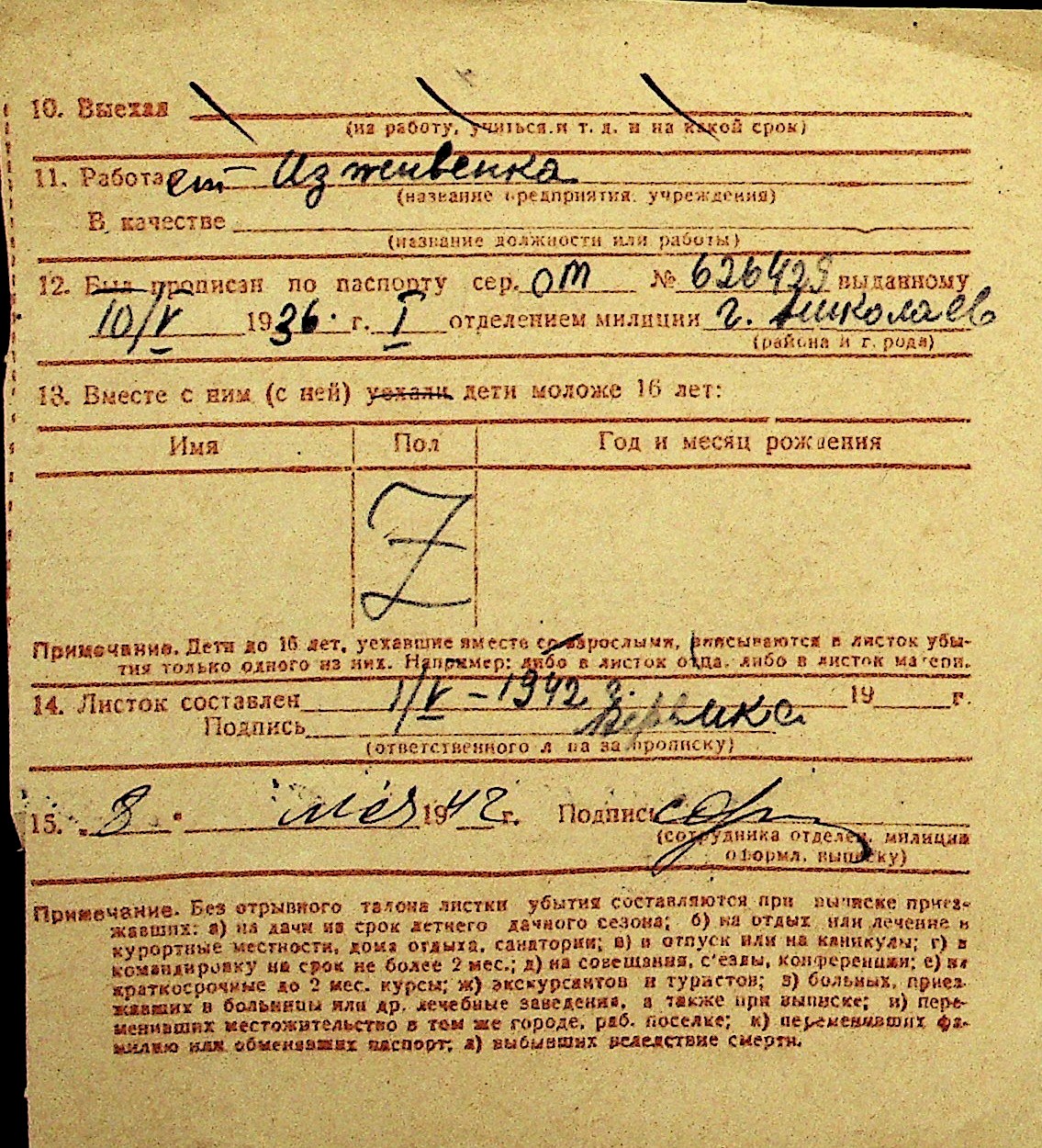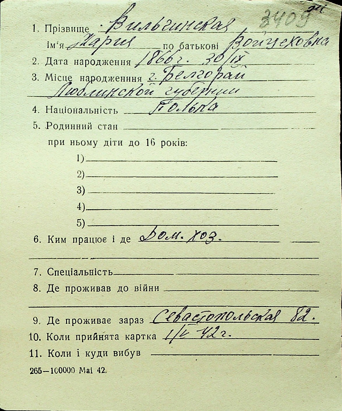 • • Перелік карток до фонду № Н-1016