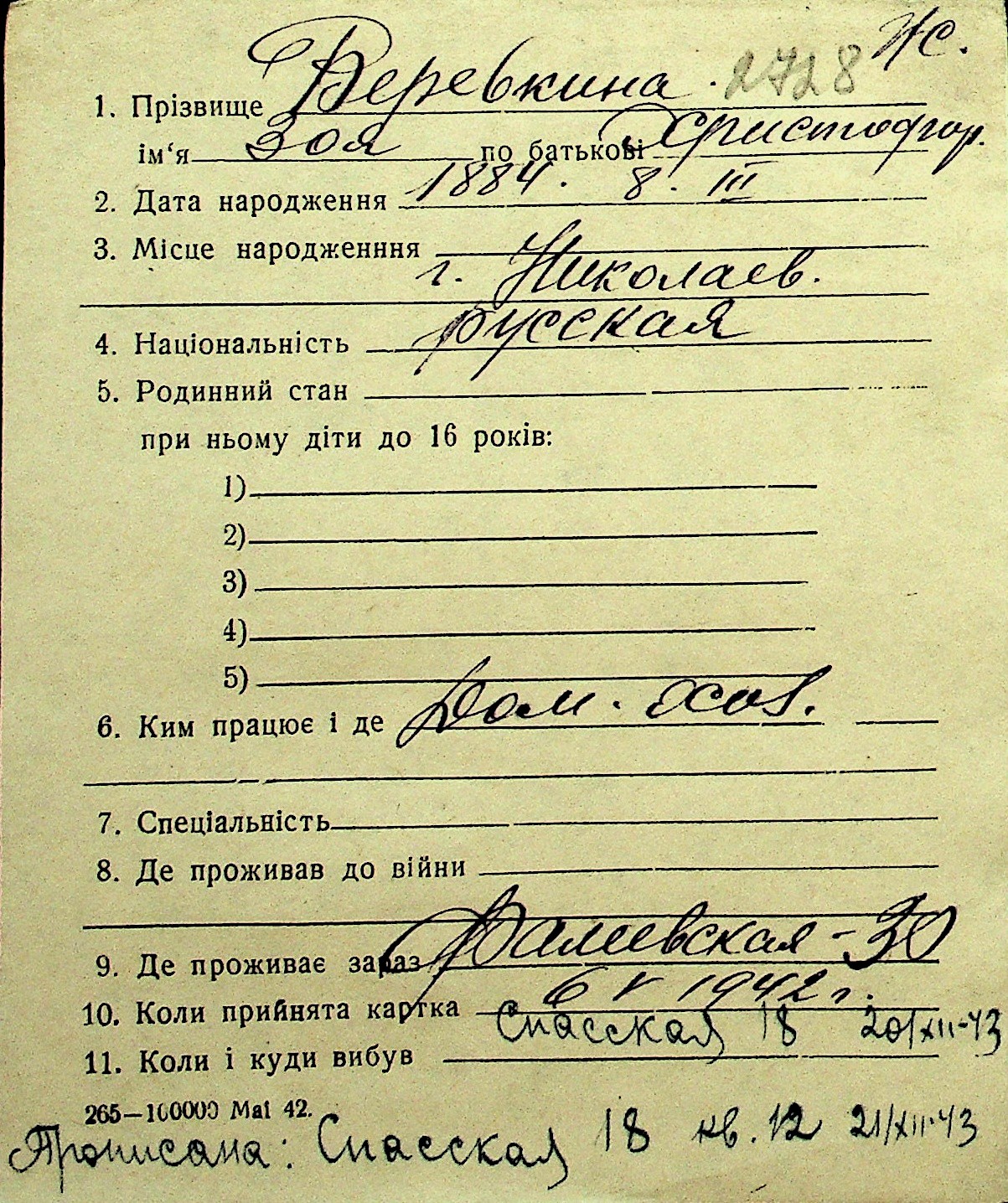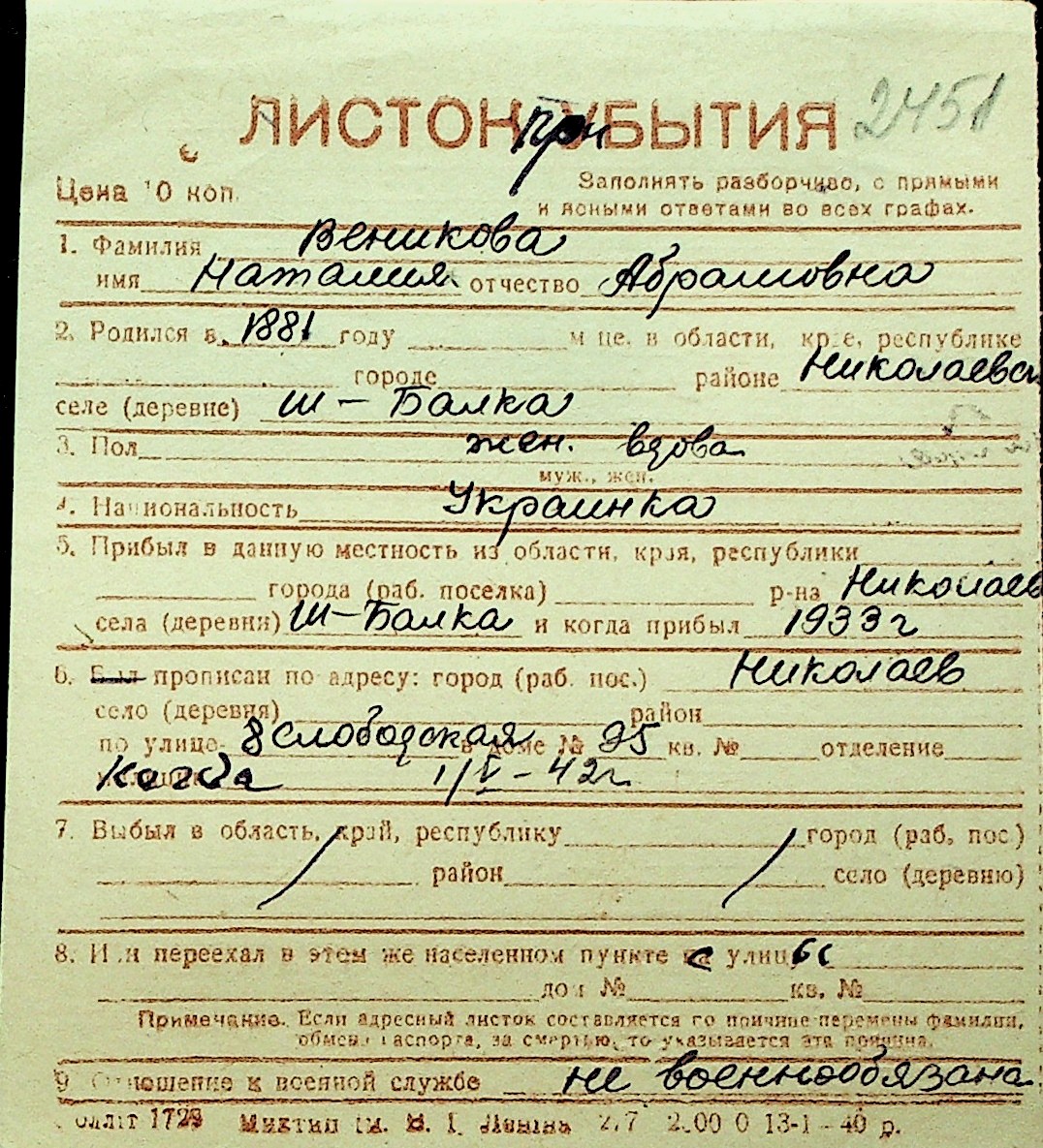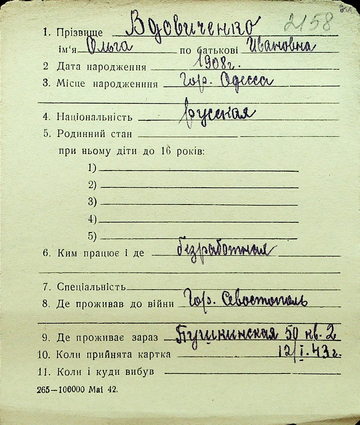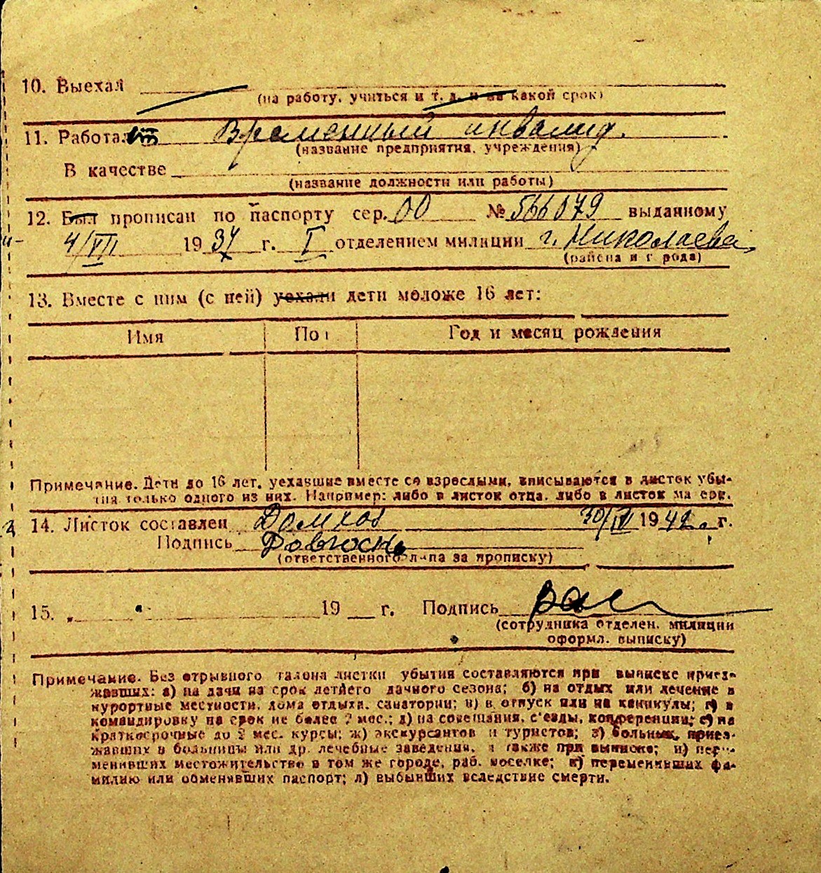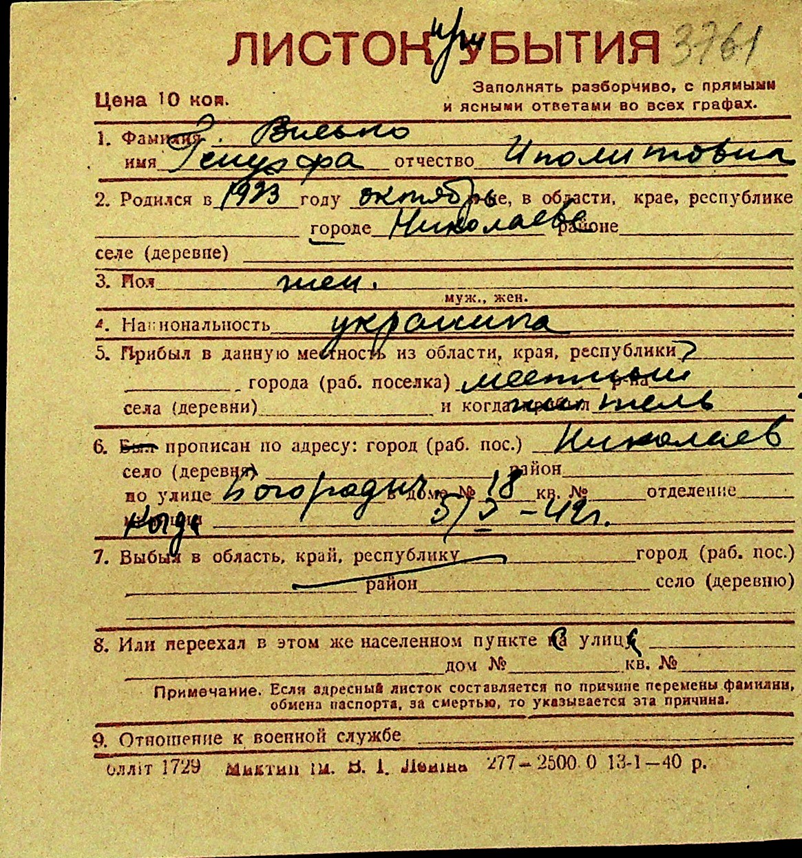 • • Перелік карток до фонду № Н-1016