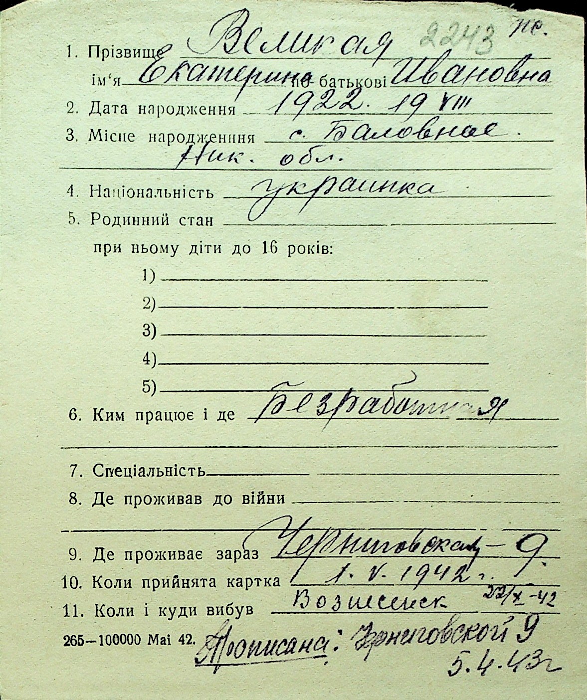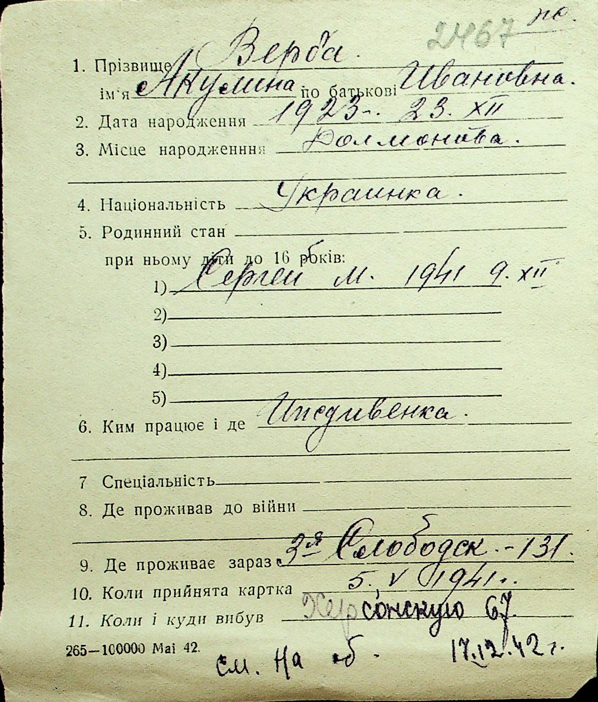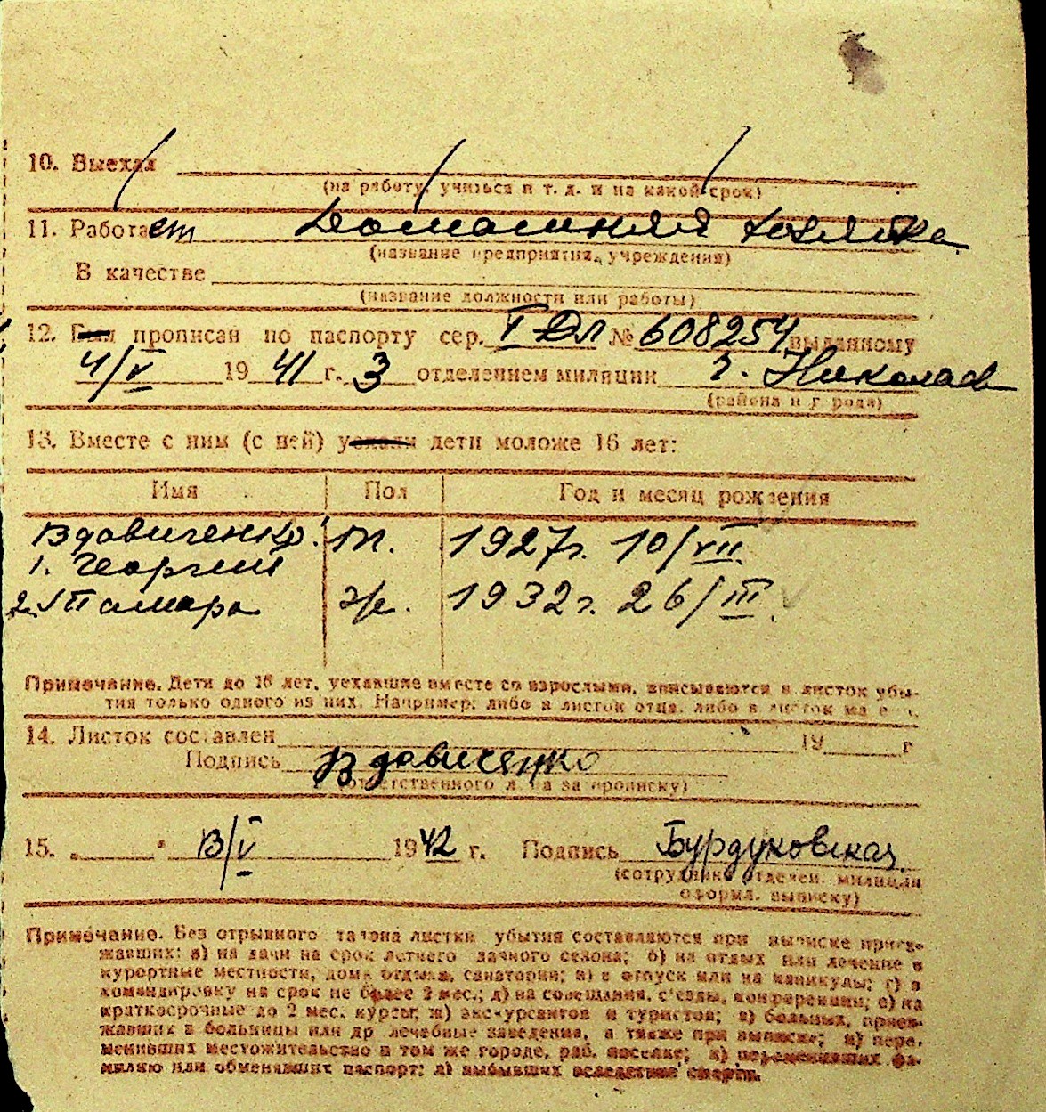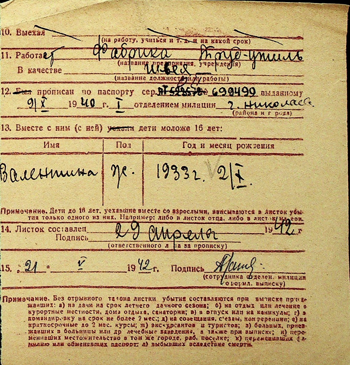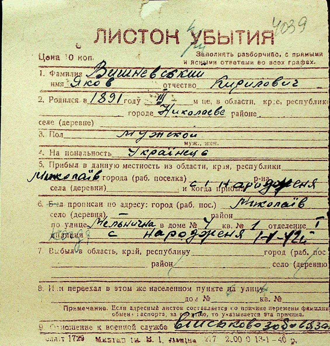 • • Перелік карток до фонду № Н-1016
