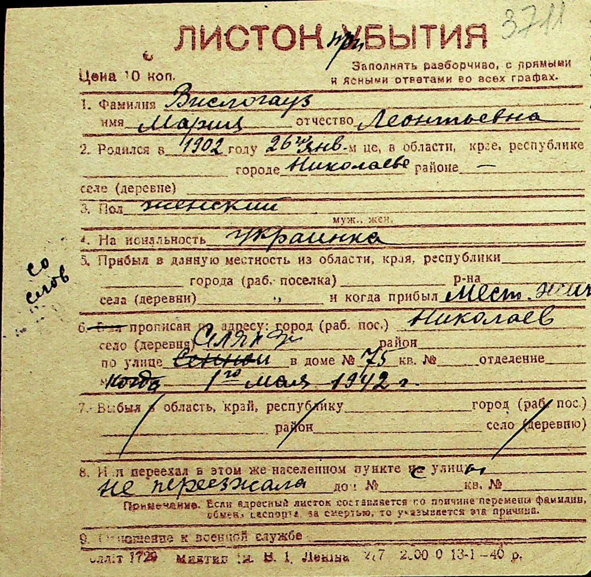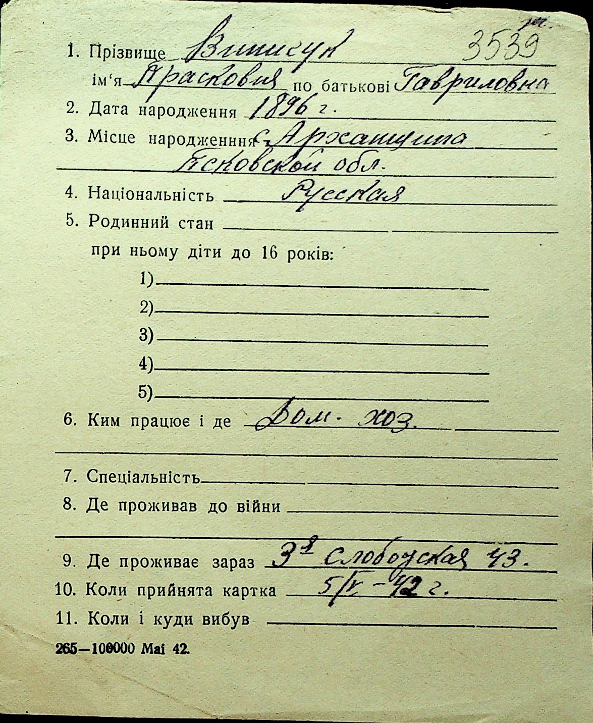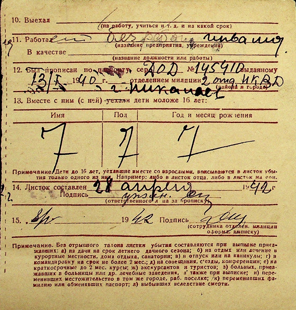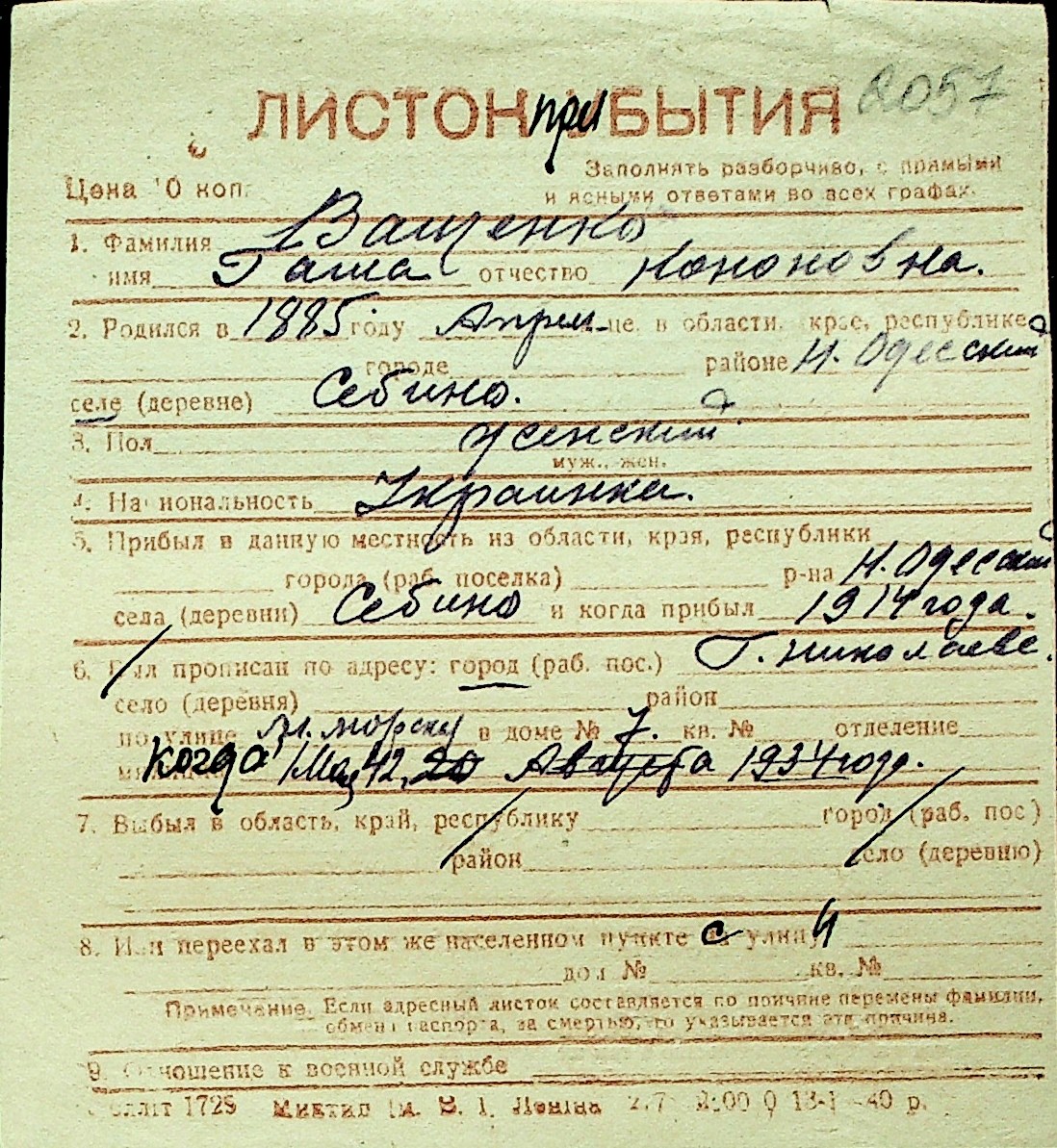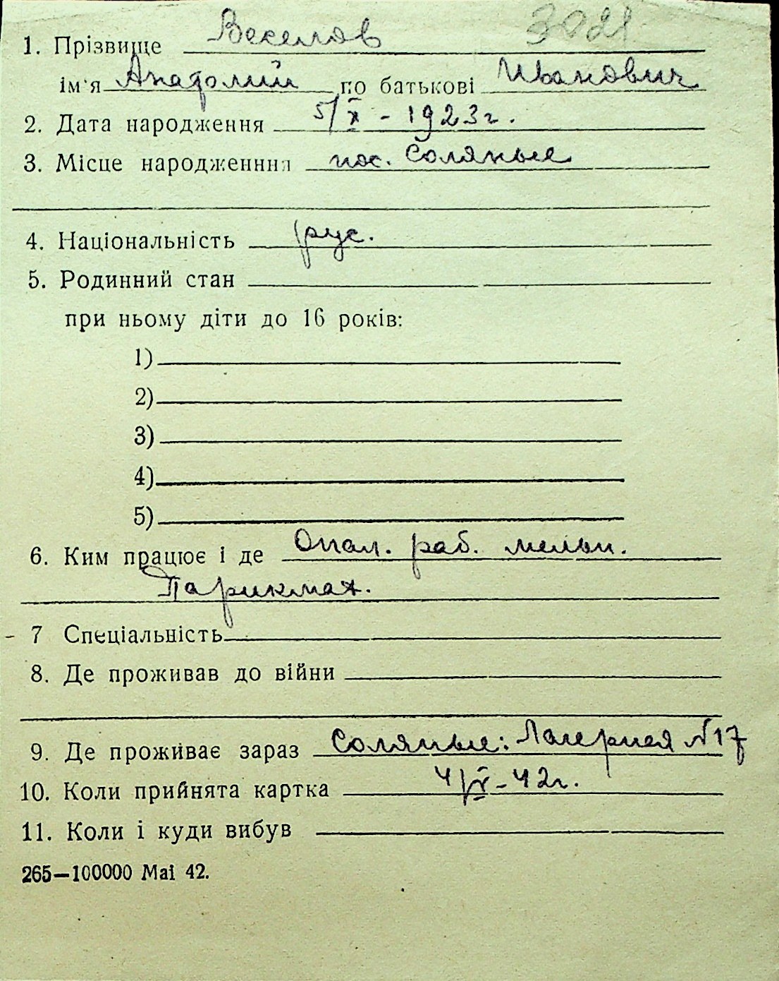 • • Перелік карток до фонду № Н-1016