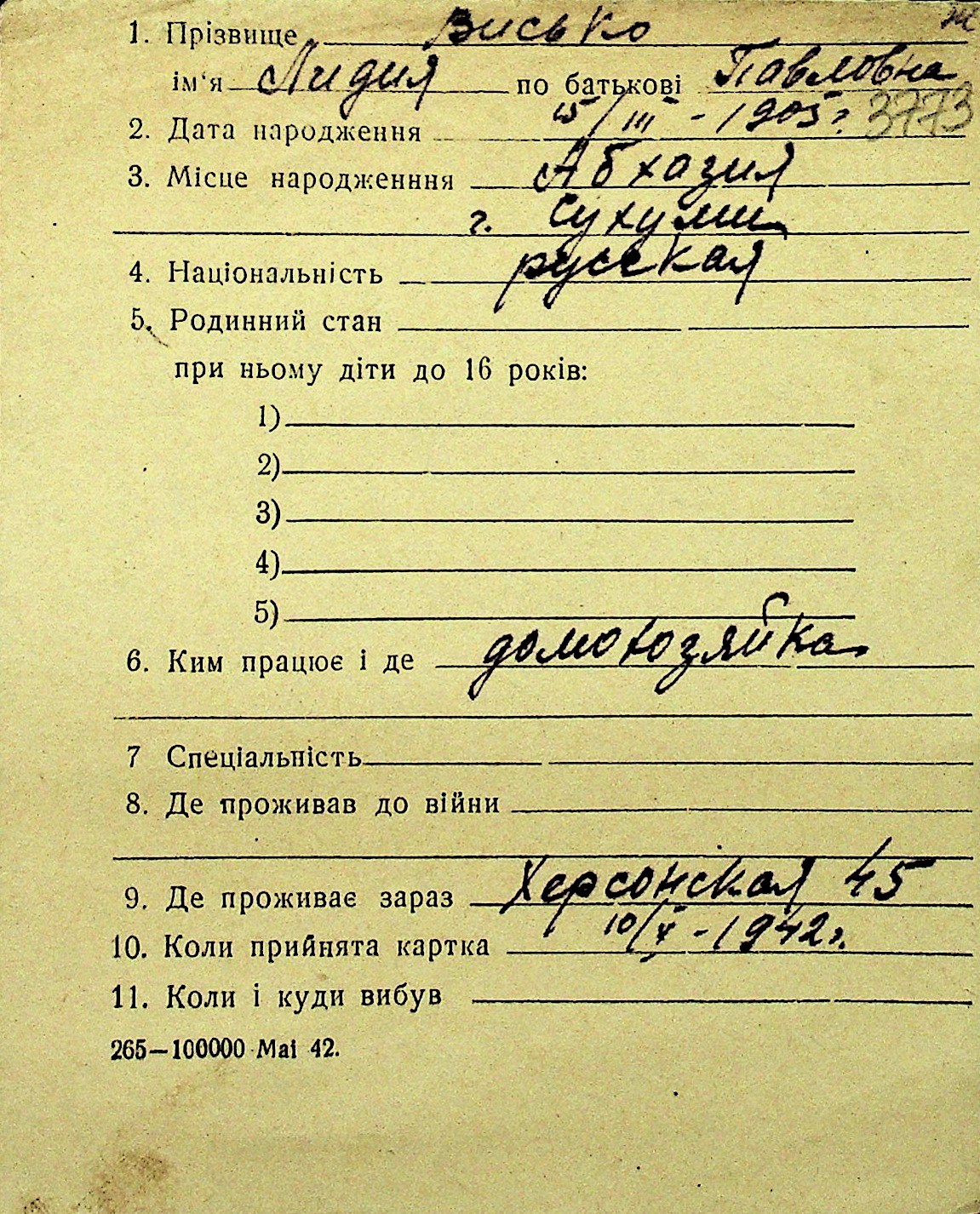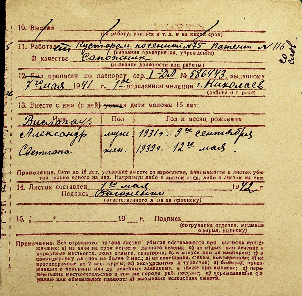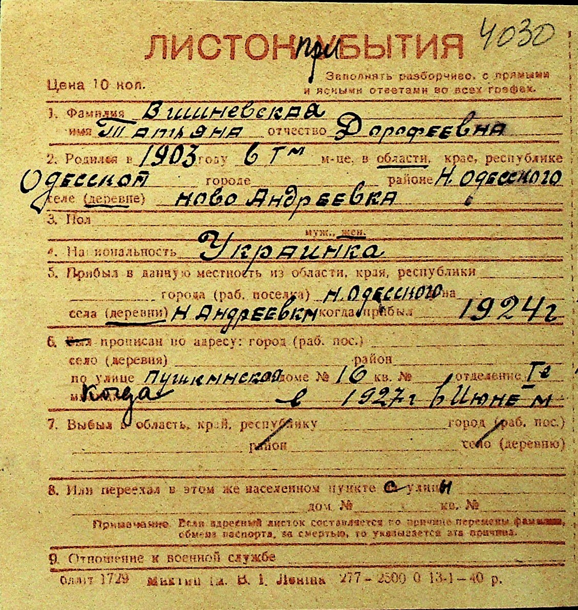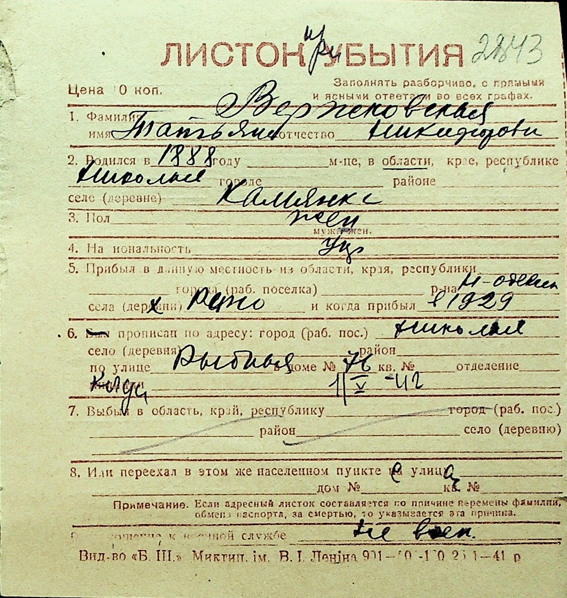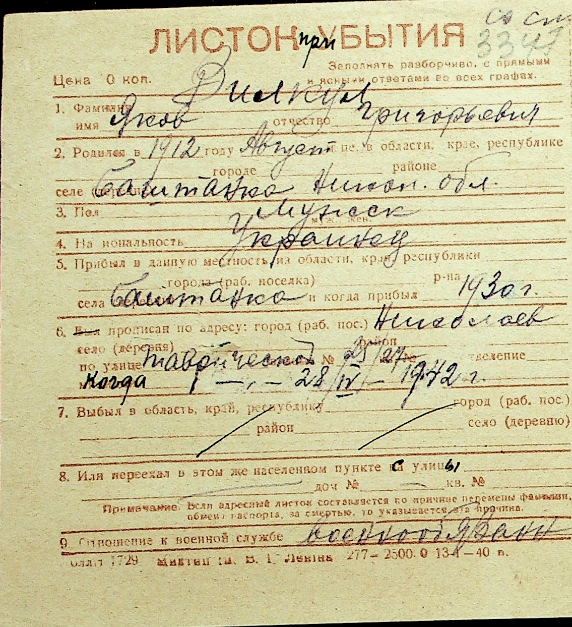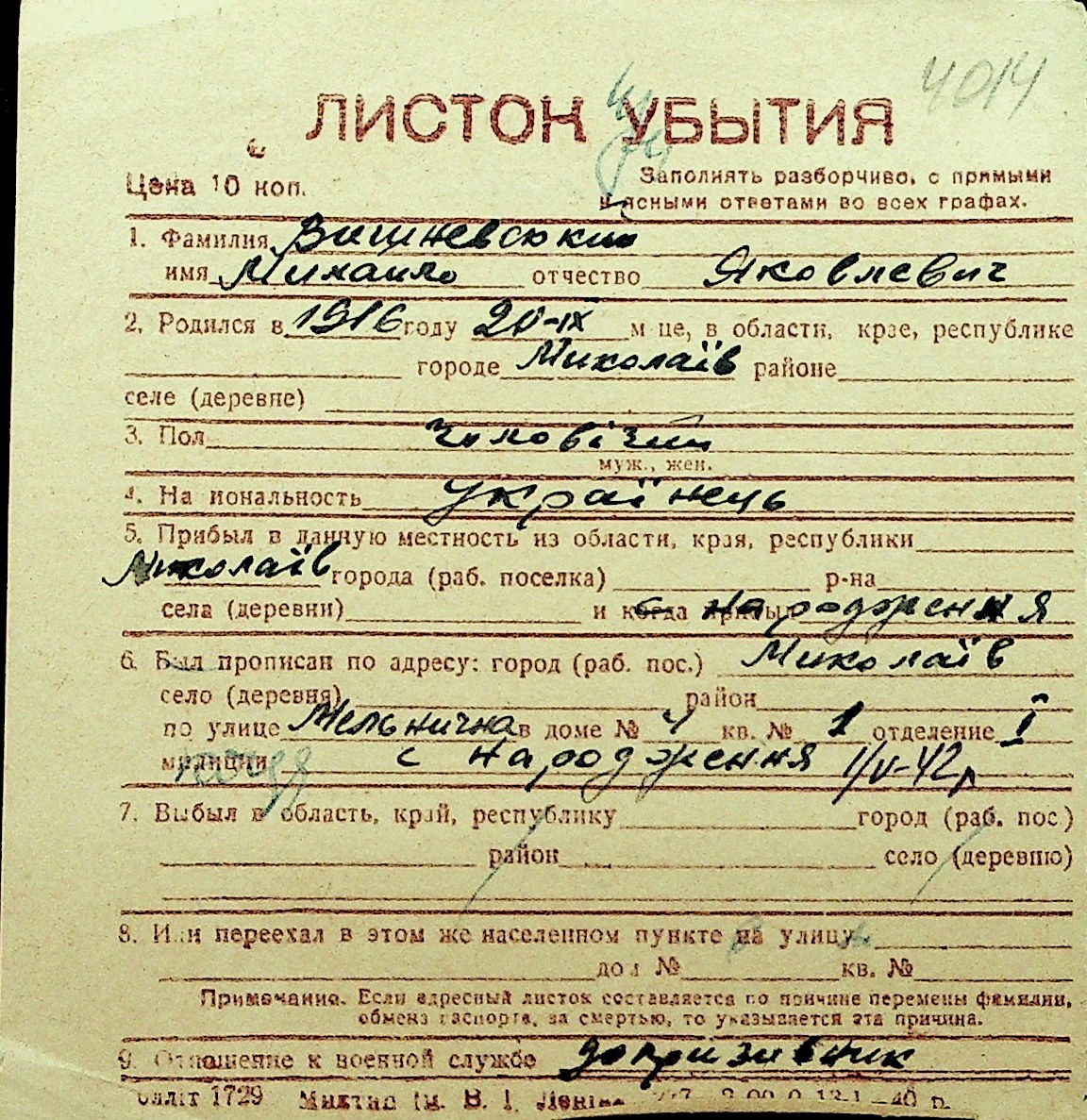 • • Перелік карток до фонду № Н-1016