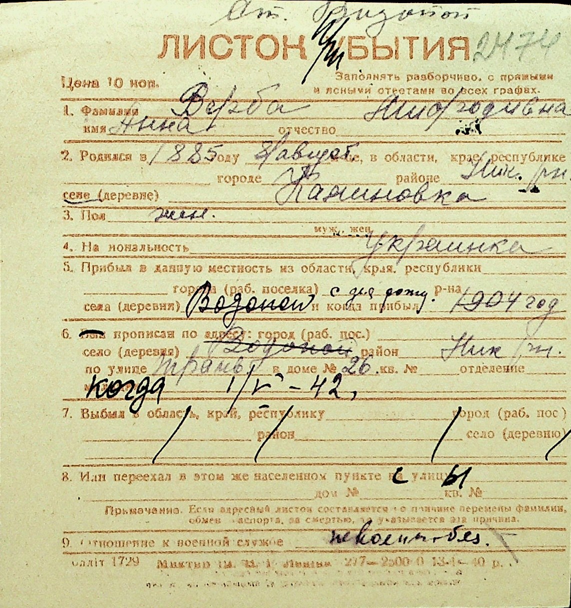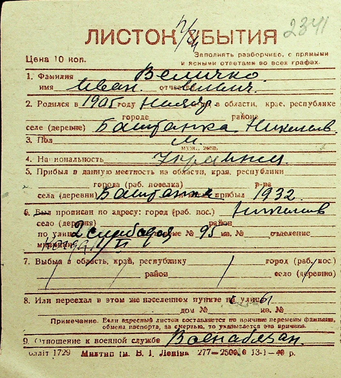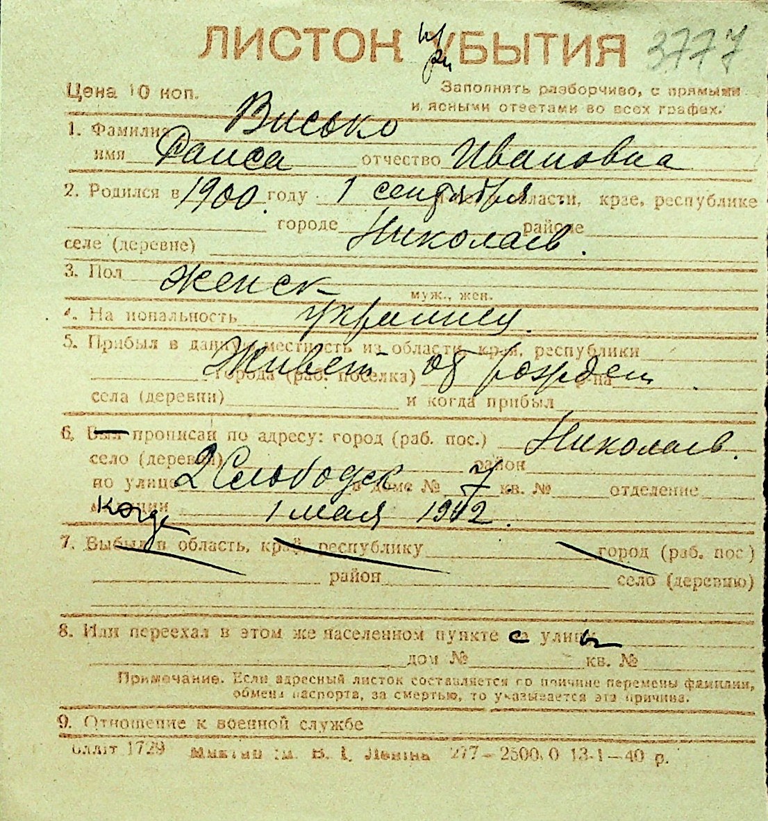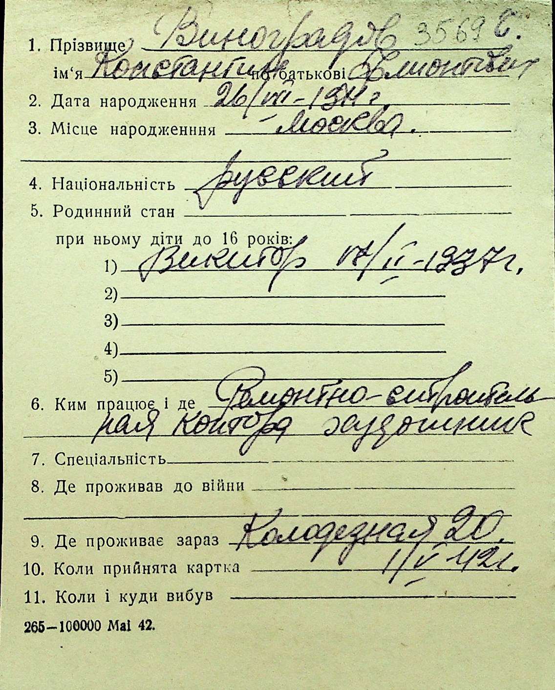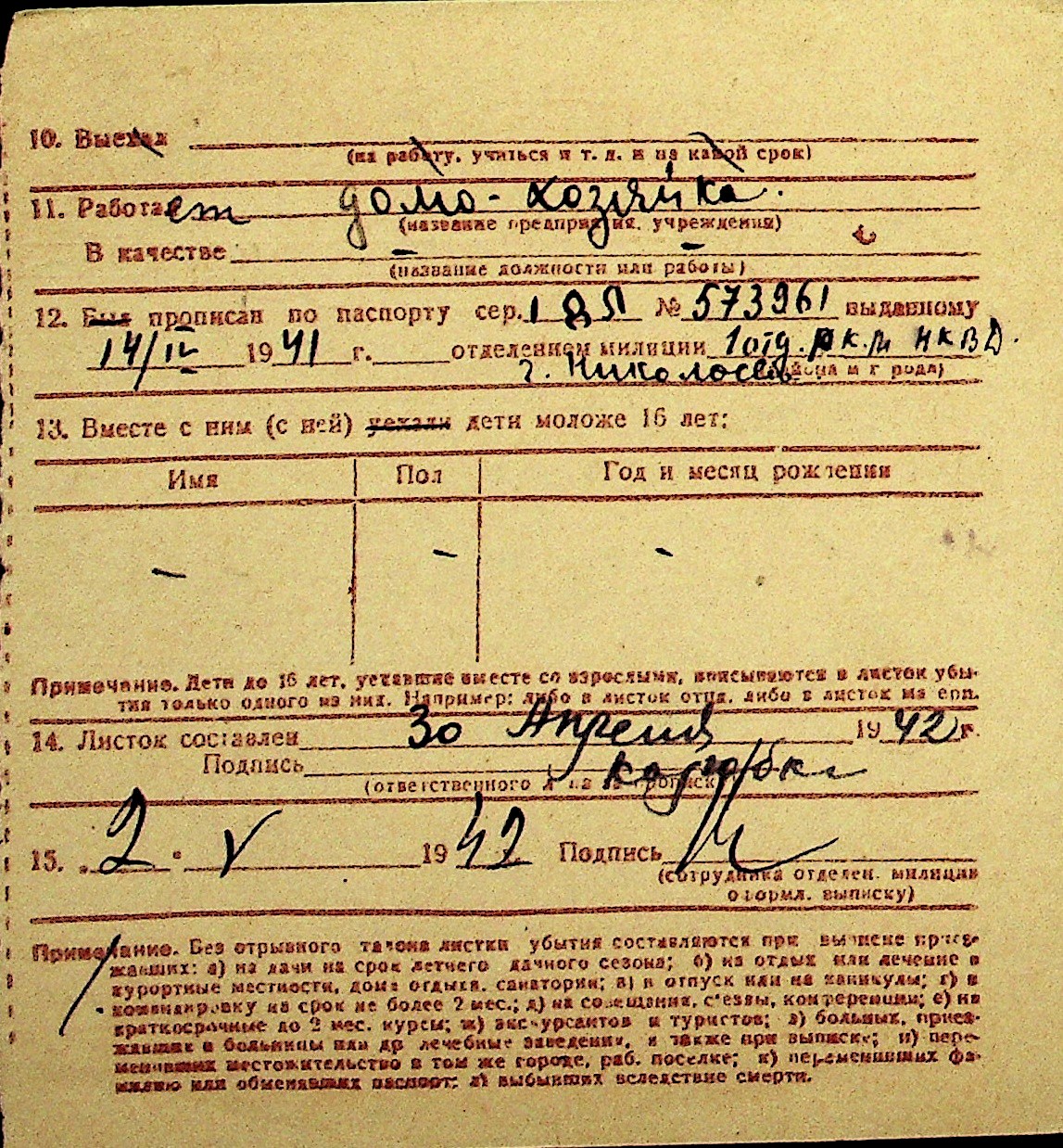 • • Перелік карток до фонду № Н-1016