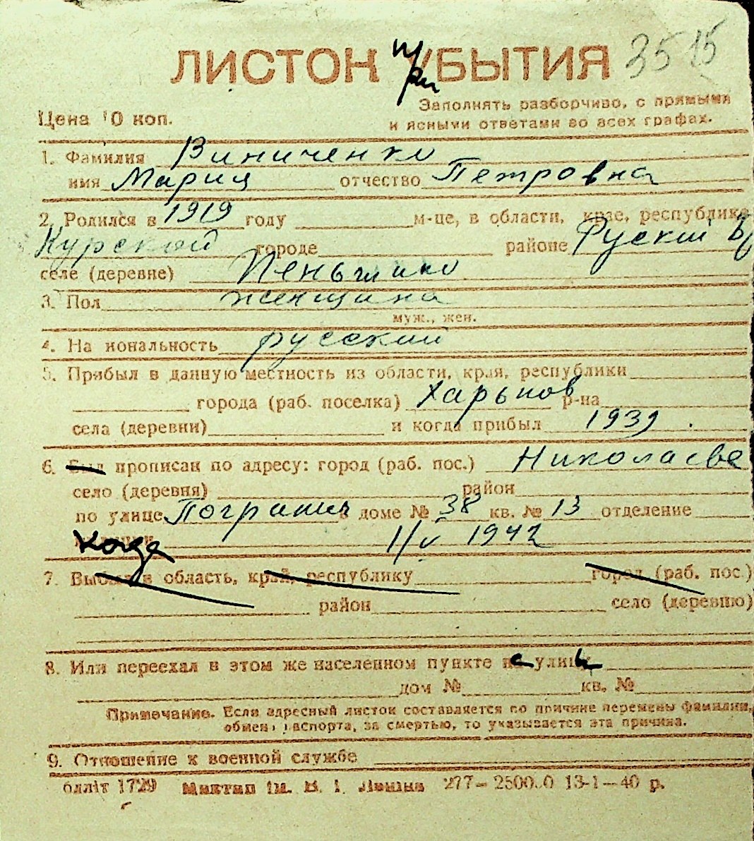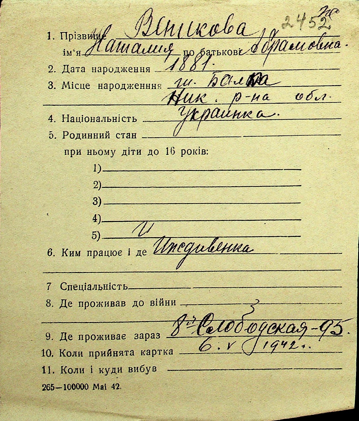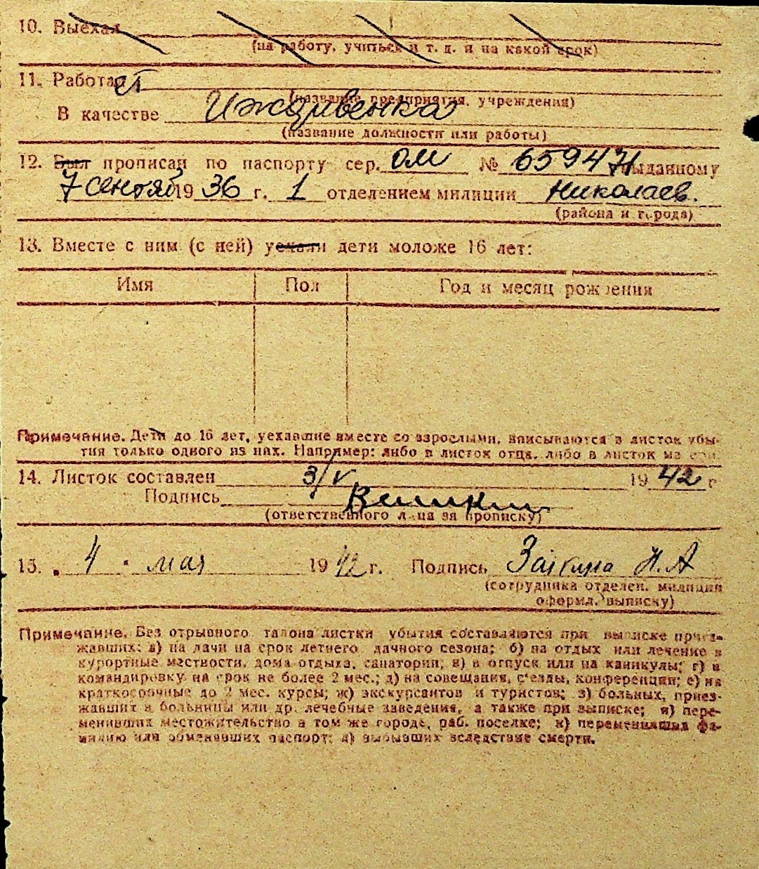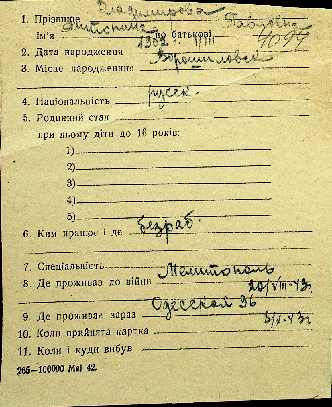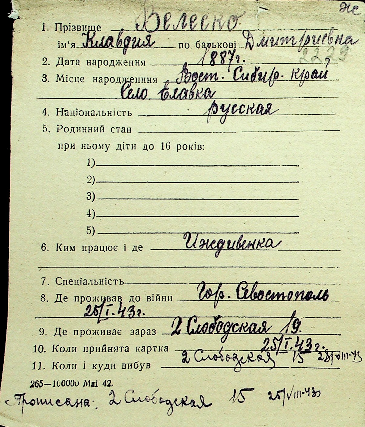 • • Перелік карток до фонду № Н-1016
