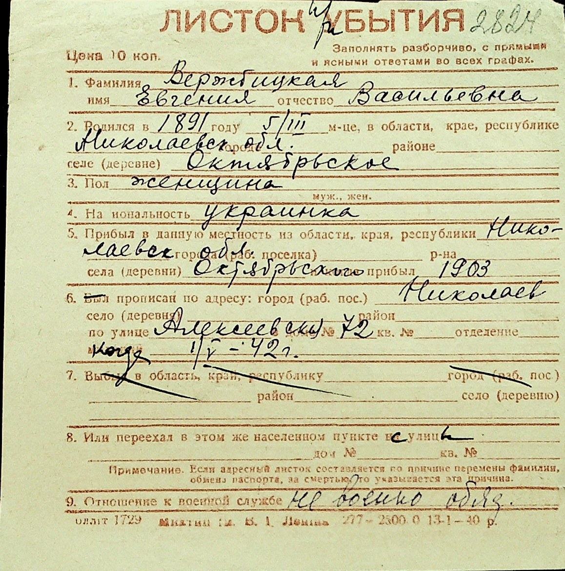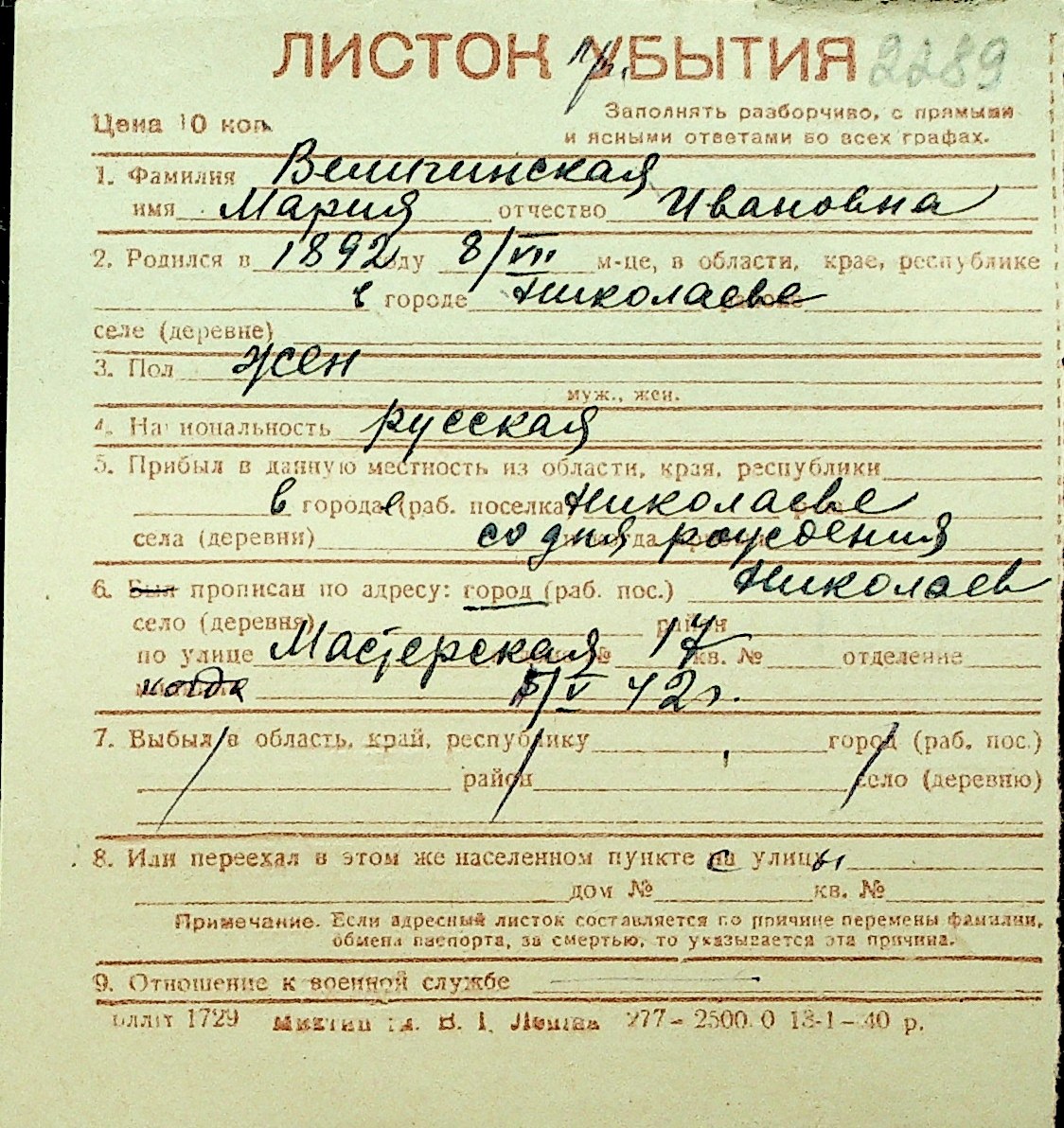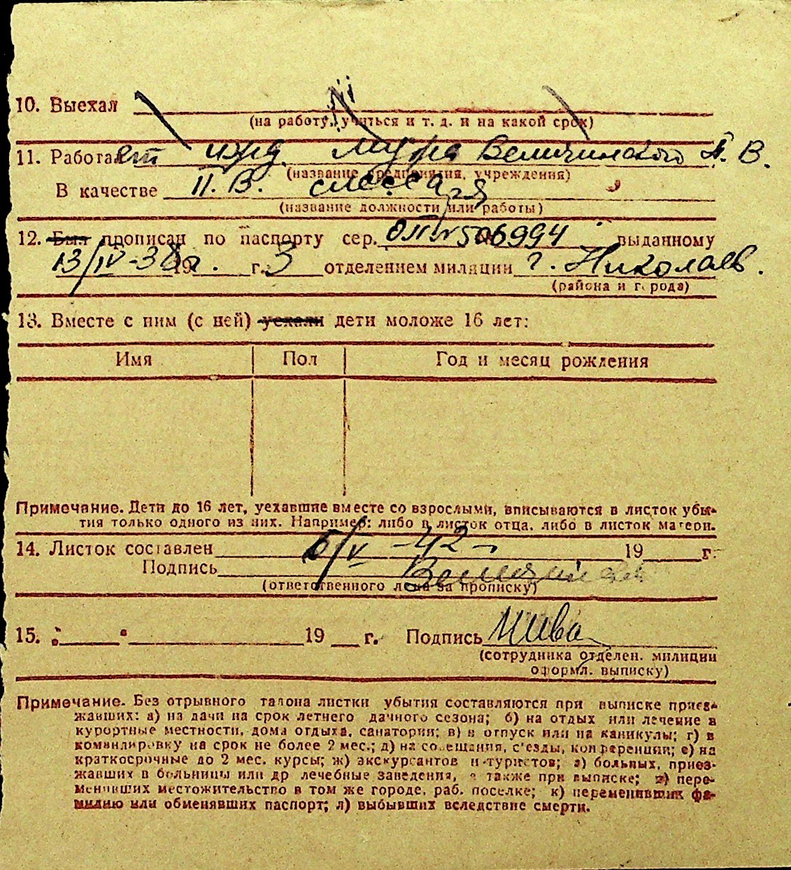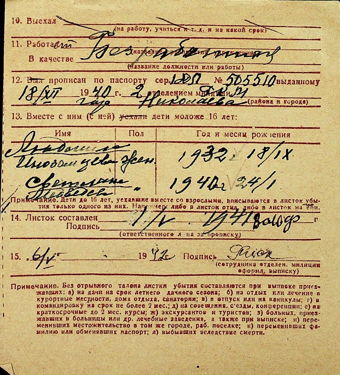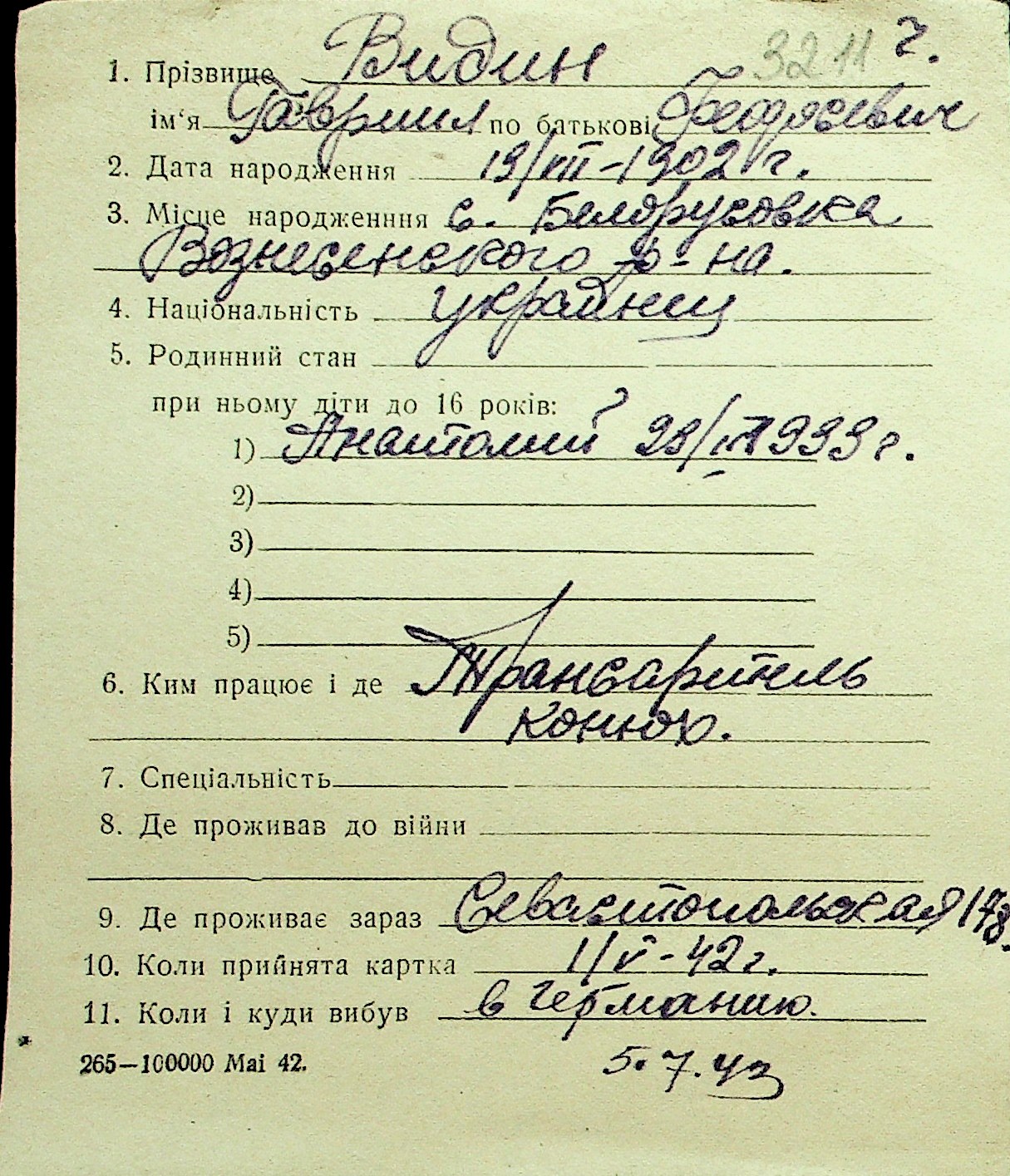 • • Перелік карток до фонду № Н-1016
