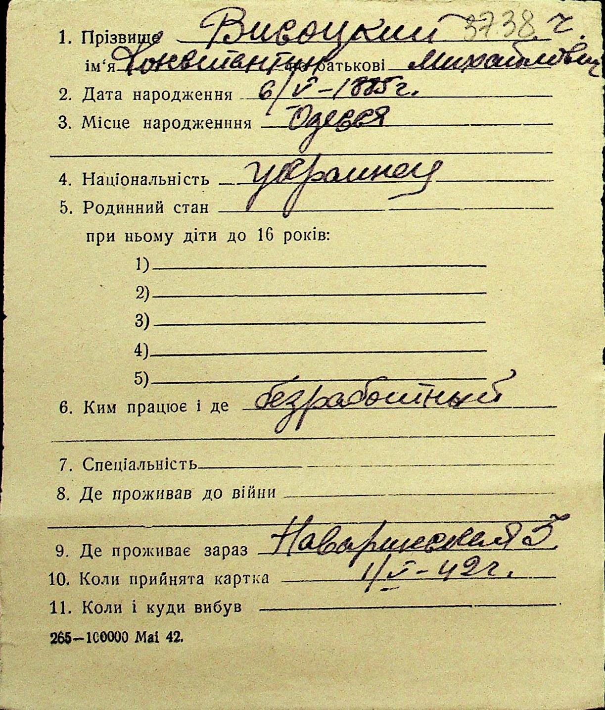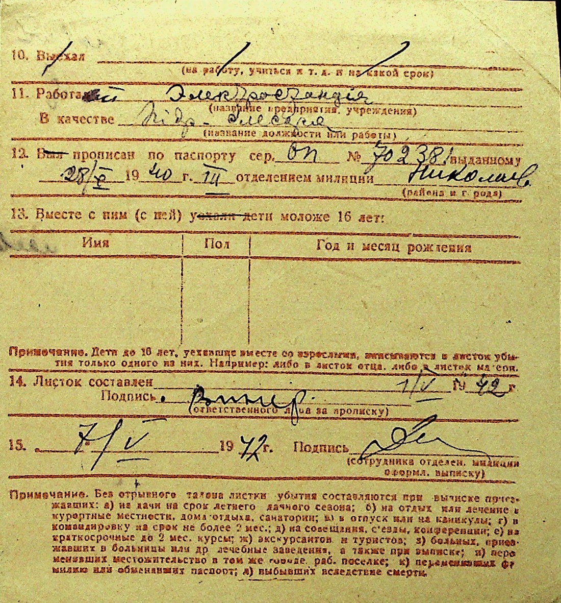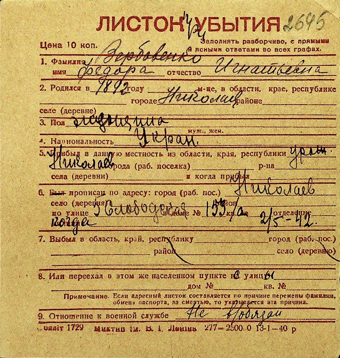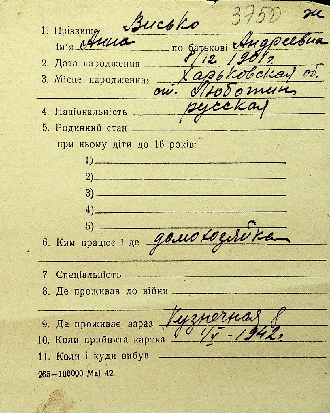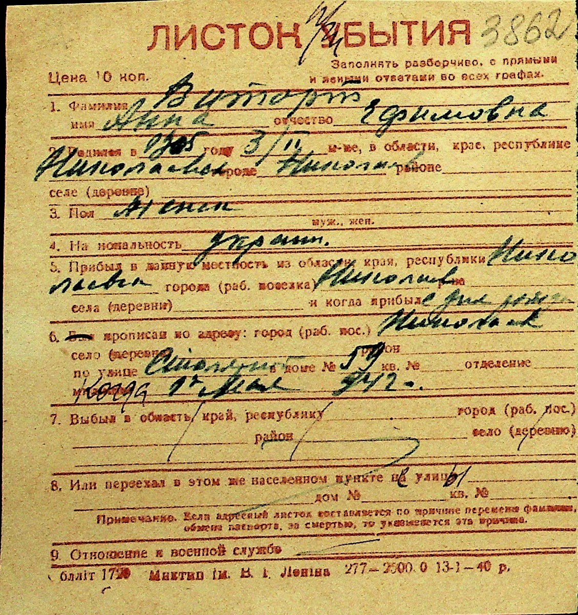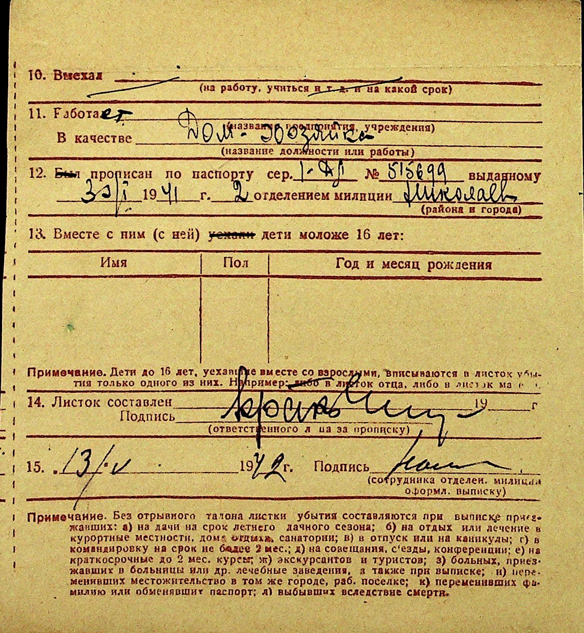 • • Перелік карток до фонду № Н-1016