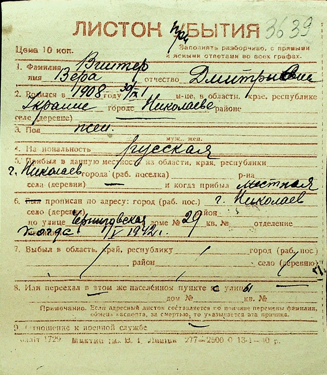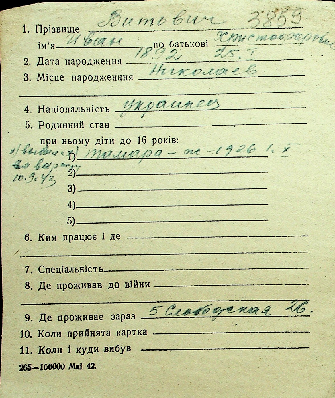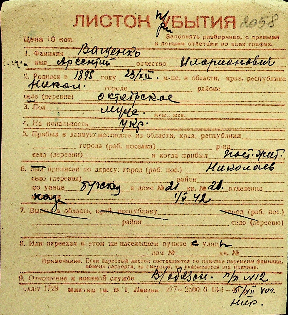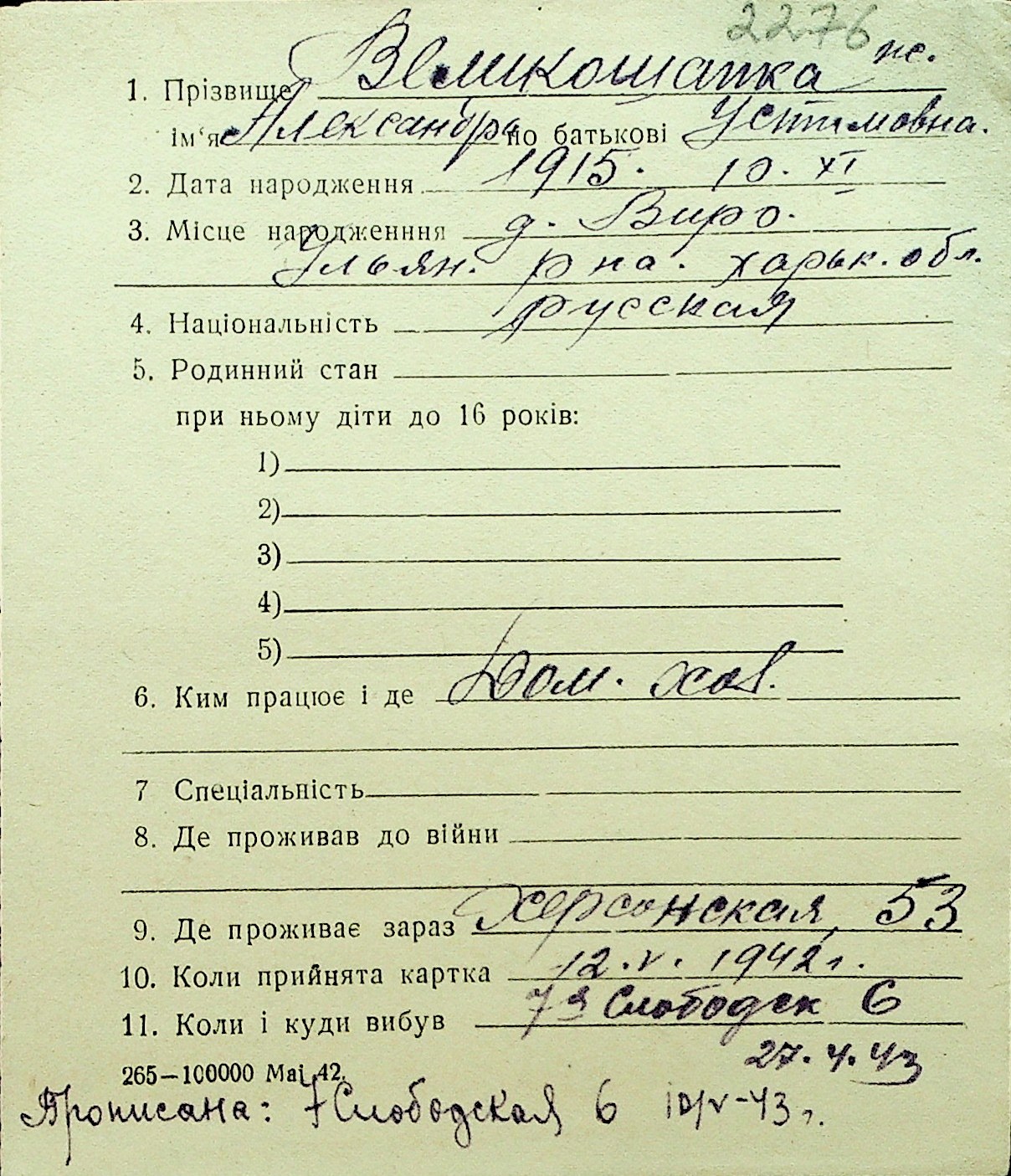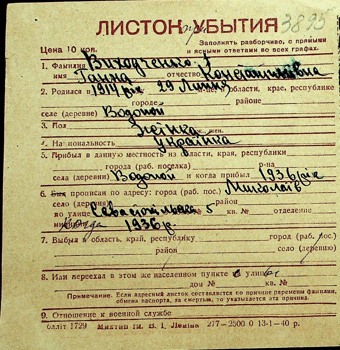• • Перелік карток до фонду № Н-1016