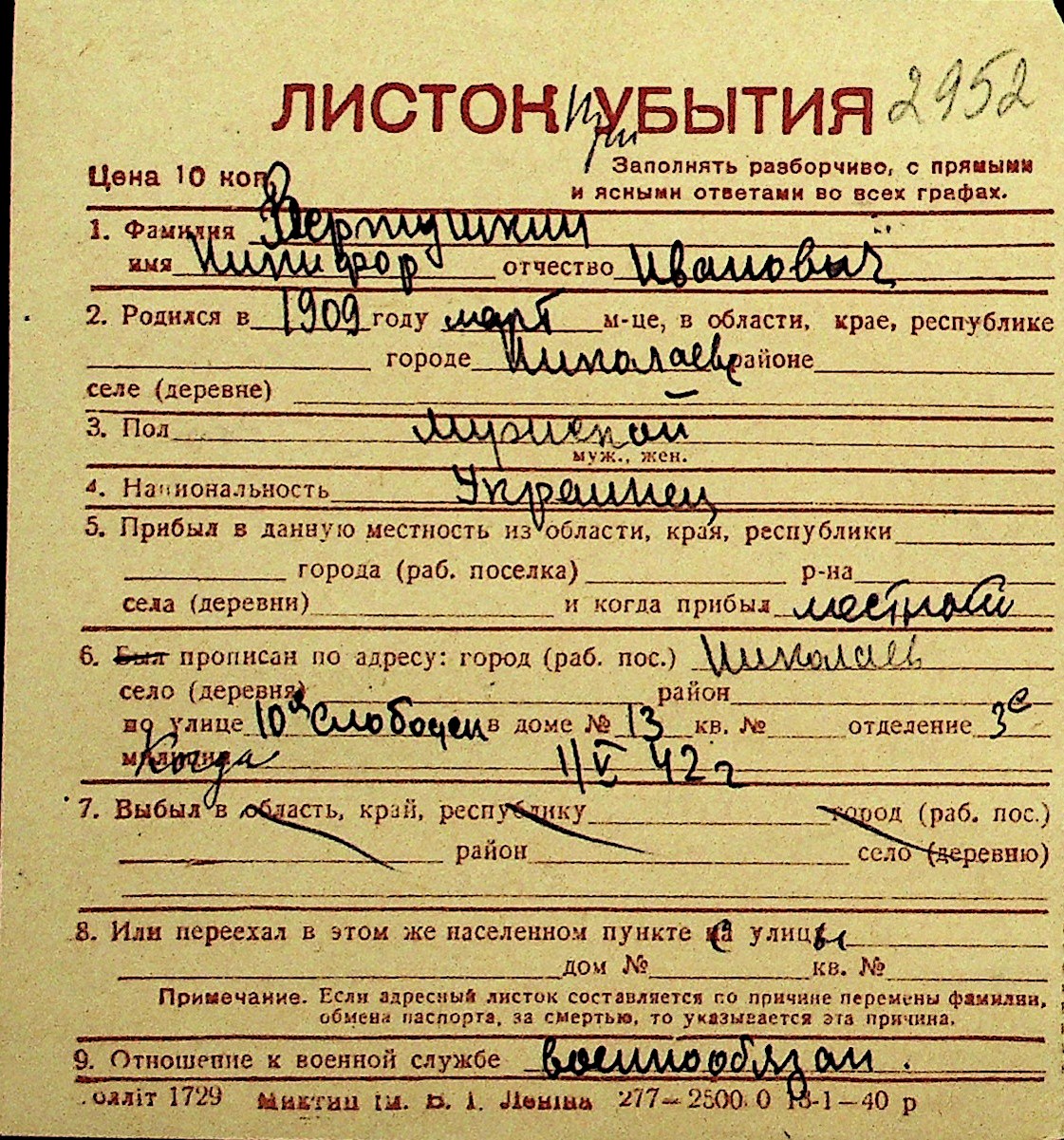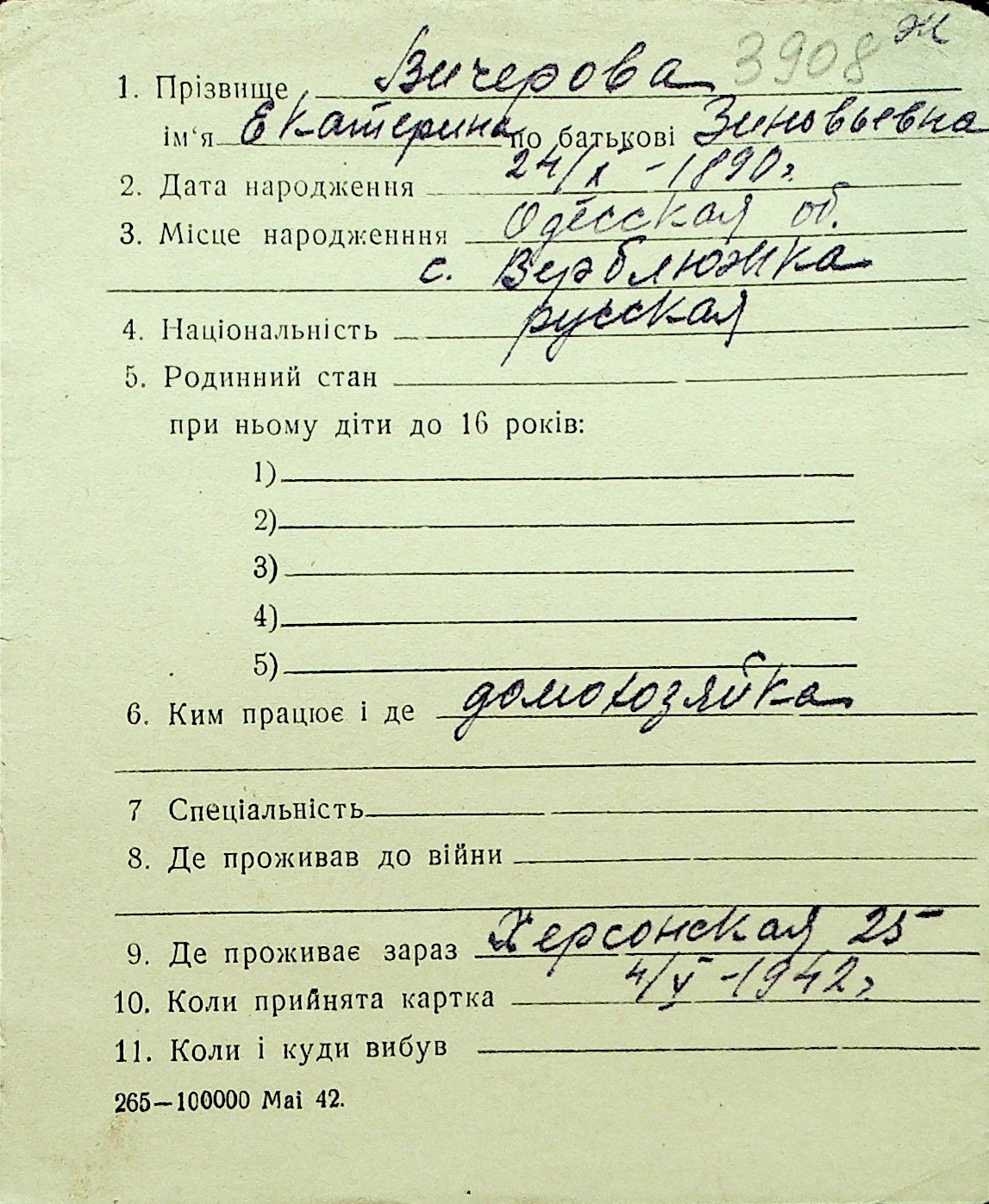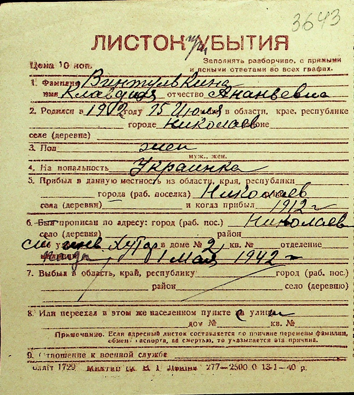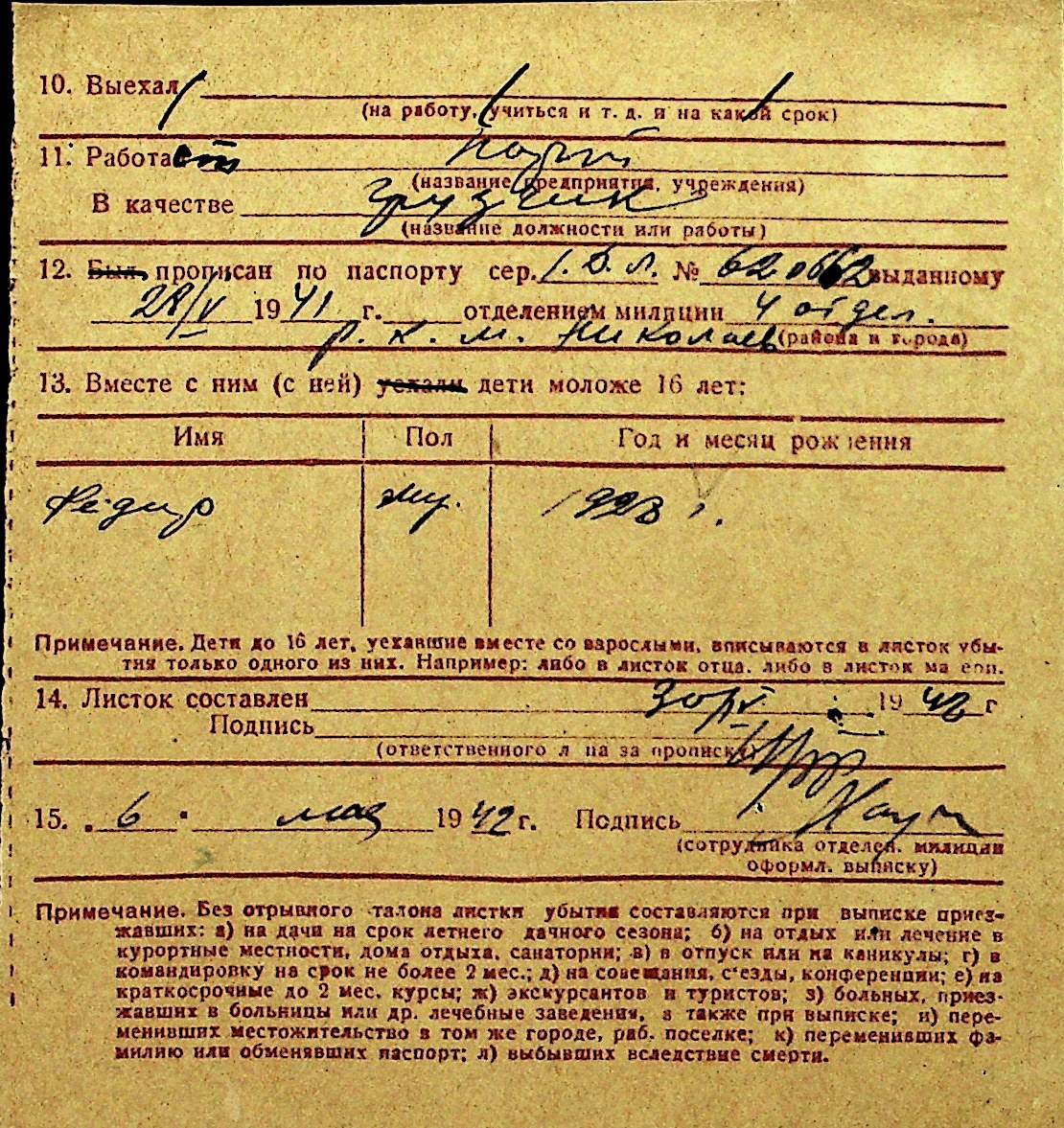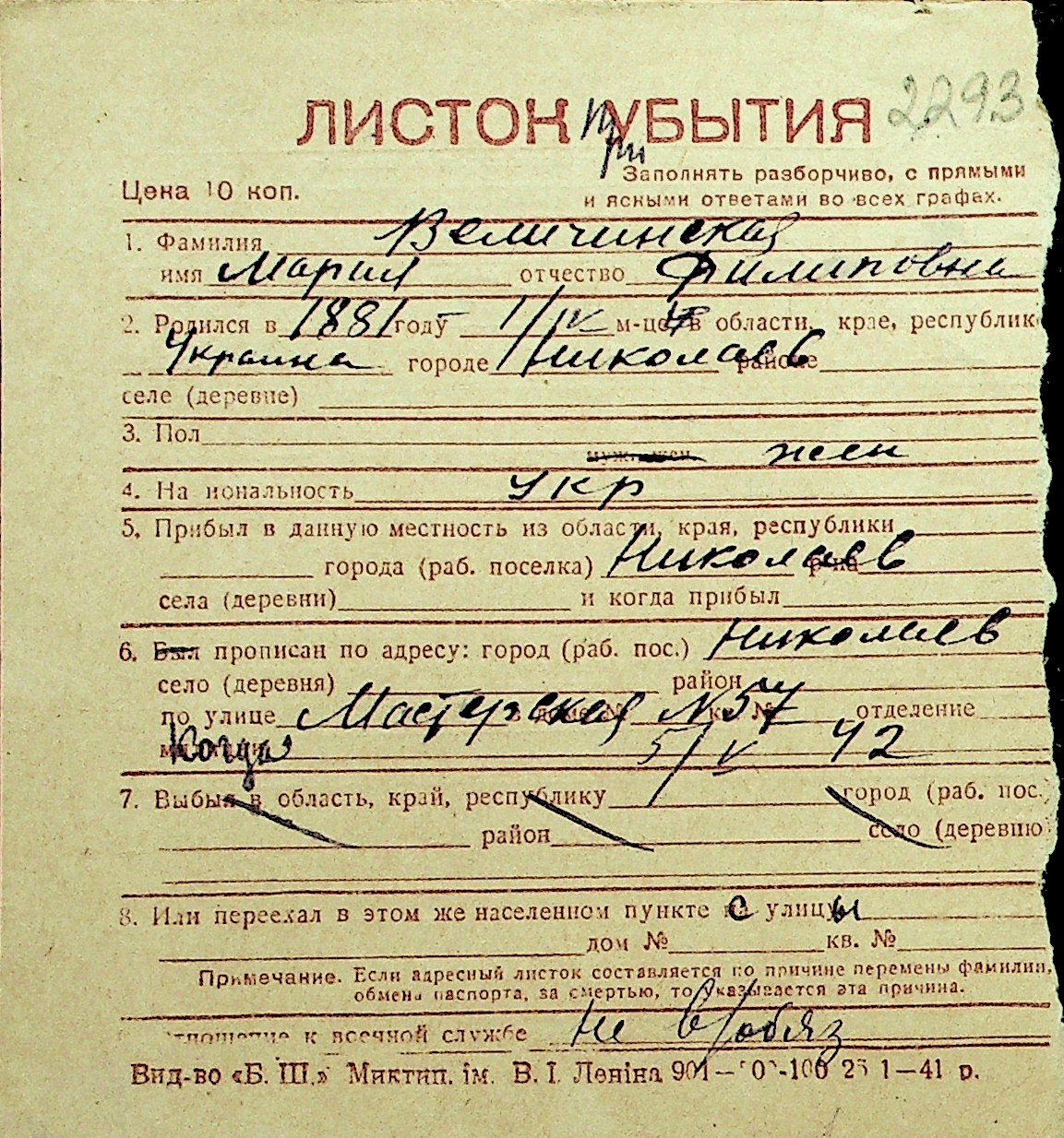 • • Перелік карток до фонду № Н-1016