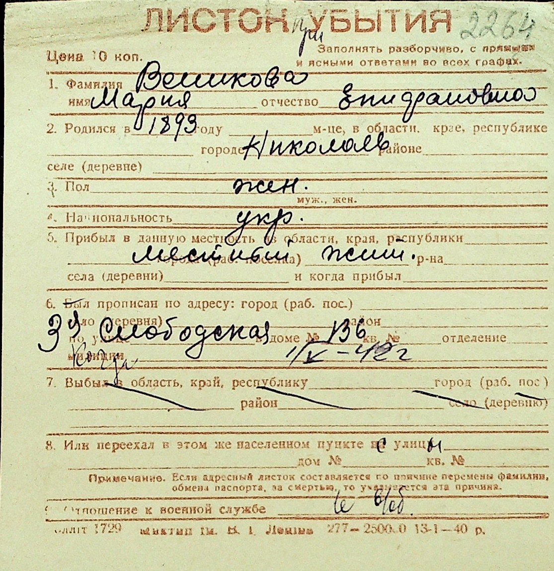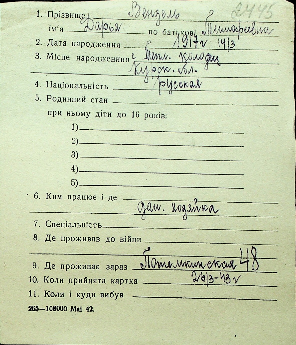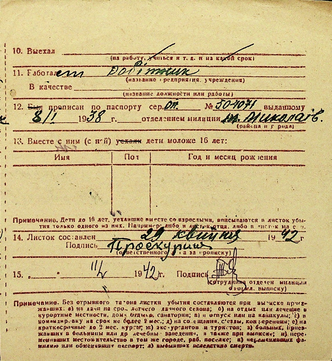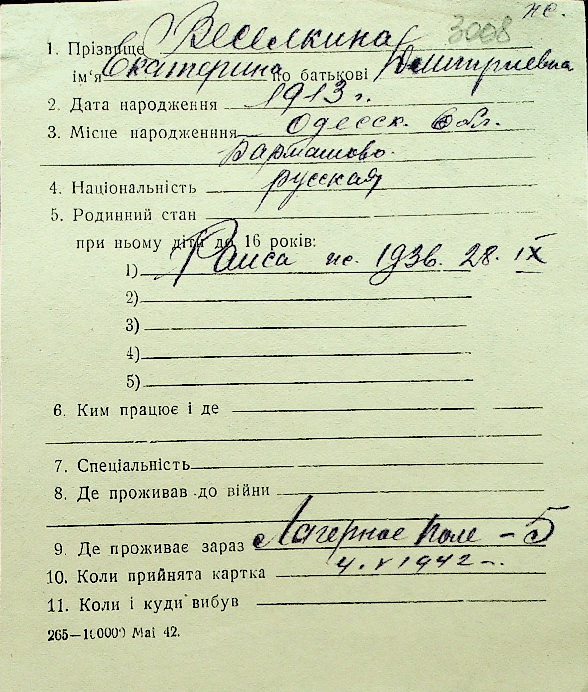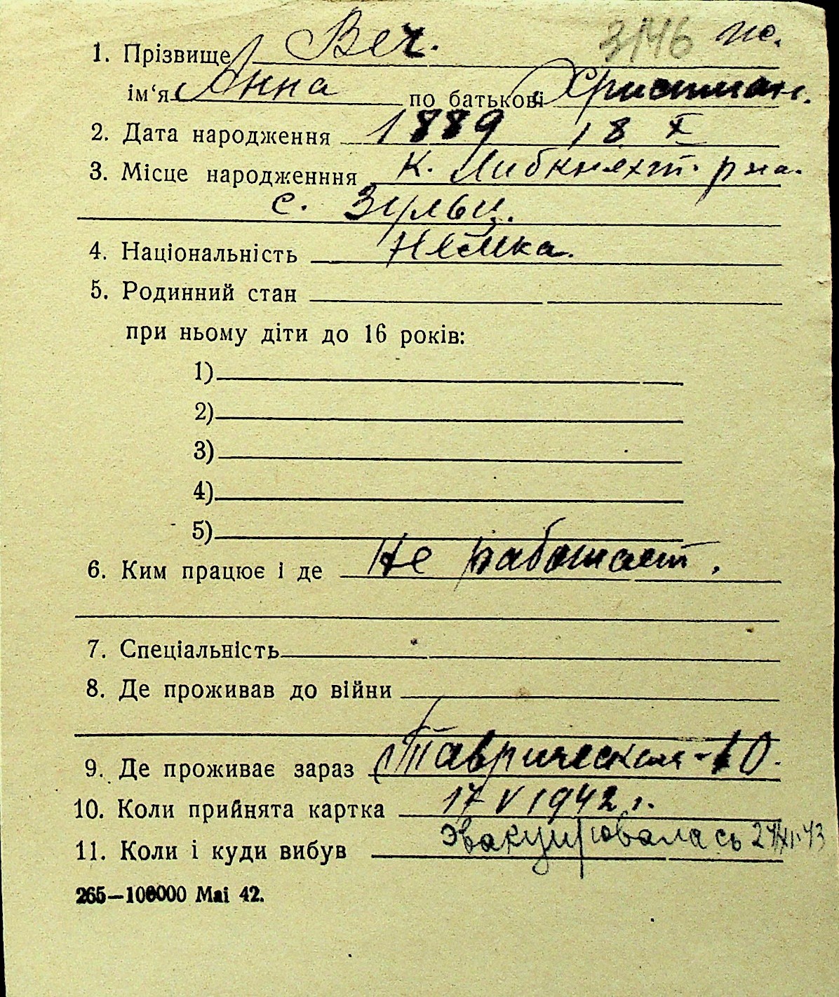 • • Перелік карток до фонду № Н-1016