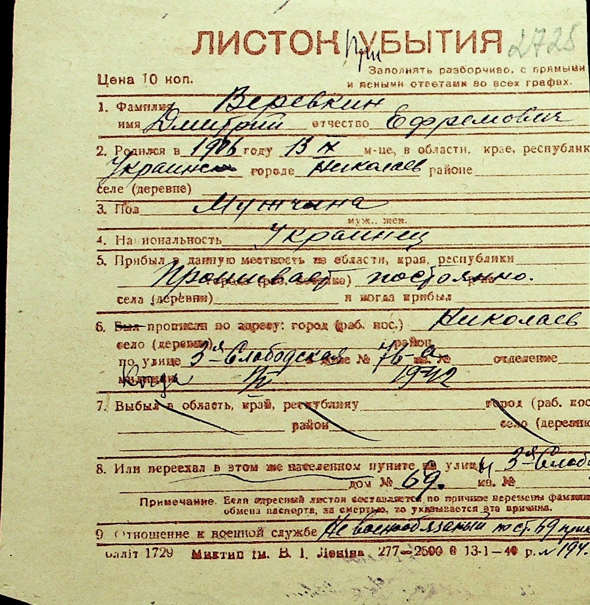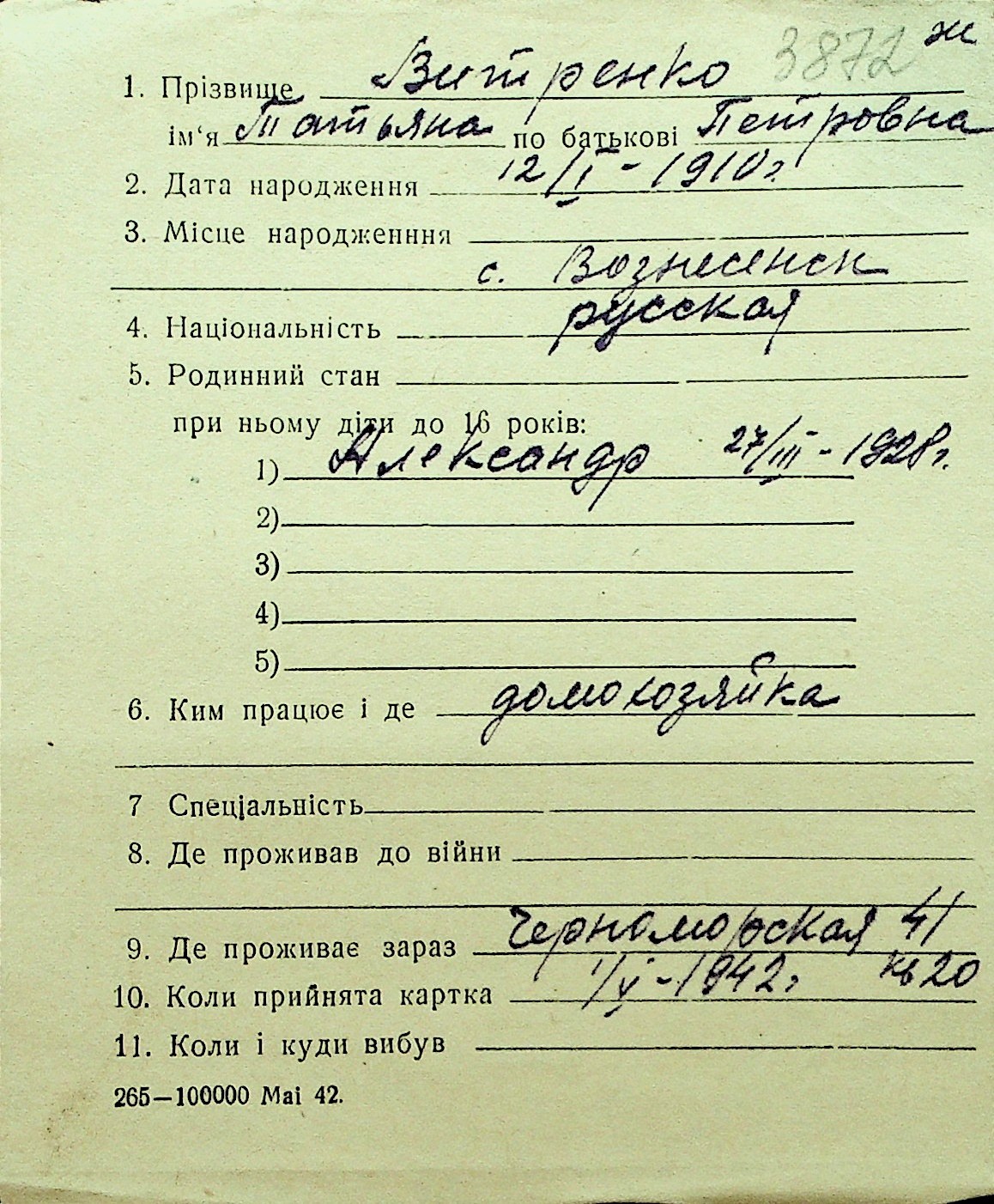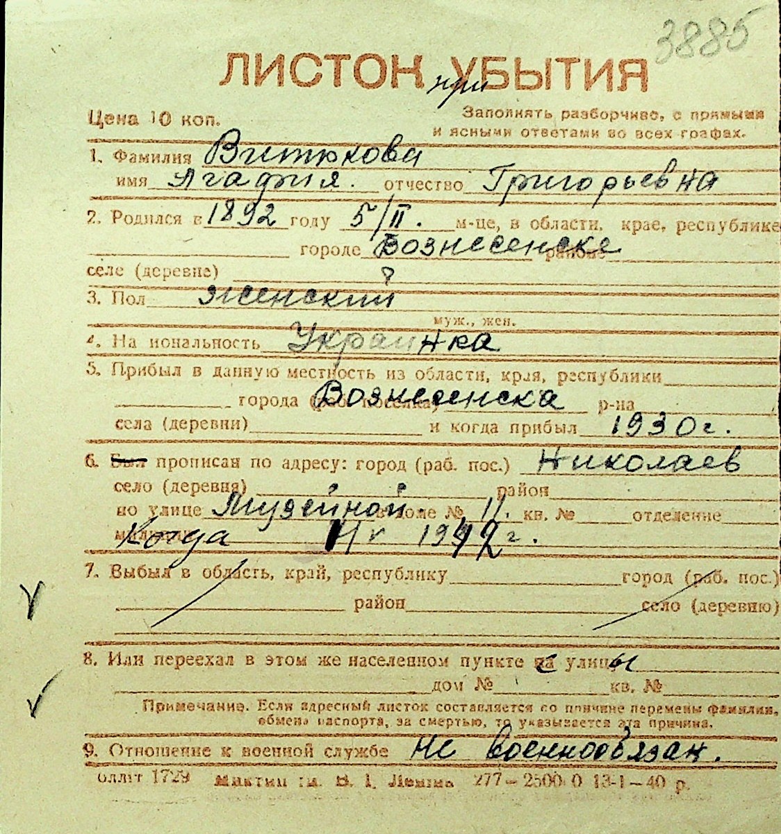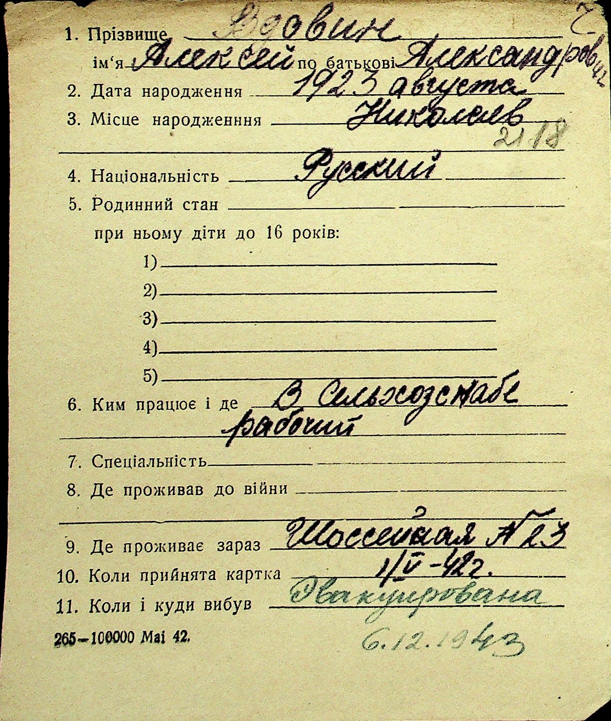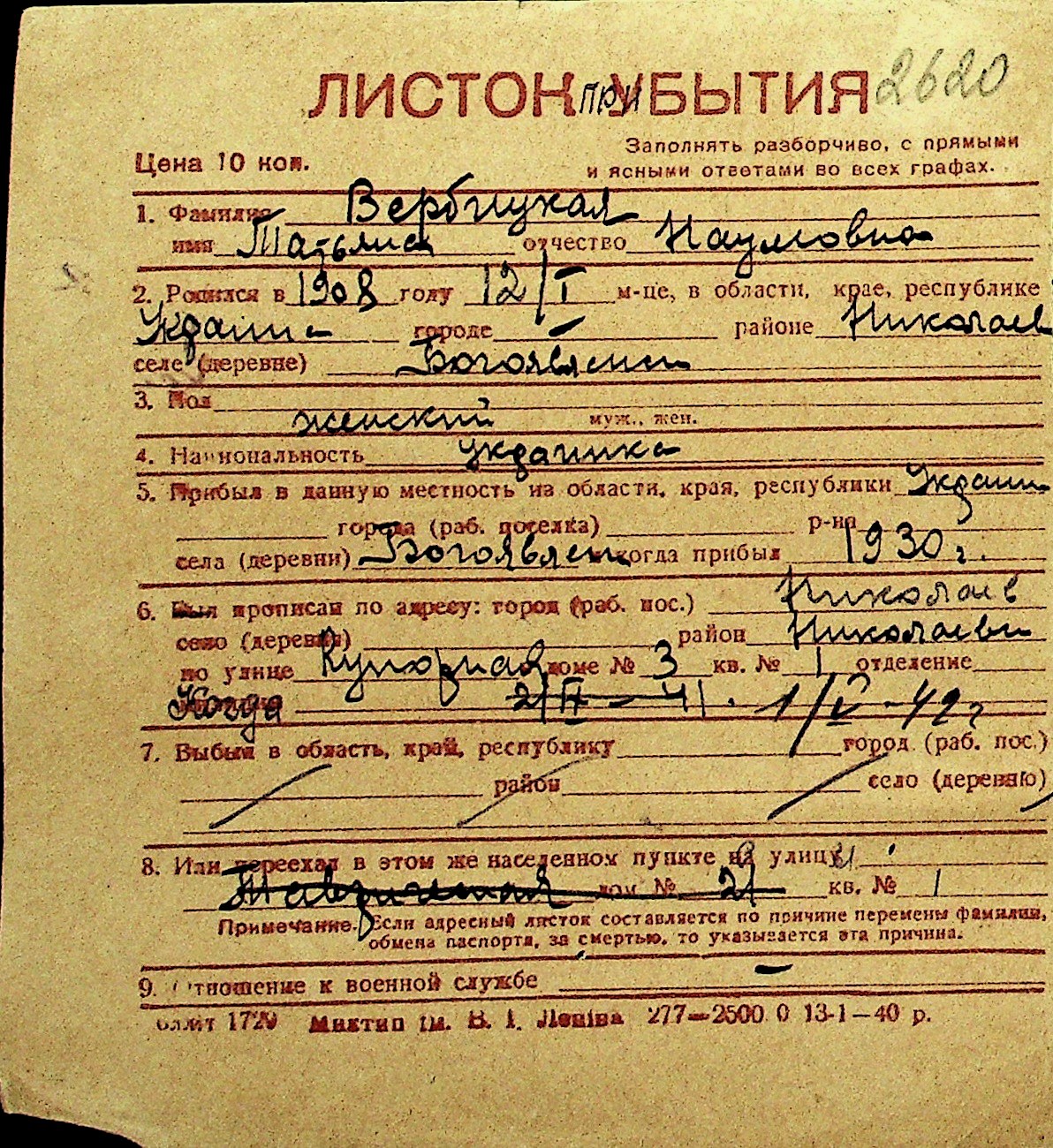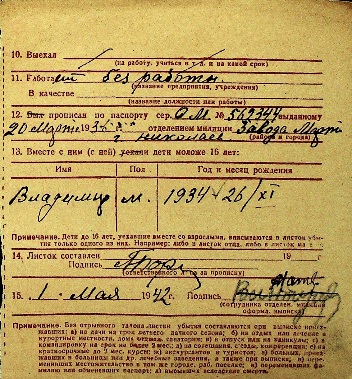 • • Перелік карток до фонду № Н-1016