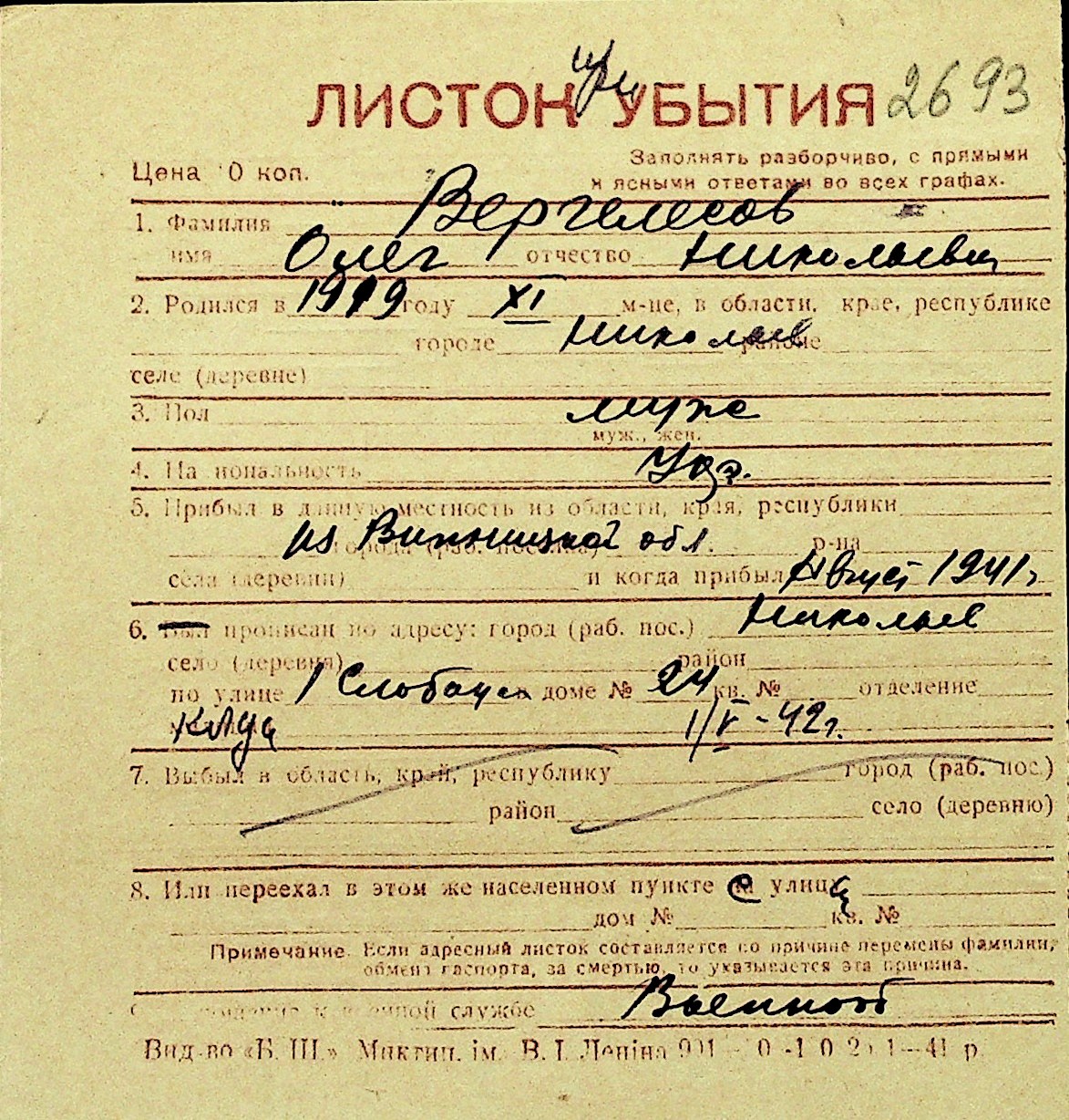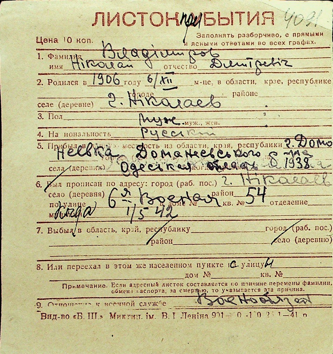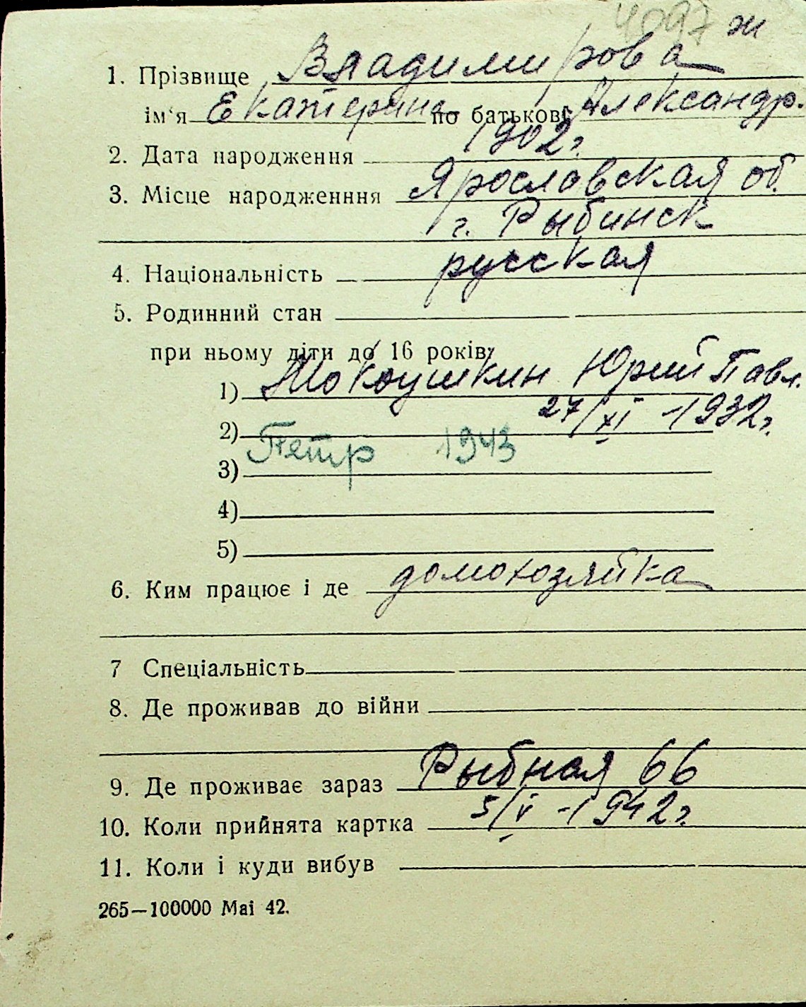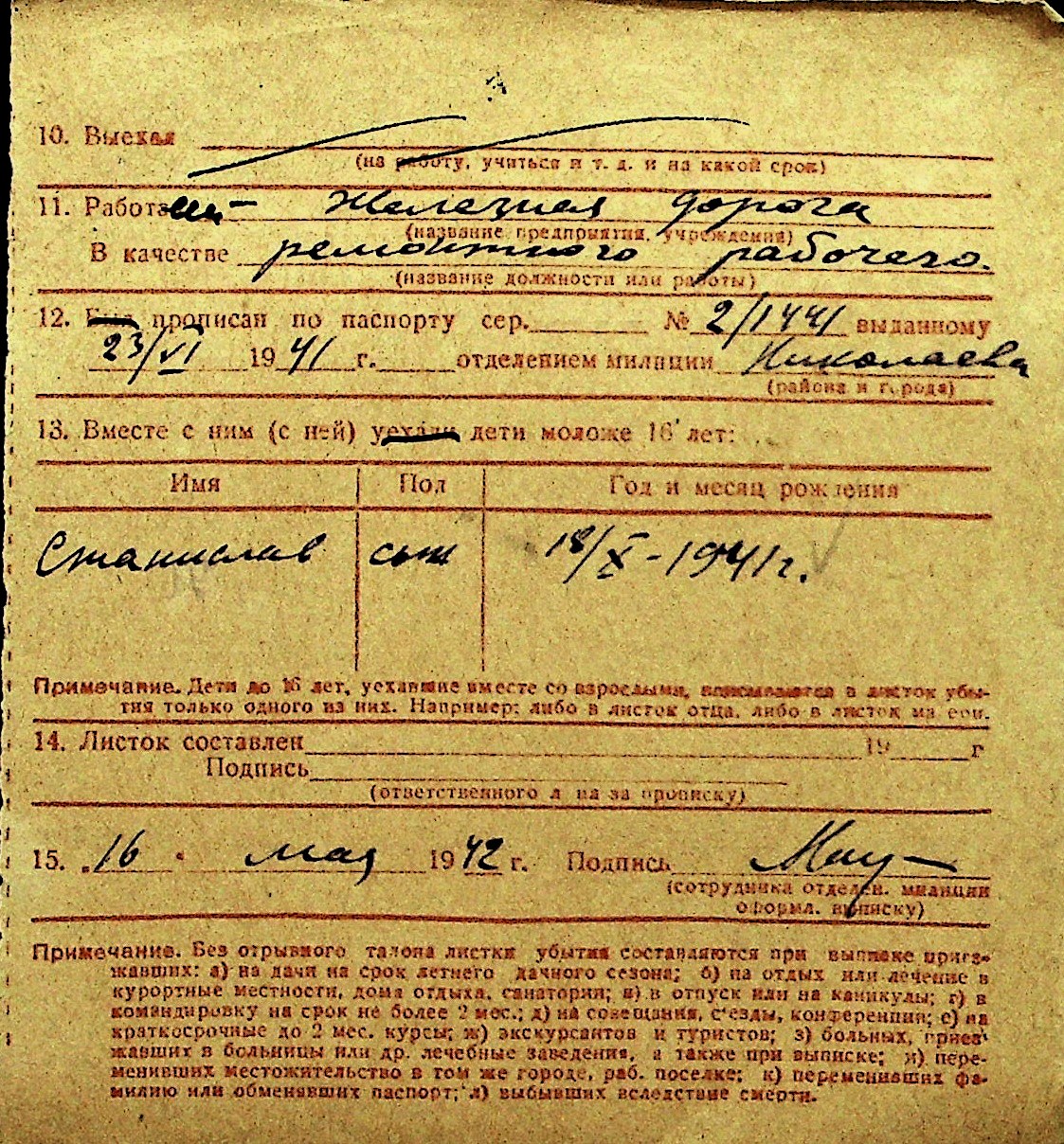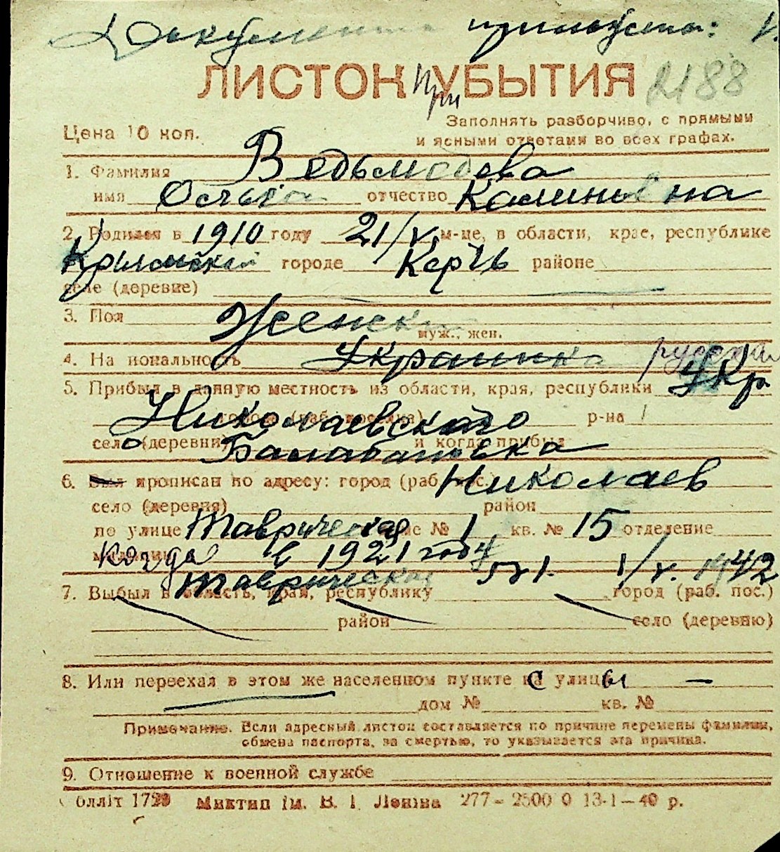 • • Перелік карток до фонду № Н-1016