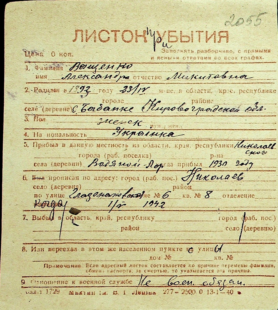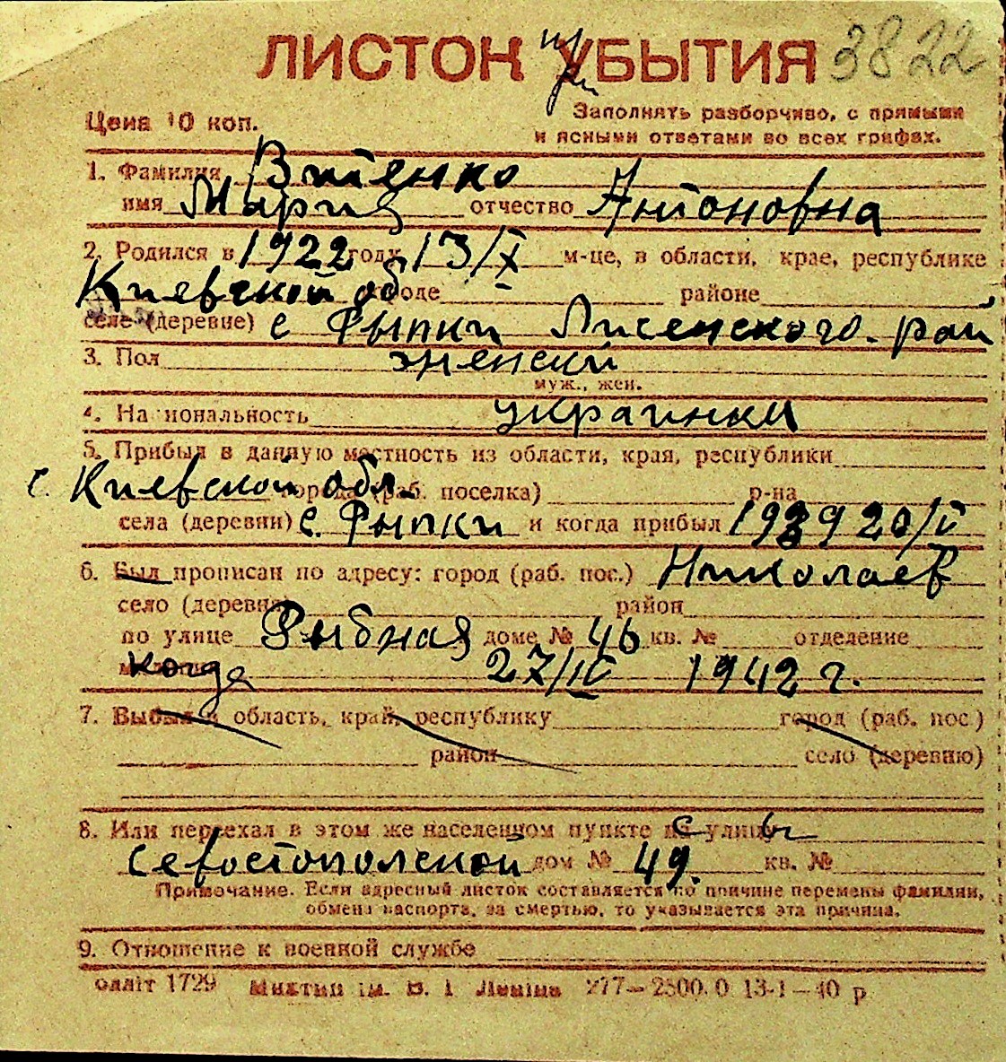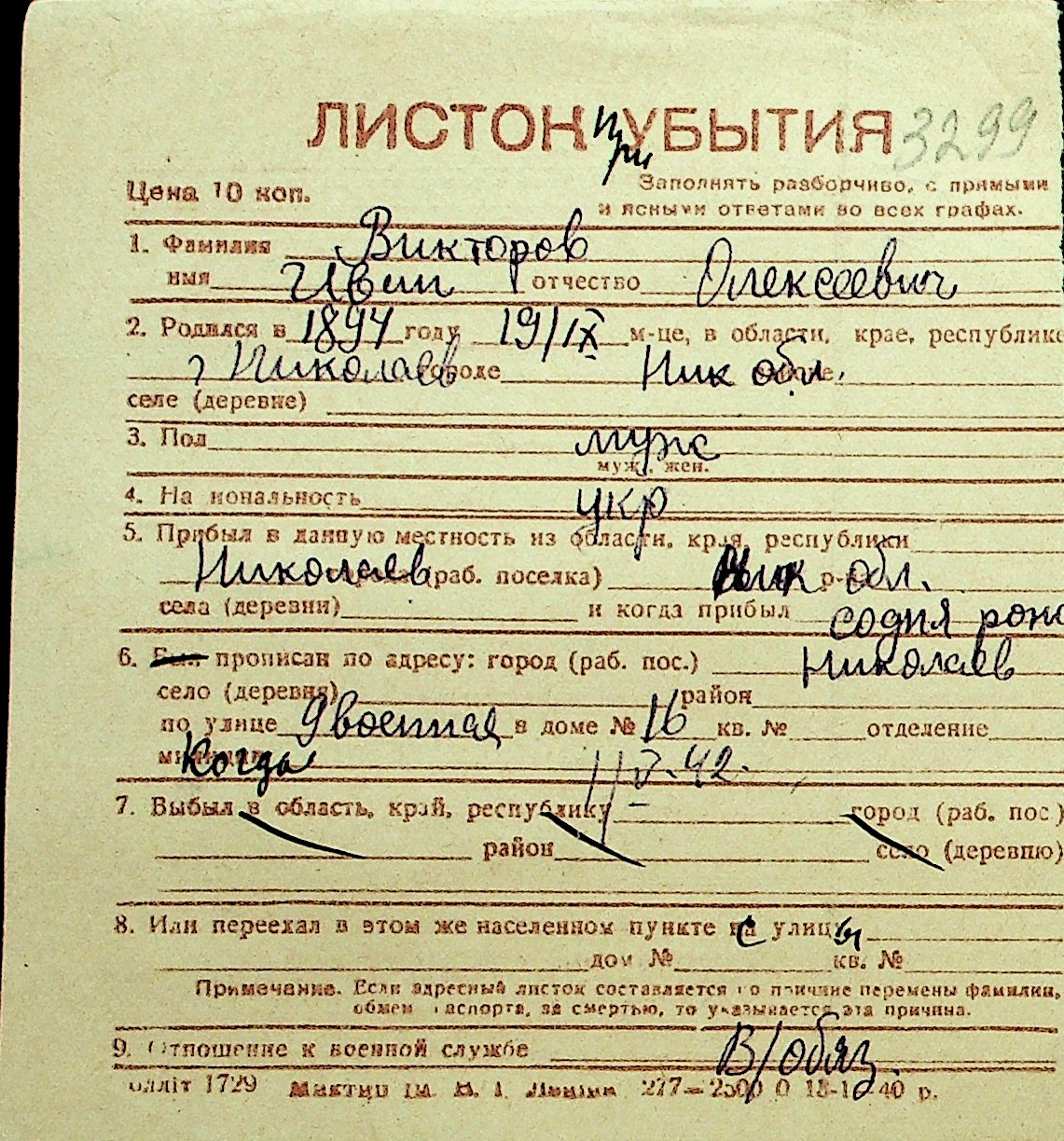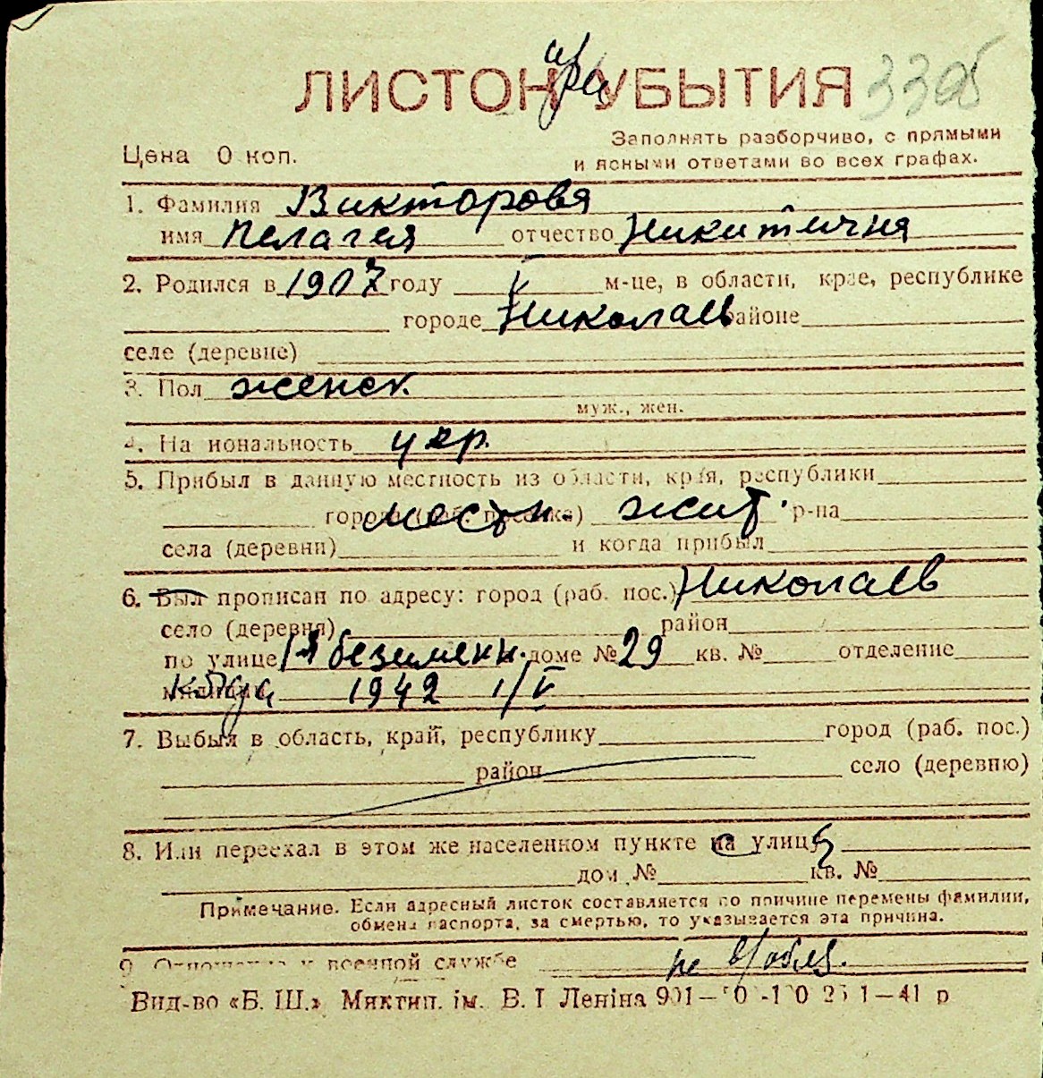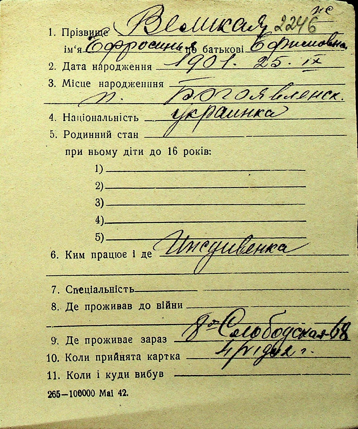 • • Перелік карток до фонду № Н-1016