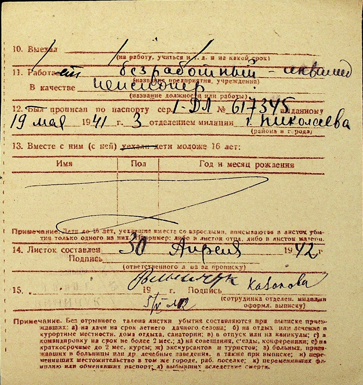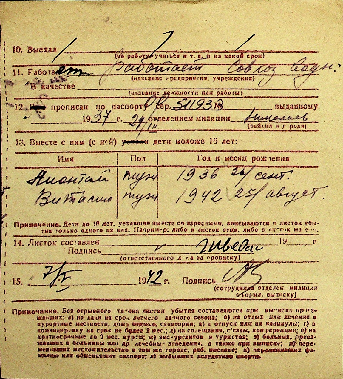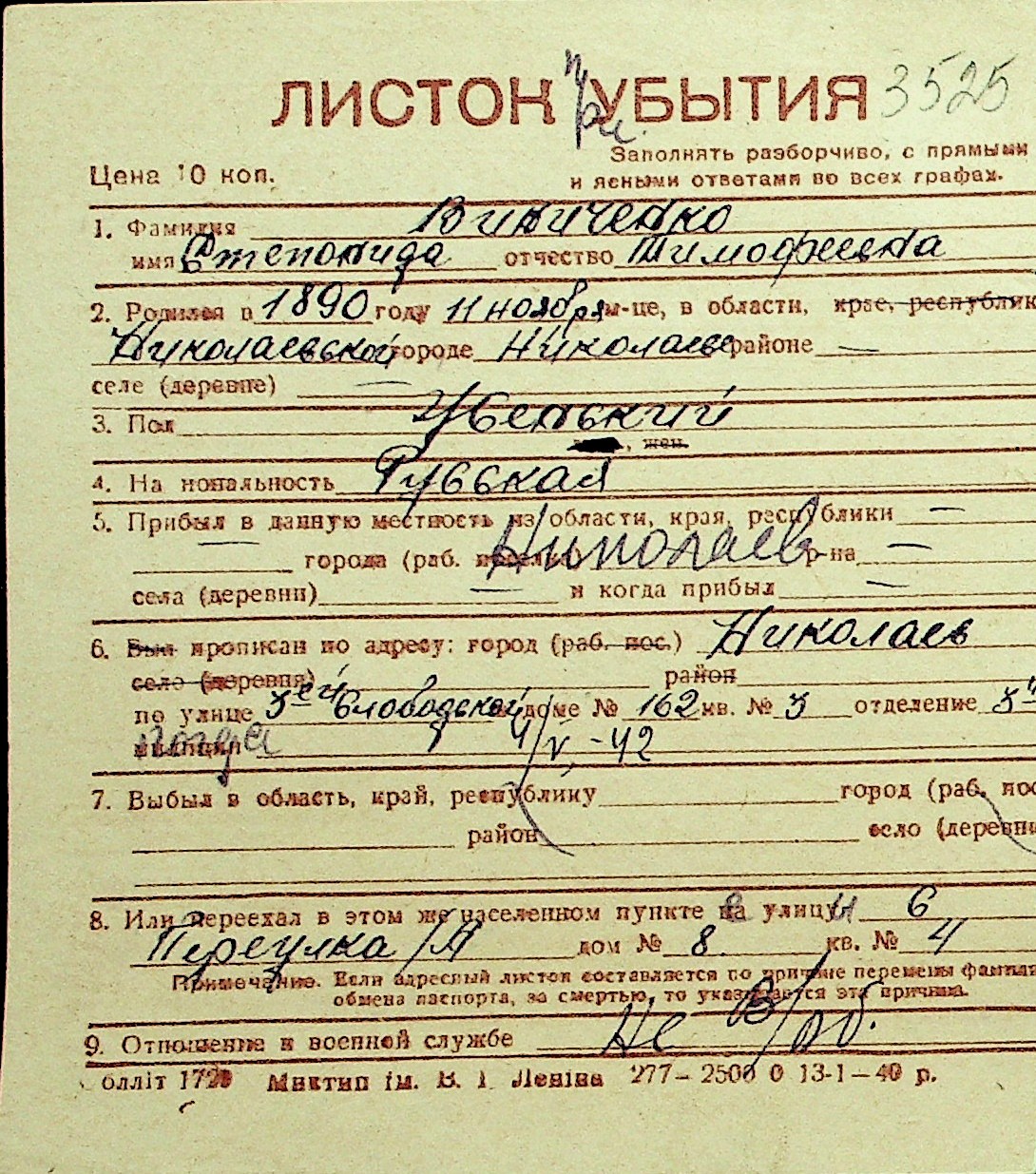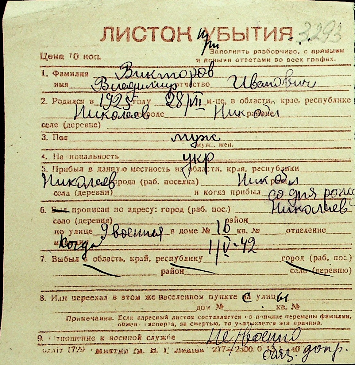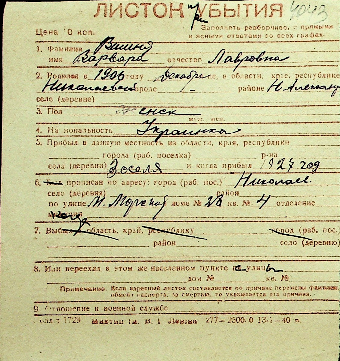 • • Перелік карток до фонду № Н-1016