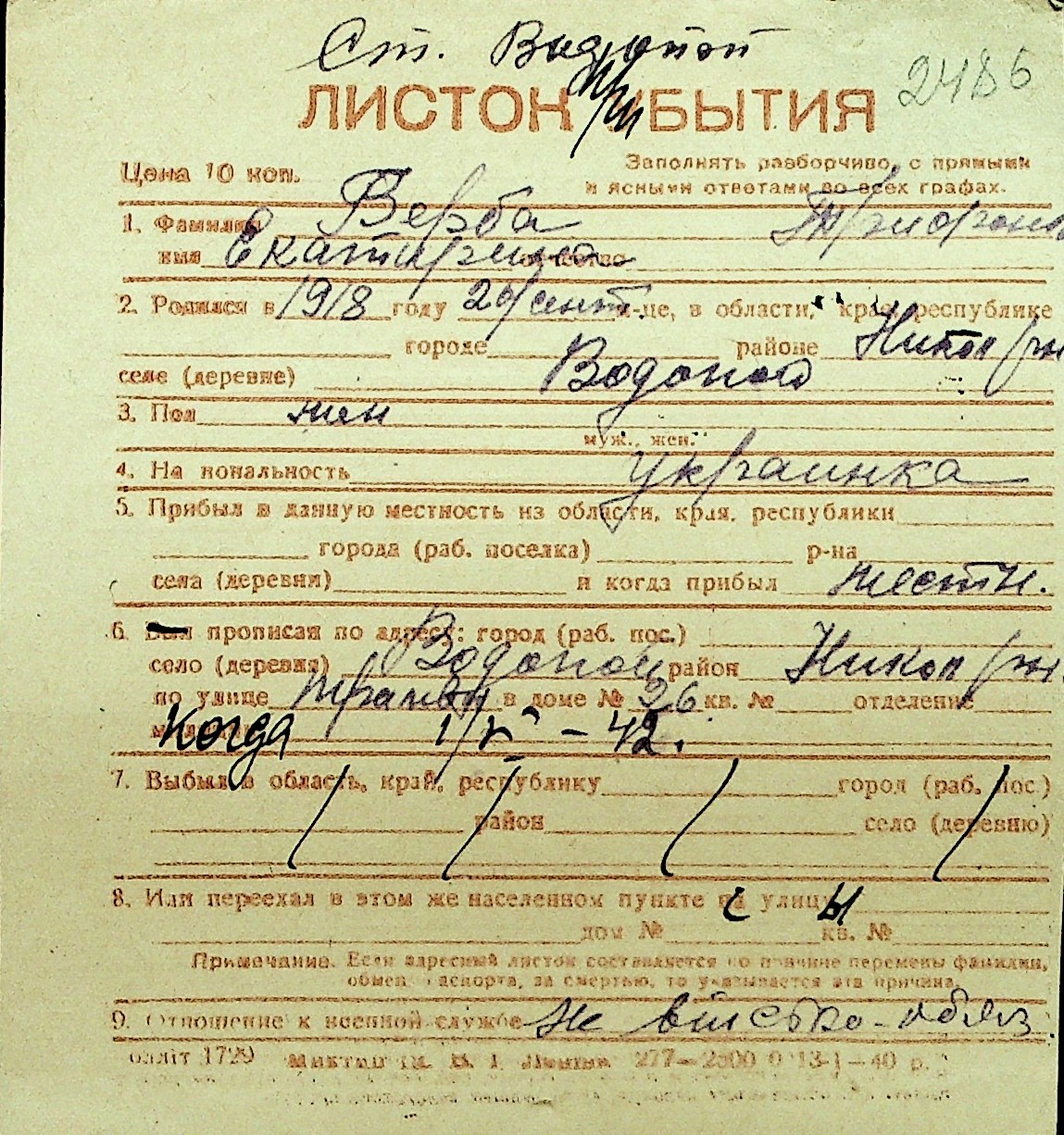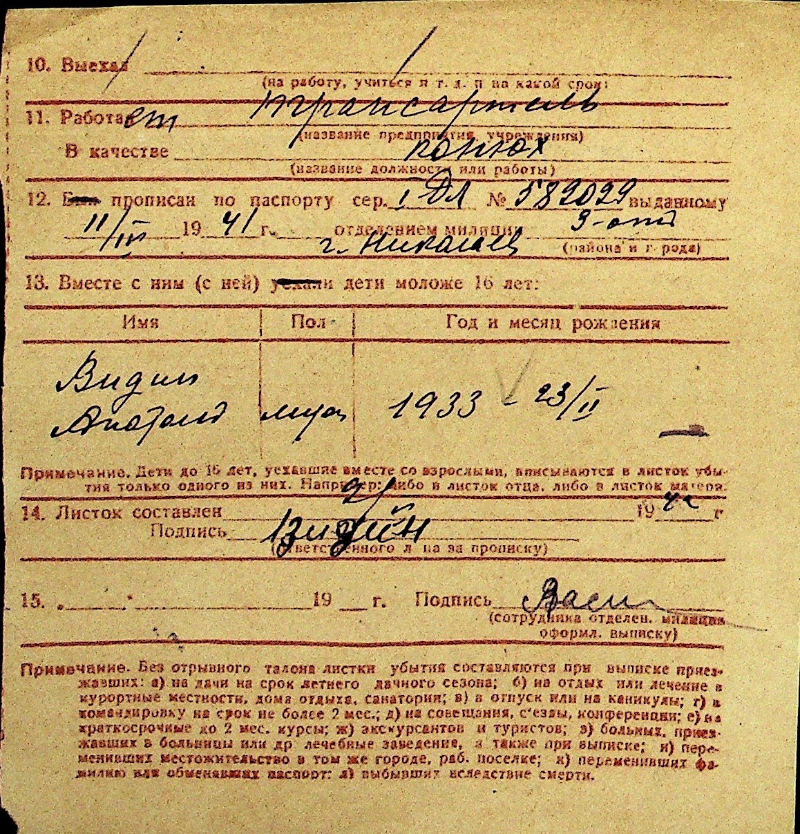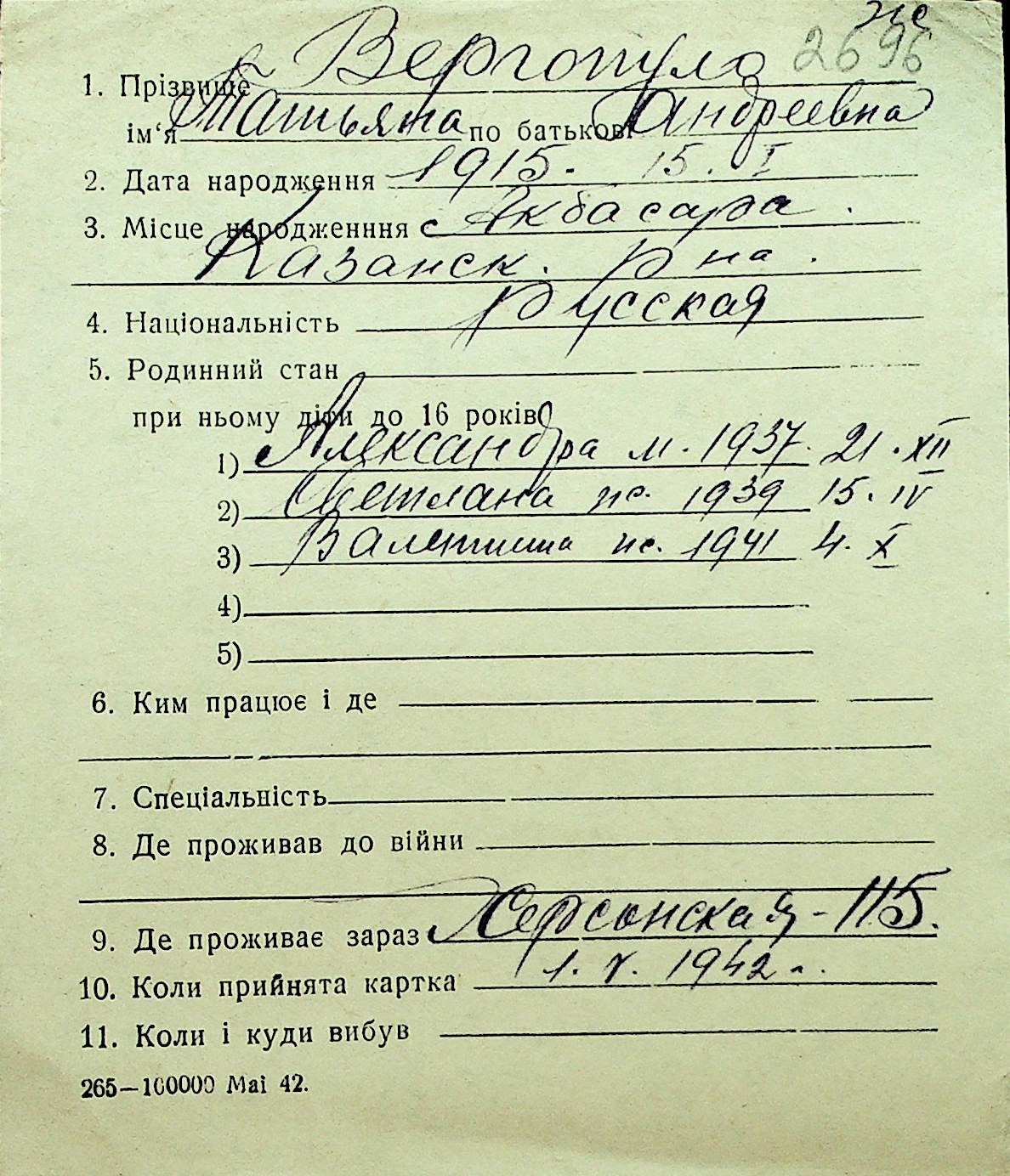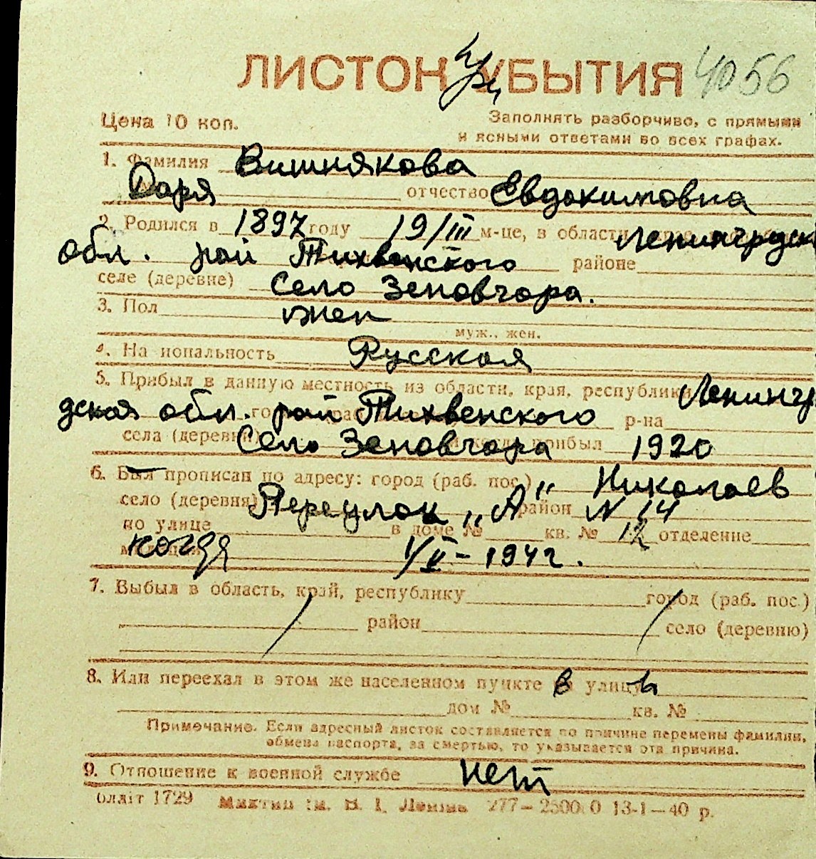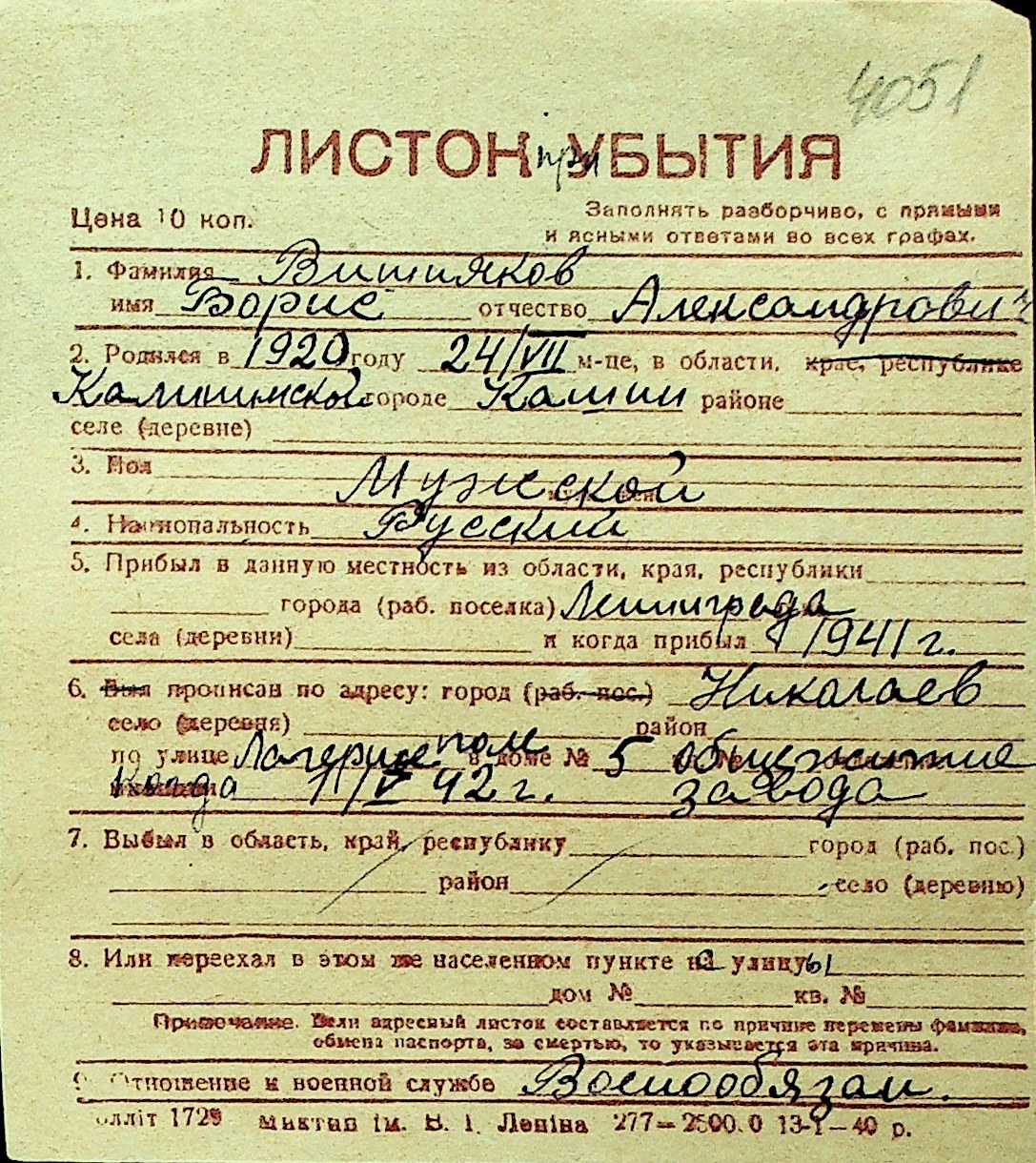 • • Перелік карток до фонду № Н-1016