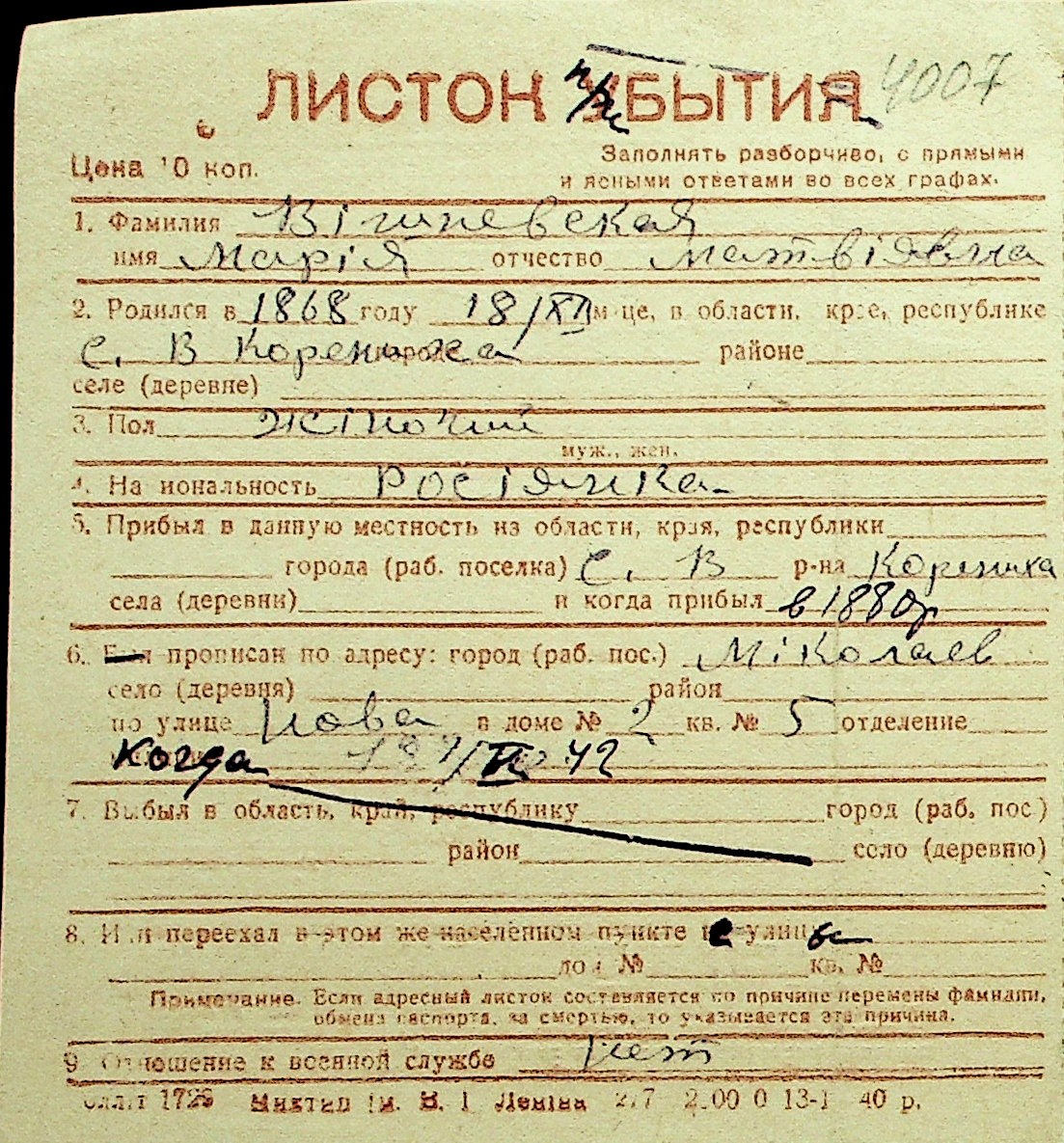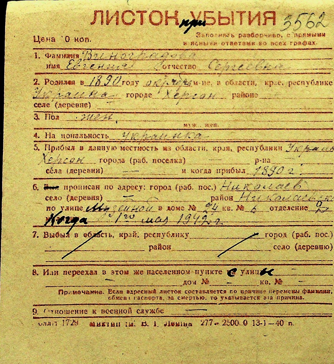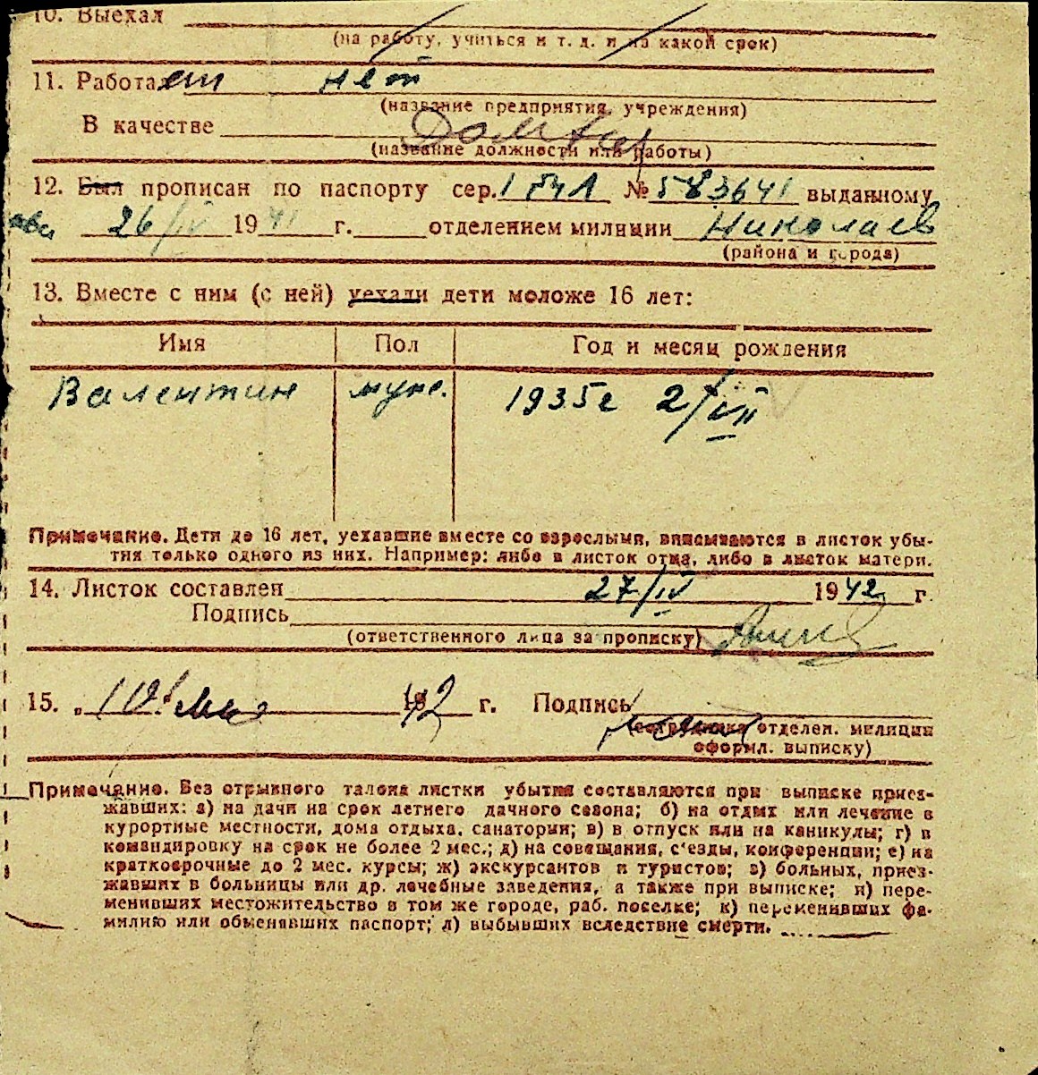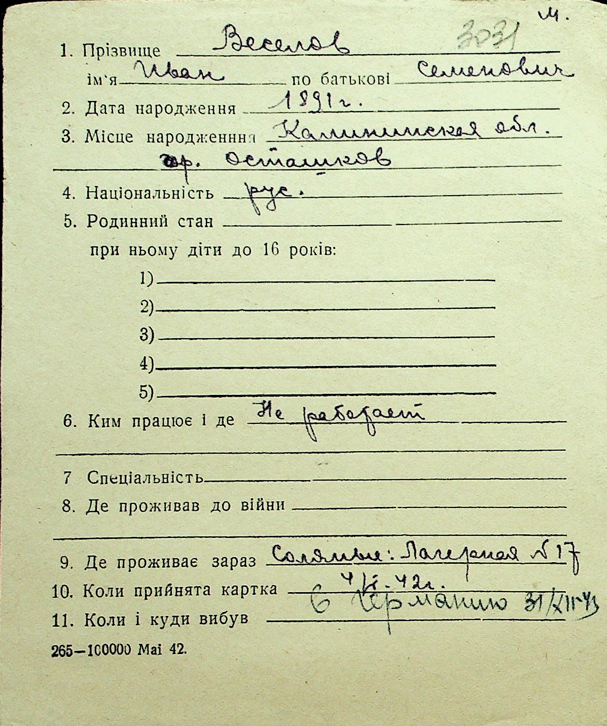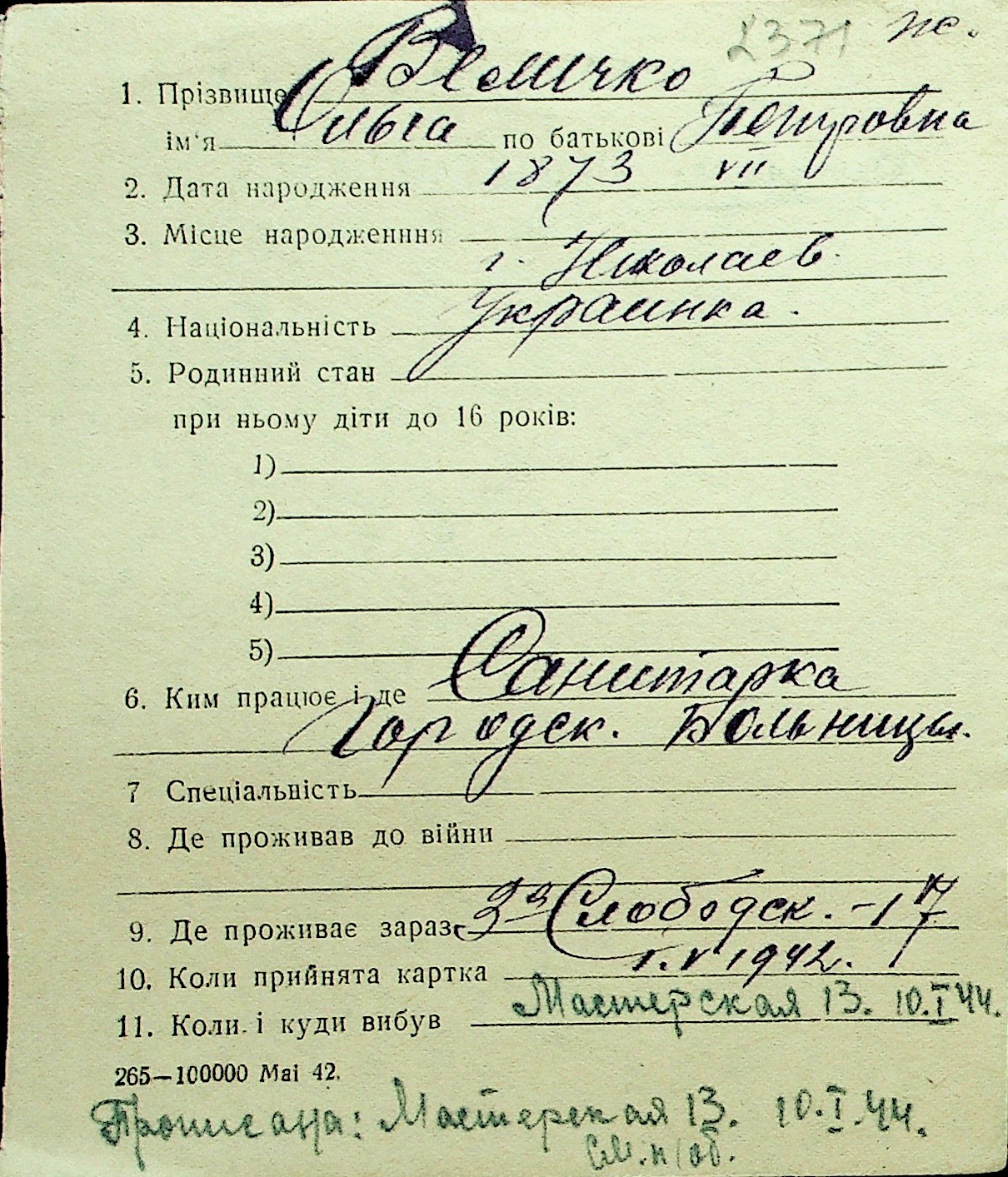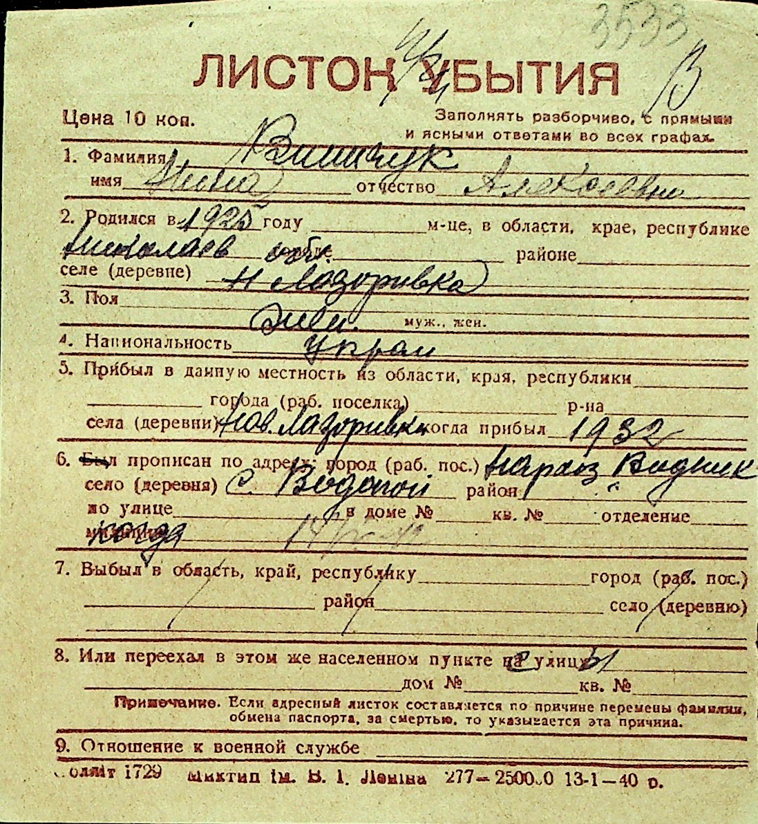 • • Перелік карток до фонду № Н-1016