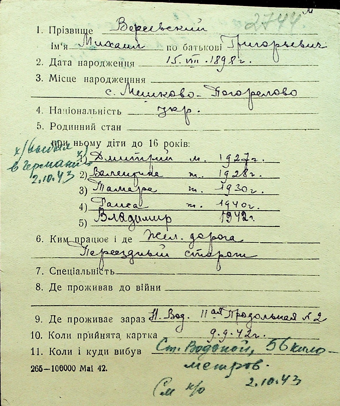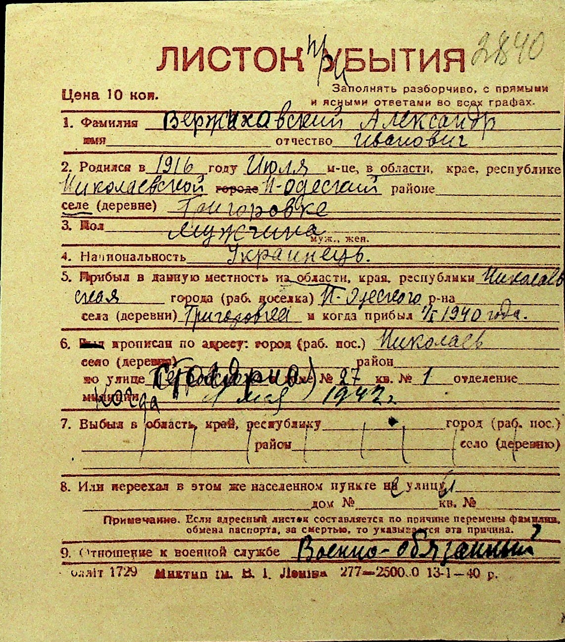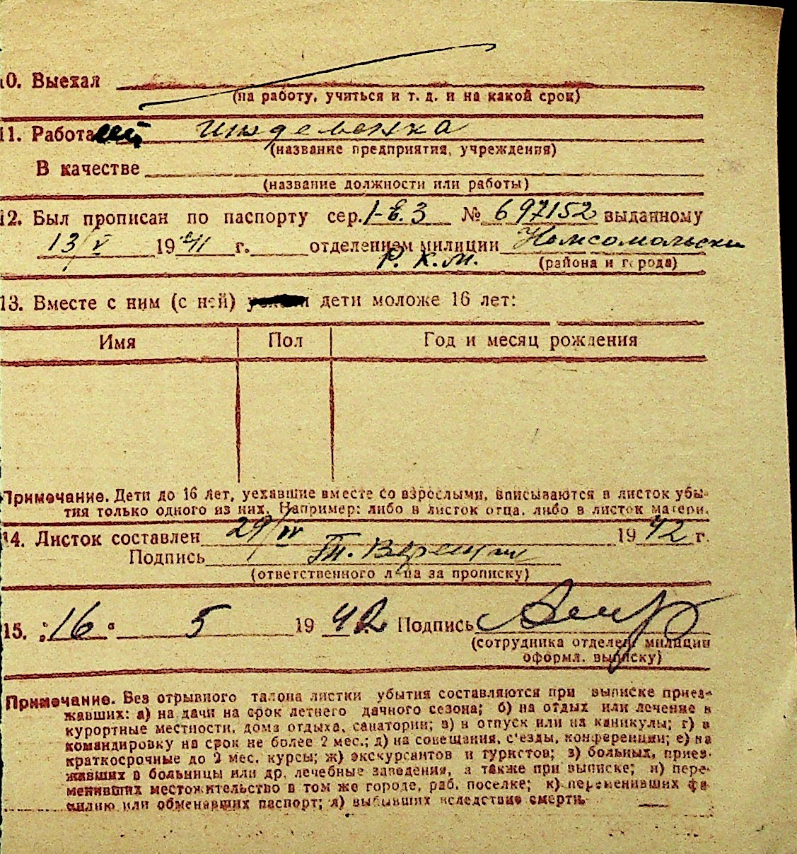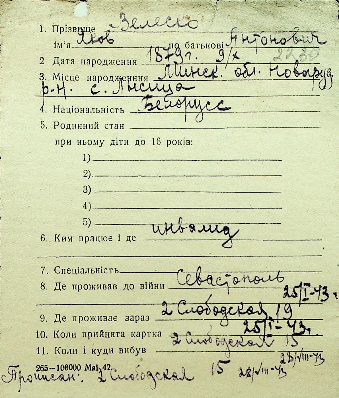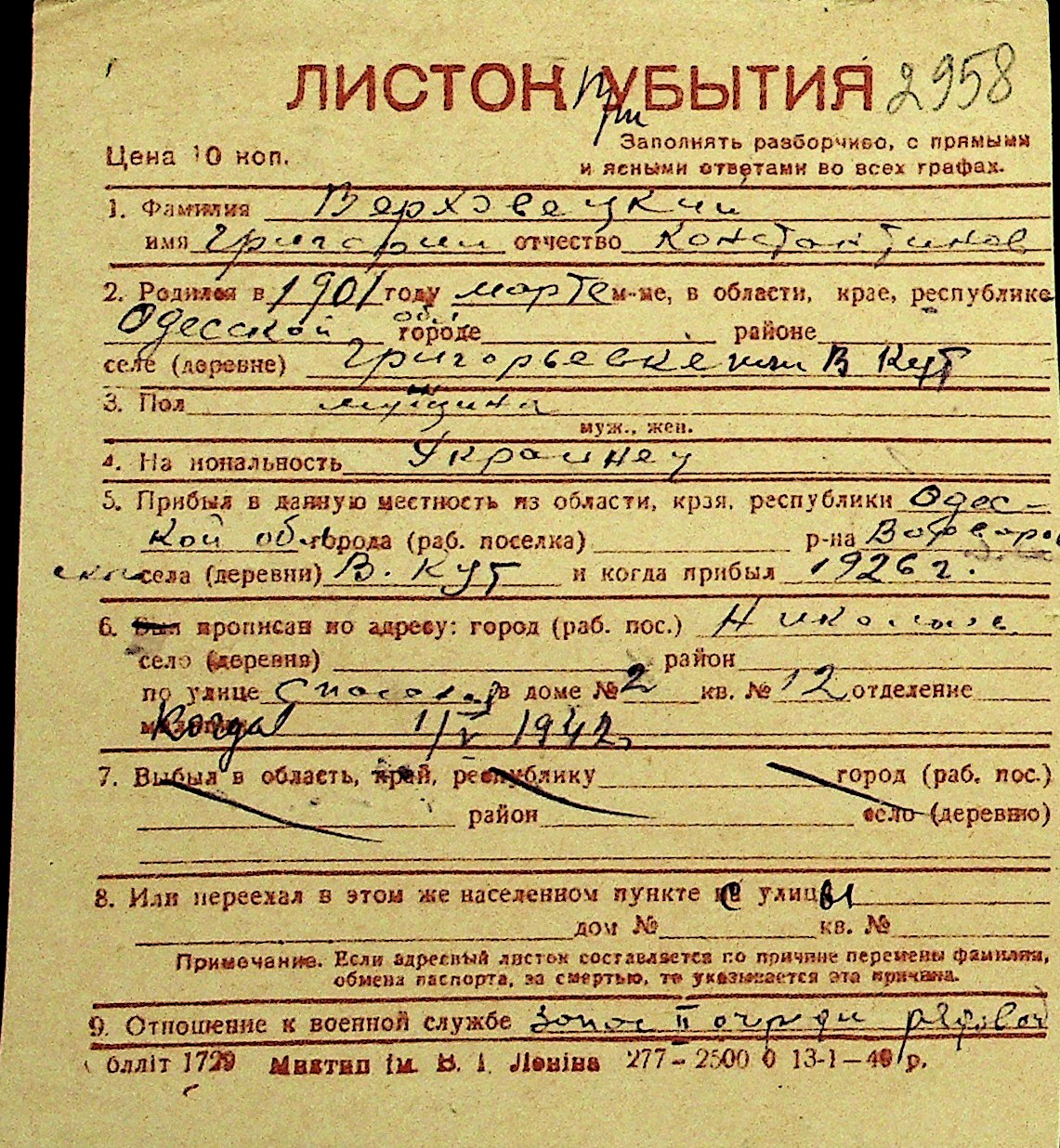 • • Перелік карток до фонду № Н-1016