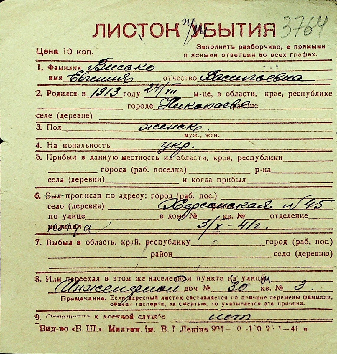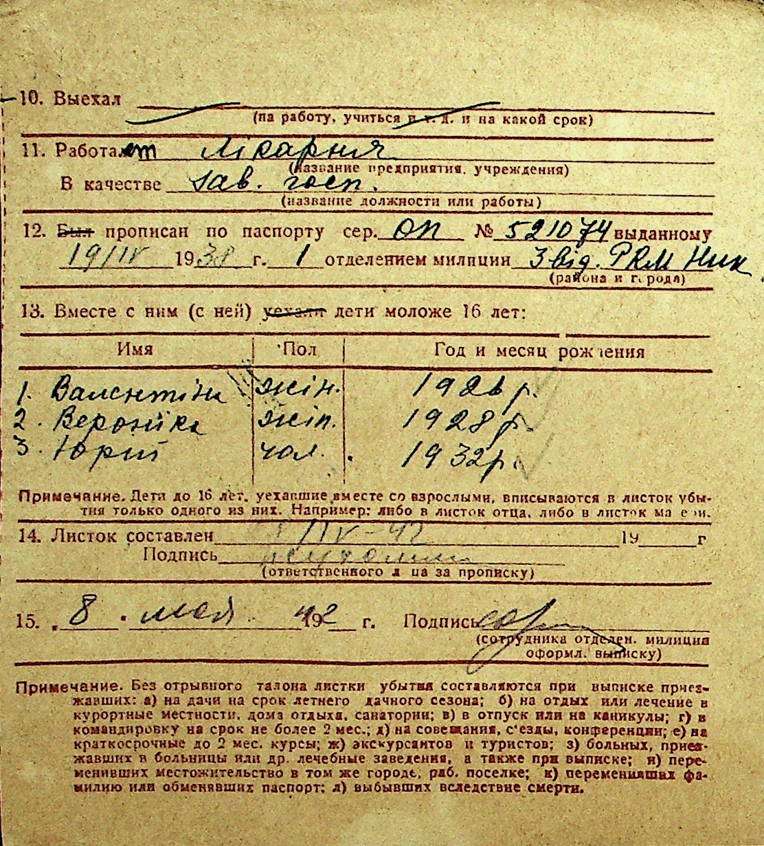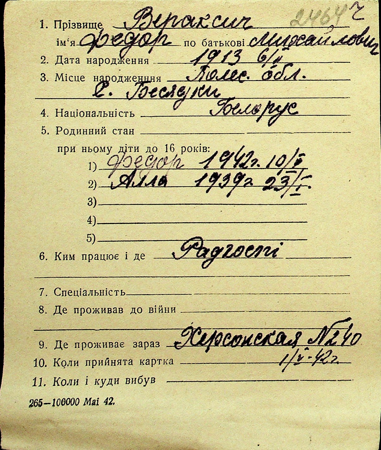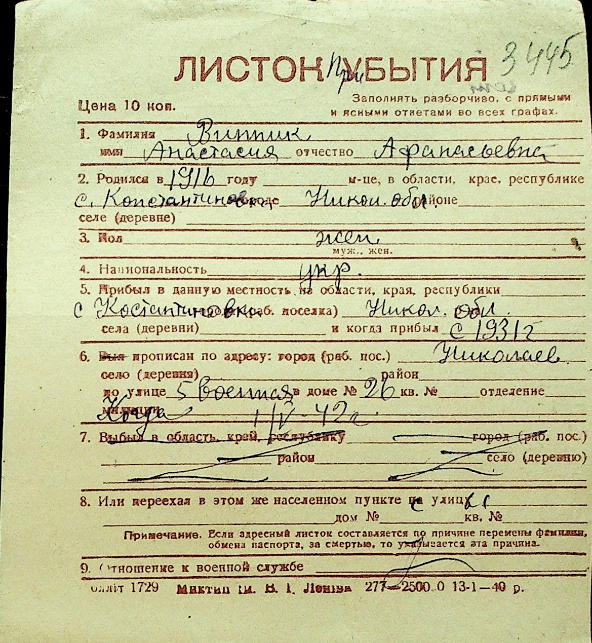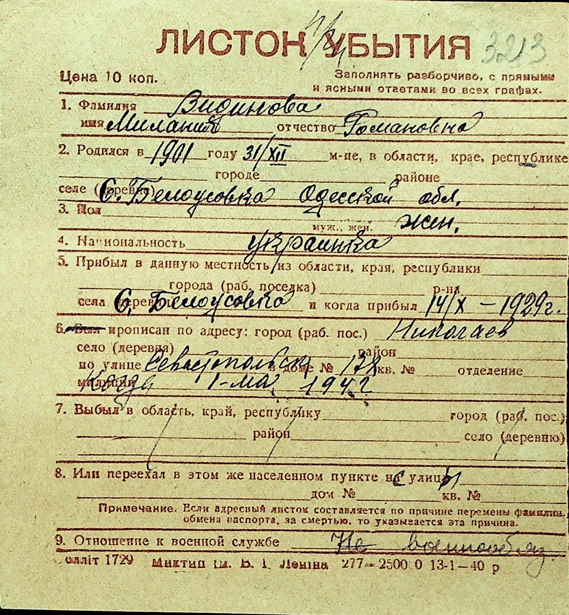 • • Перелік карток до фонду № Н-1016