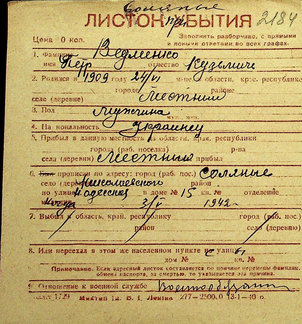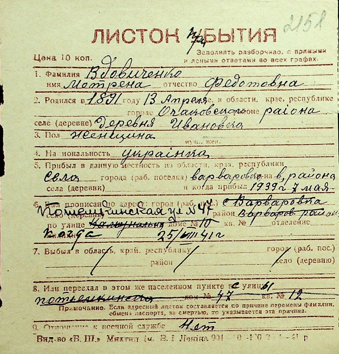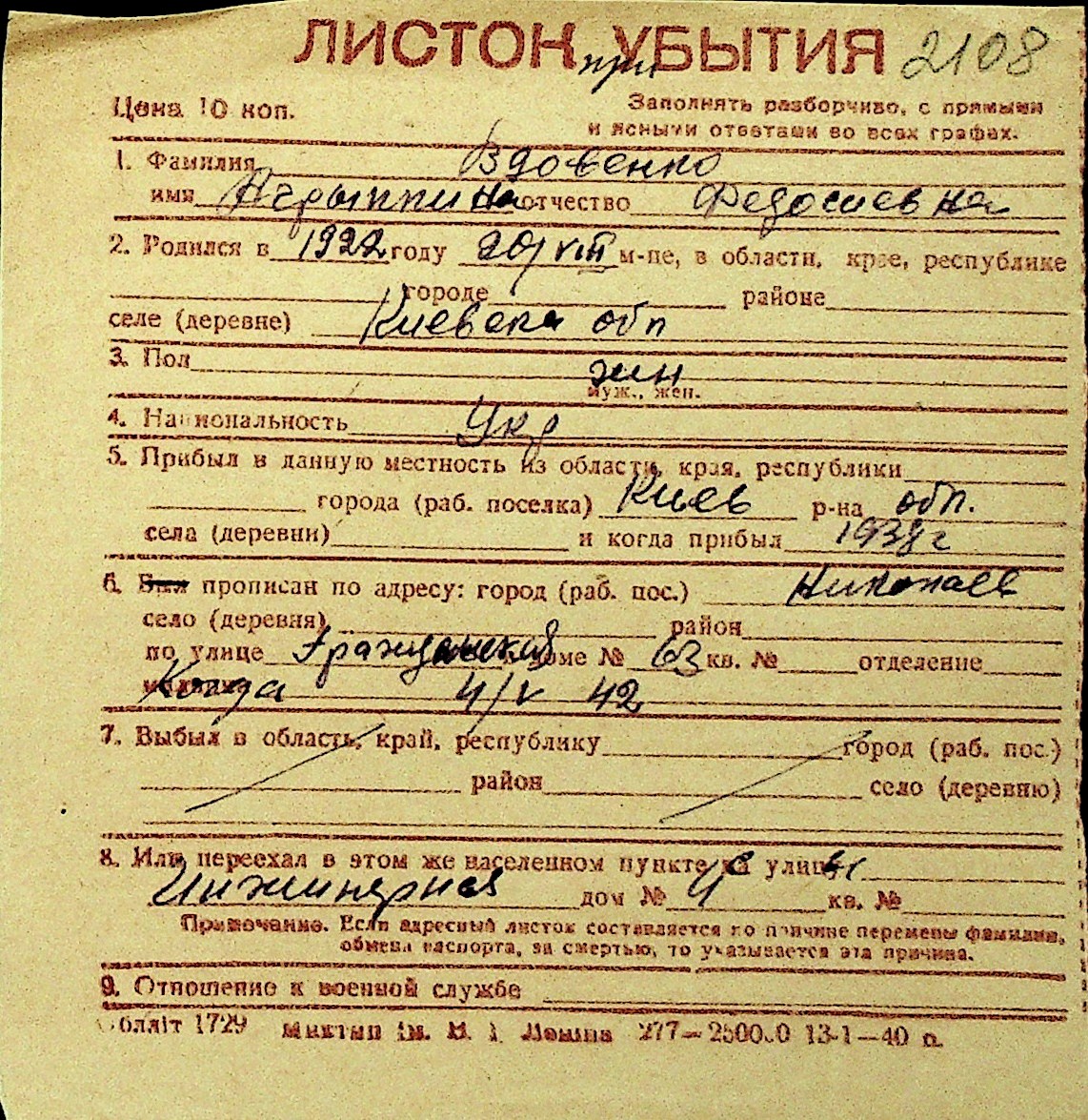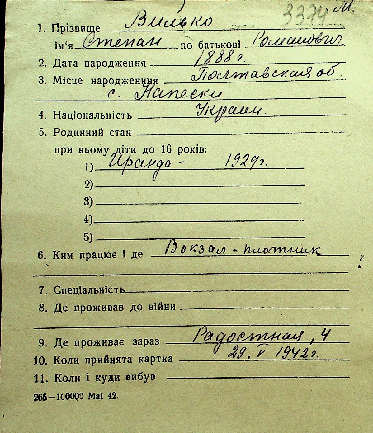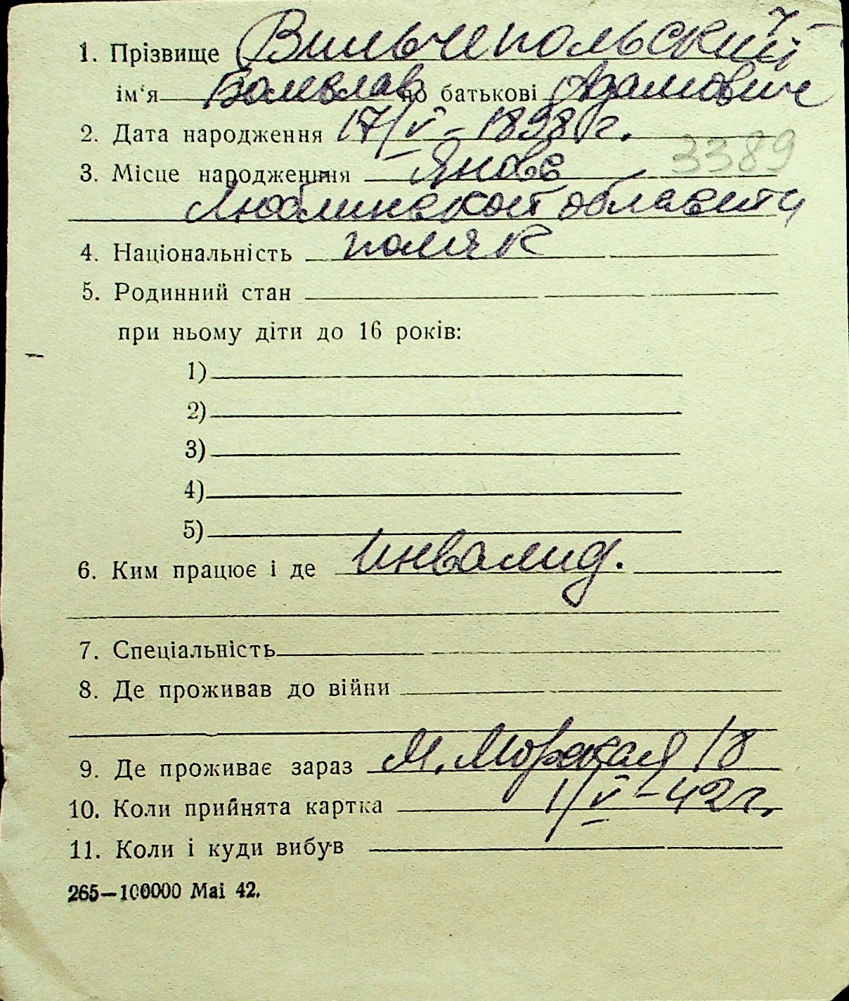 • • Перелік карток до фонду № Н-1016