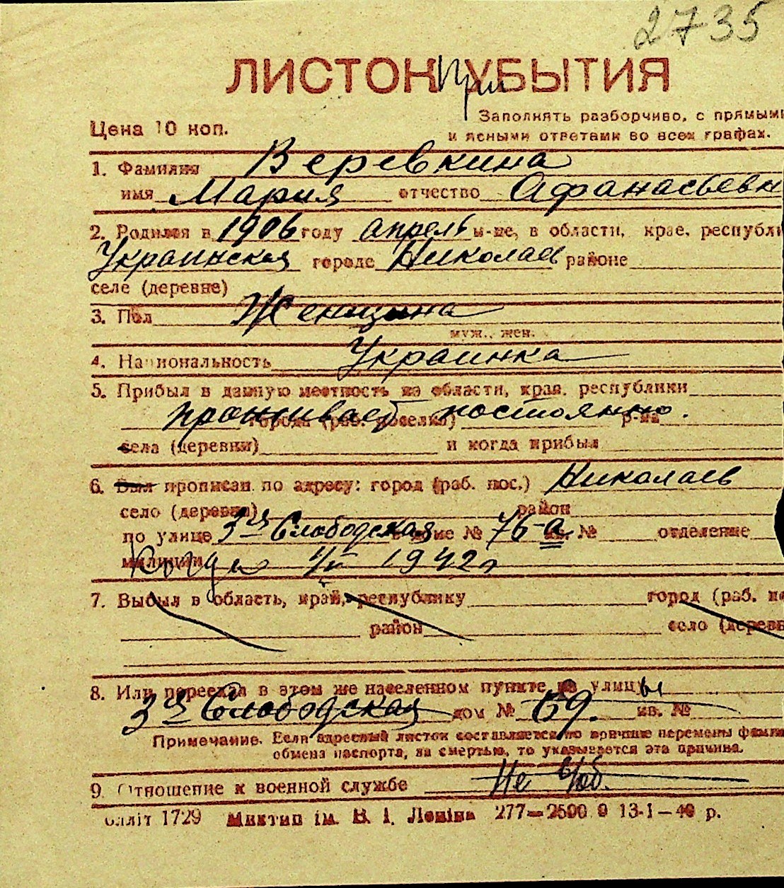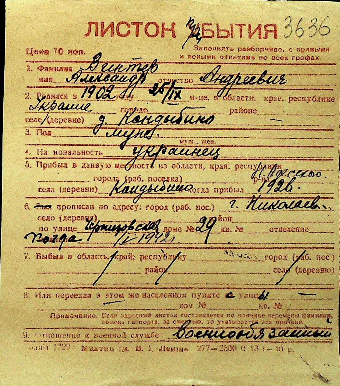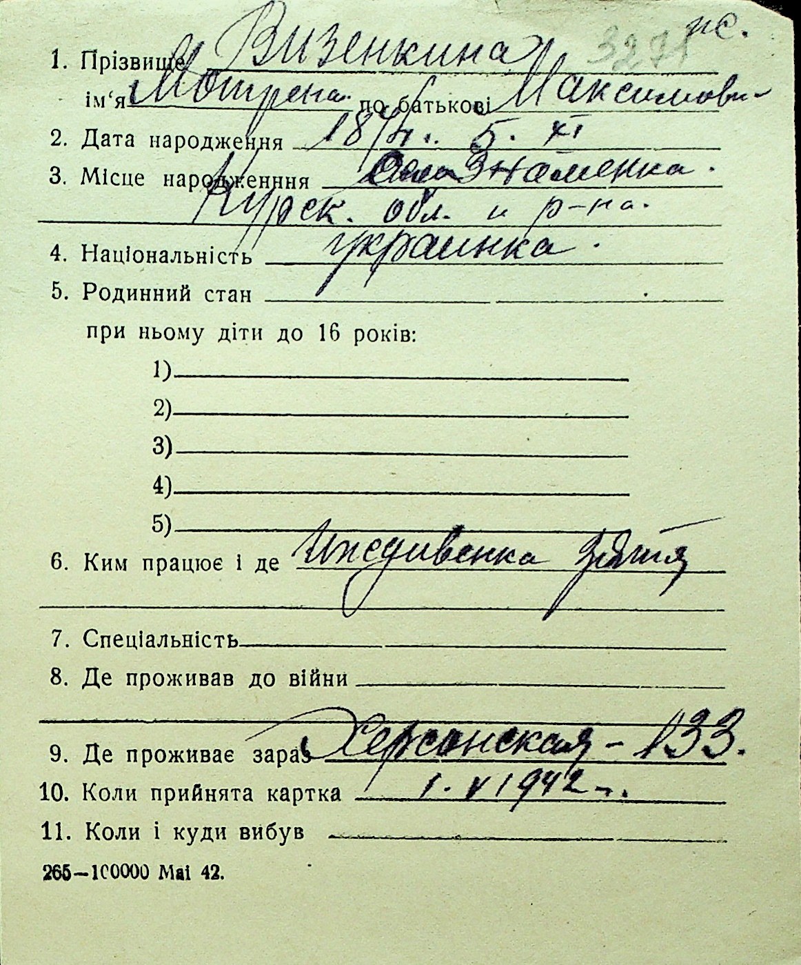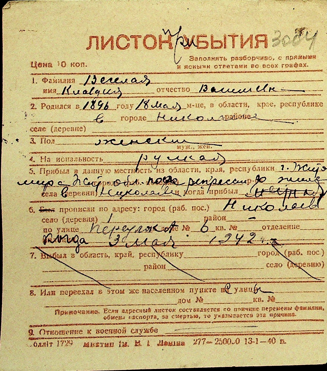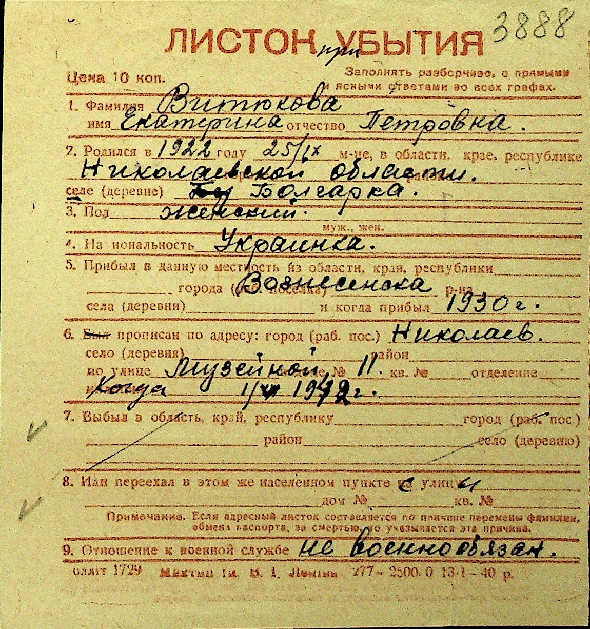 • • Перелік карток до фонду № Н-1016