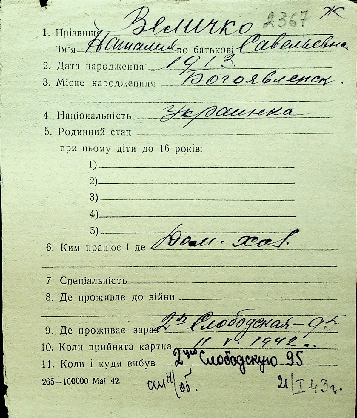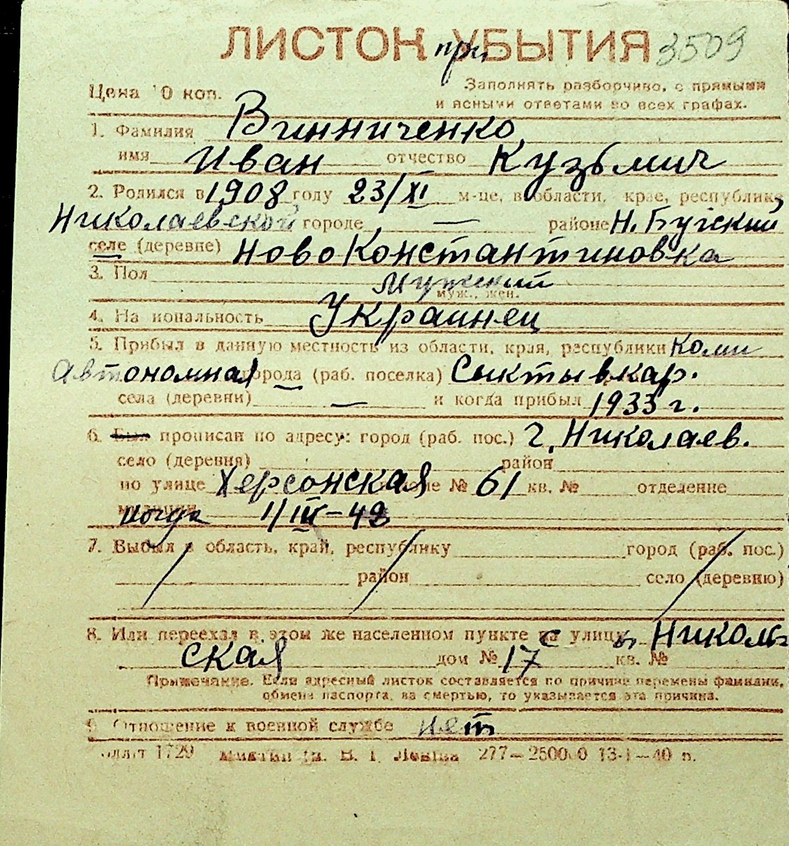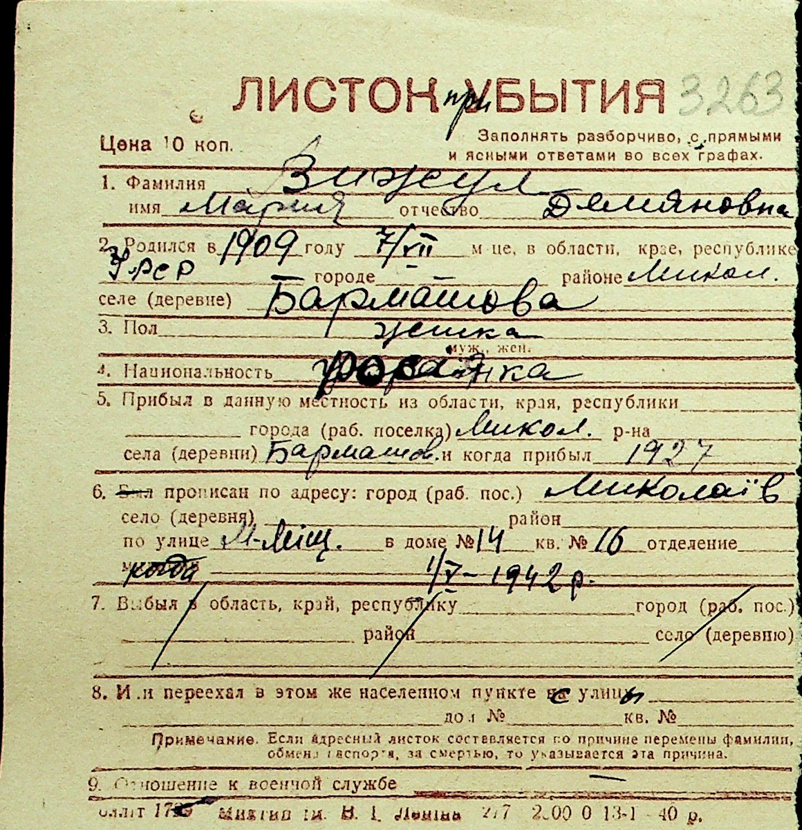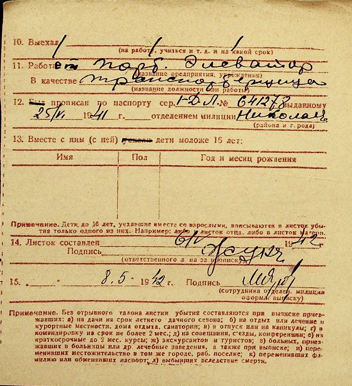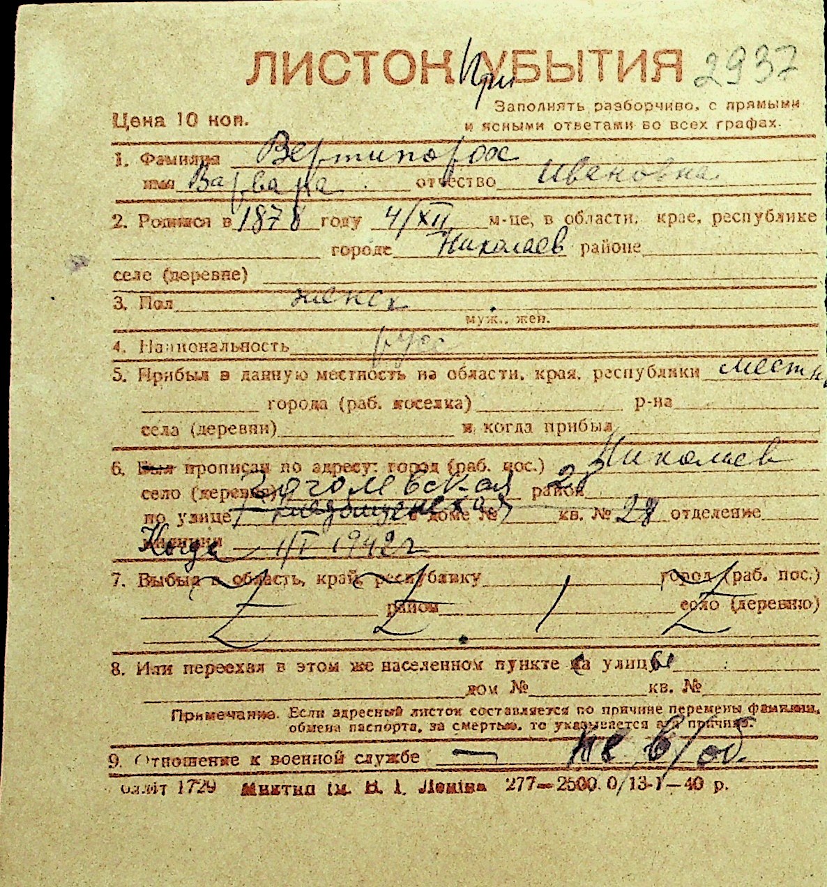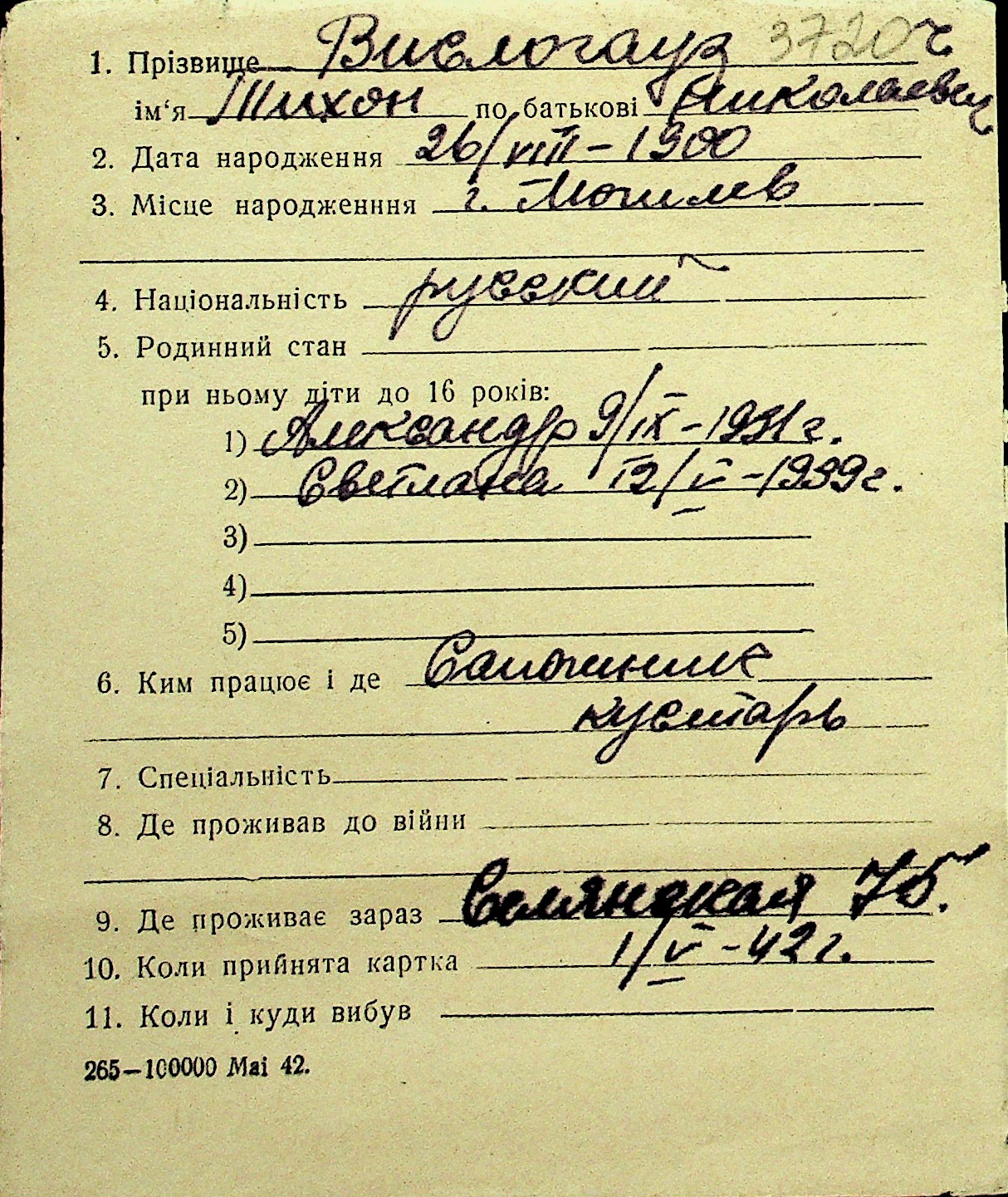 • • Перелік карток до фонду № Н-1016