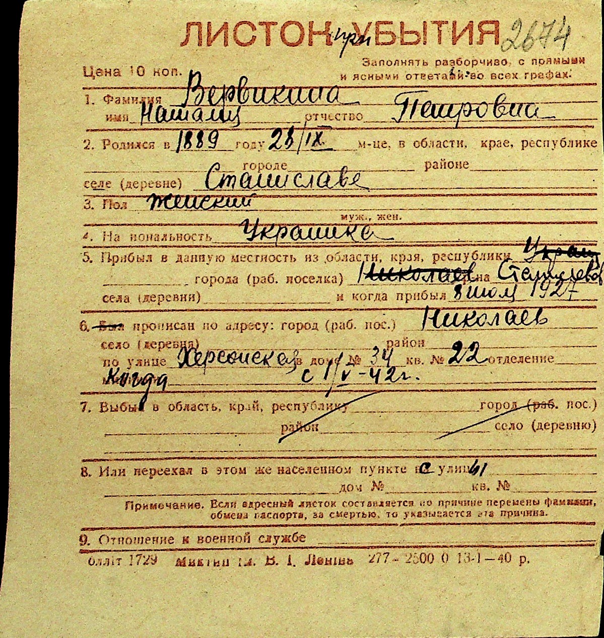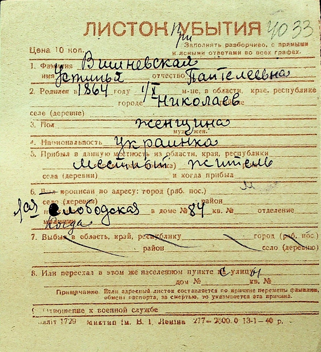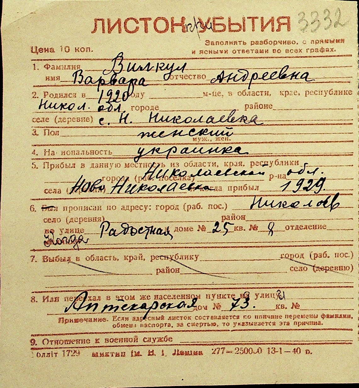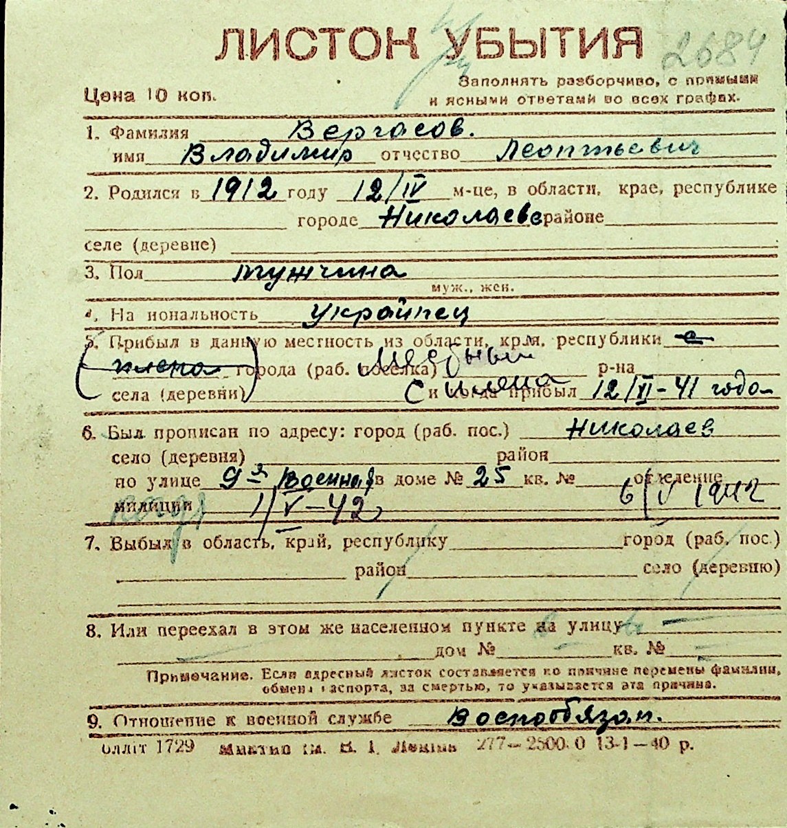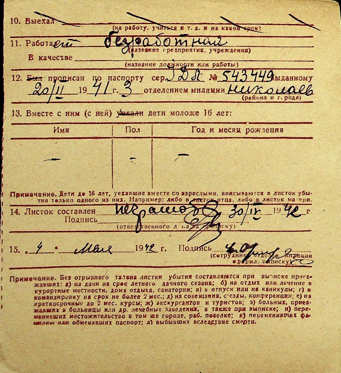 • • Перелік карток до фонду № Н-1016