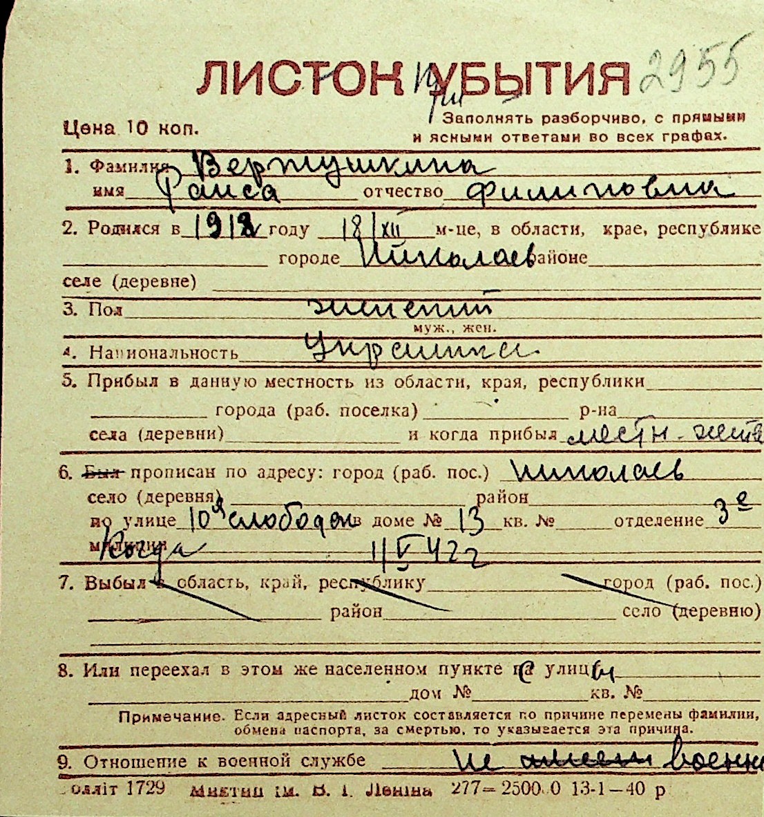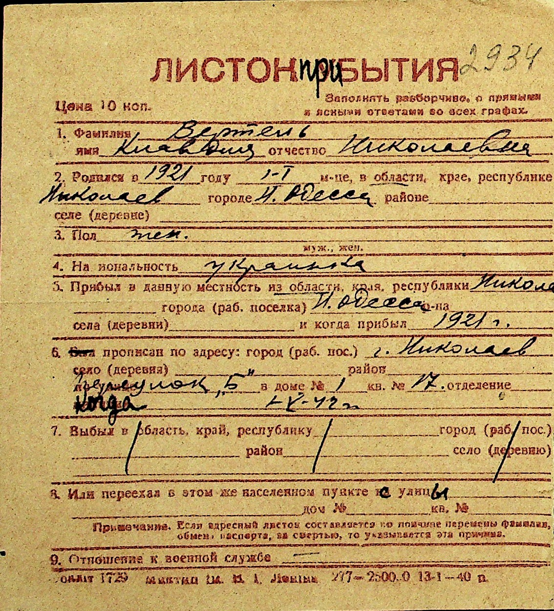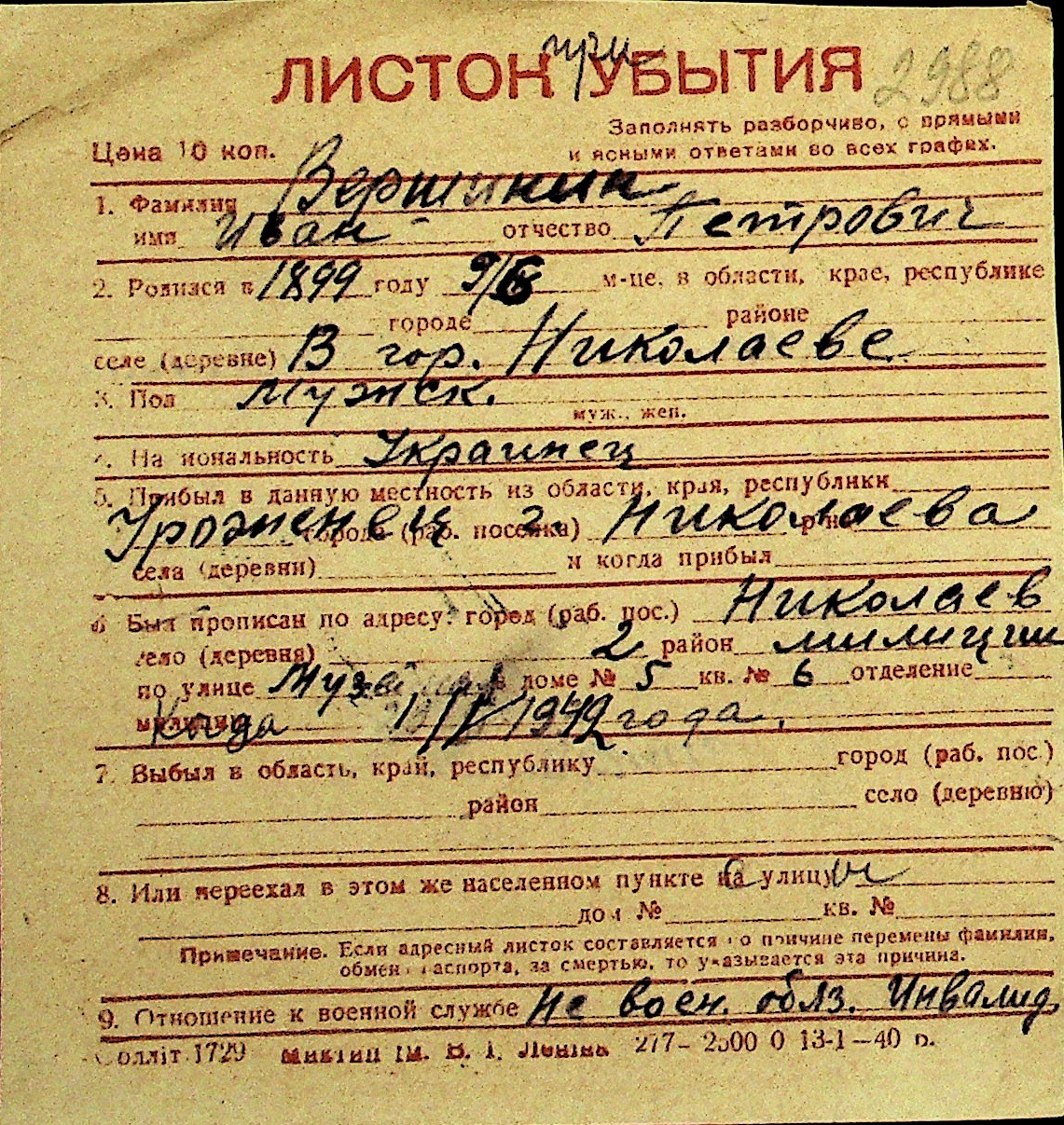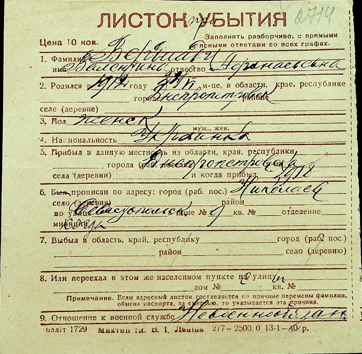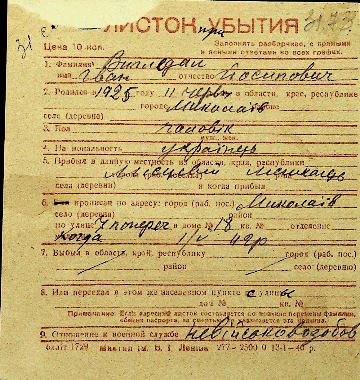 • • Перелік карток до фонду № Н-1016