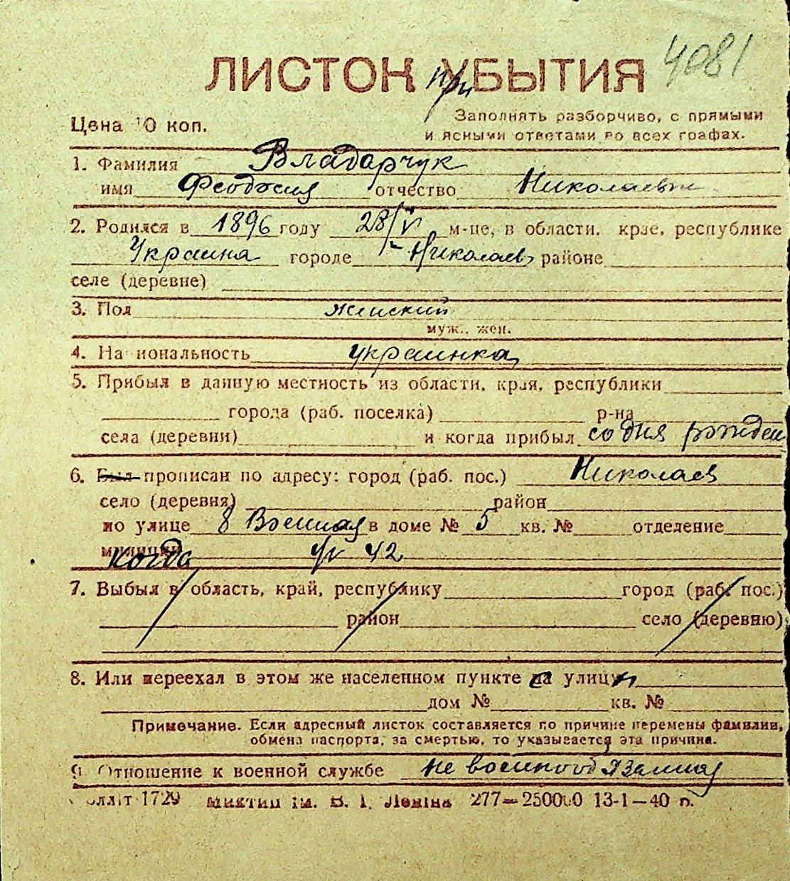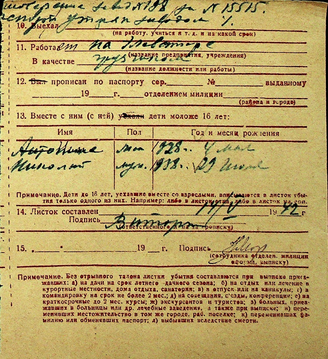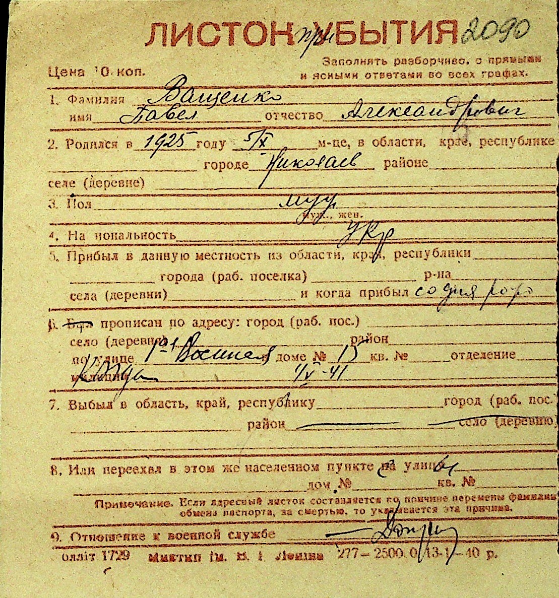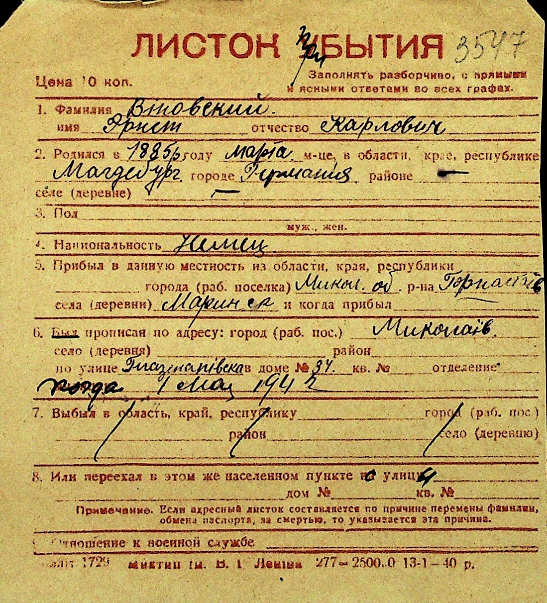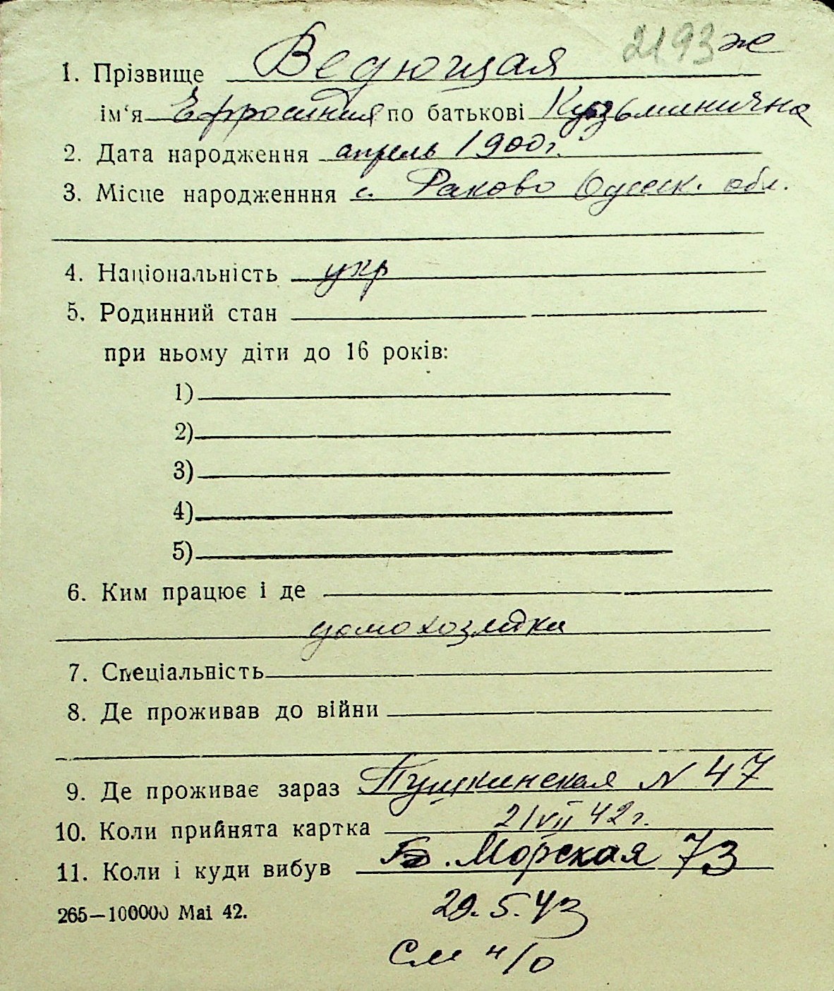 • • Перелік карток до фонду № Н-1016