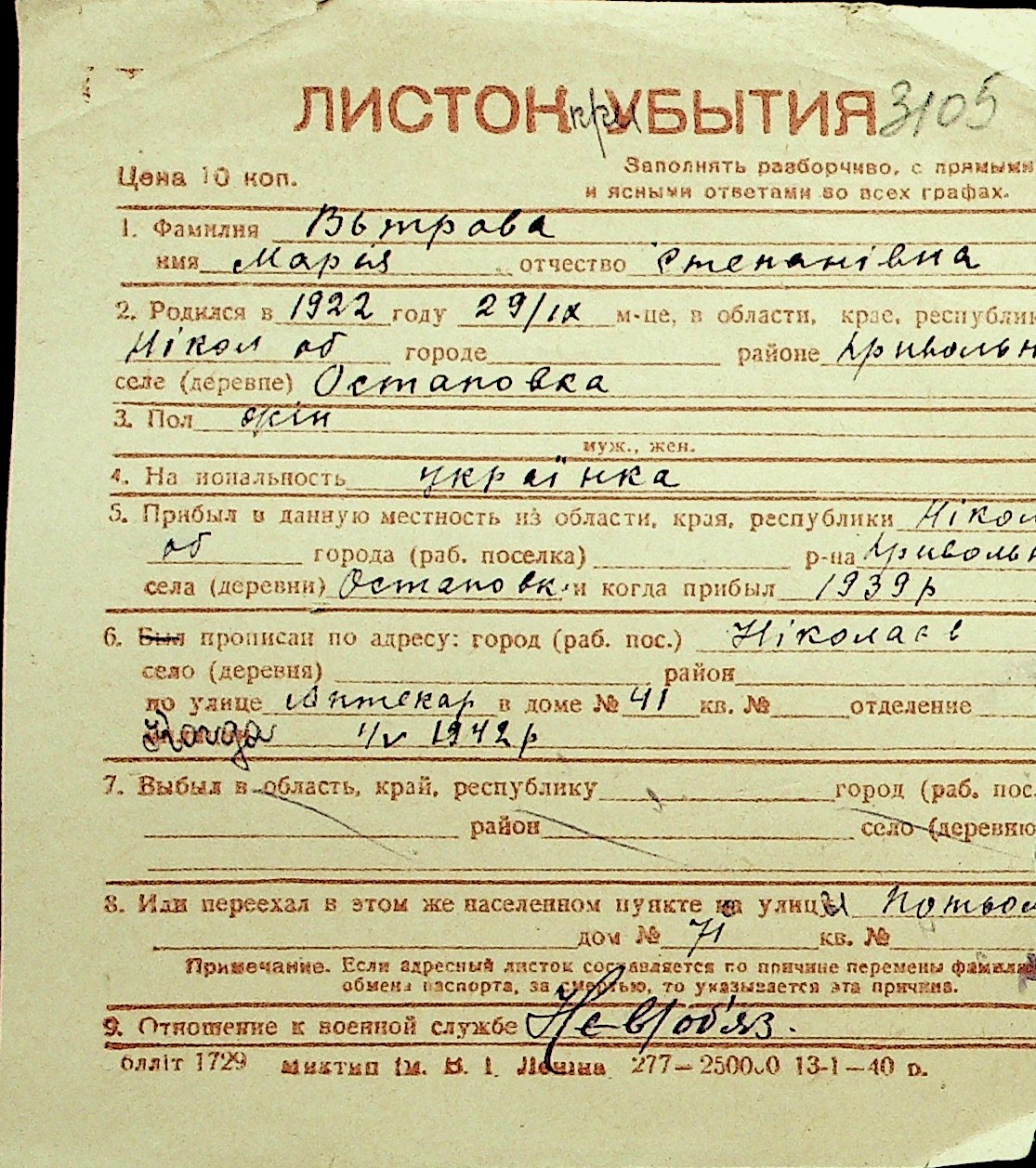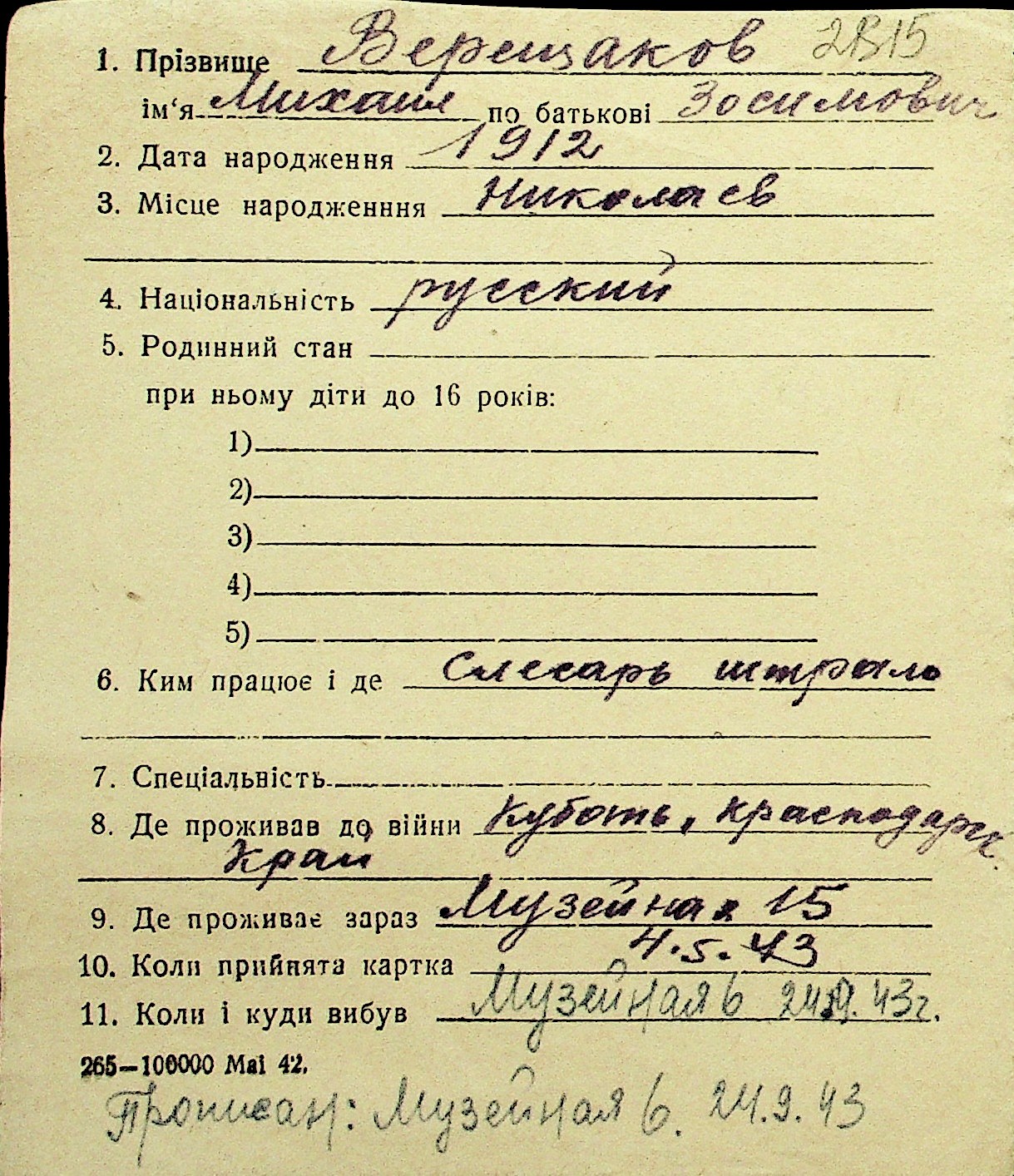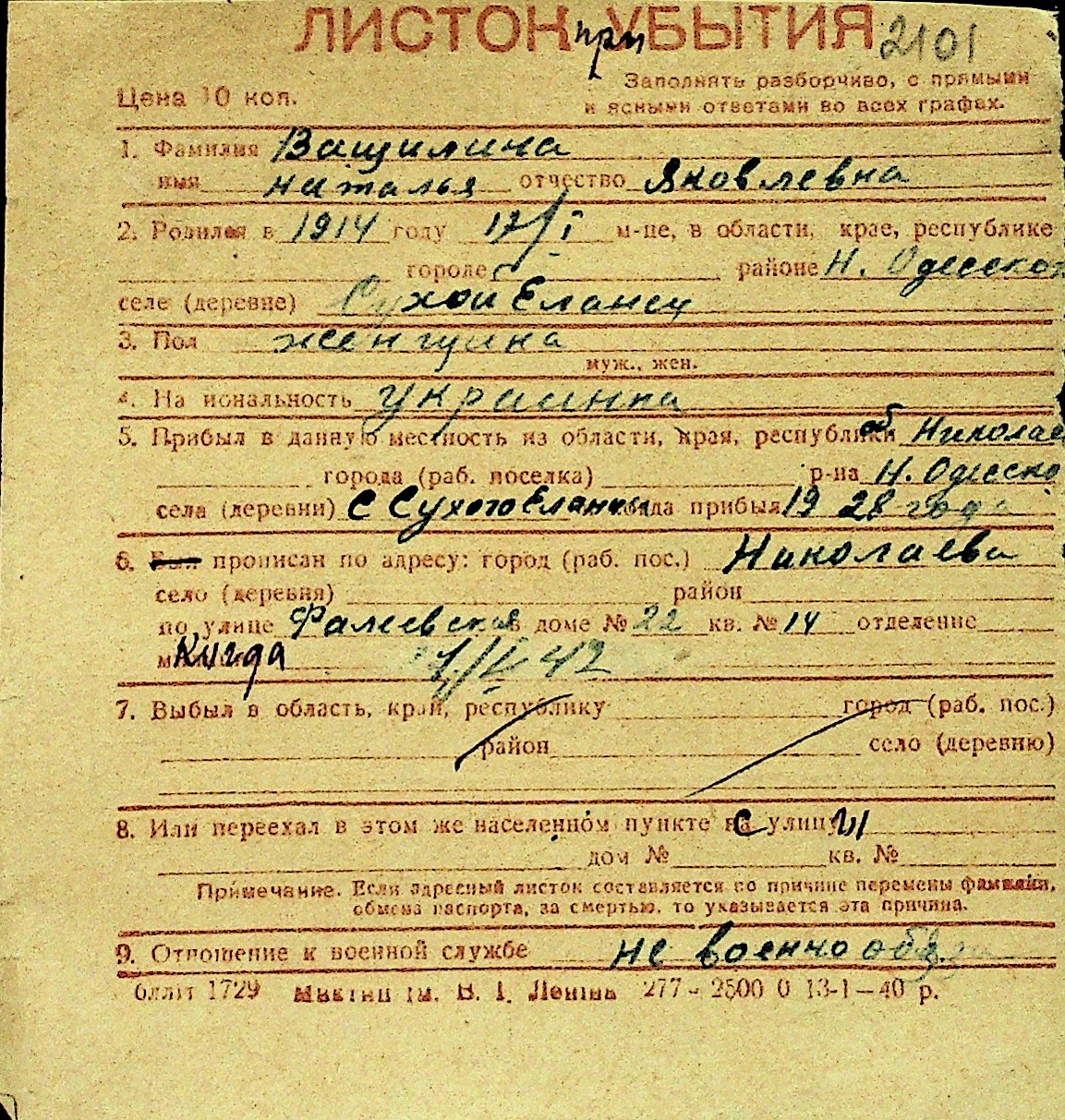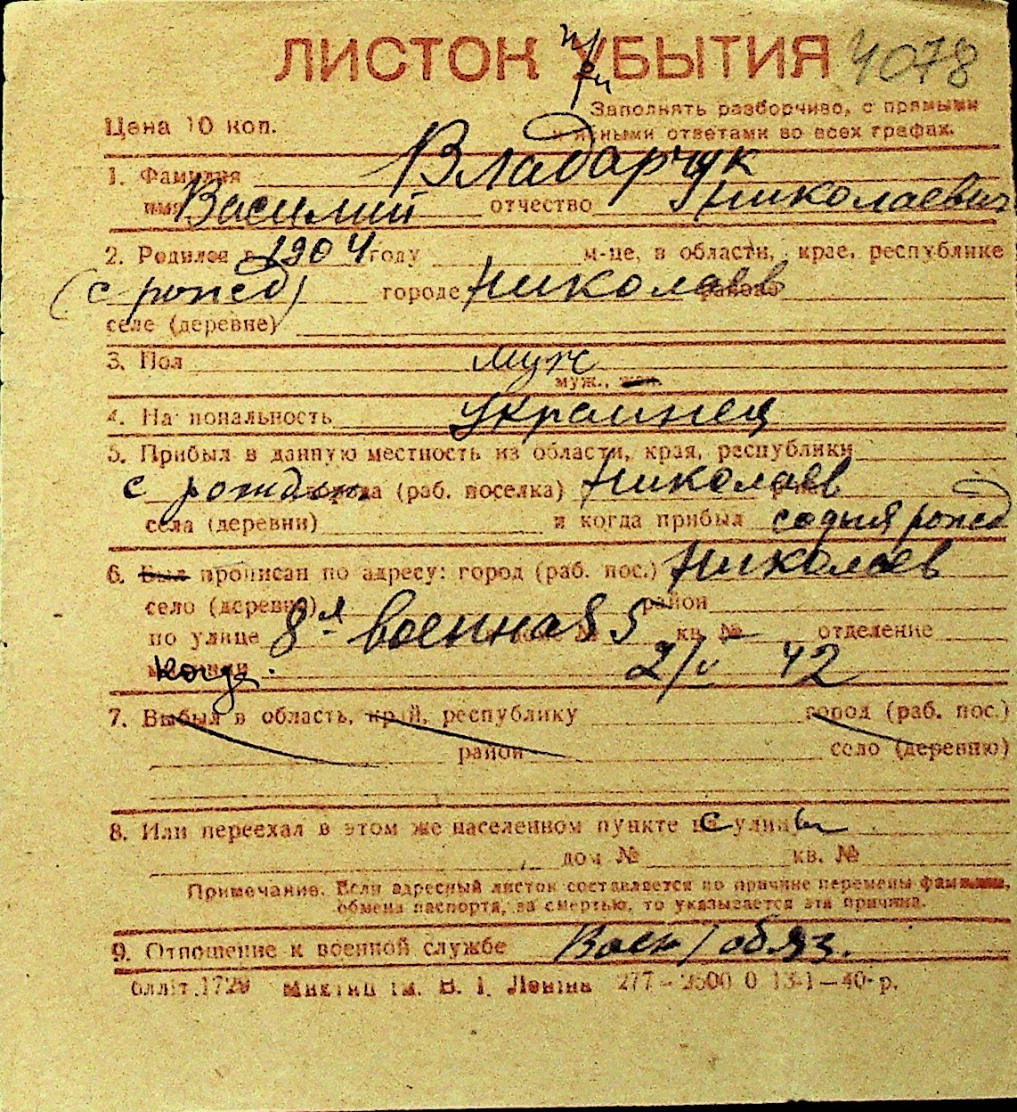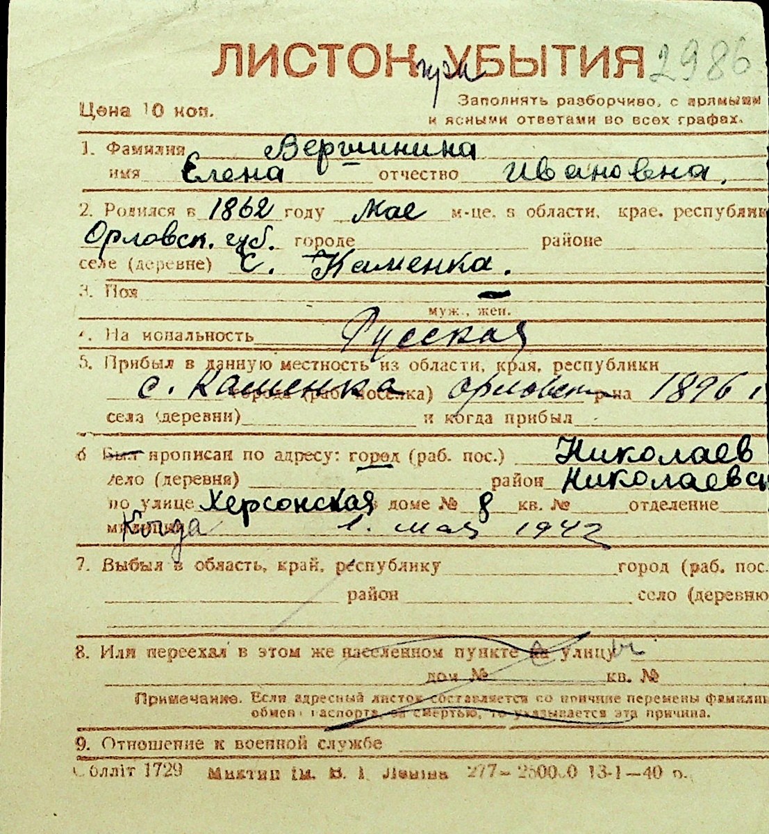 • • Перелік карток до фонду № Н-1016