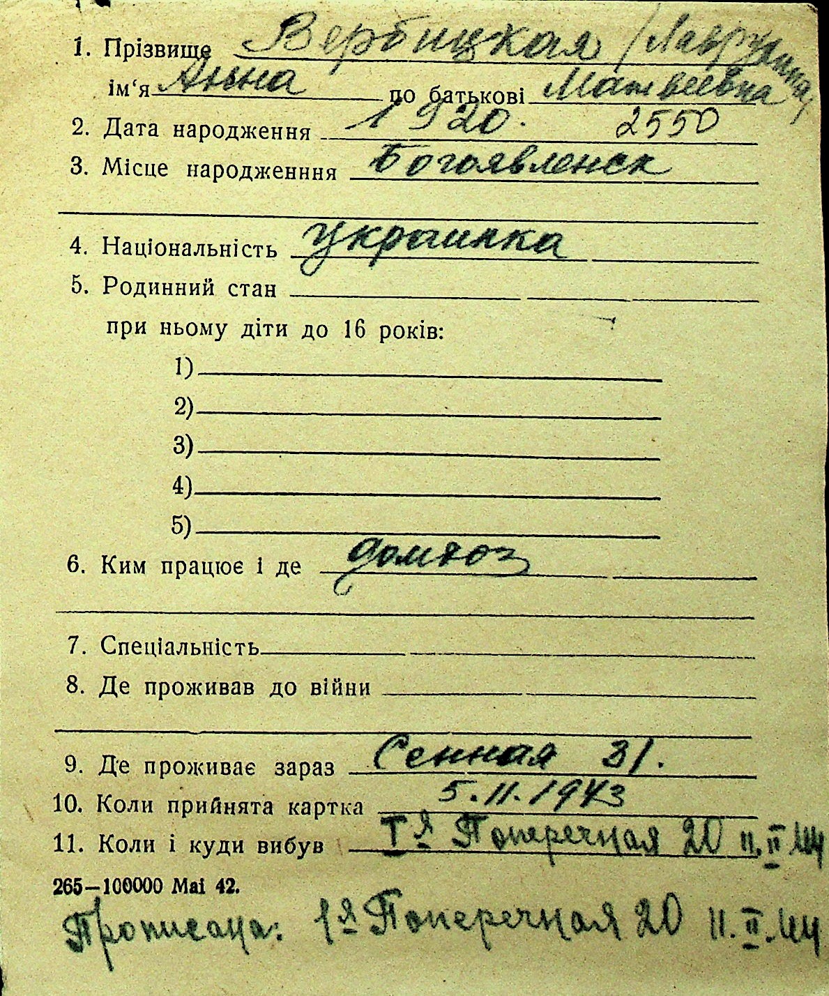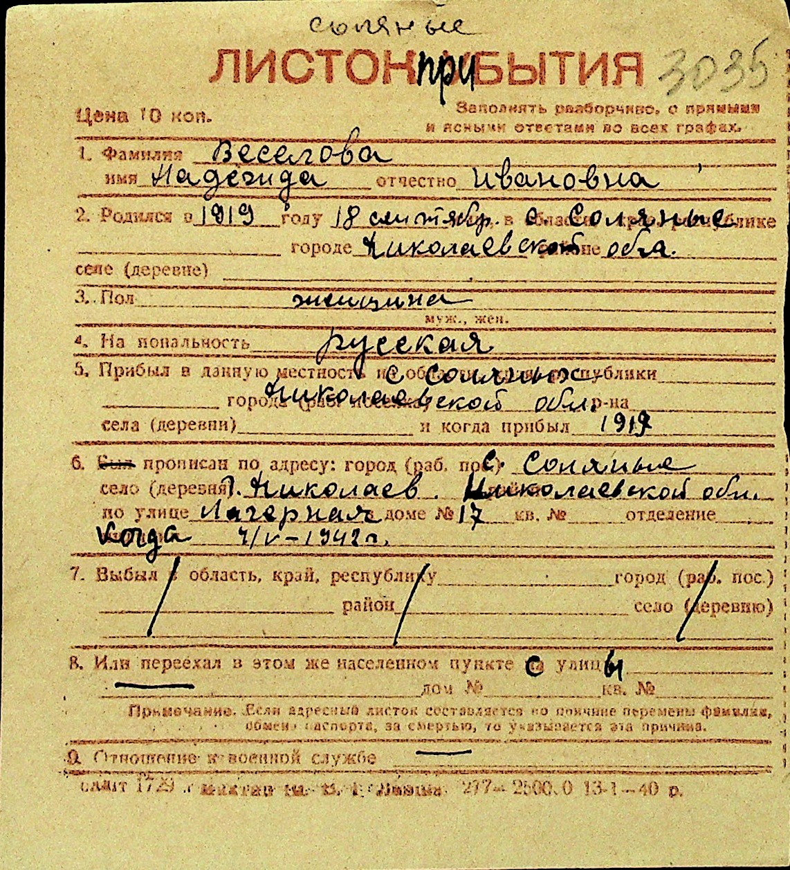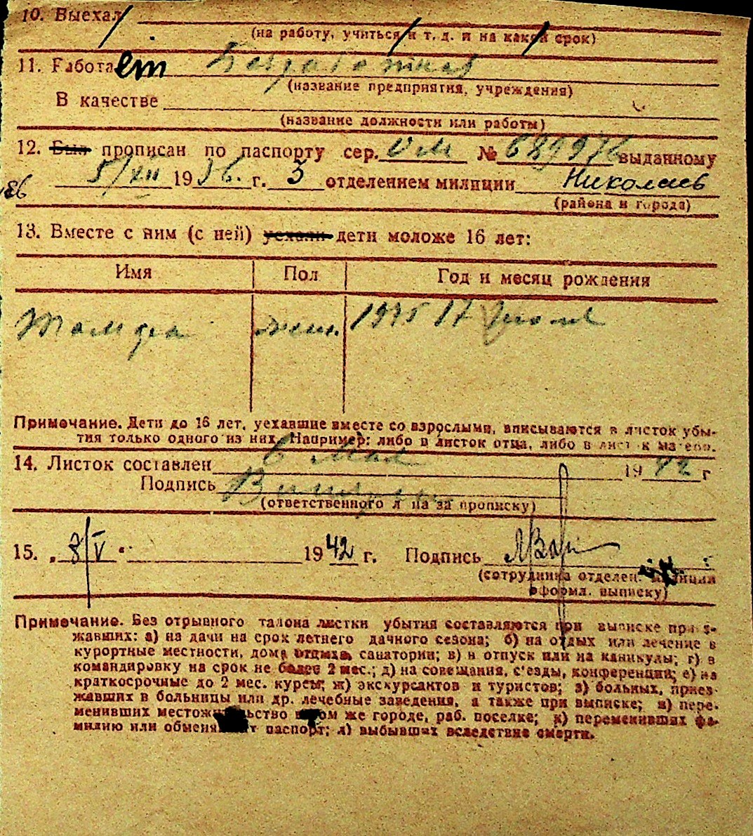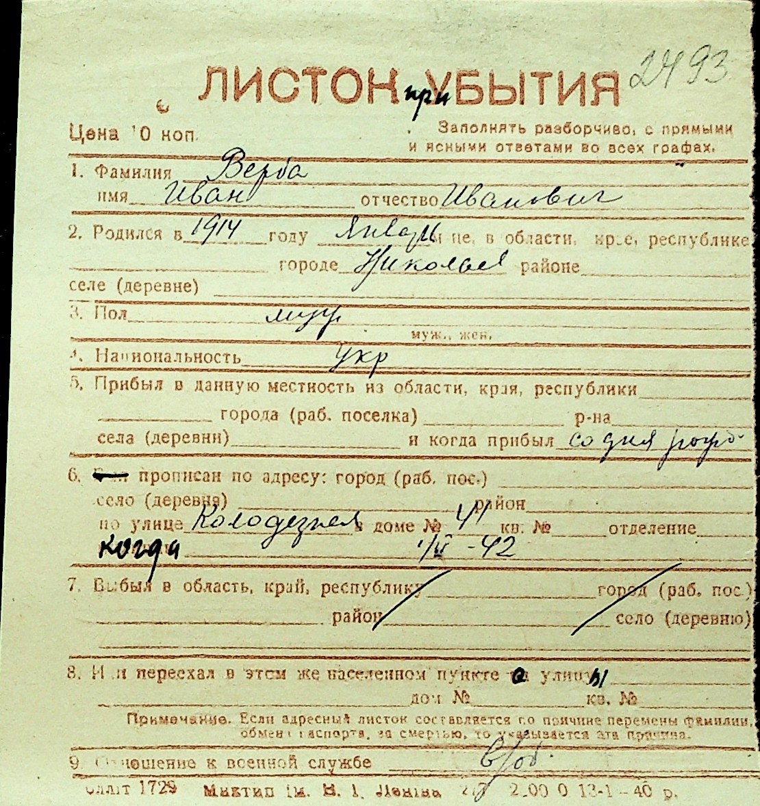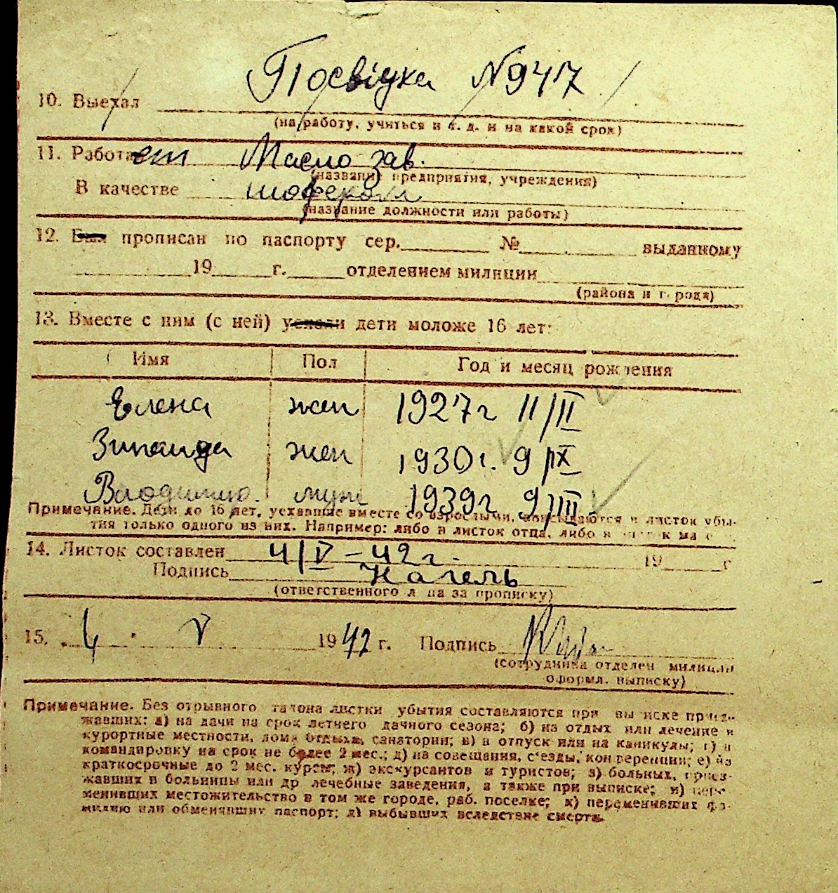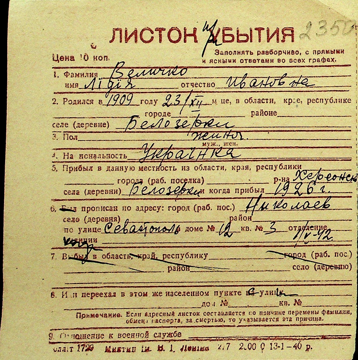 • • Перелік карток до фонду № Н-1016