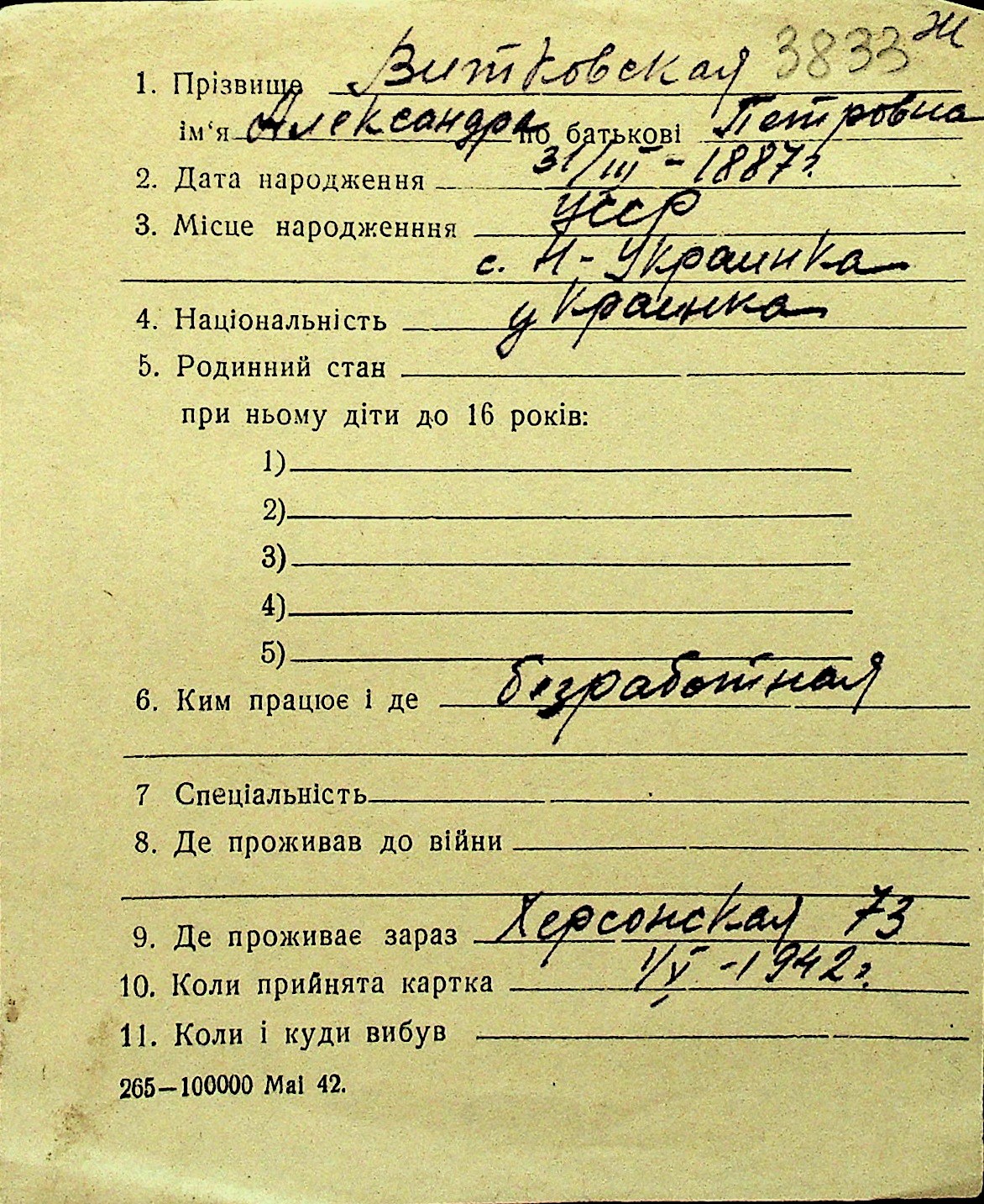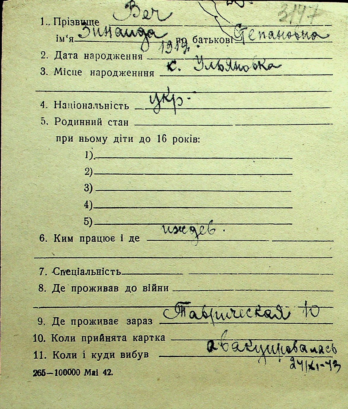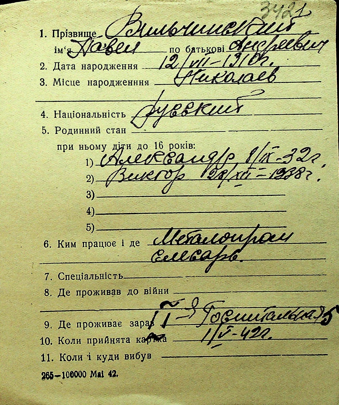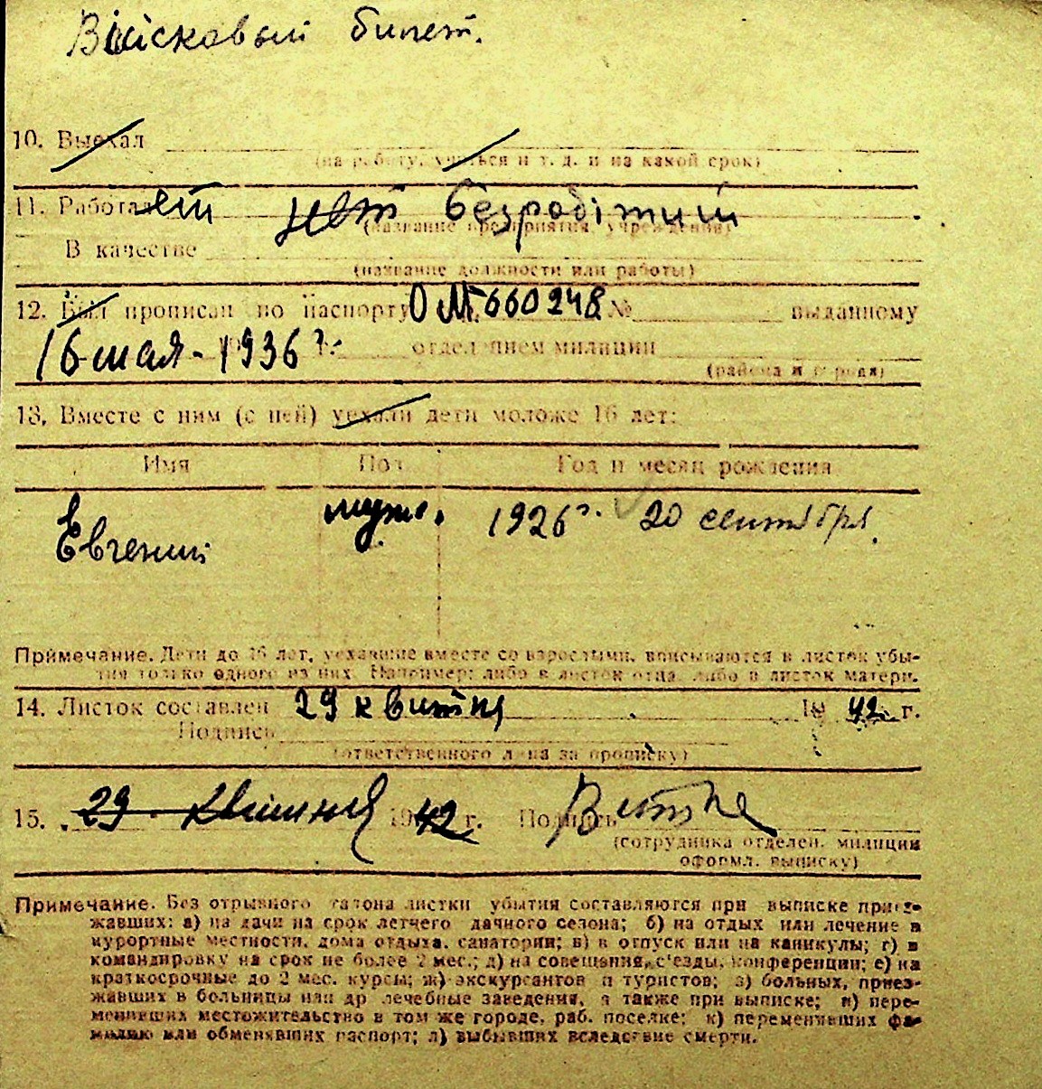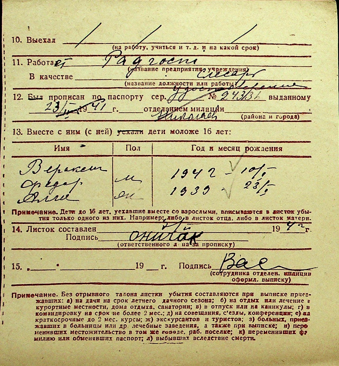 • • Перелік карток до фонду № Н-1016