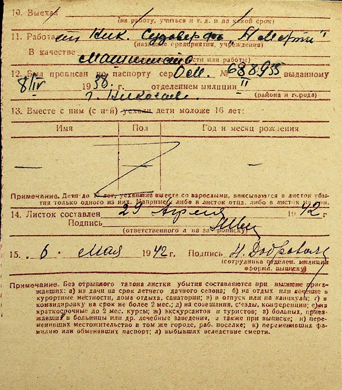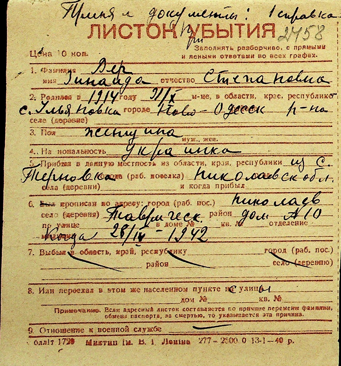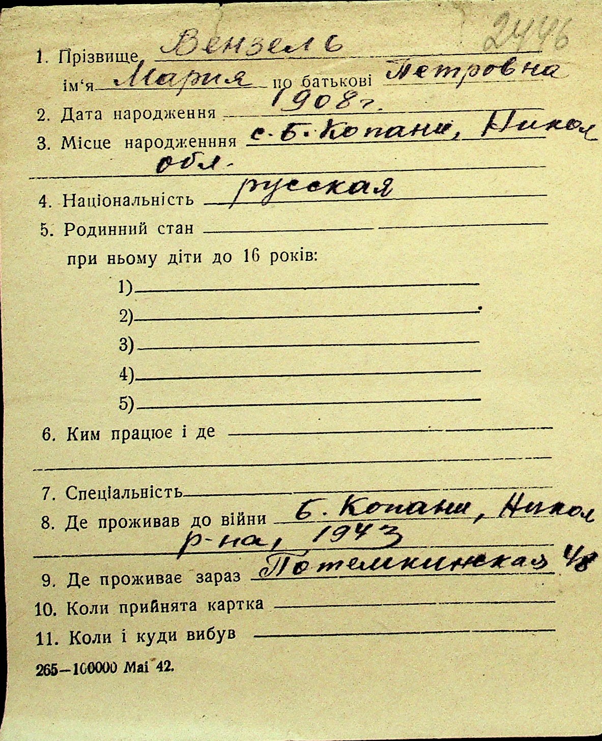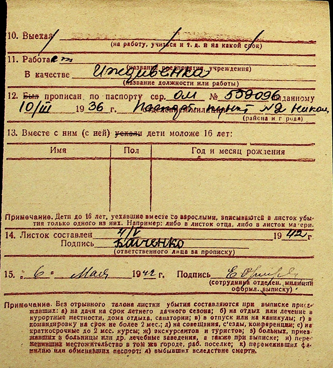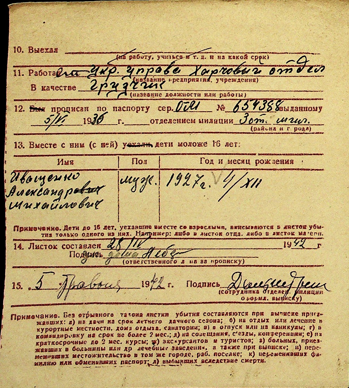 • • Перелік карток до фонду № Н-1016