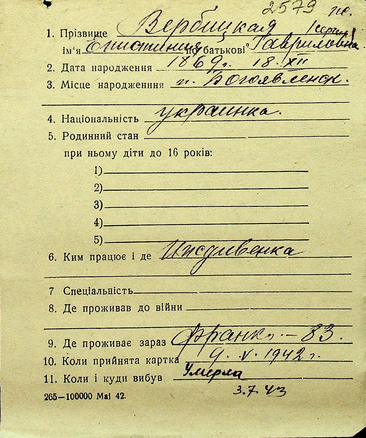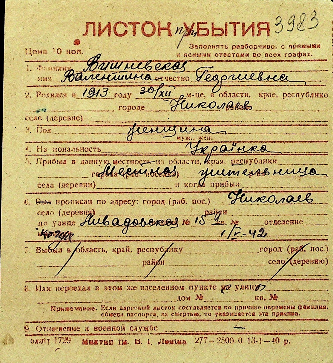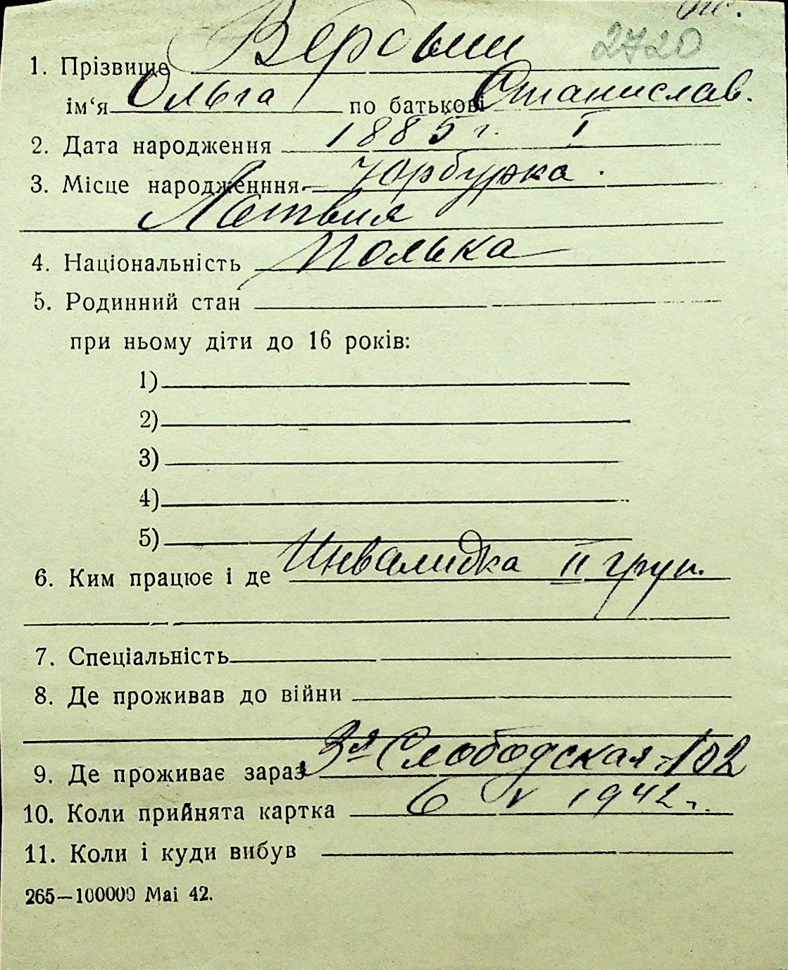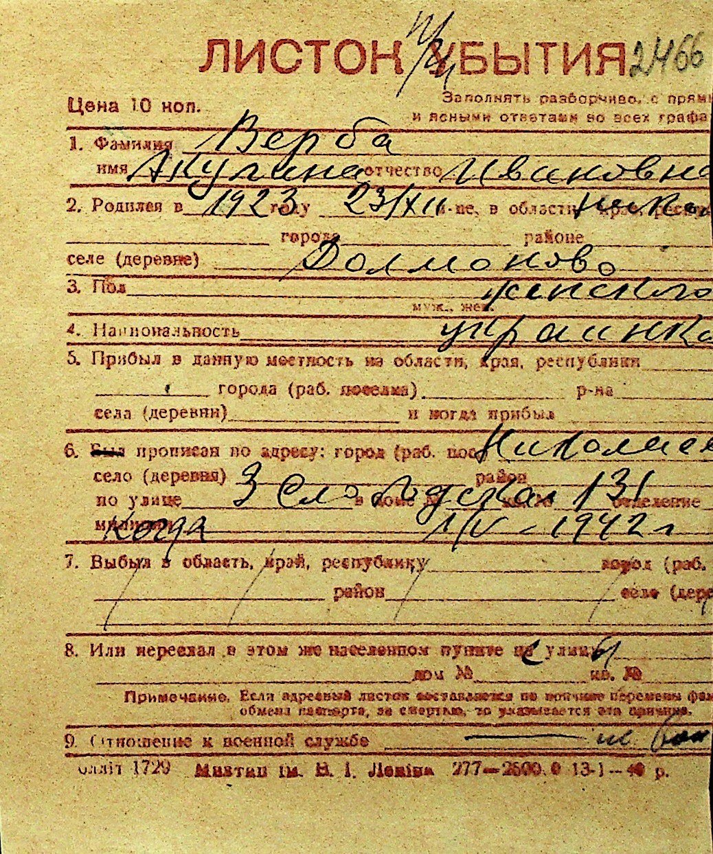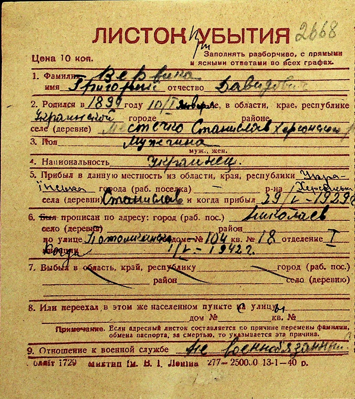 • • Перелік карток до фонду № Н-1016