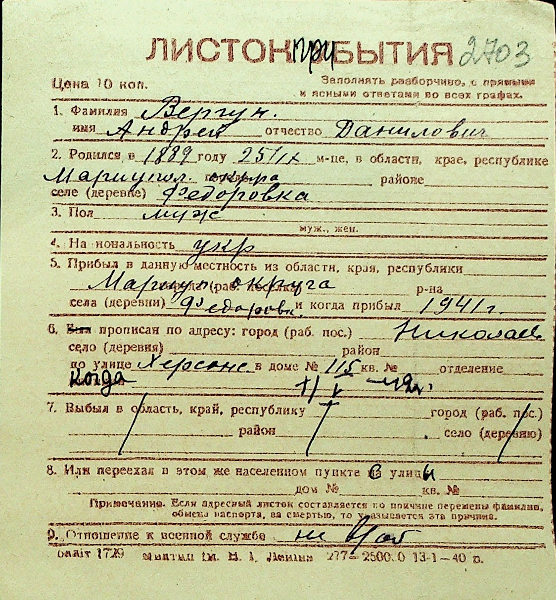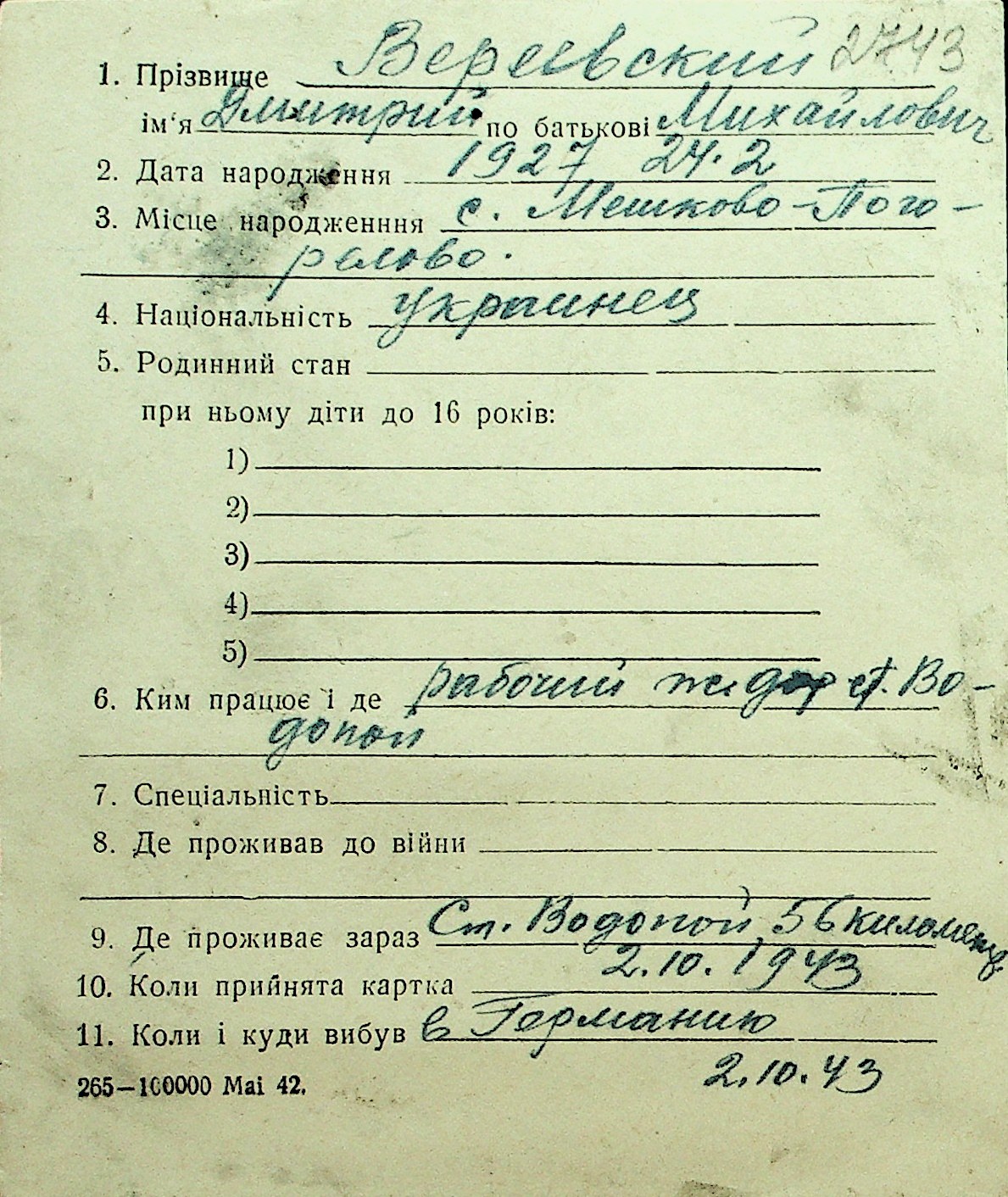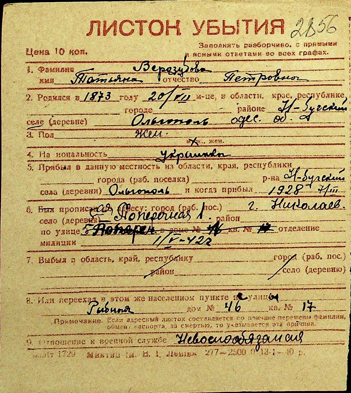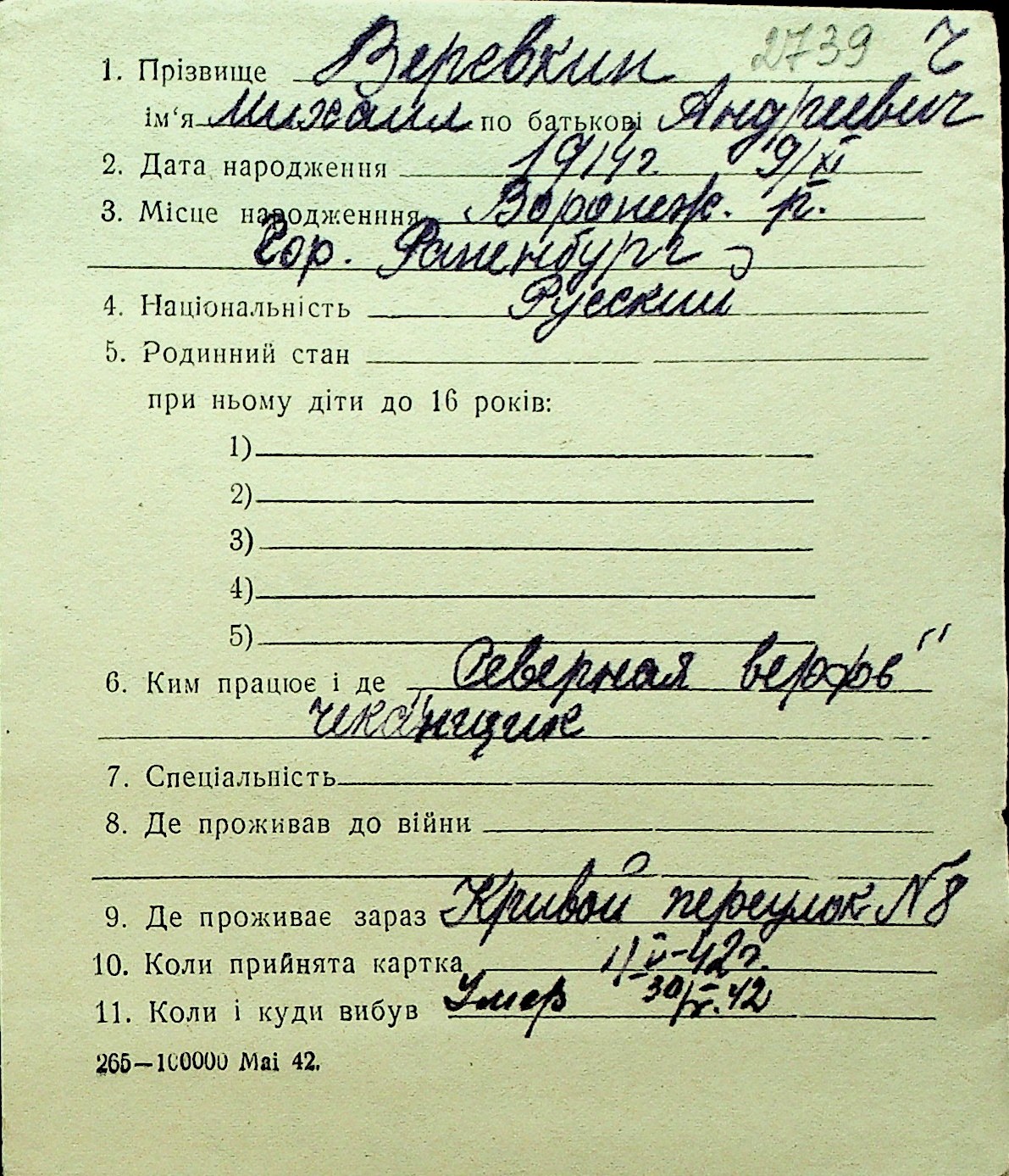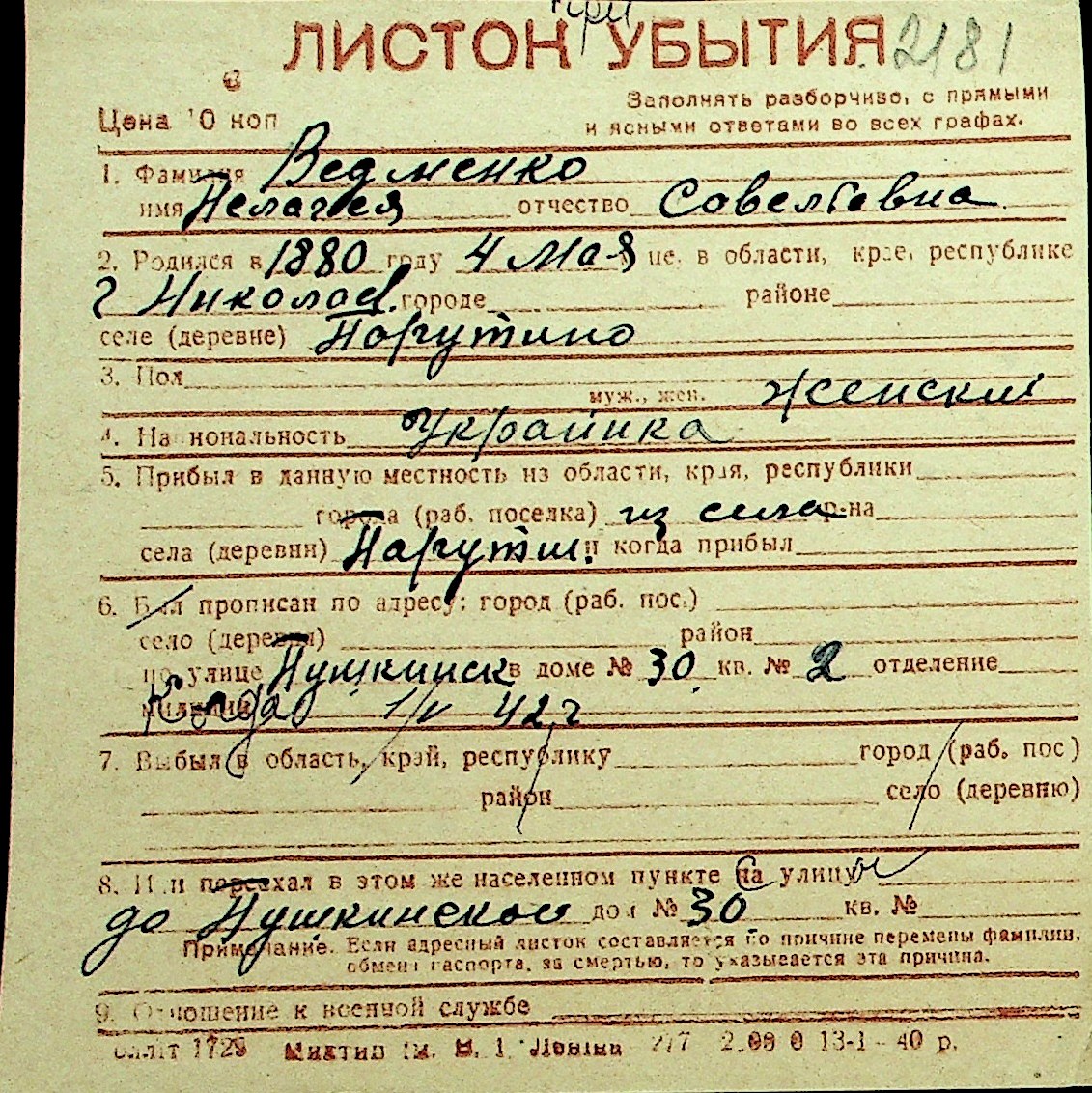 • • Перелік карток до фонду № Н-1016