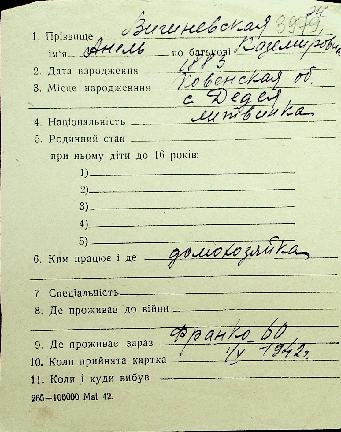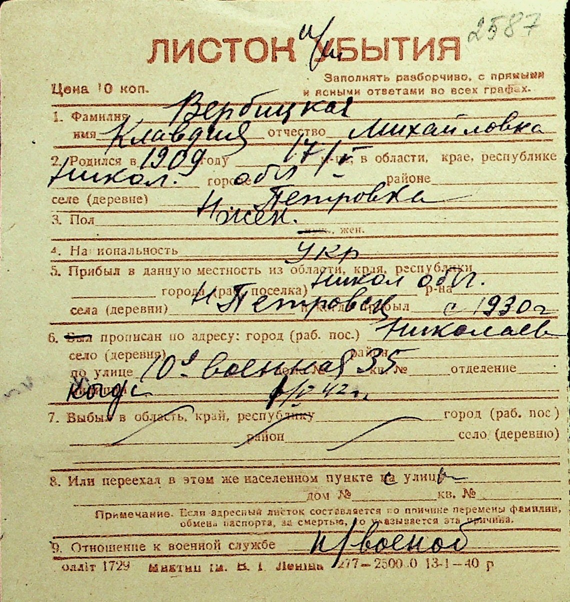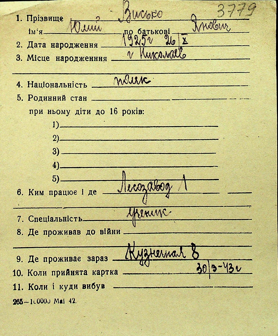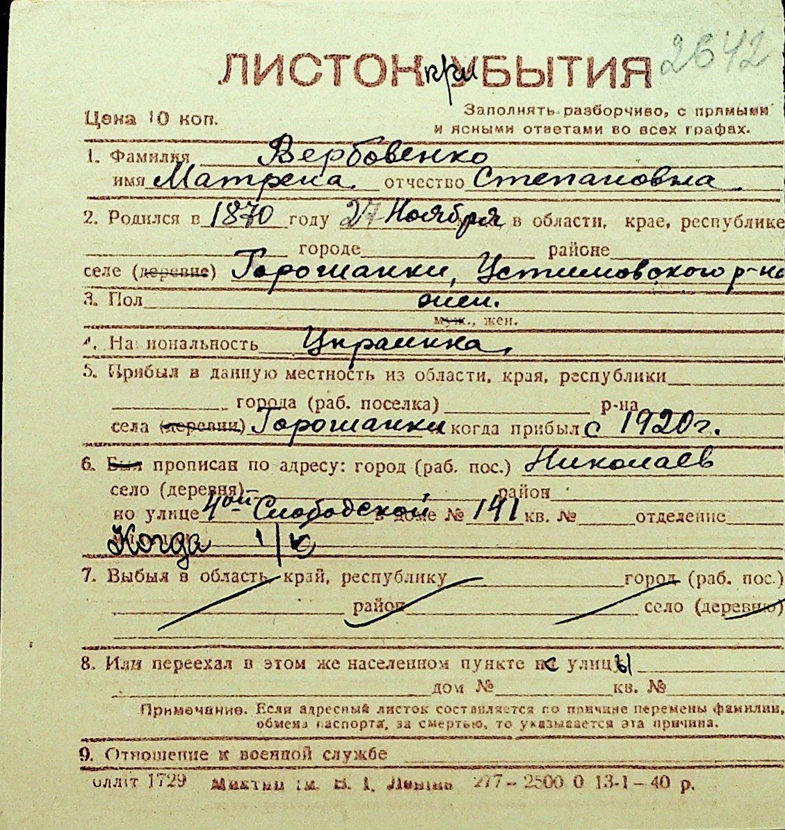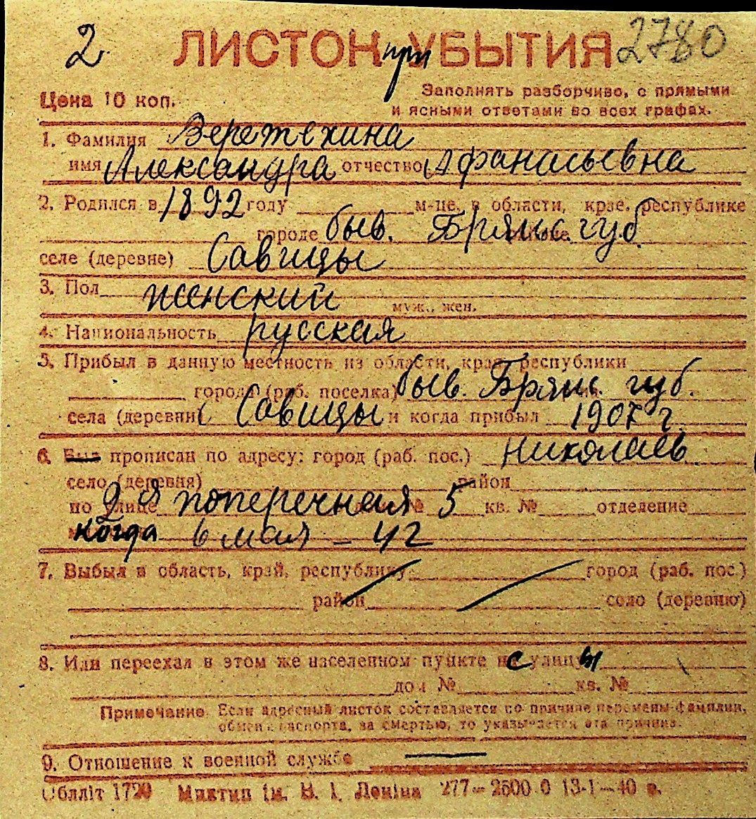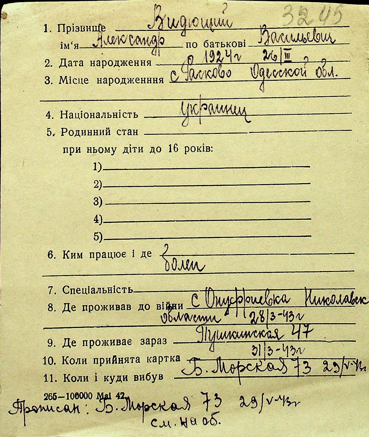 • • Перелік карток до фонду № Н-1016