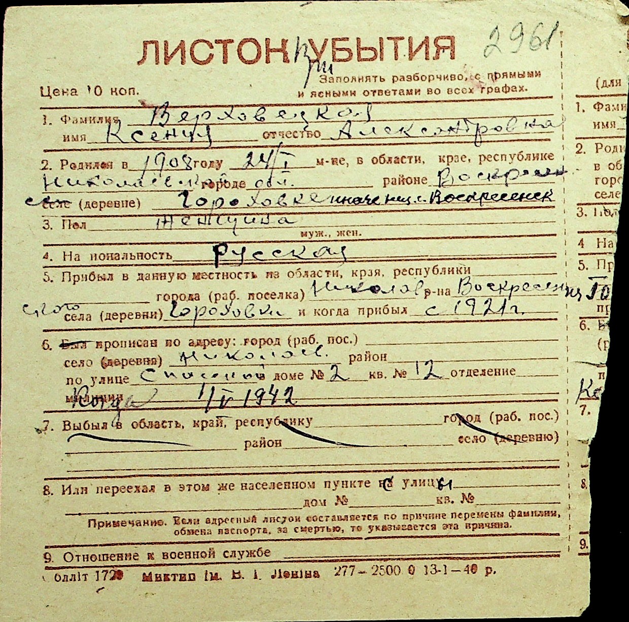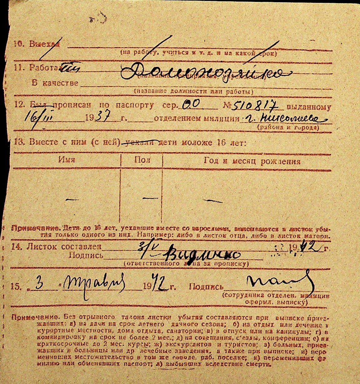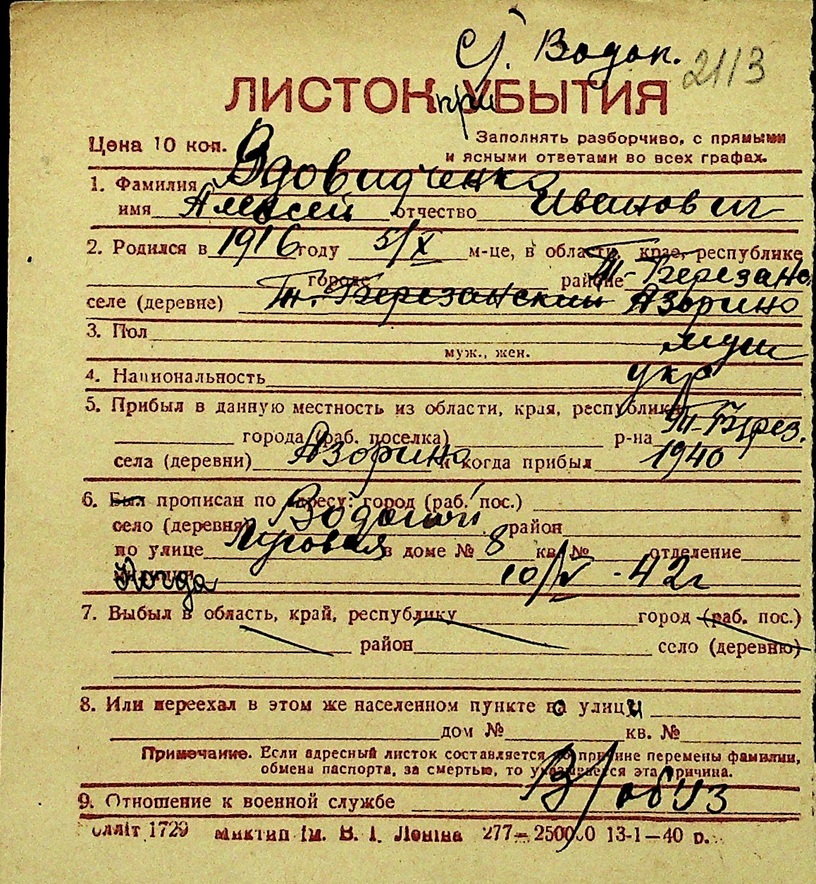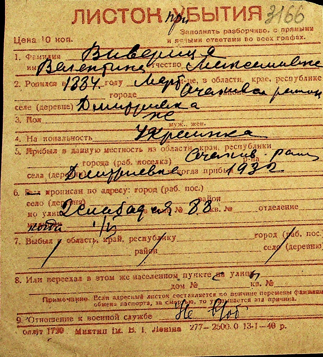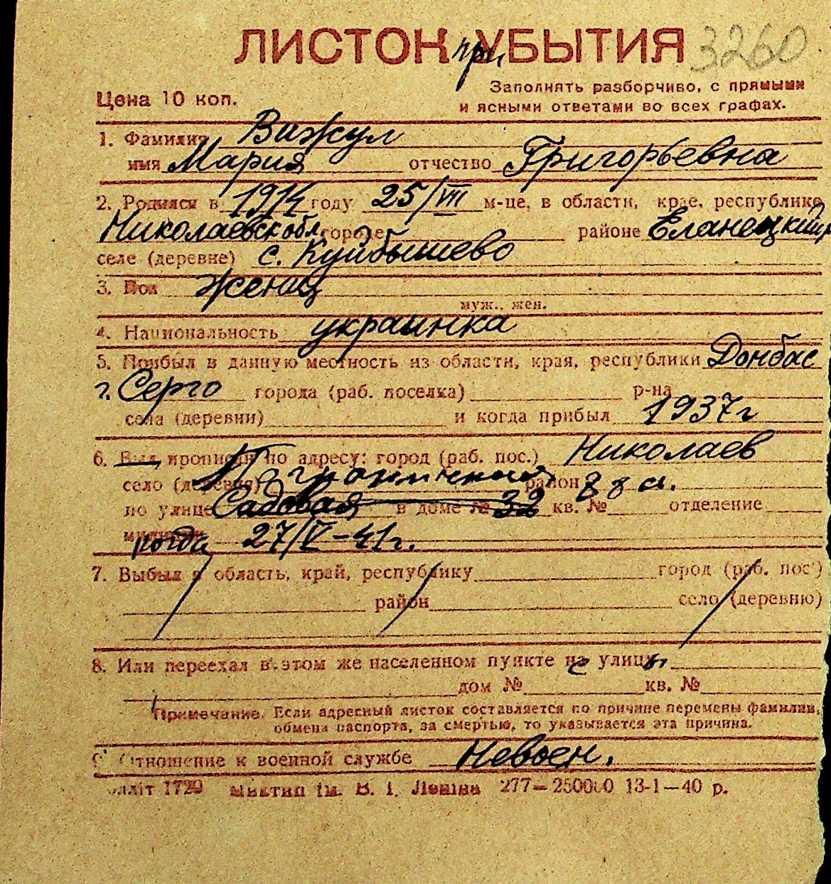 • • Перелік карток до фонду № Н-1016