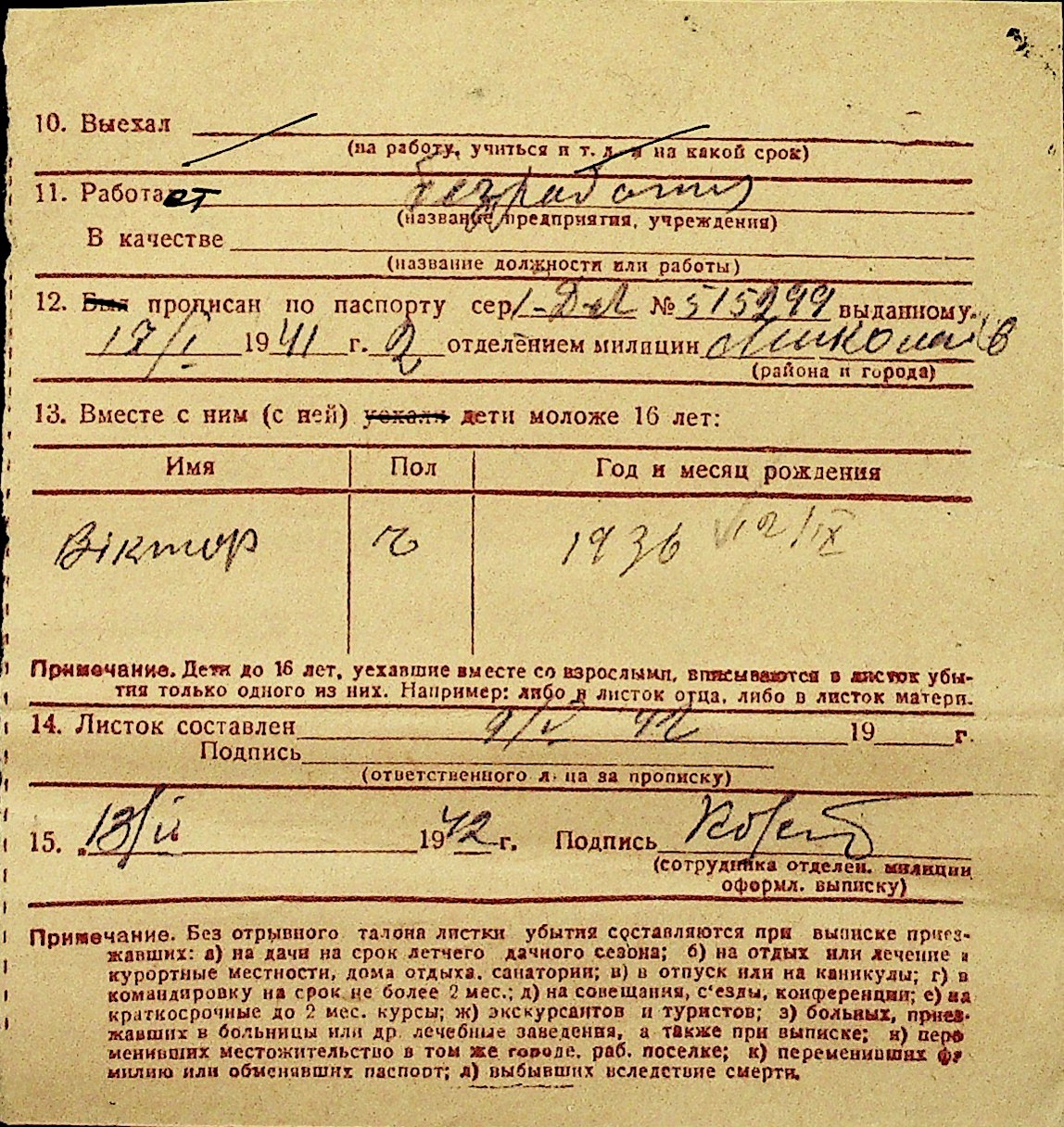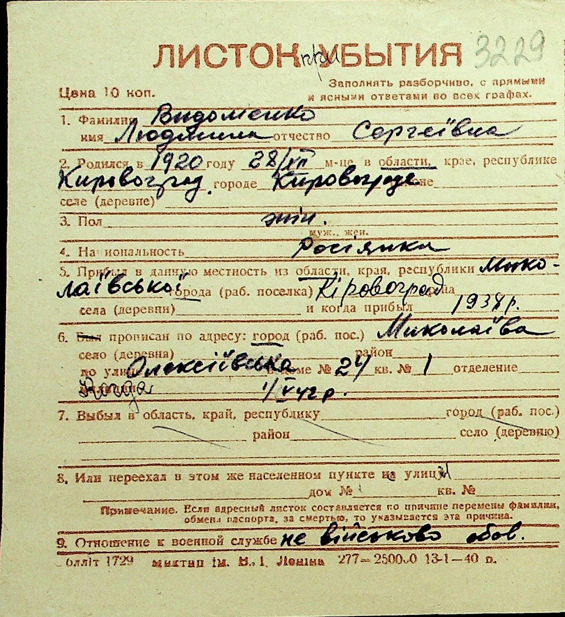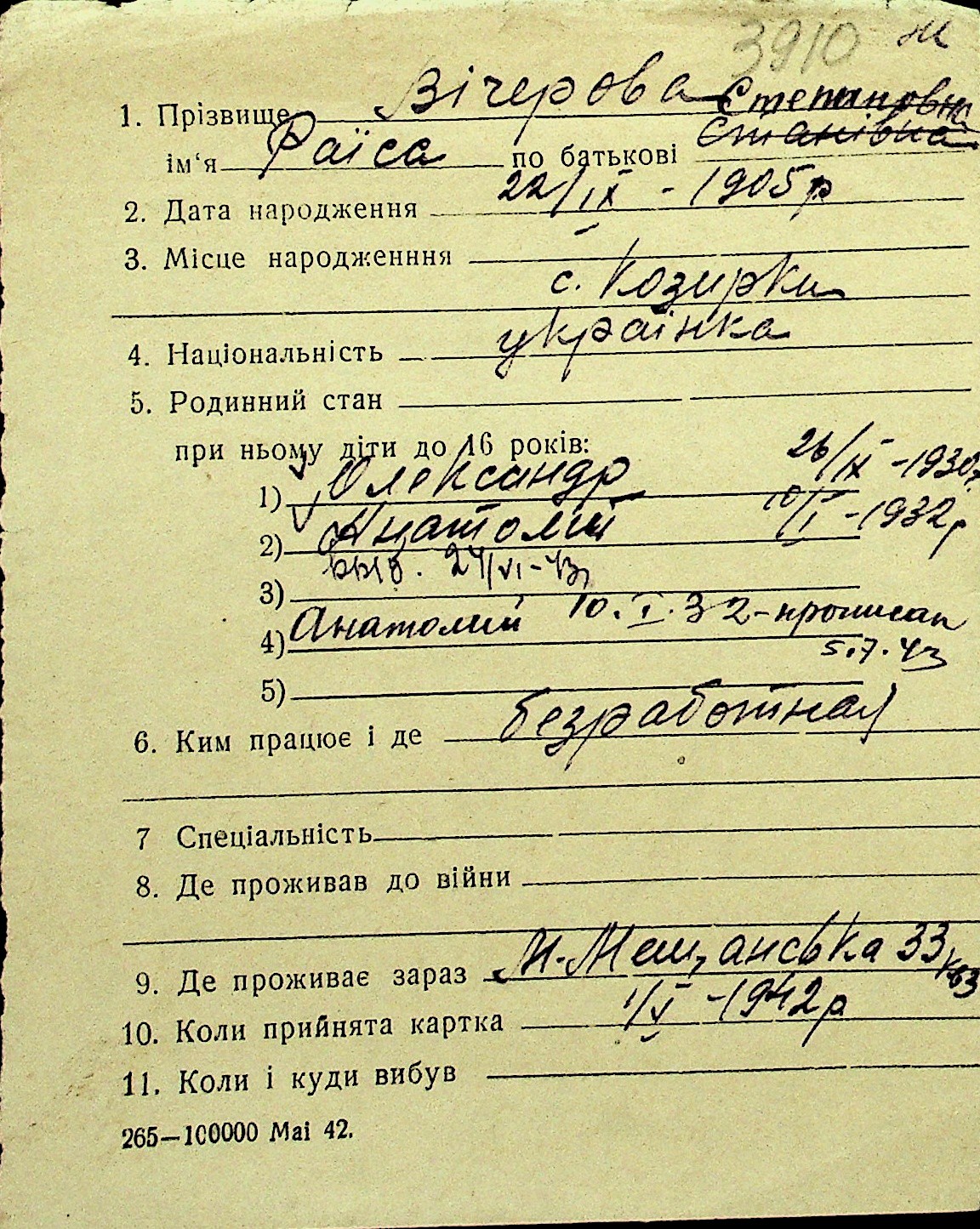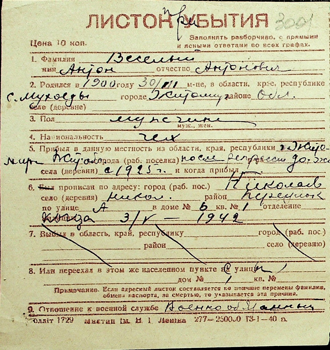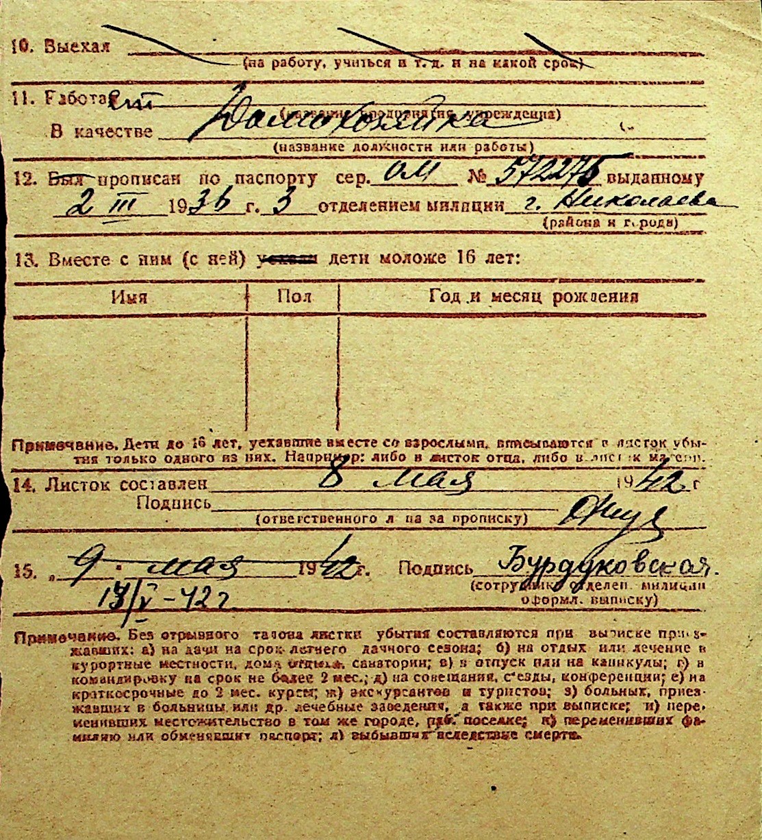 • • Перелік карток до фонду № Н-1016