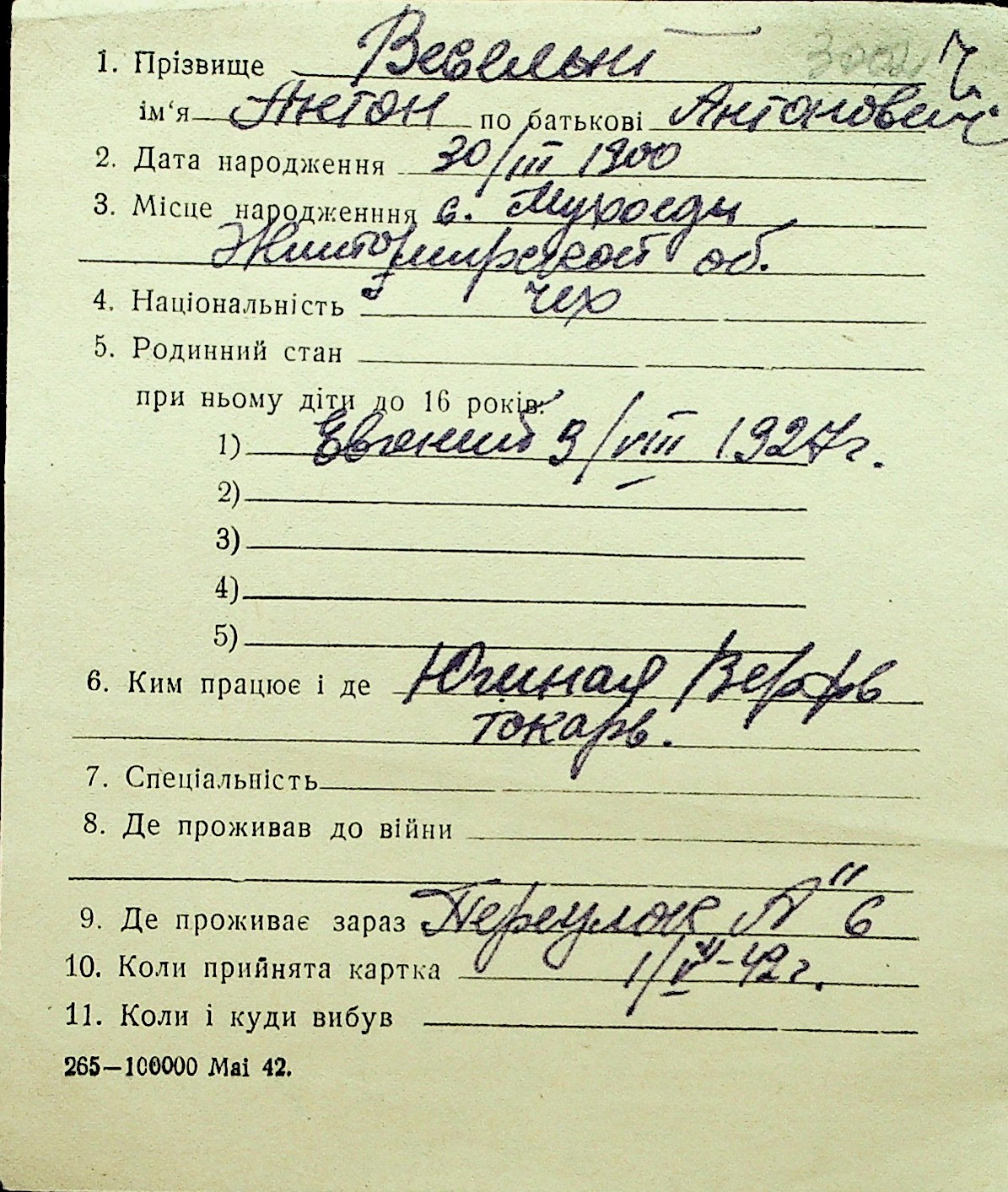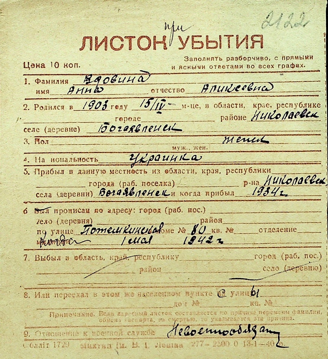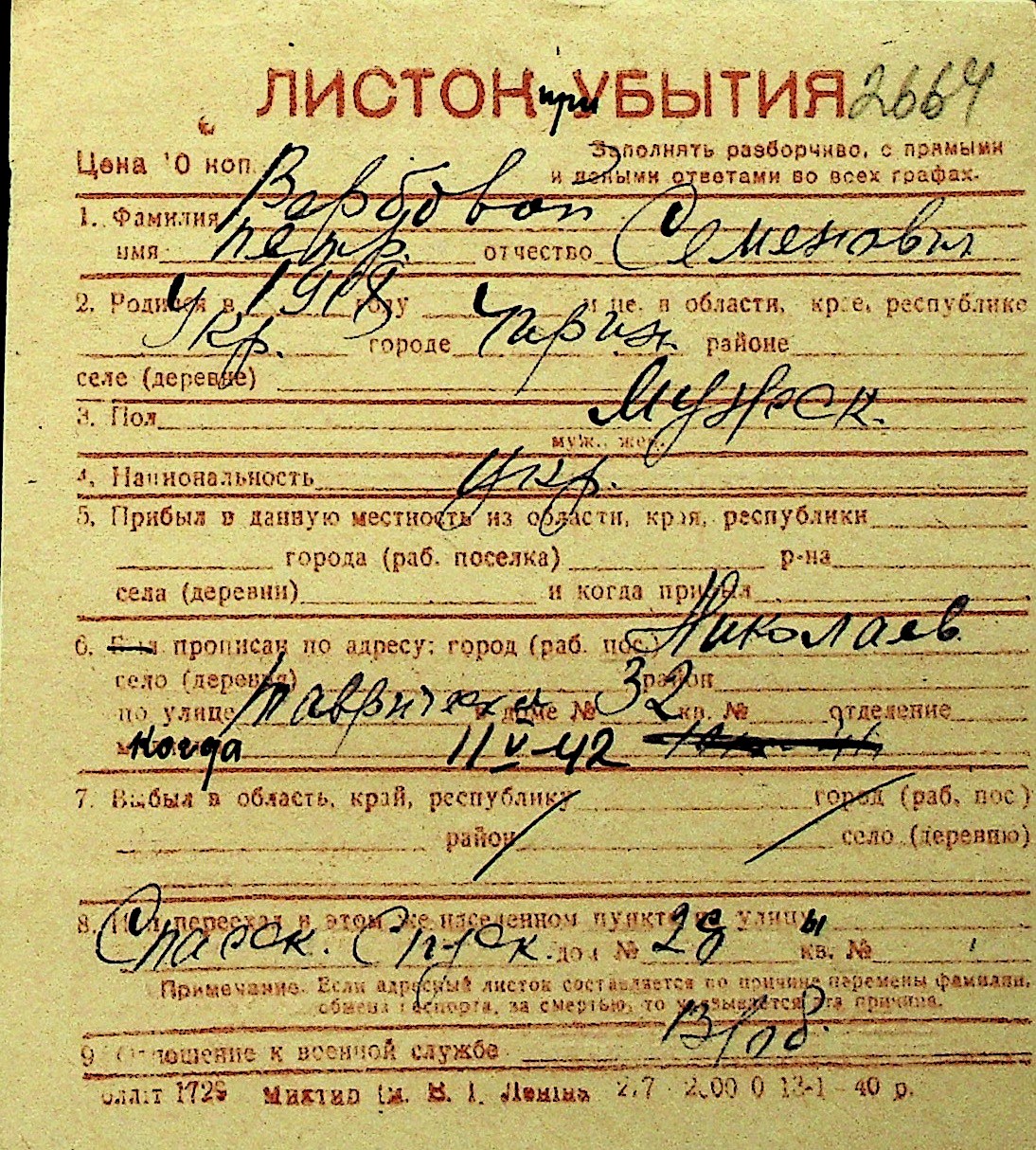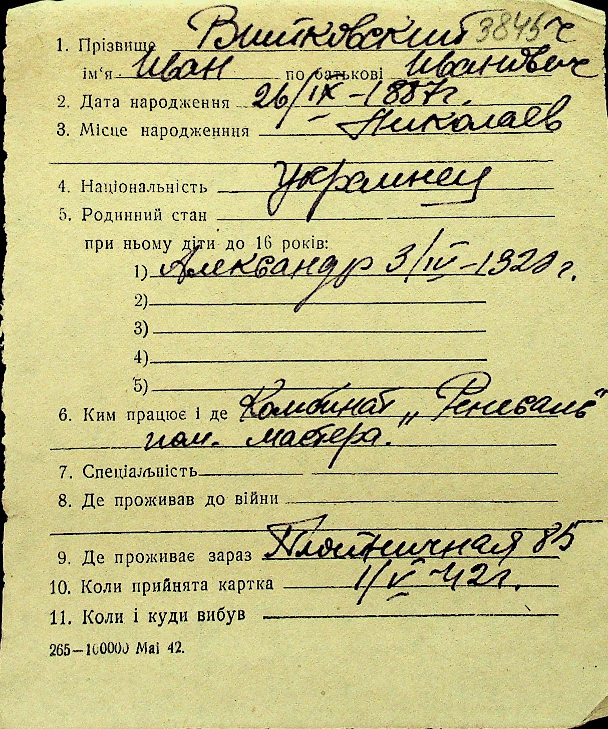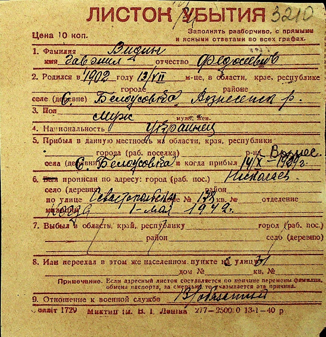 • • Перелік карток до фонду № Н-1016