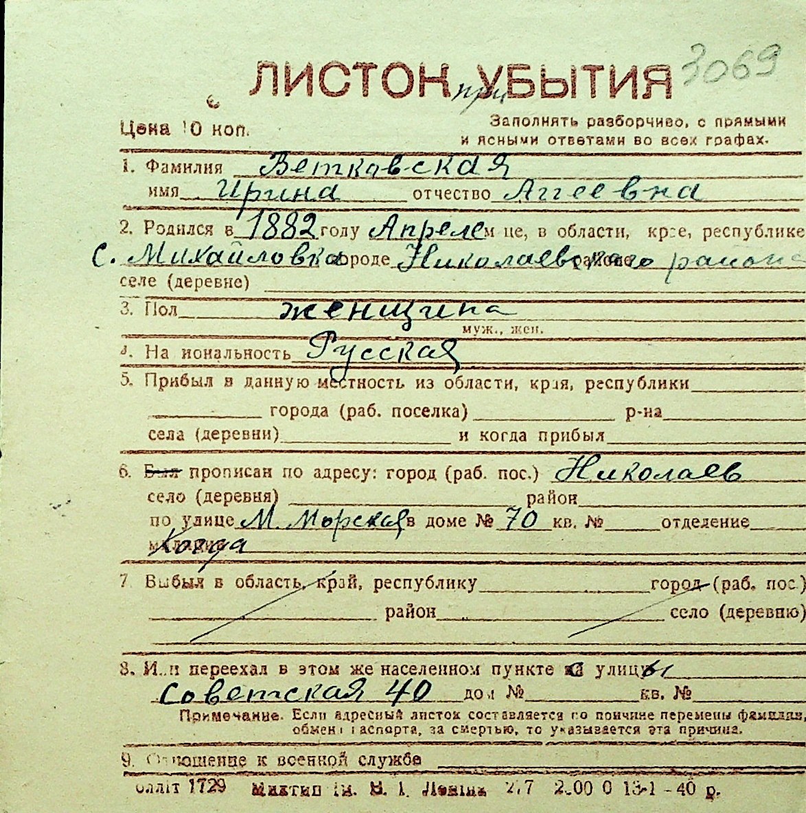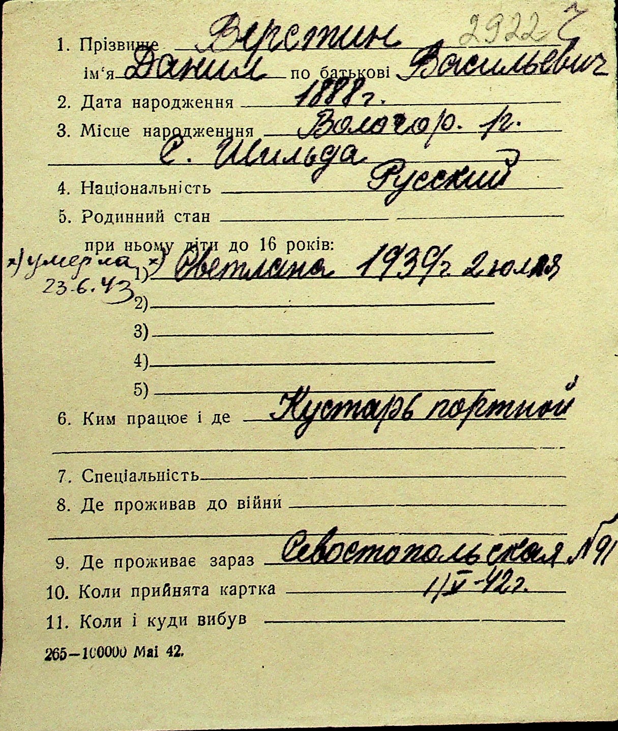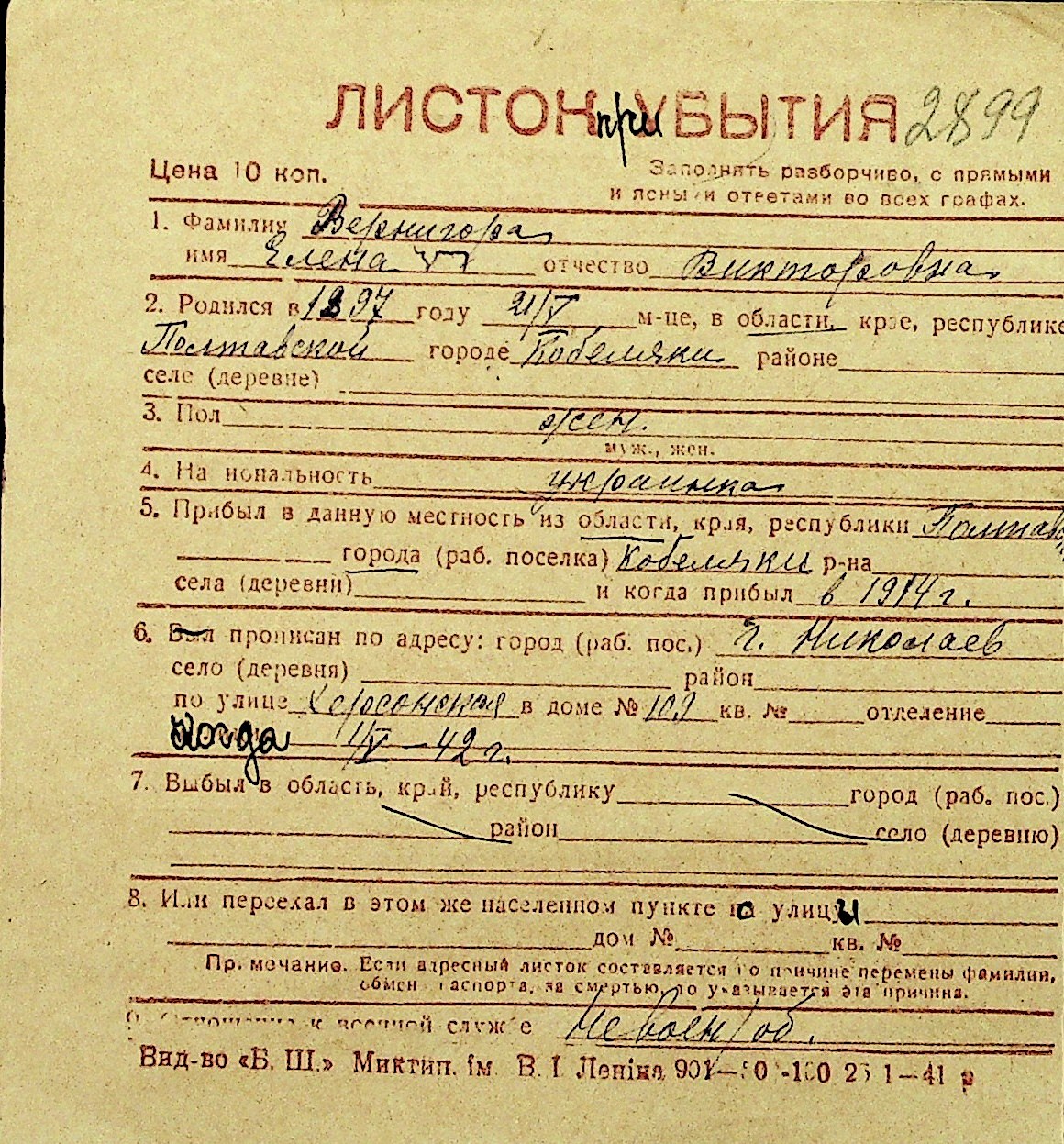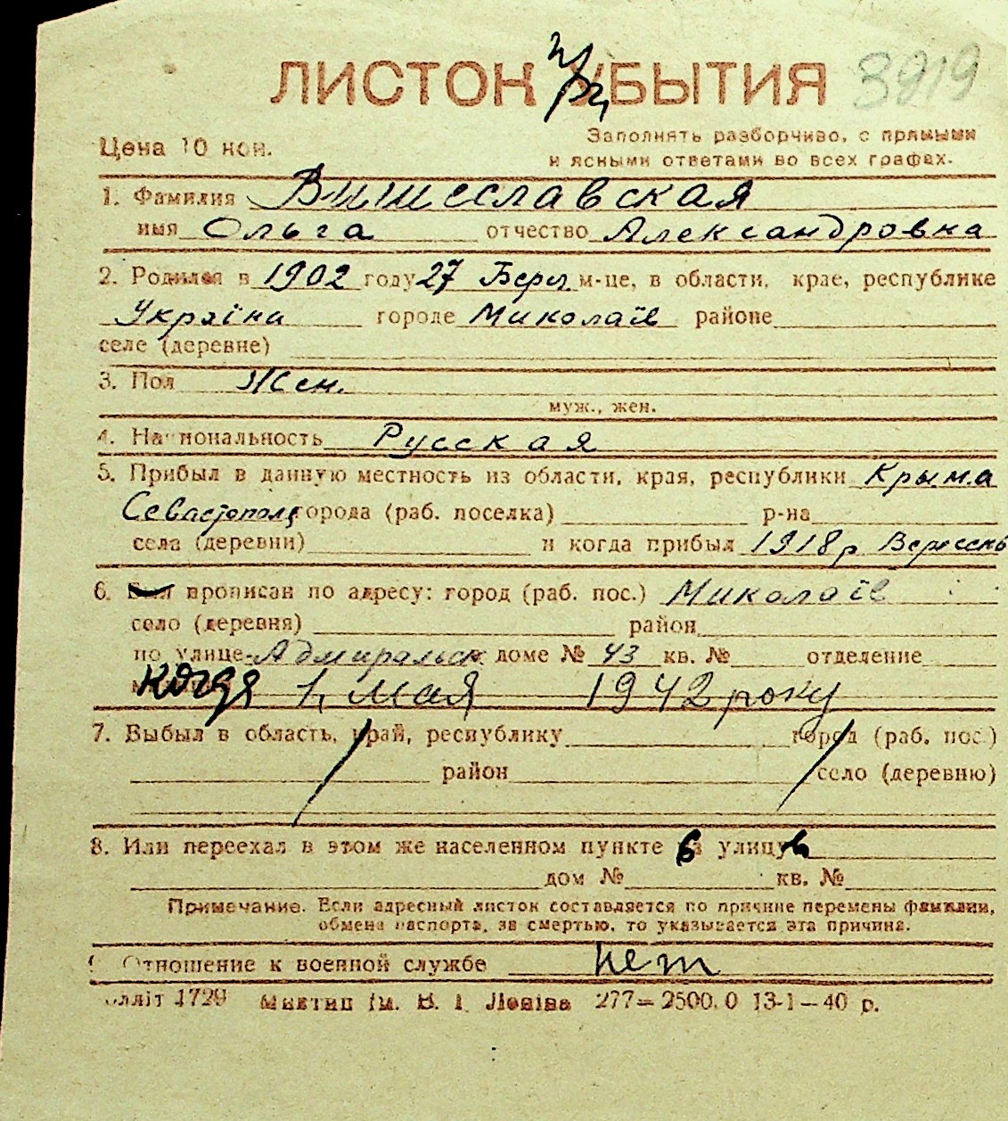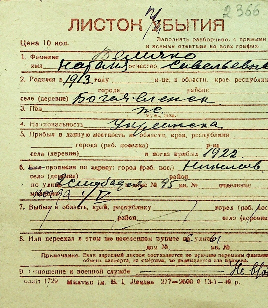 • • Перелік карток до фонду № Н-1016
