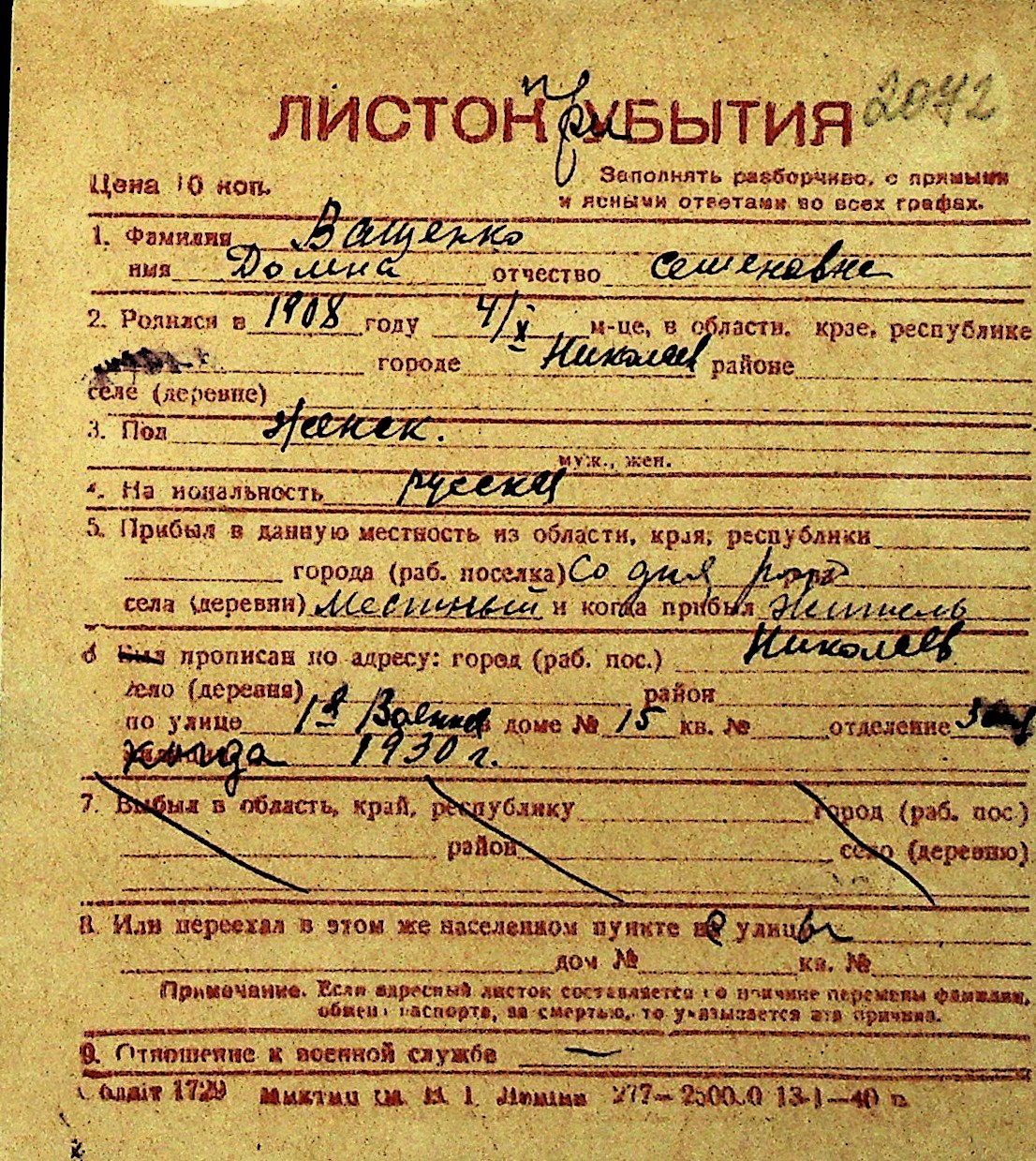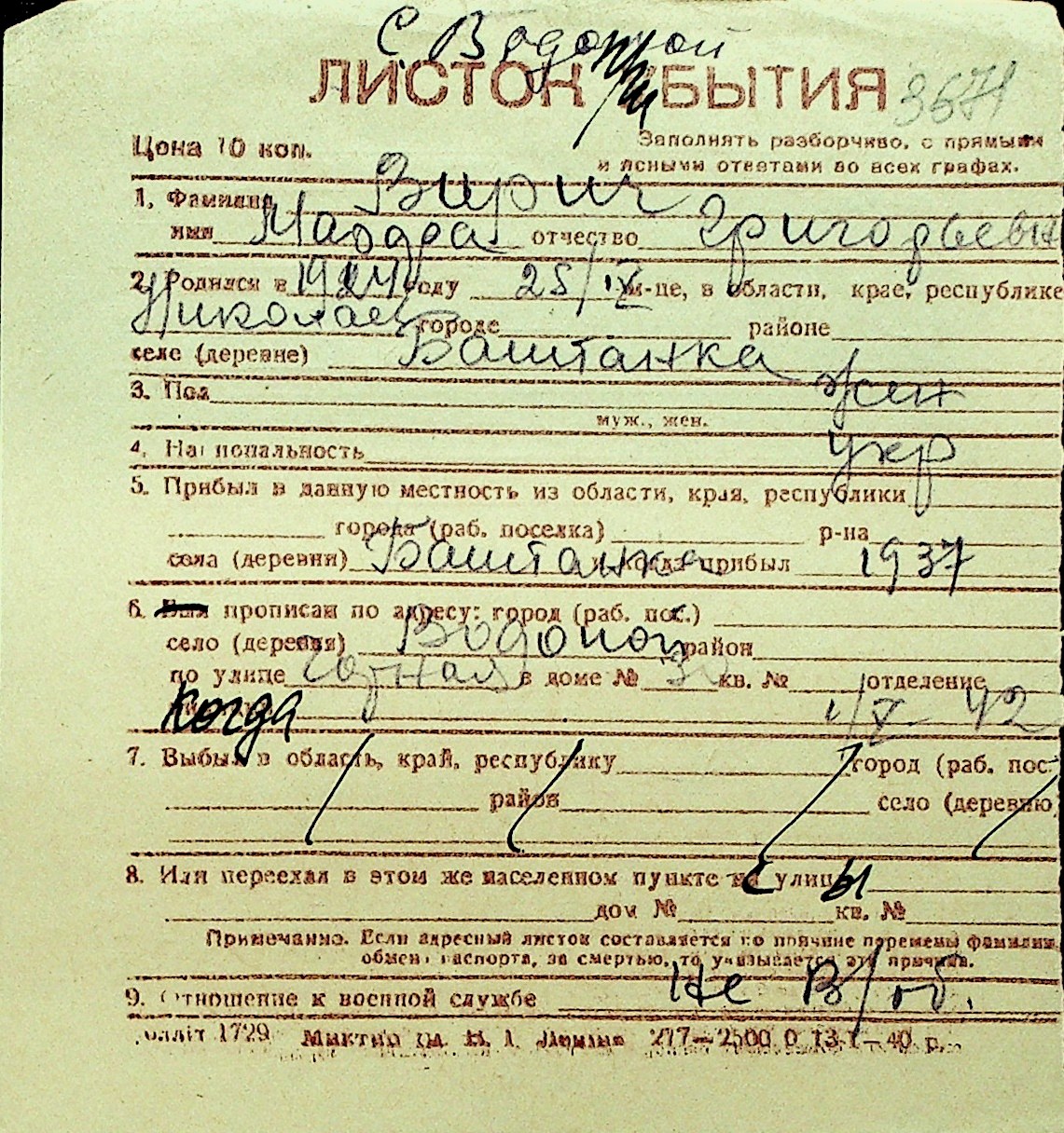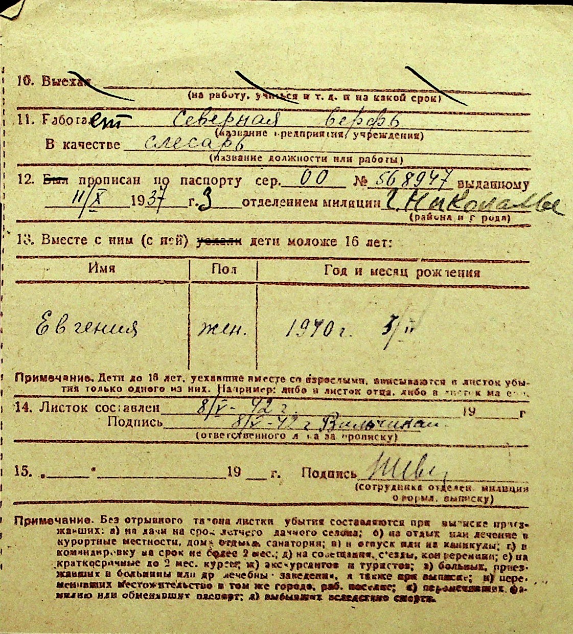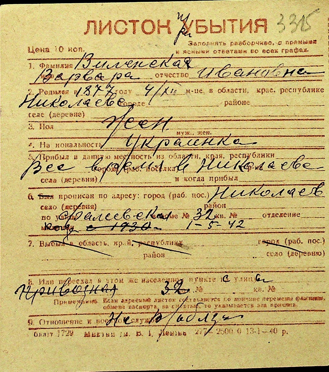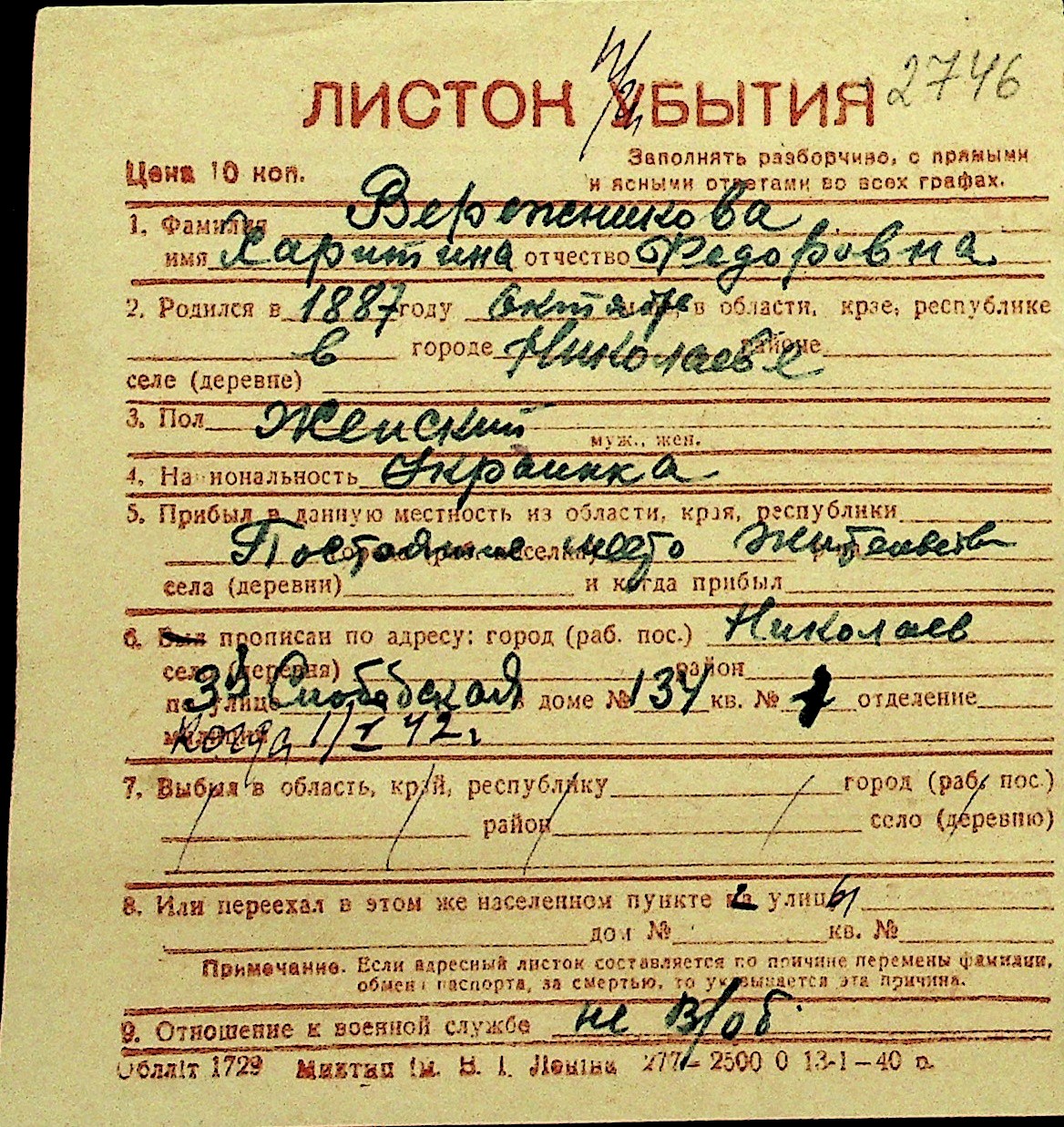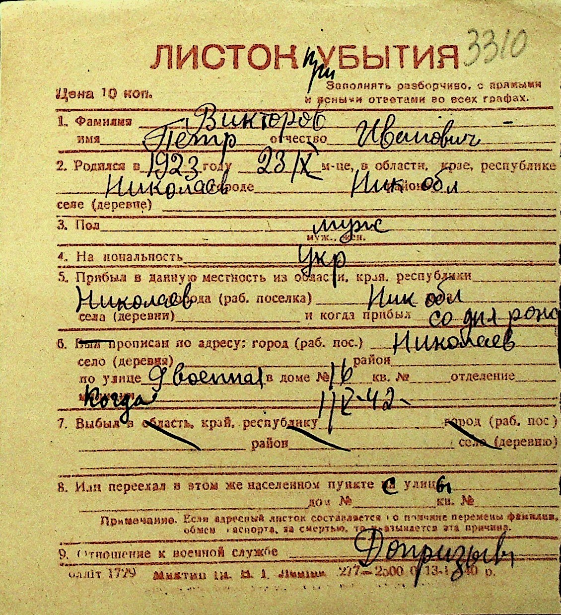 • • Перелік карток до фонду № Н-1016